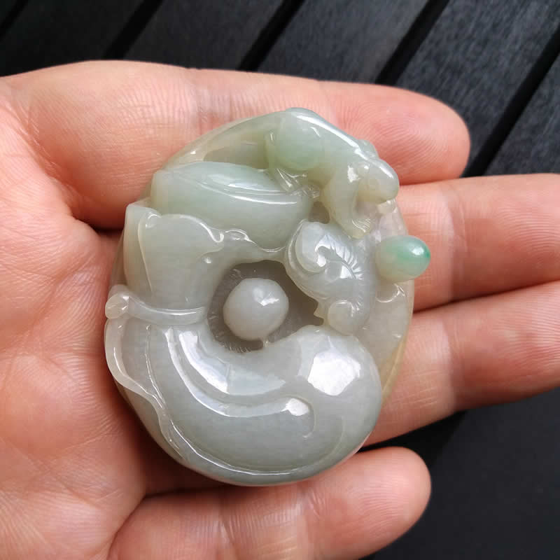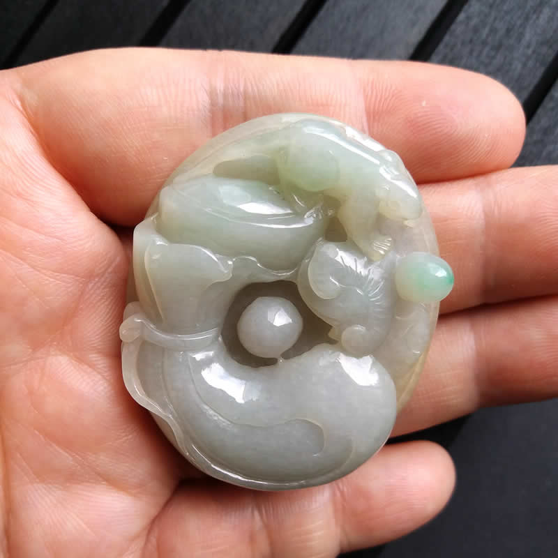 • 冰糯淡綠底福鼠運財吊墜, 天然翡翠A玉, 緬甸玉, Jade, Jadeite