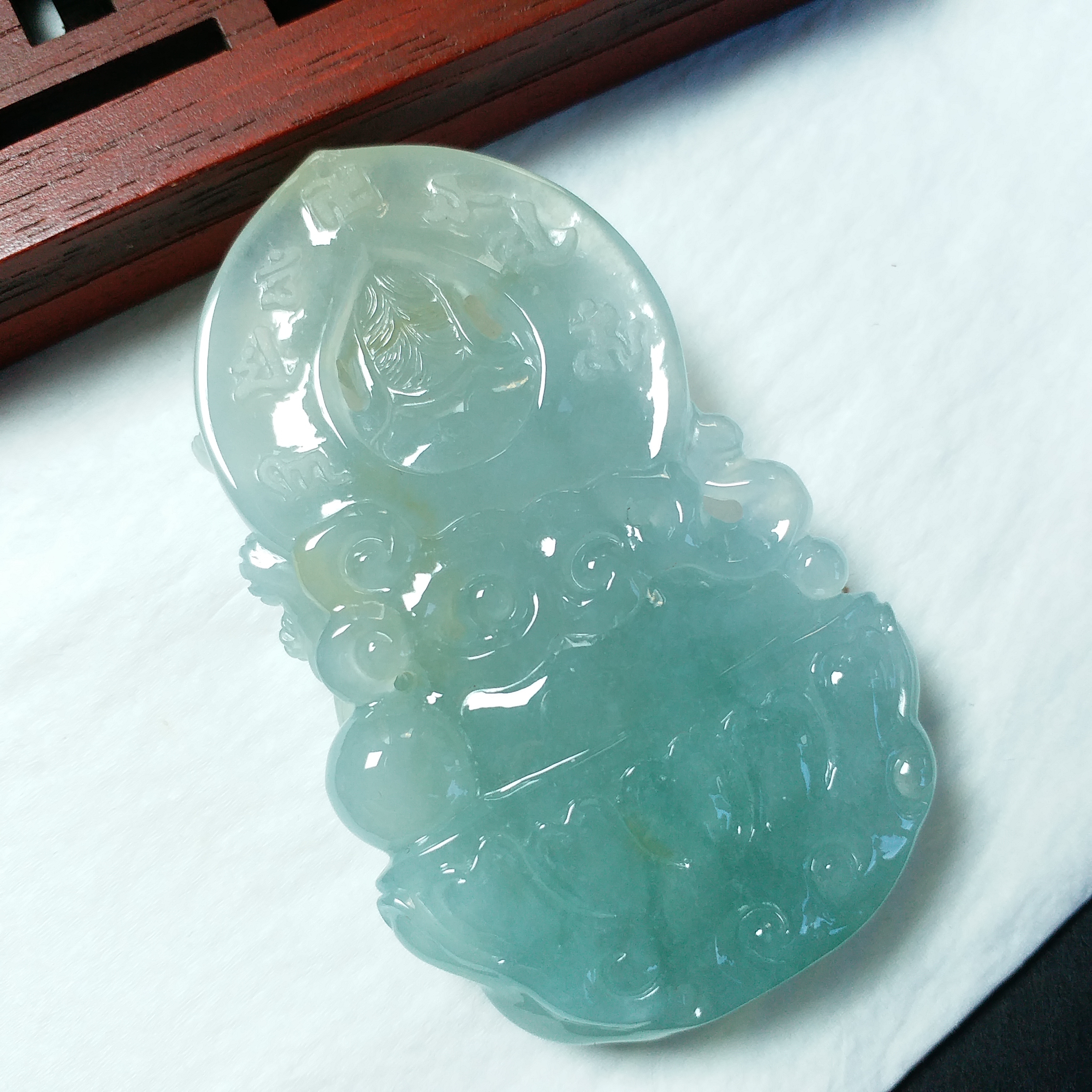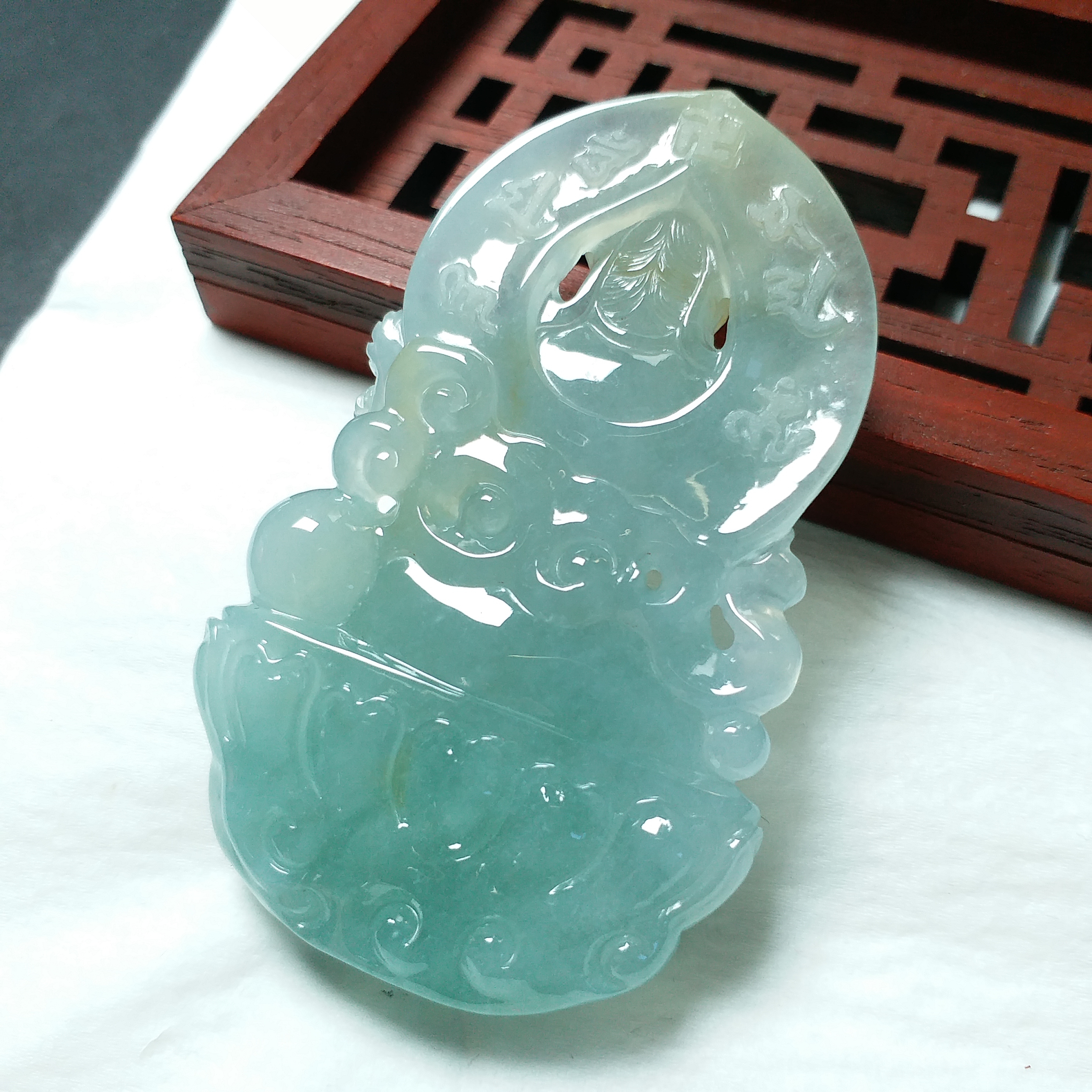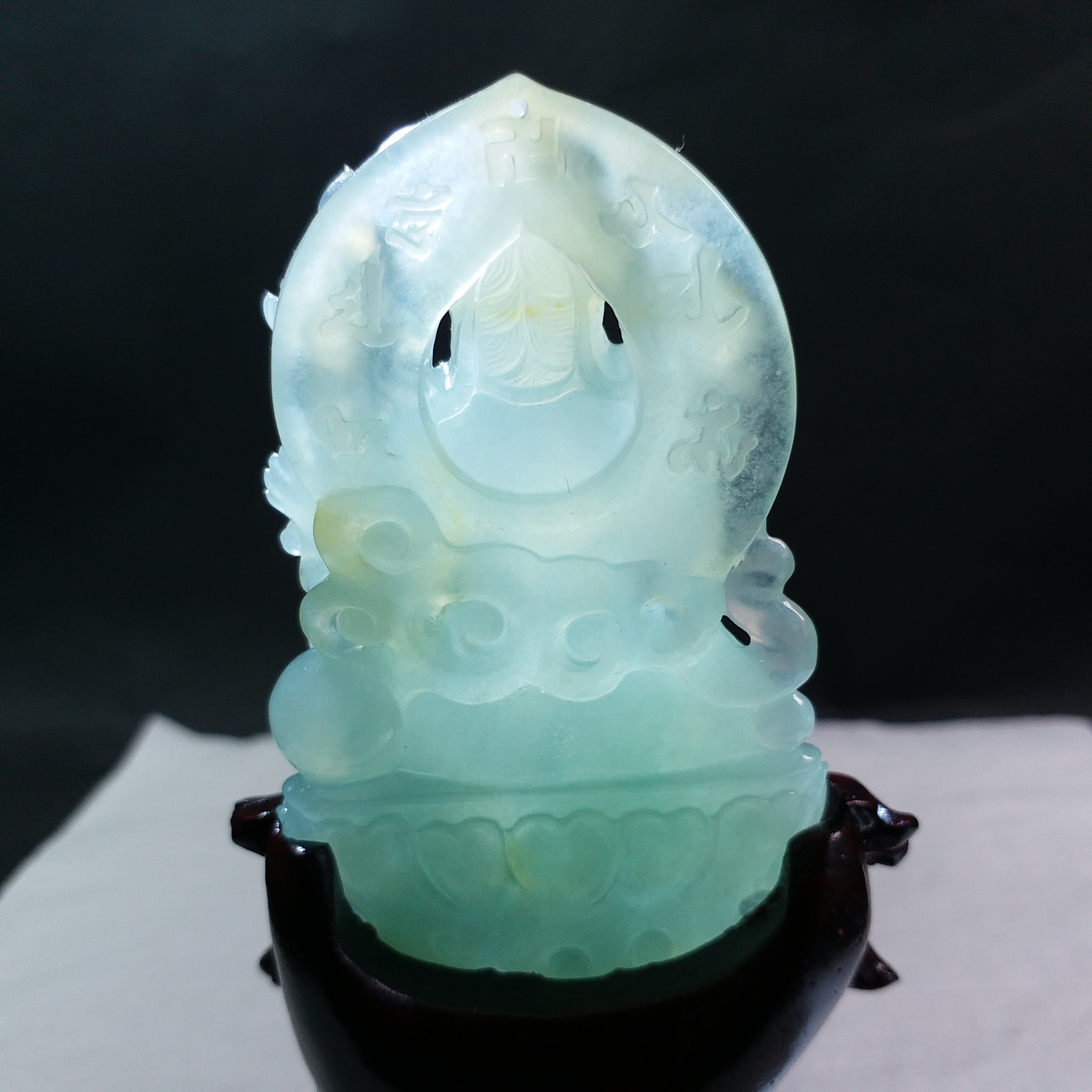 天然翡翠A玉,全手工雕刻,大師雕工,種水雕工一流,大件厚庄,完美無紋裂!實物超美!配紫檀木座,可作小擺件!