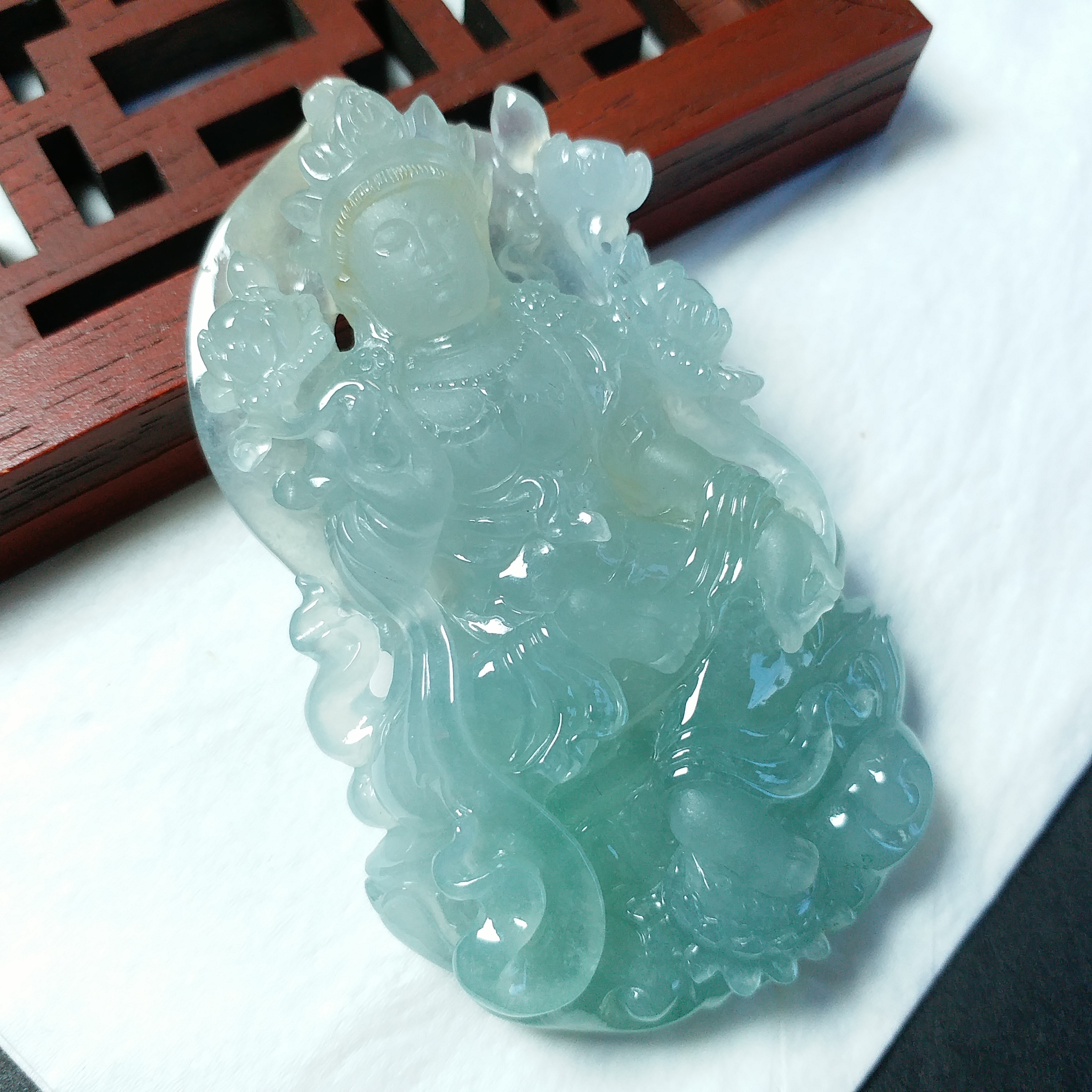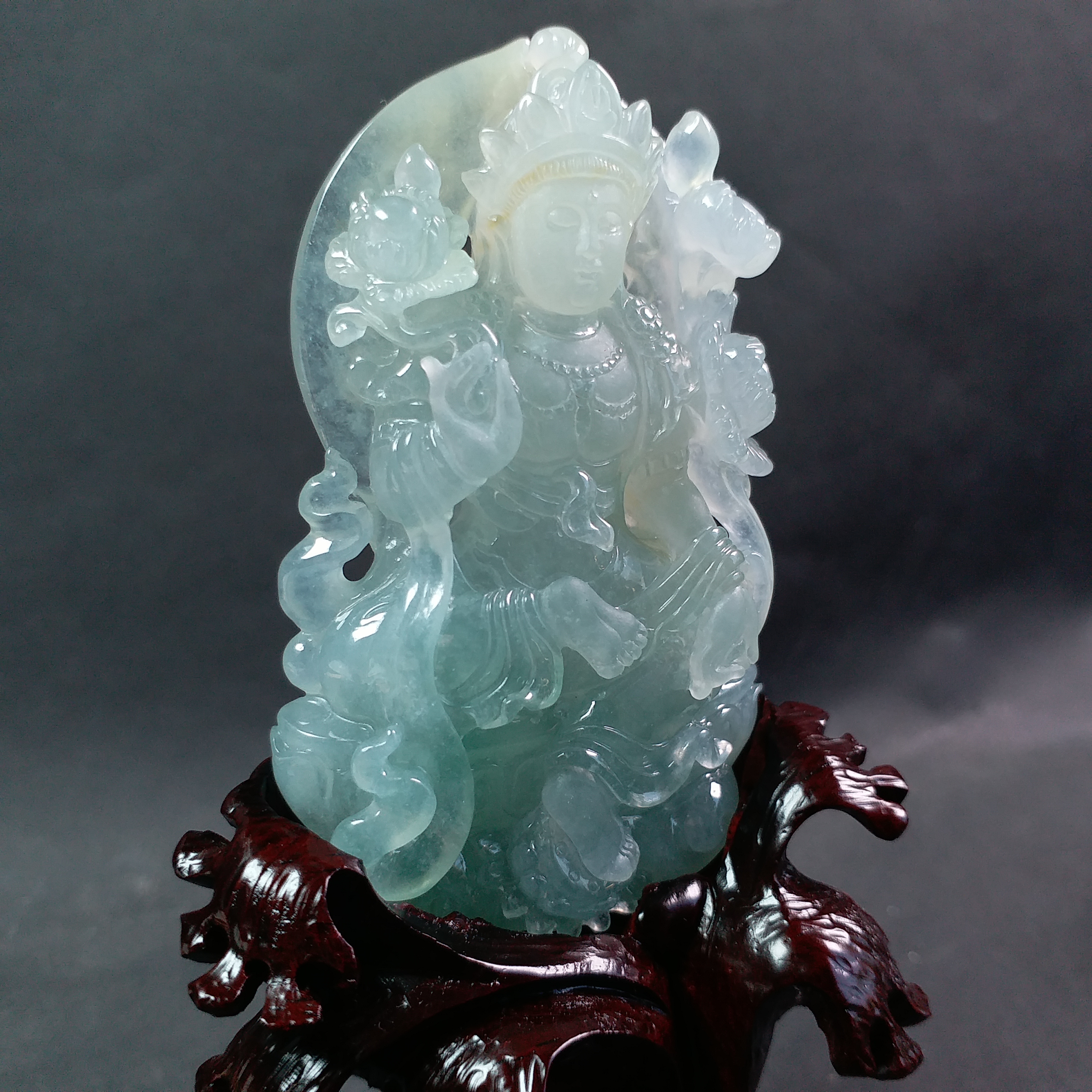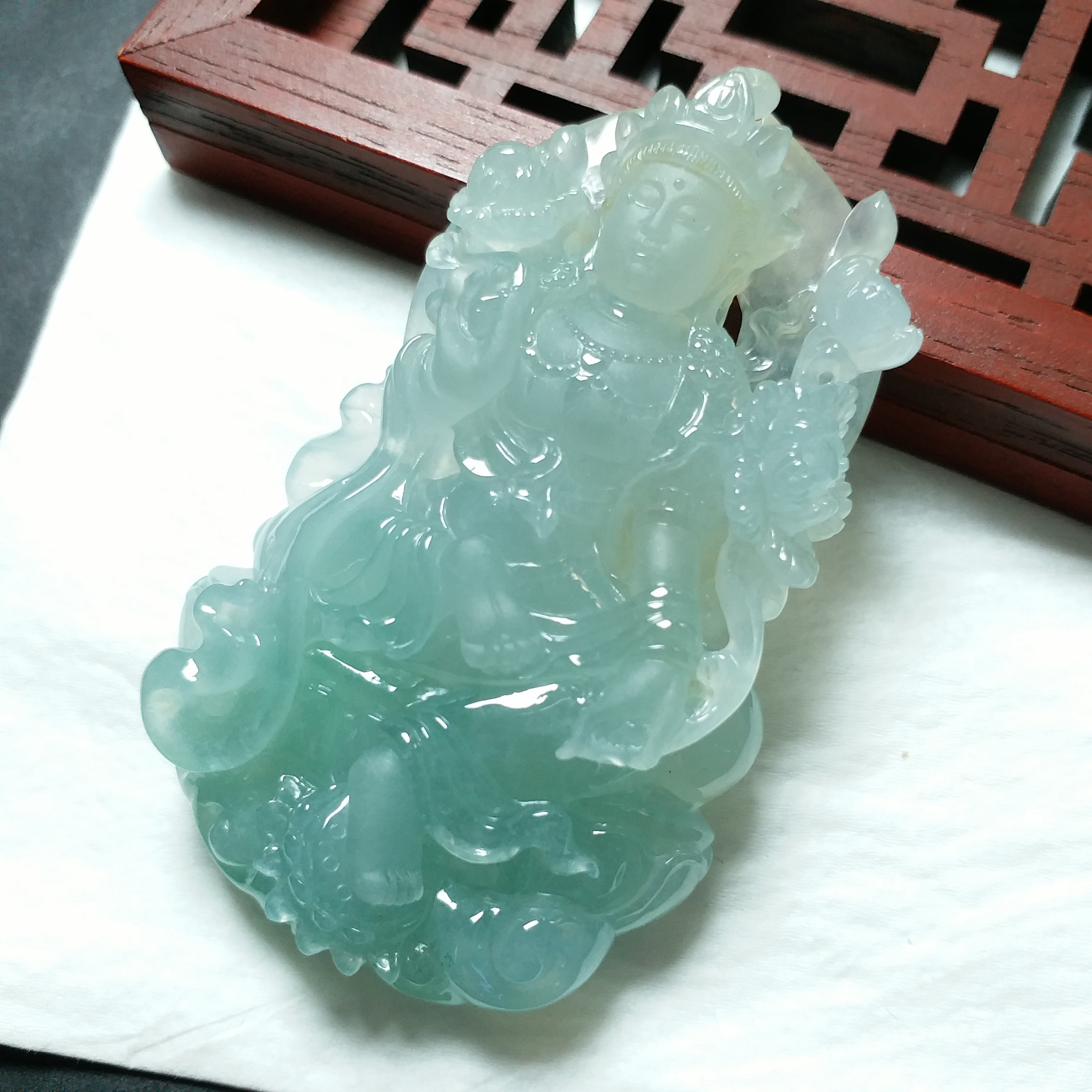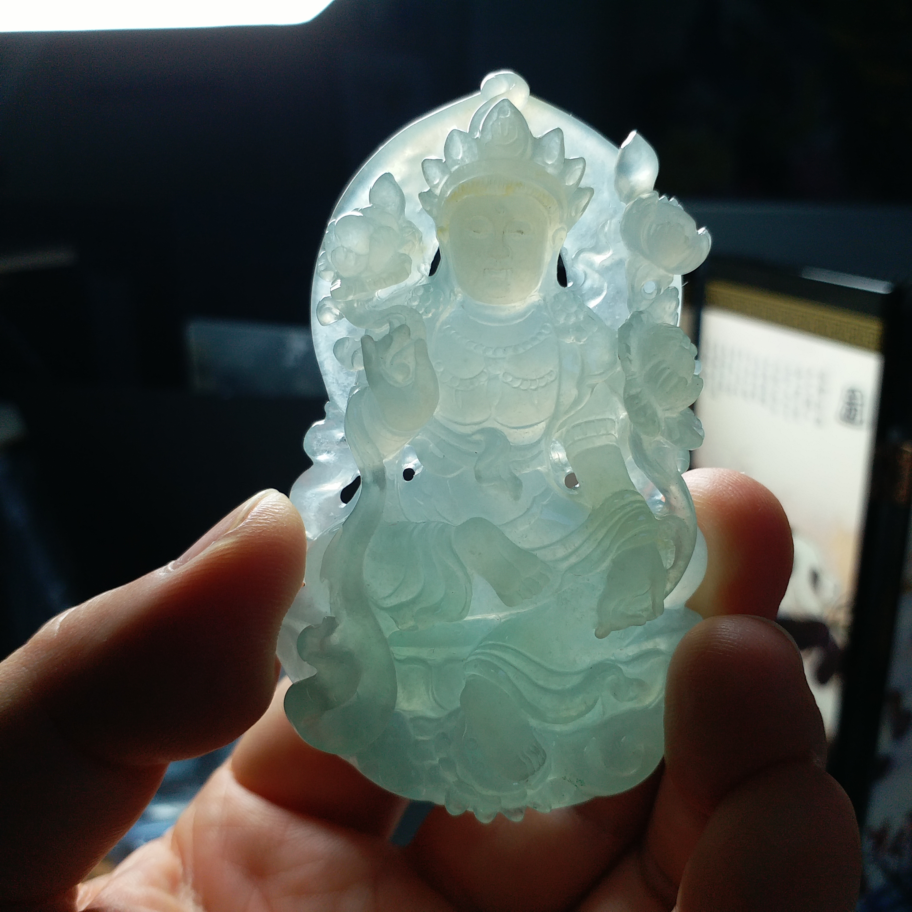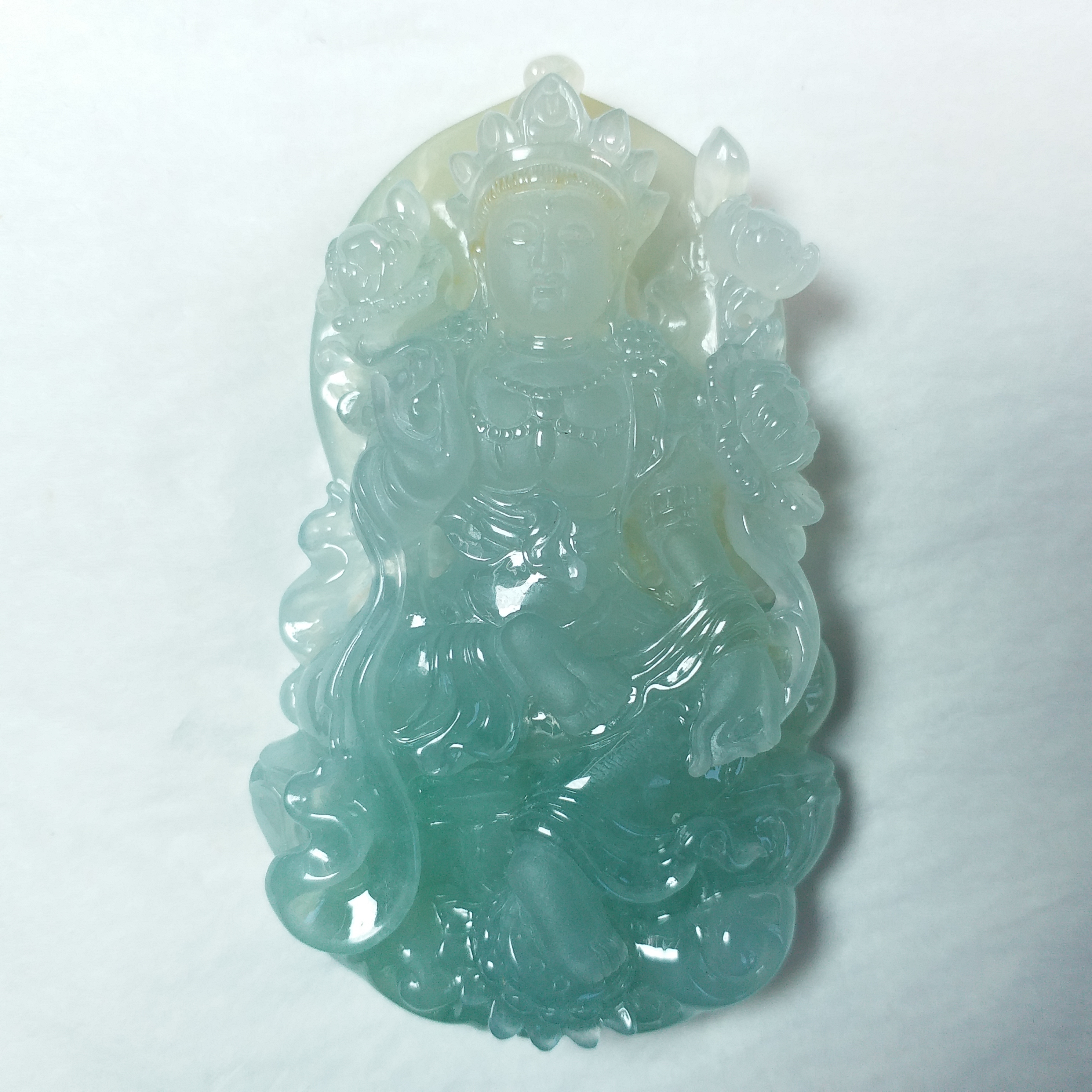 • 冰種晴水綠度母, 天然翡翠A玉, 緬甸玉, Jade, Jadeite