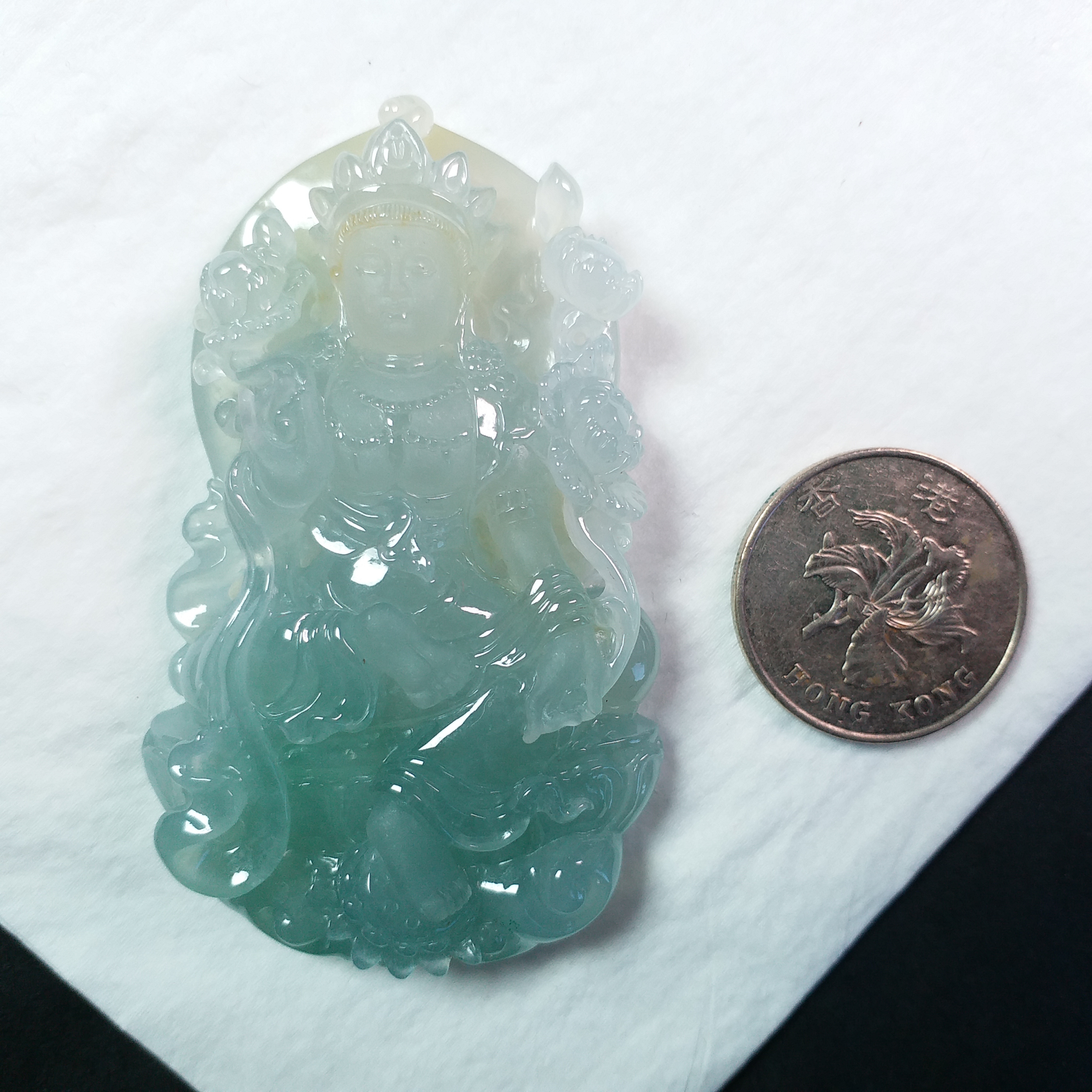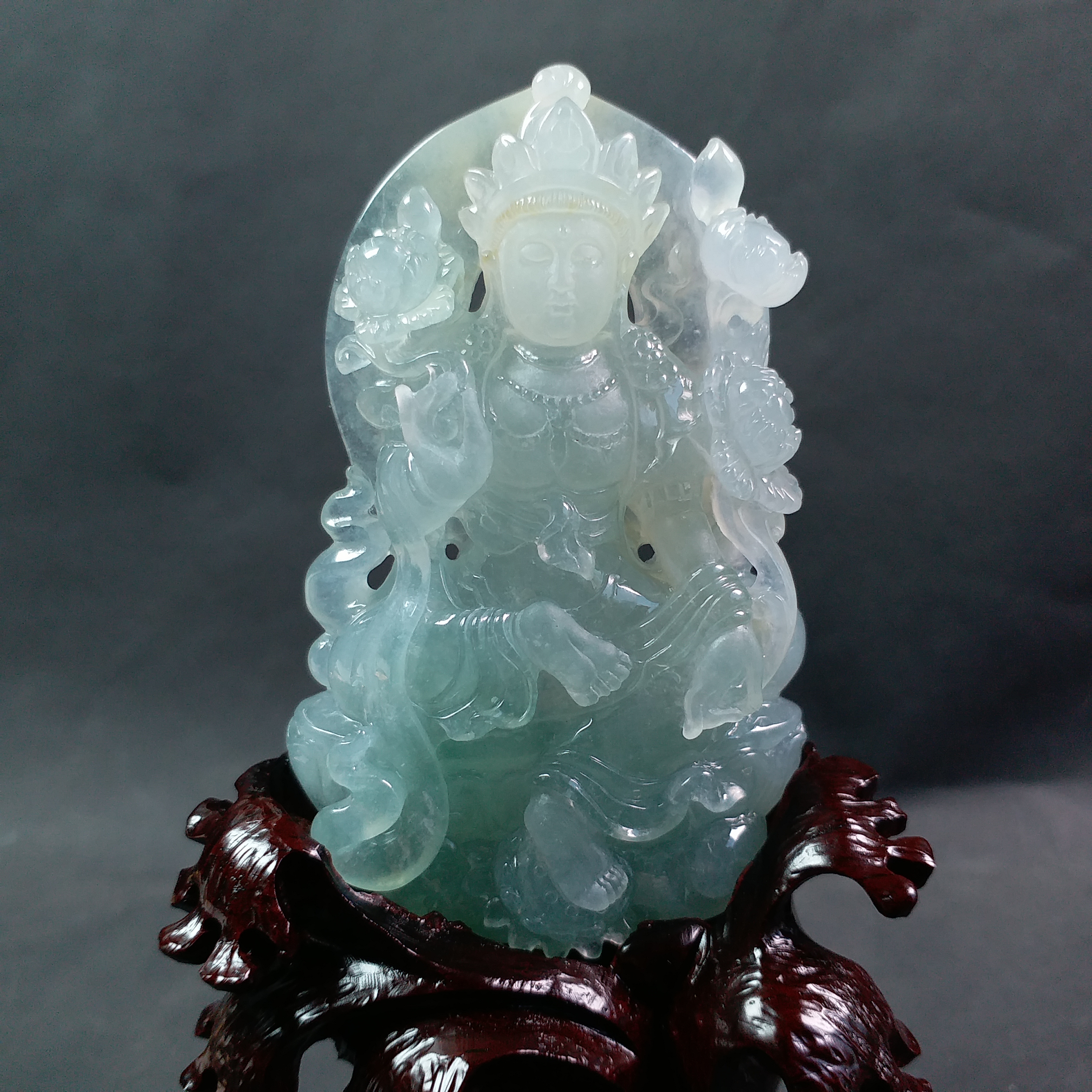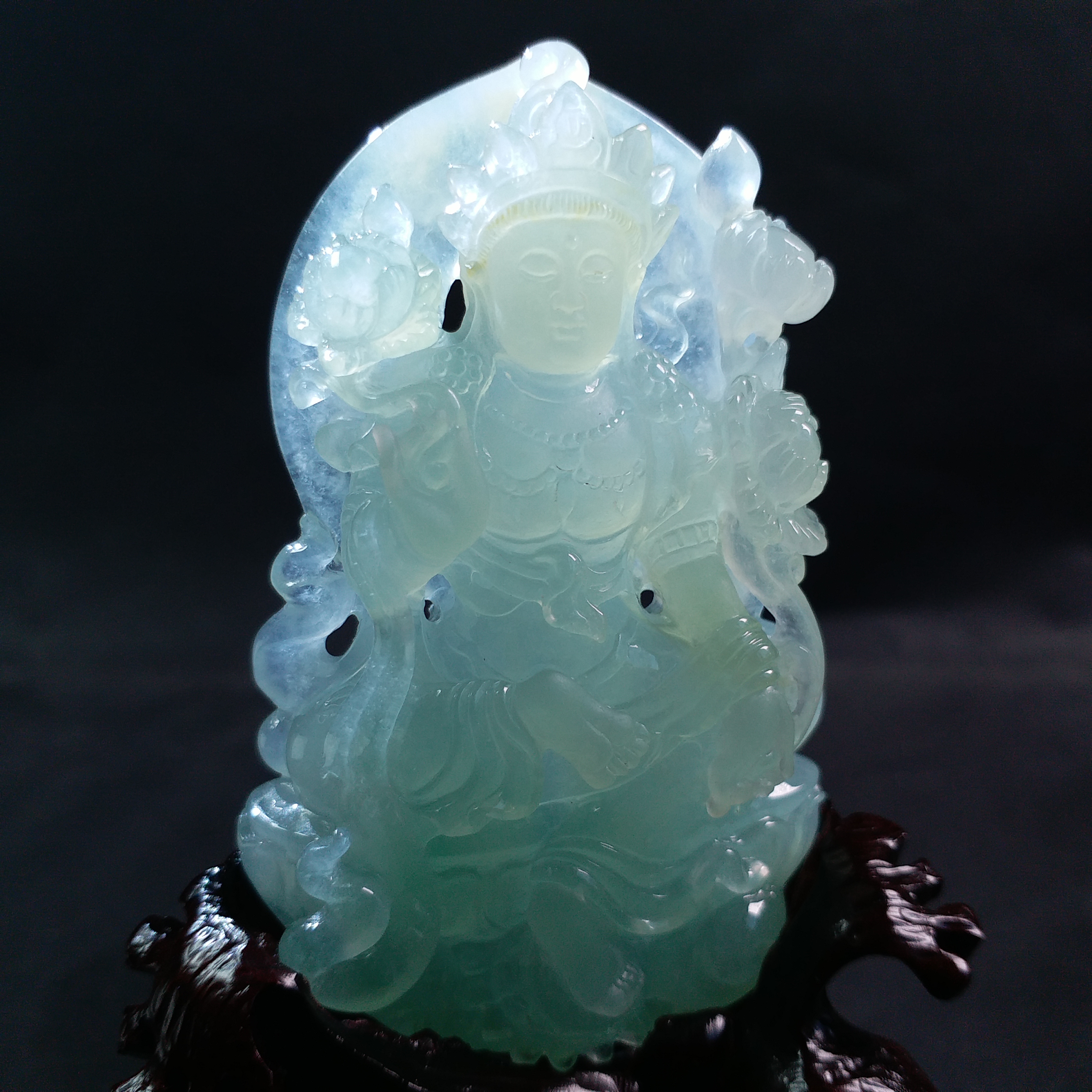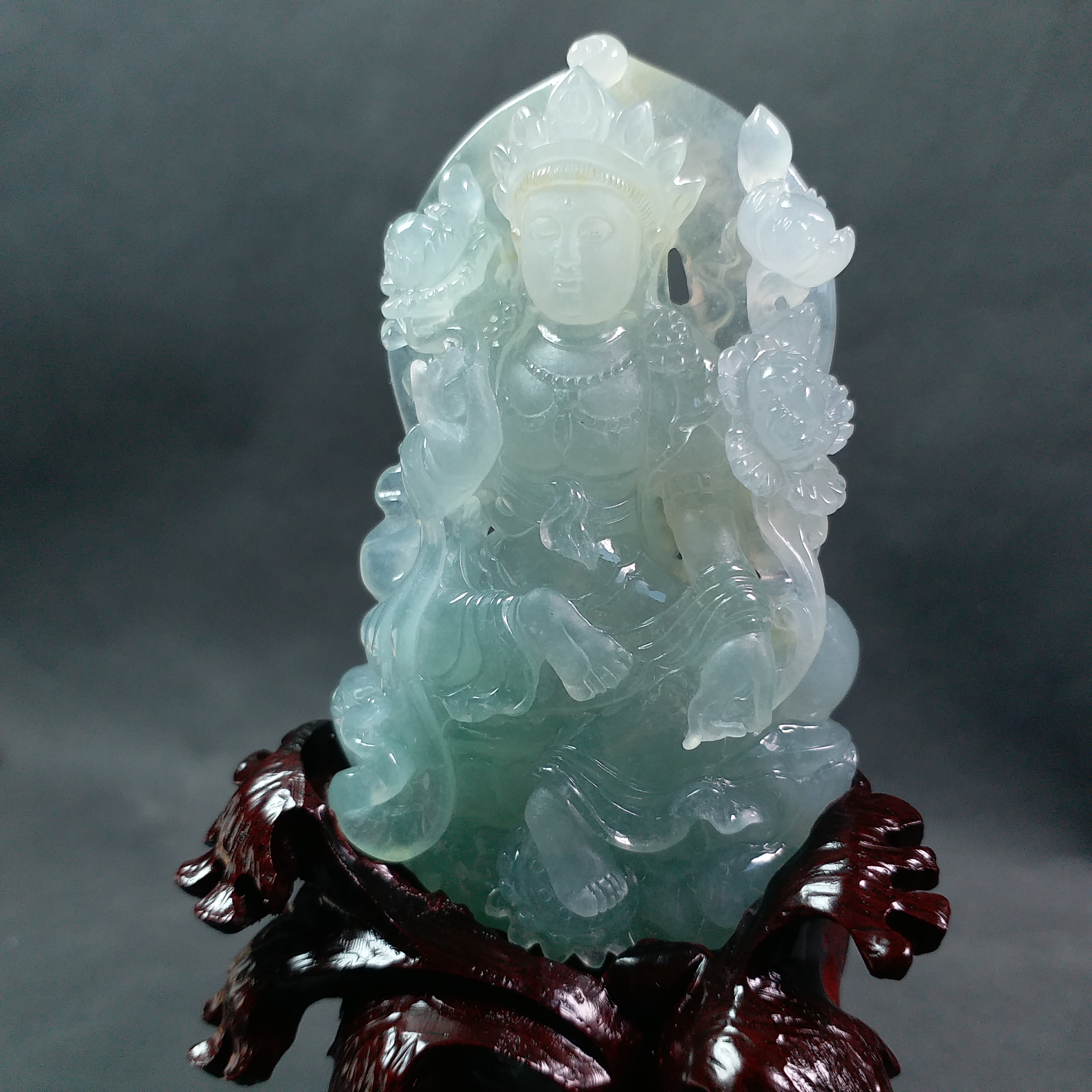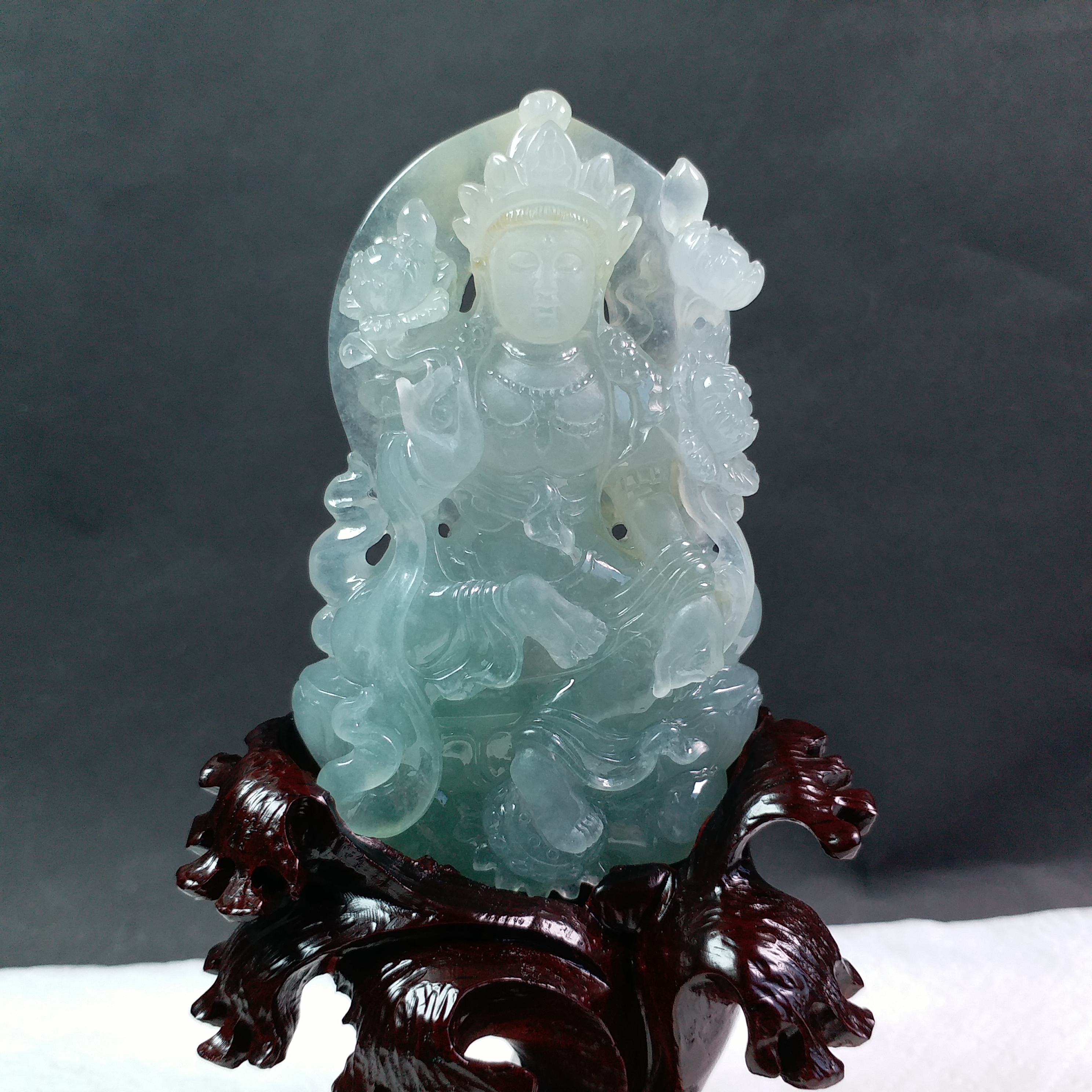 • 冰種晴水綠度母, 天然翡翠A玉, 緬甸玉, Jade, Jadeite