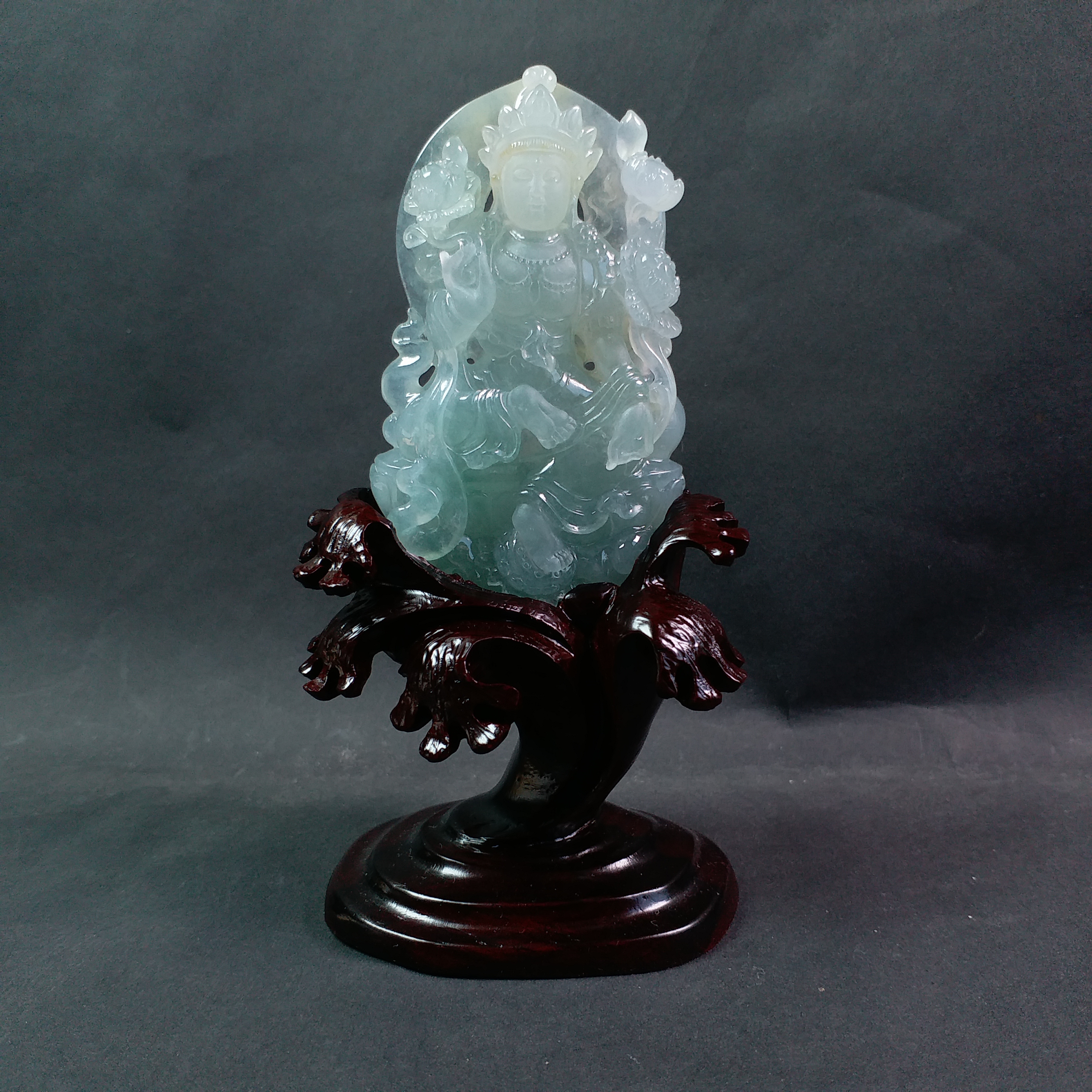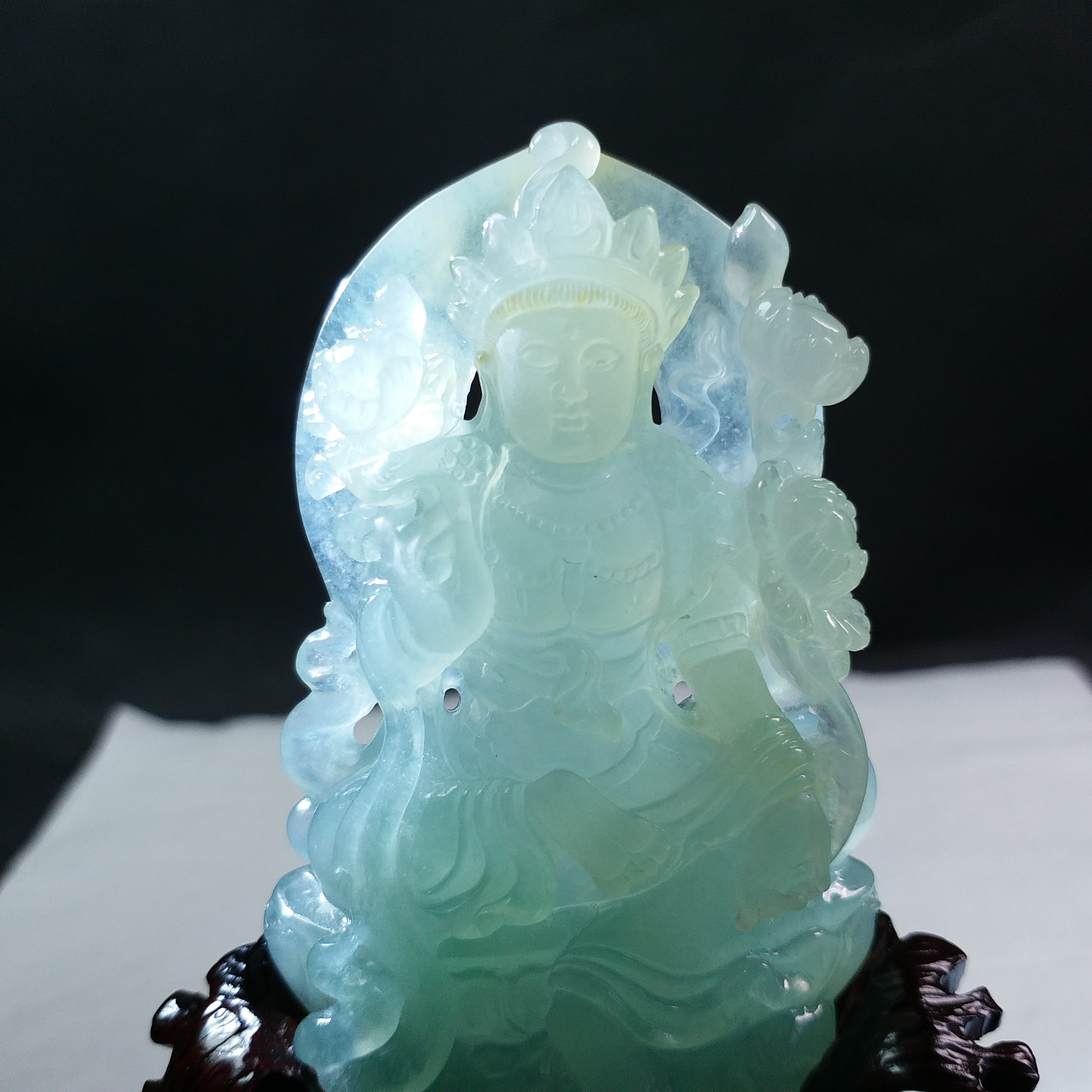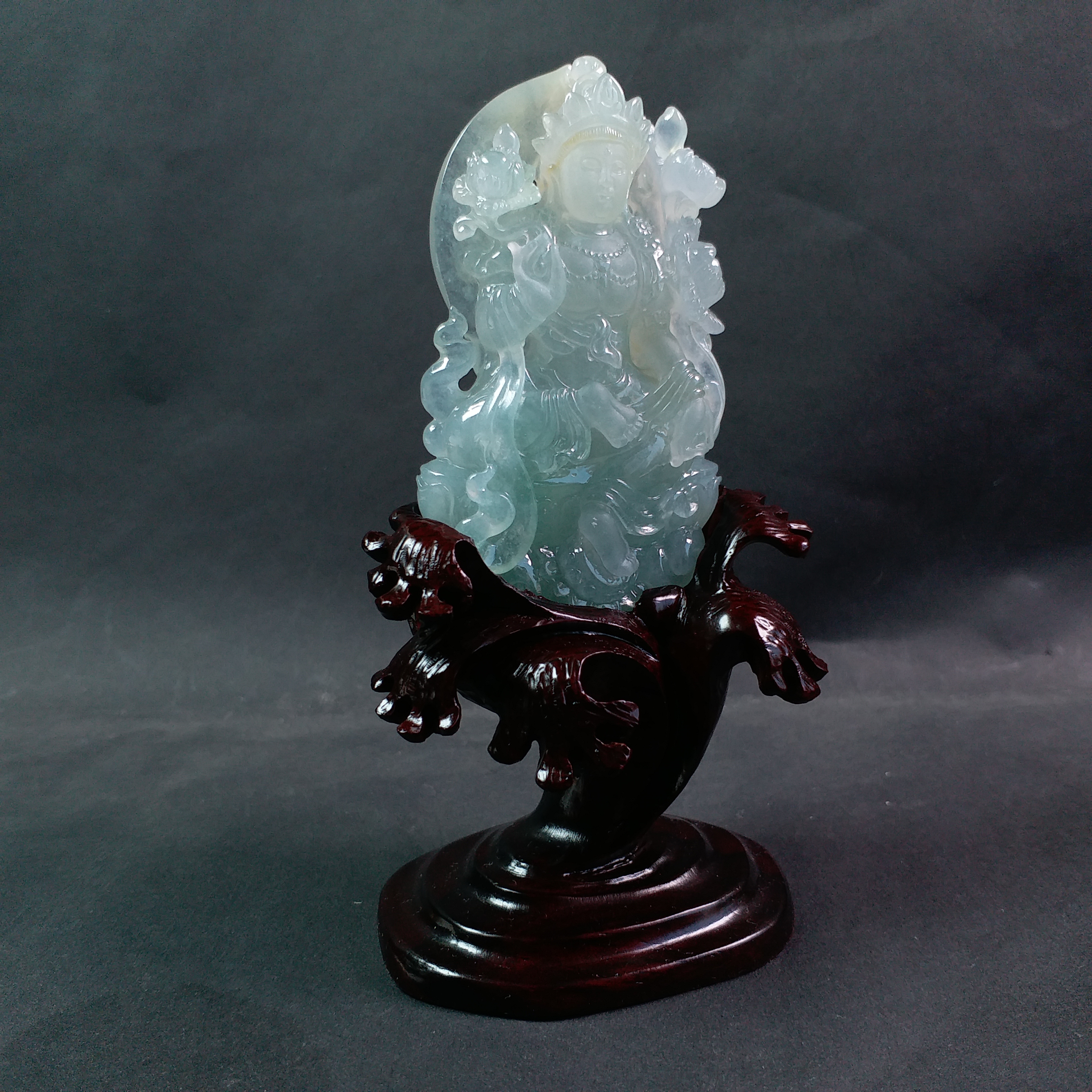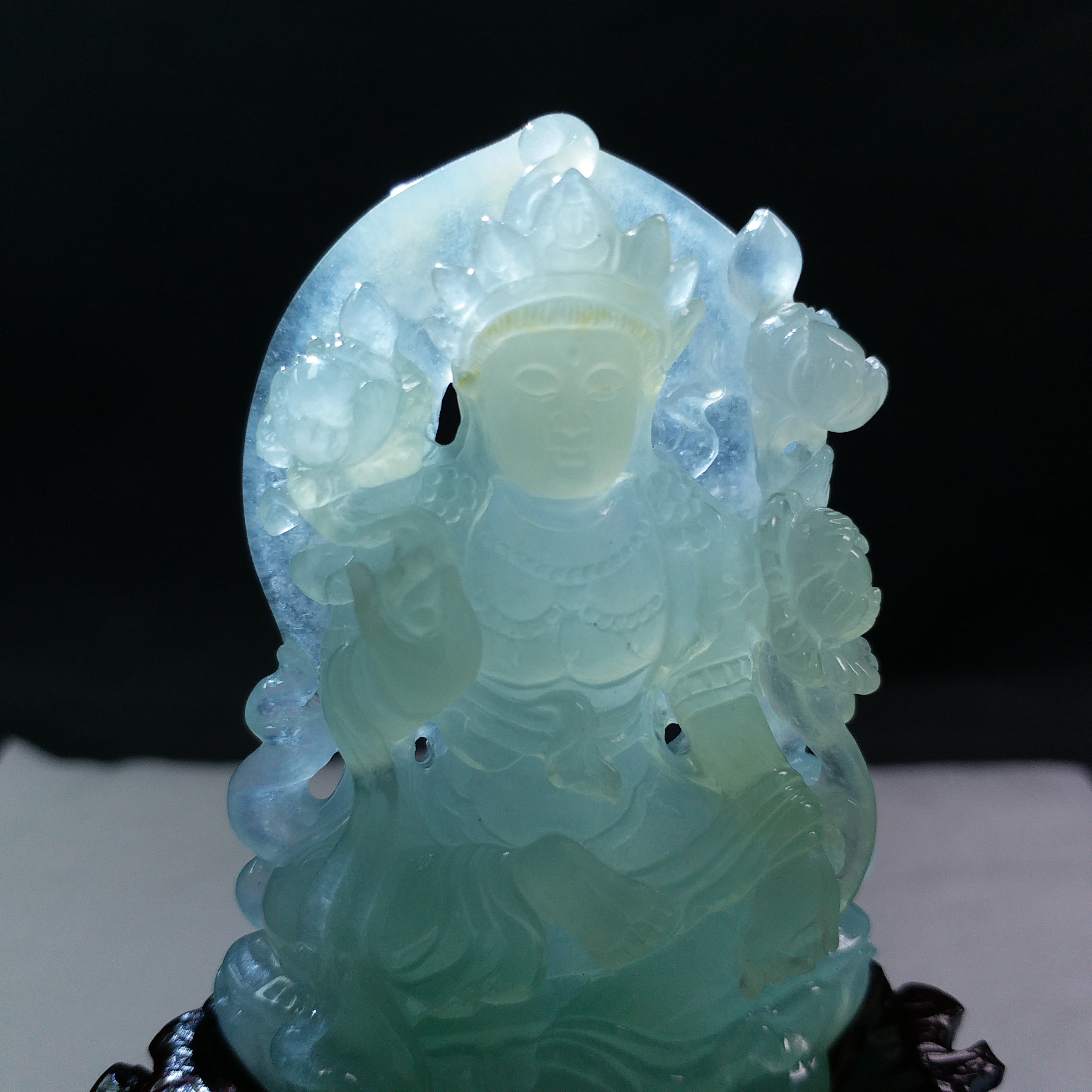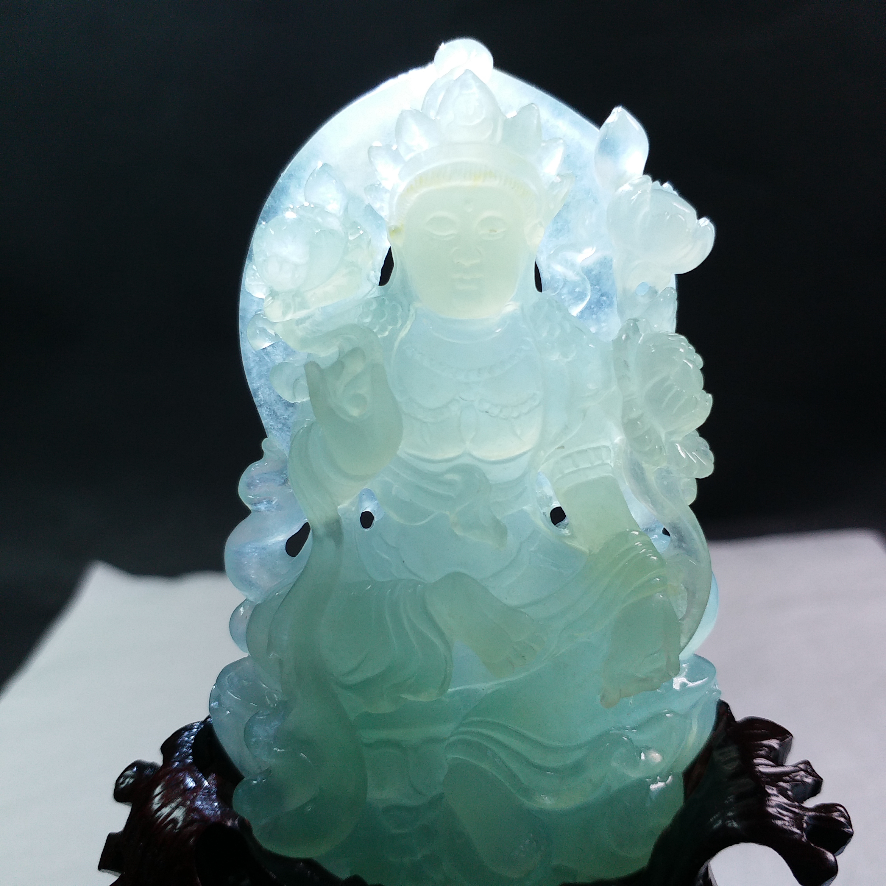 • 冰種晴水綠度母, 天然翡翠A玉, 緬甸玉, Jade, Jadeite