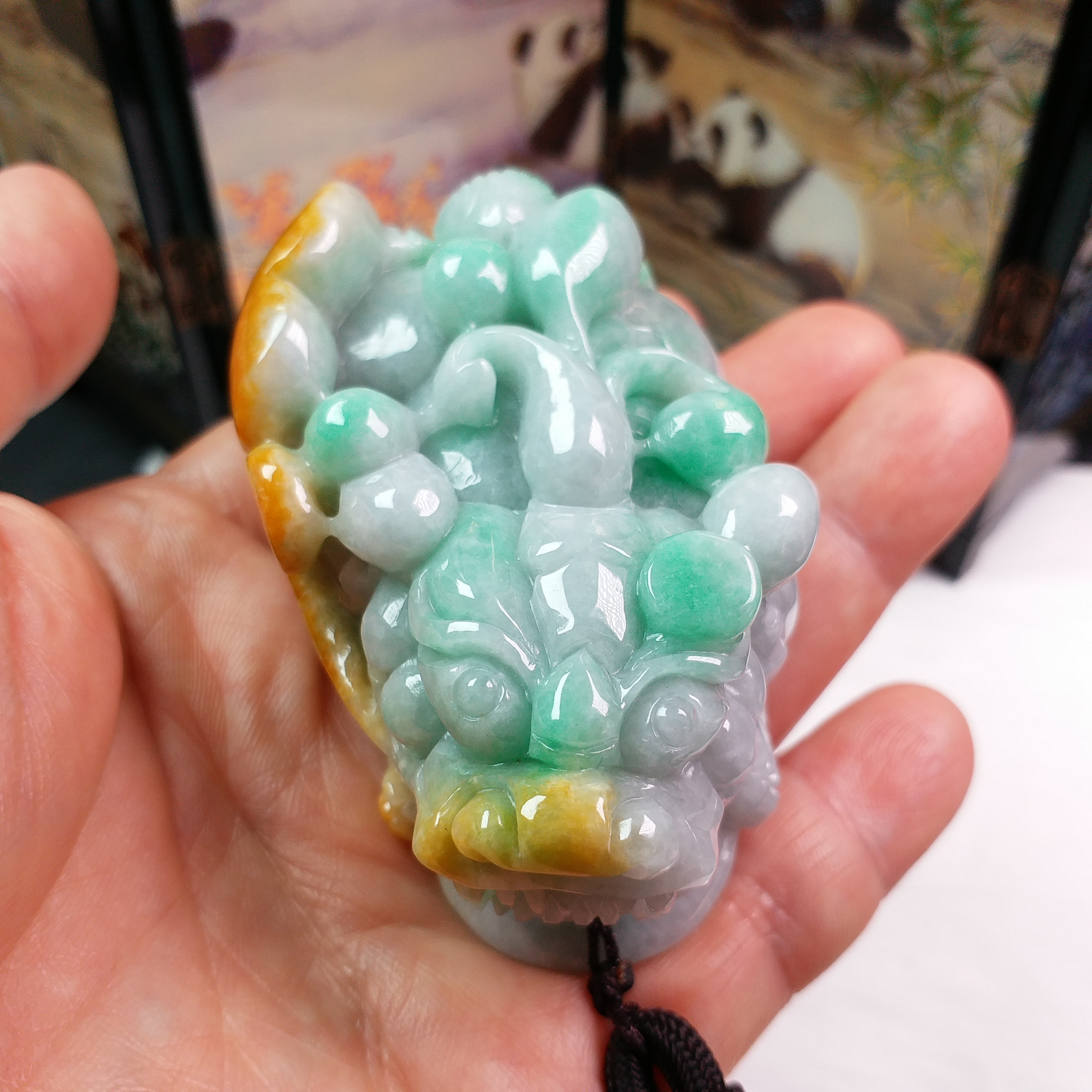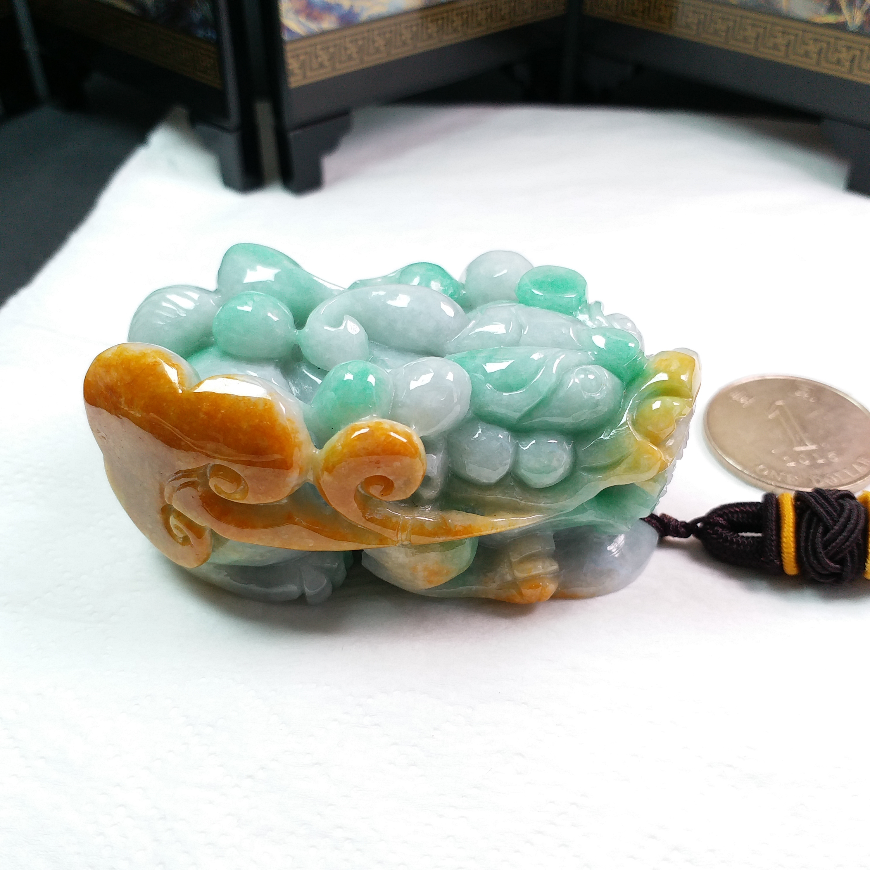 • 三彩貔貅, 天然翡翠A玉, 緬甸玉, Jade, Jadeite