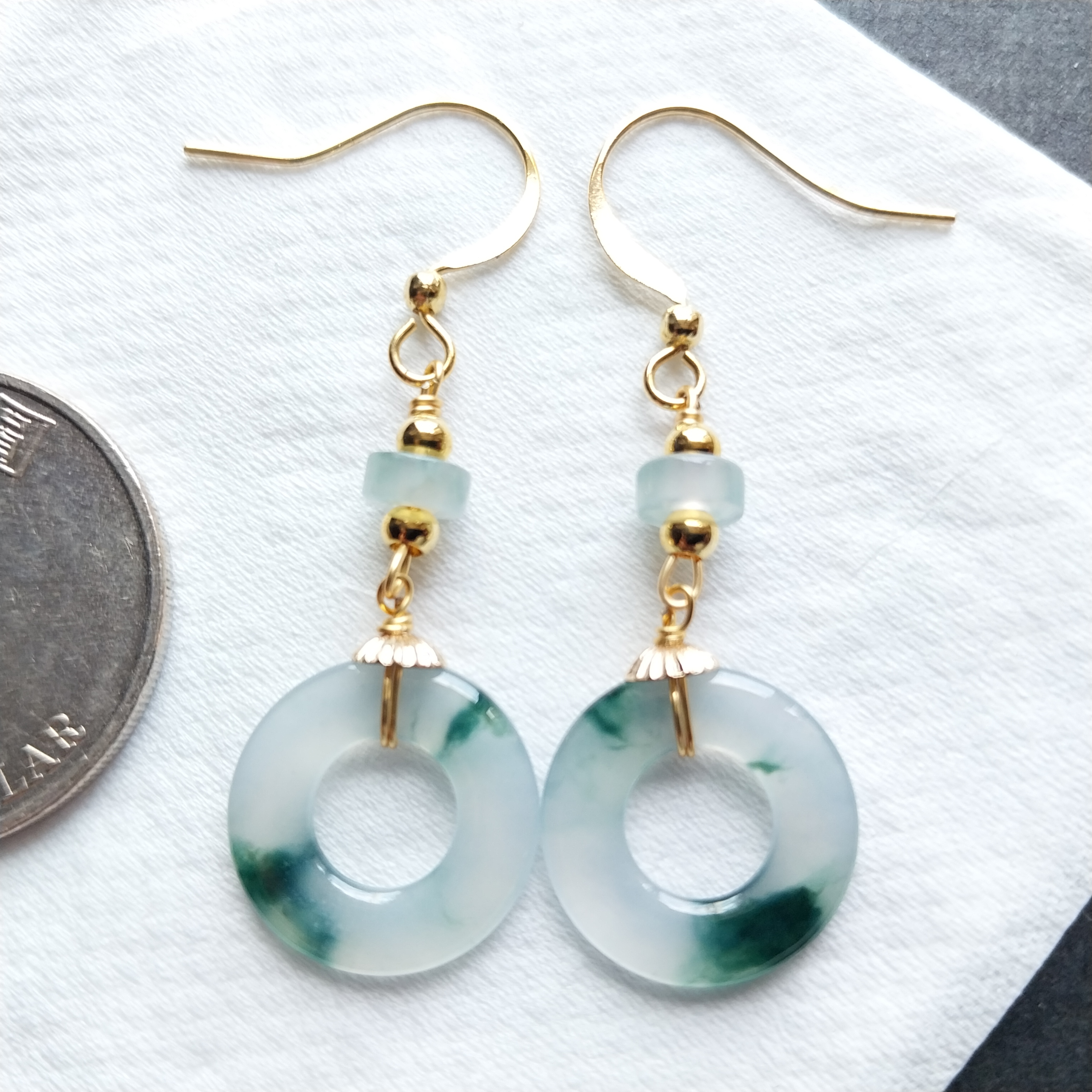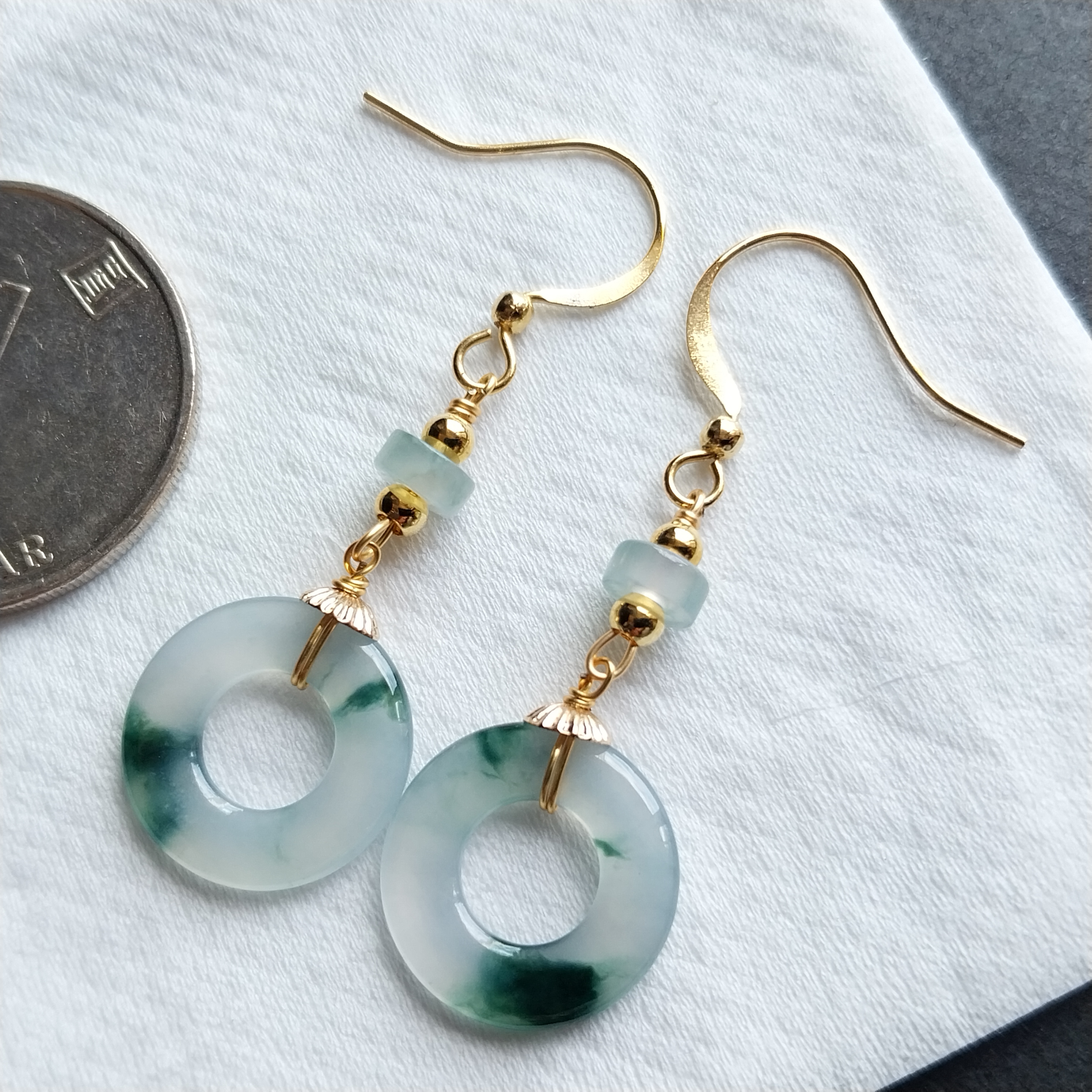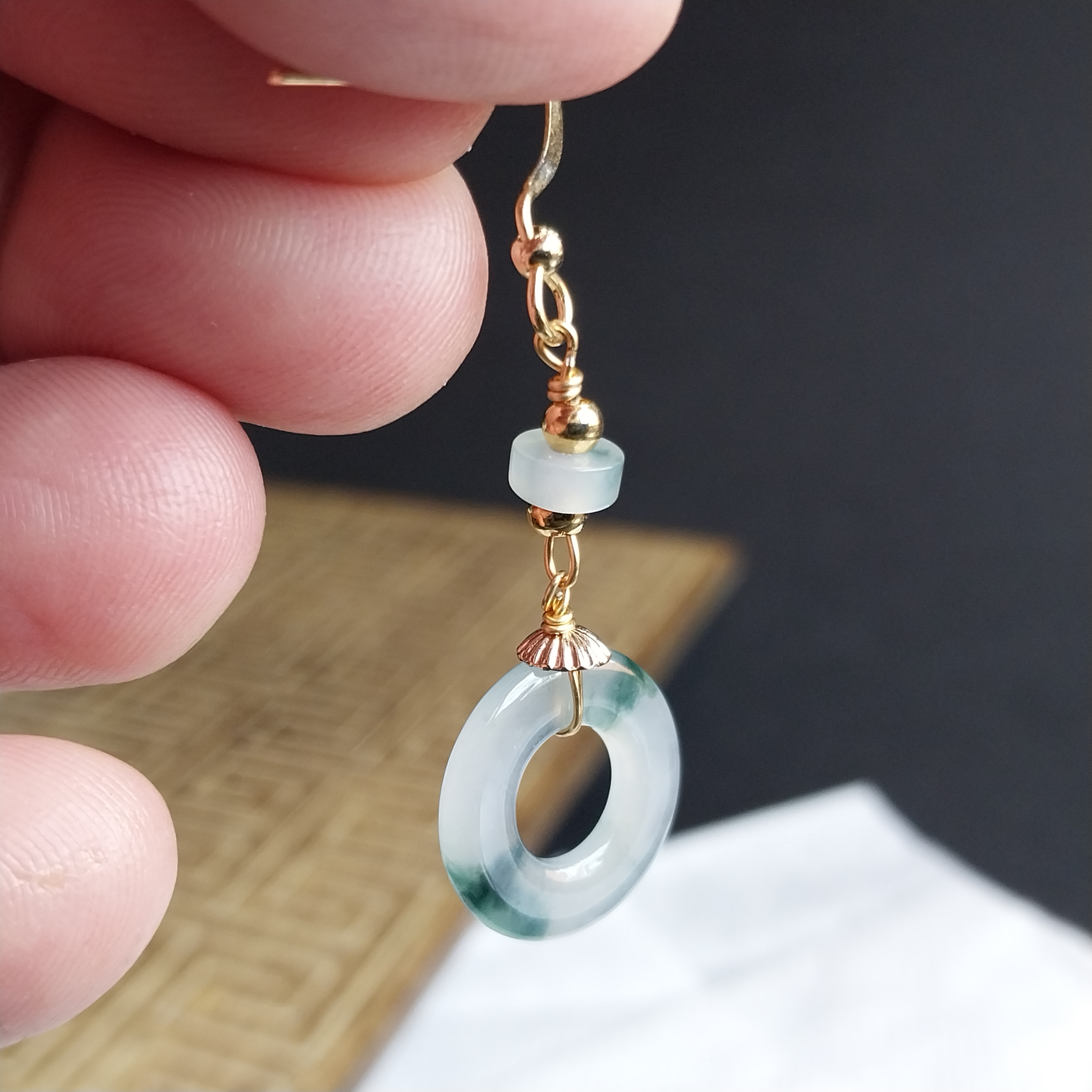 天然翡翠A玉,14K金鑲嵌,冰潤,起光,完美
