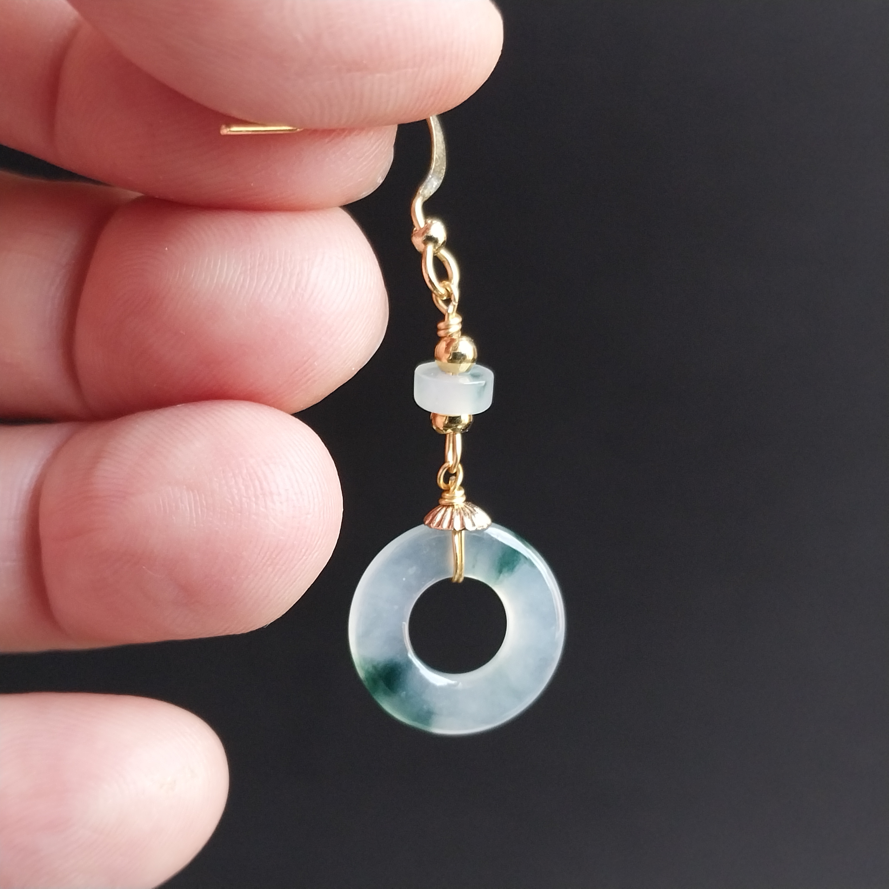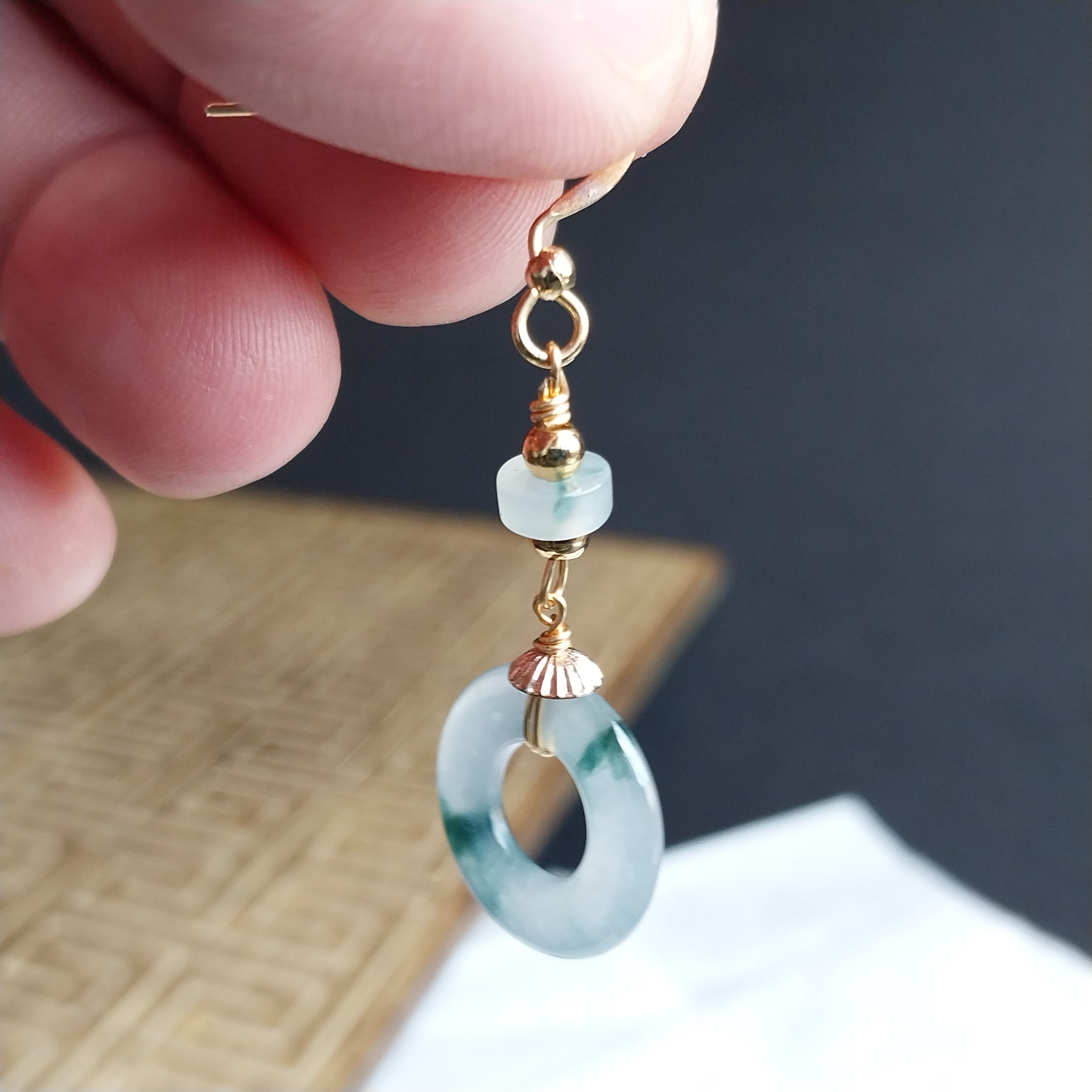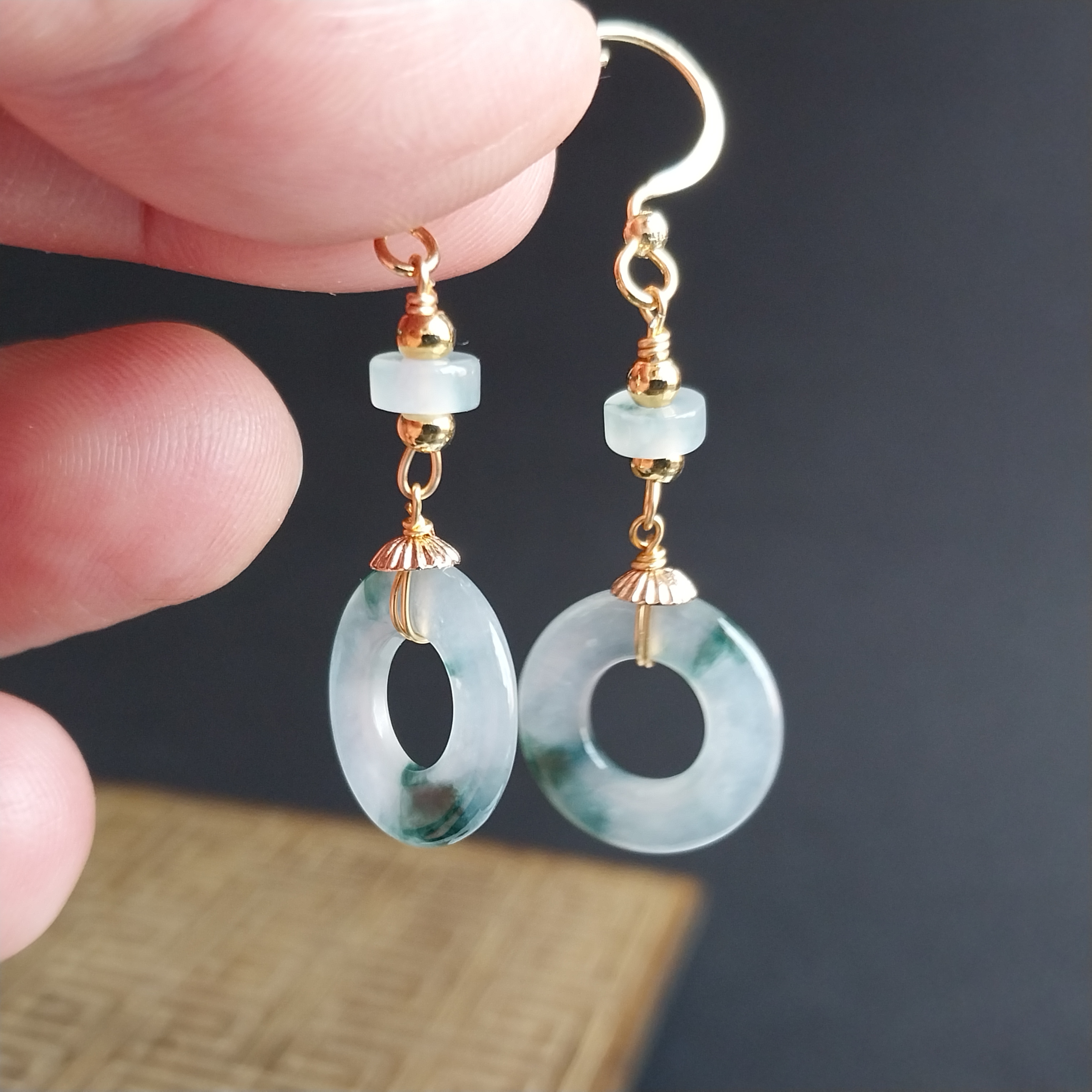 天然翡翠A玉,14K金鑲嵌,冰潤,起光,完美