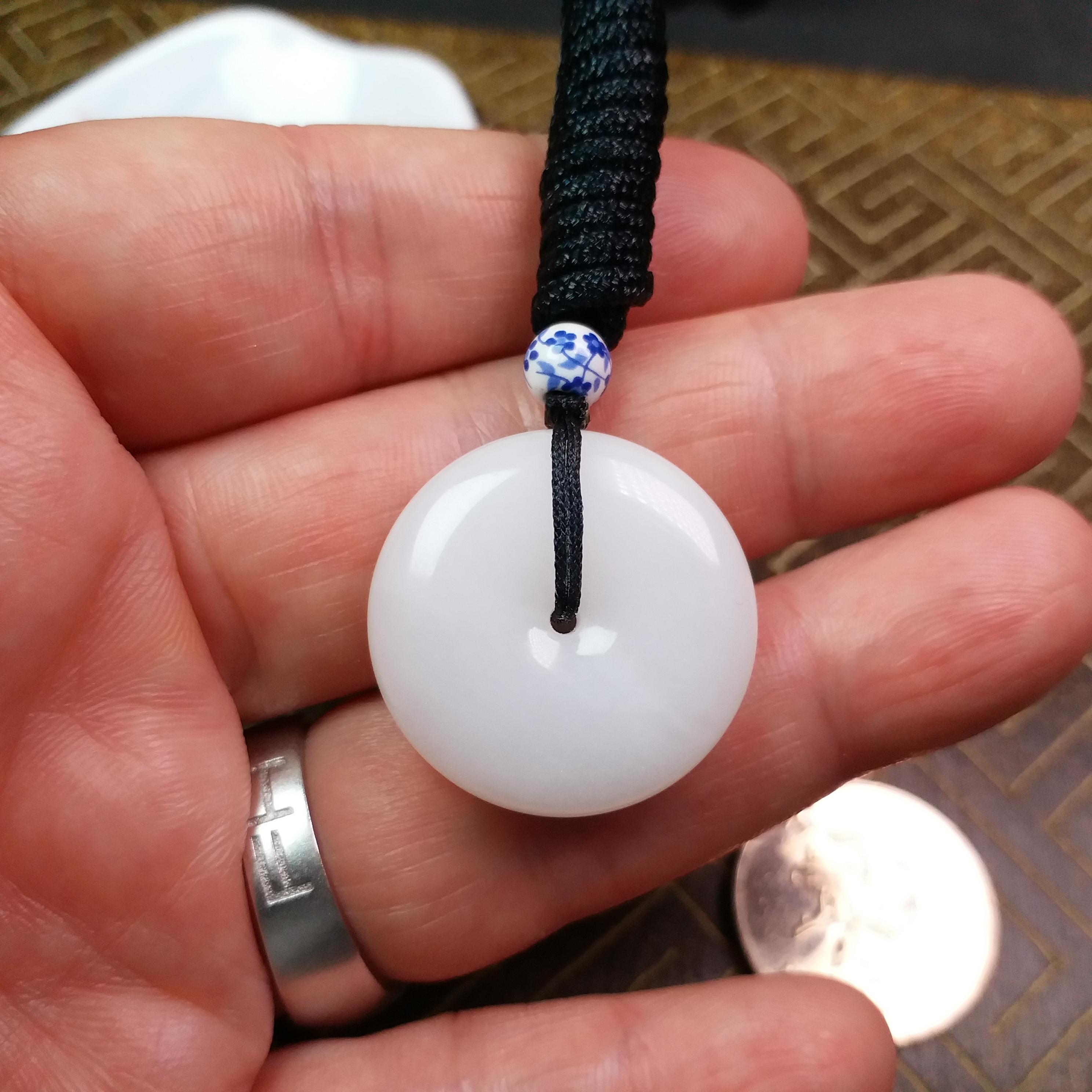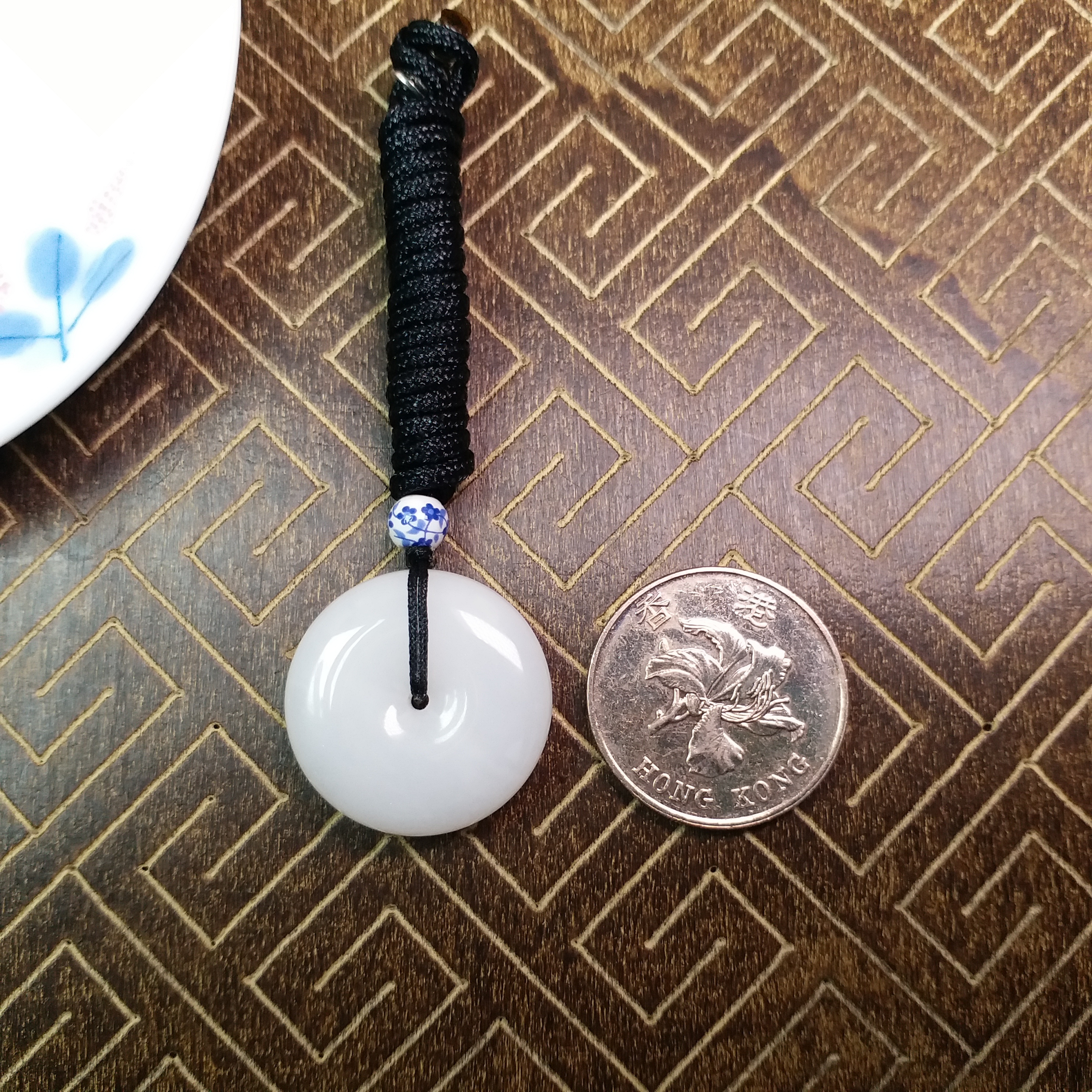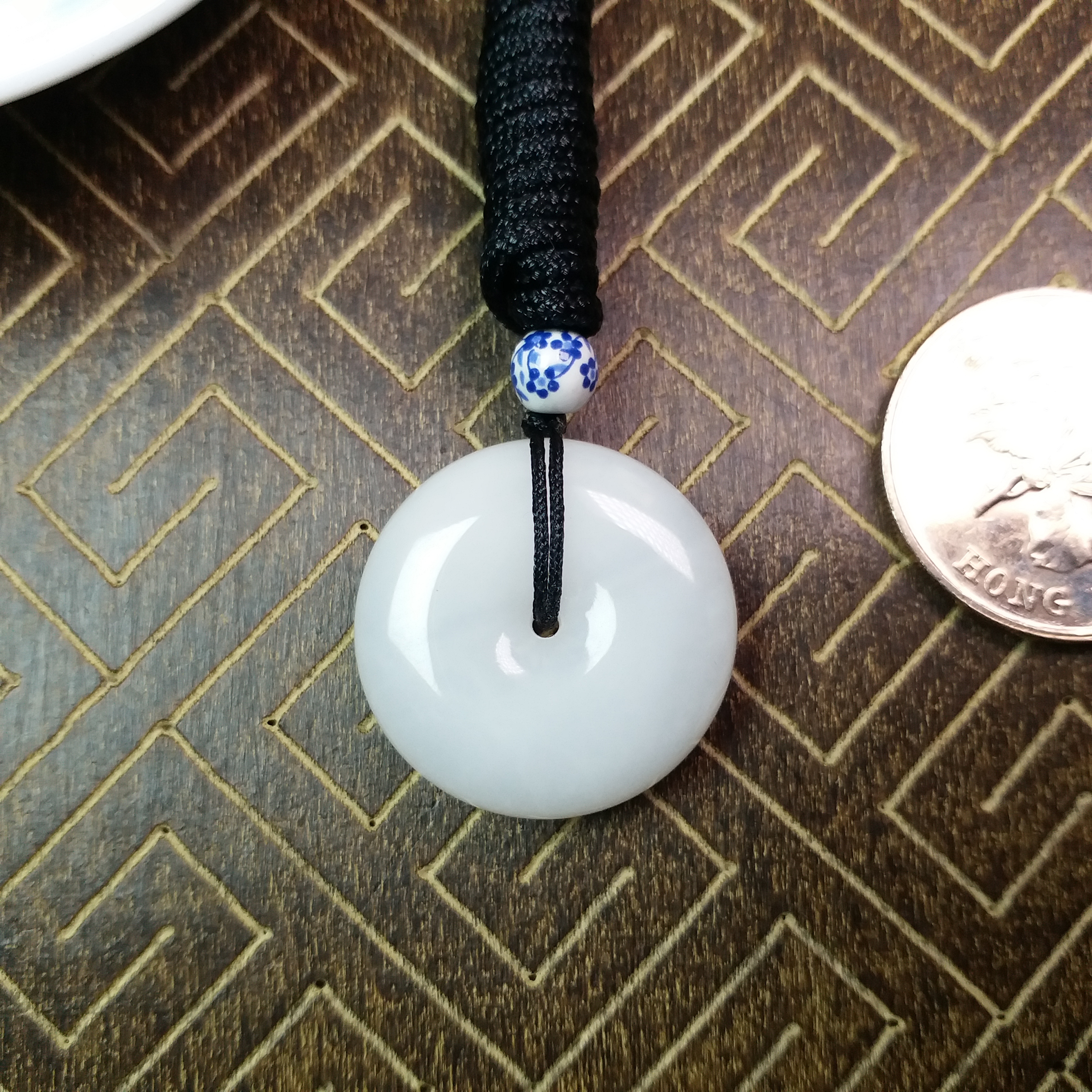 • 和田玉脂白平安扣 (25.2mm直徑), 天然和田玉軟玉