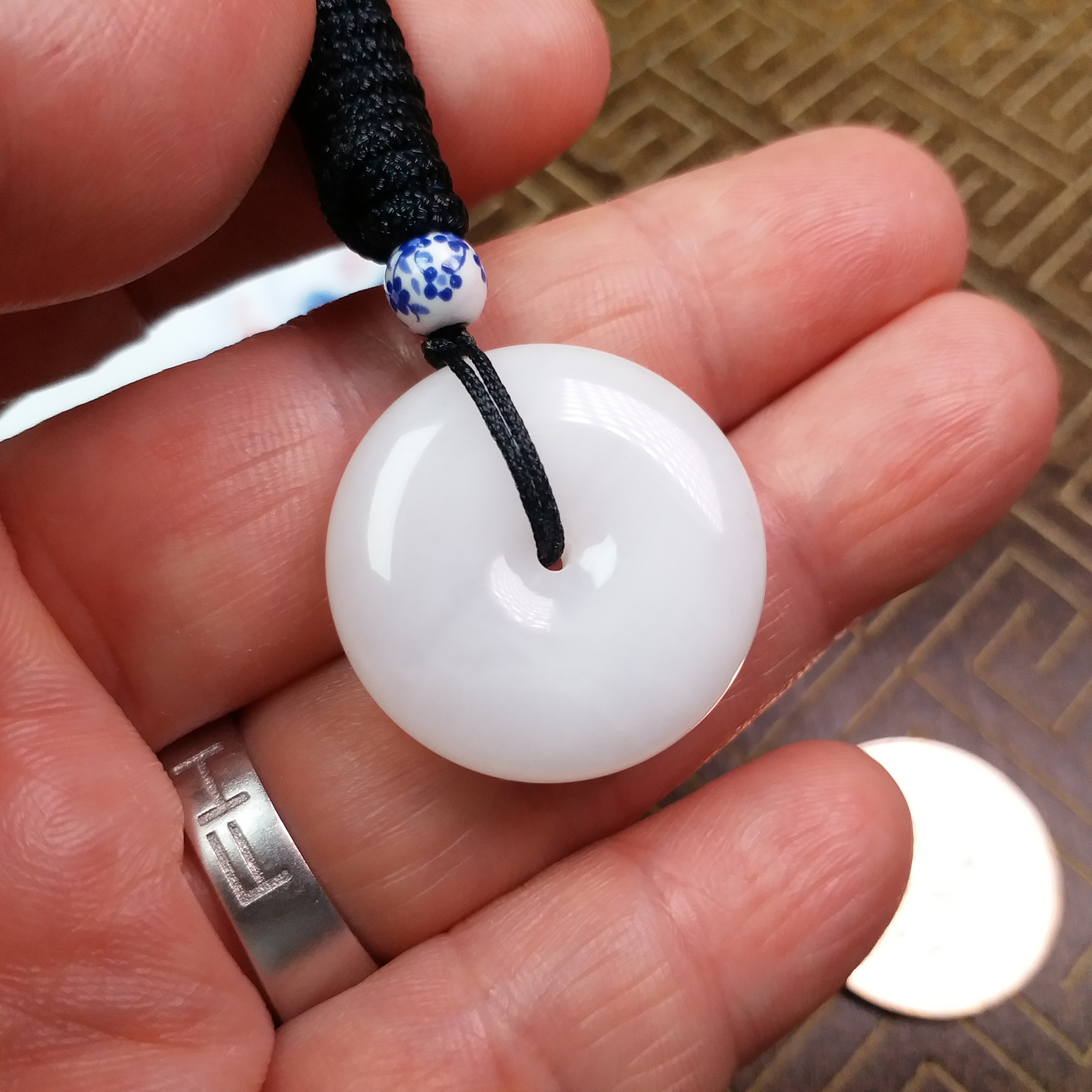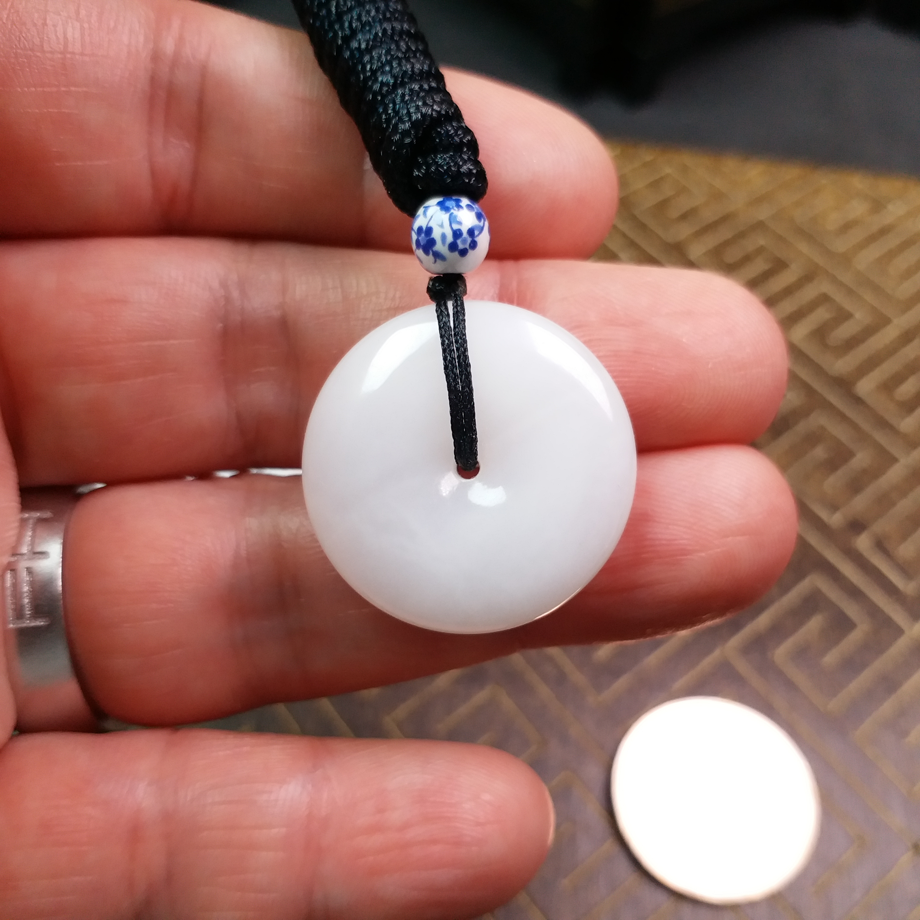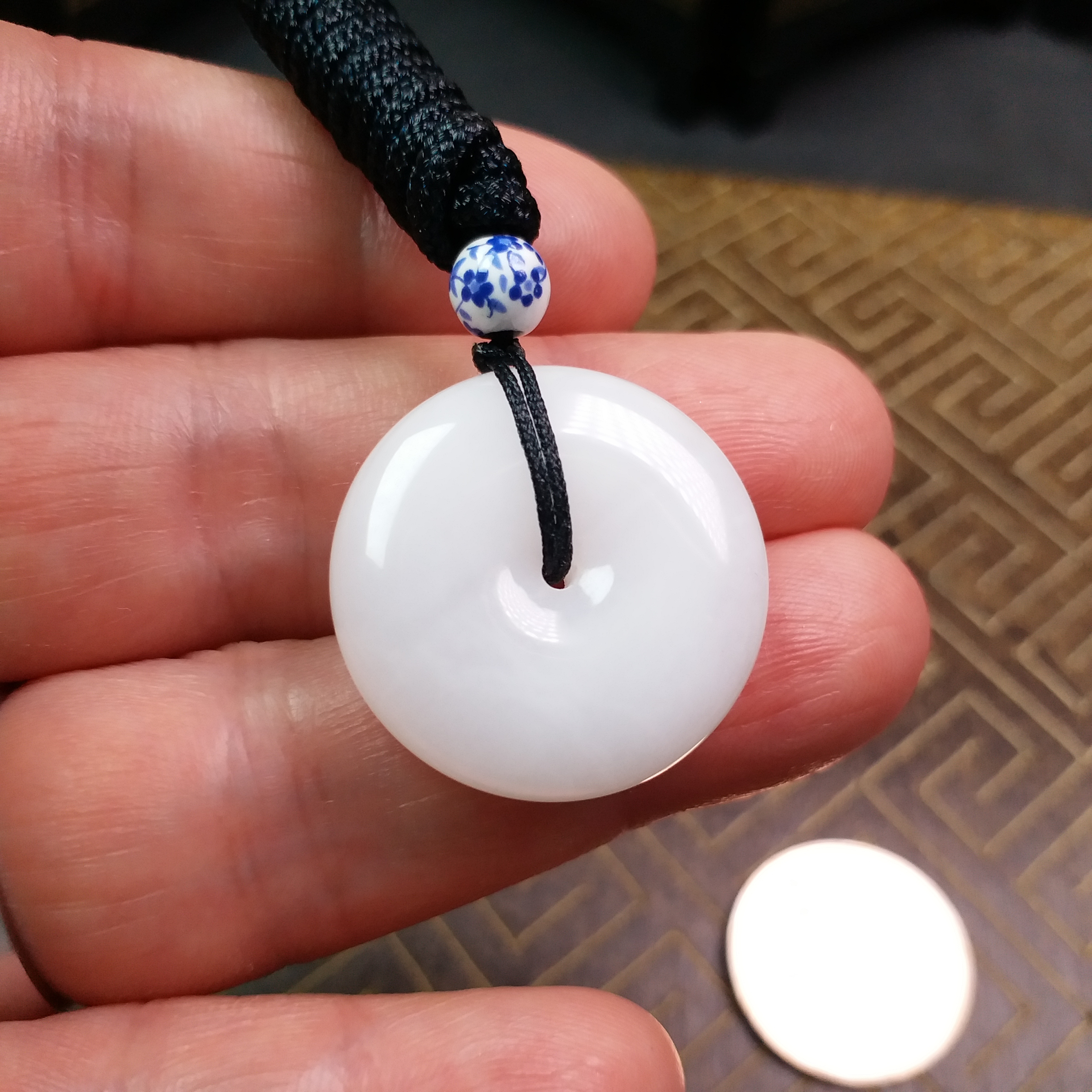 • 和田玉脂白平安扣 (25.2mm直徑), 天然和田玉軟玉