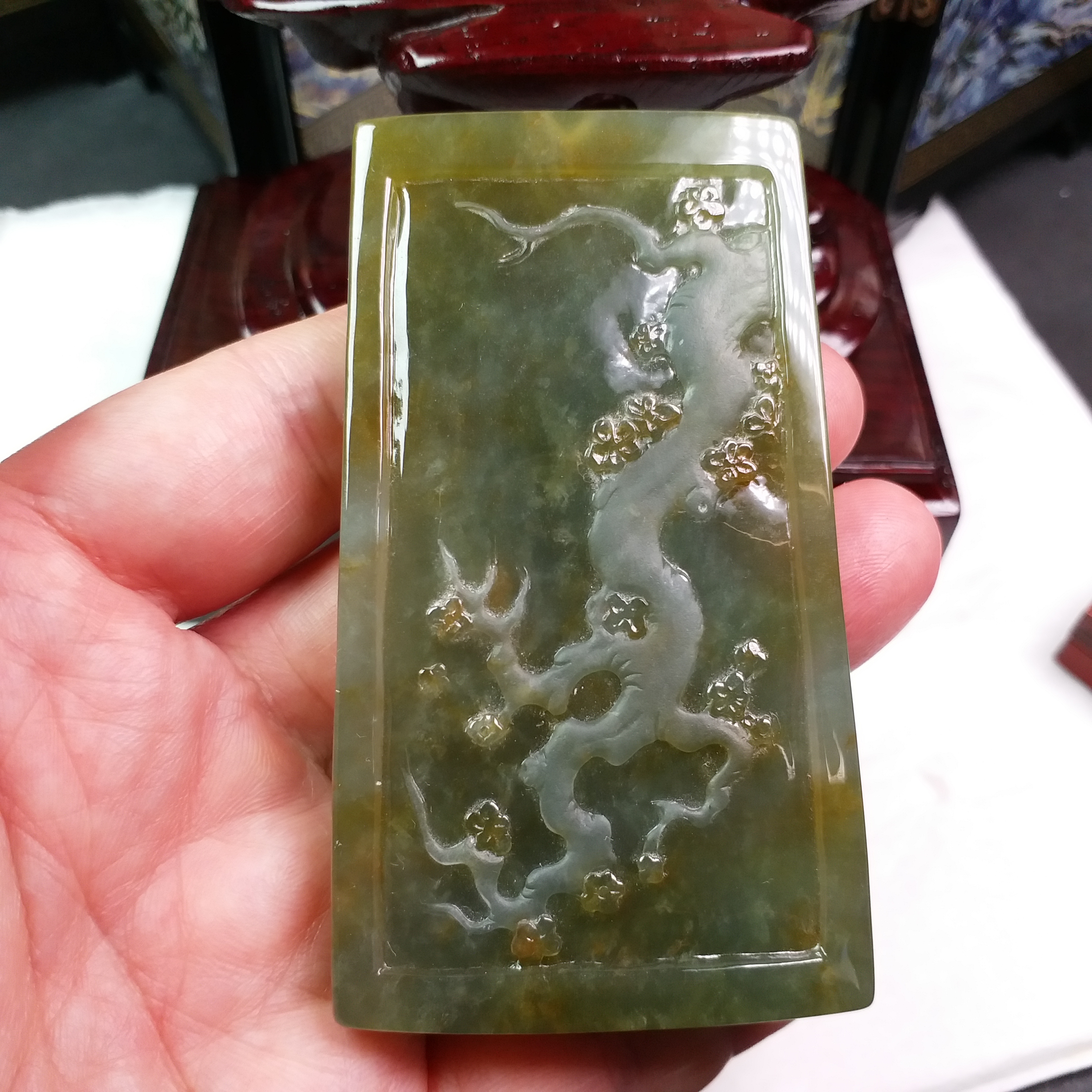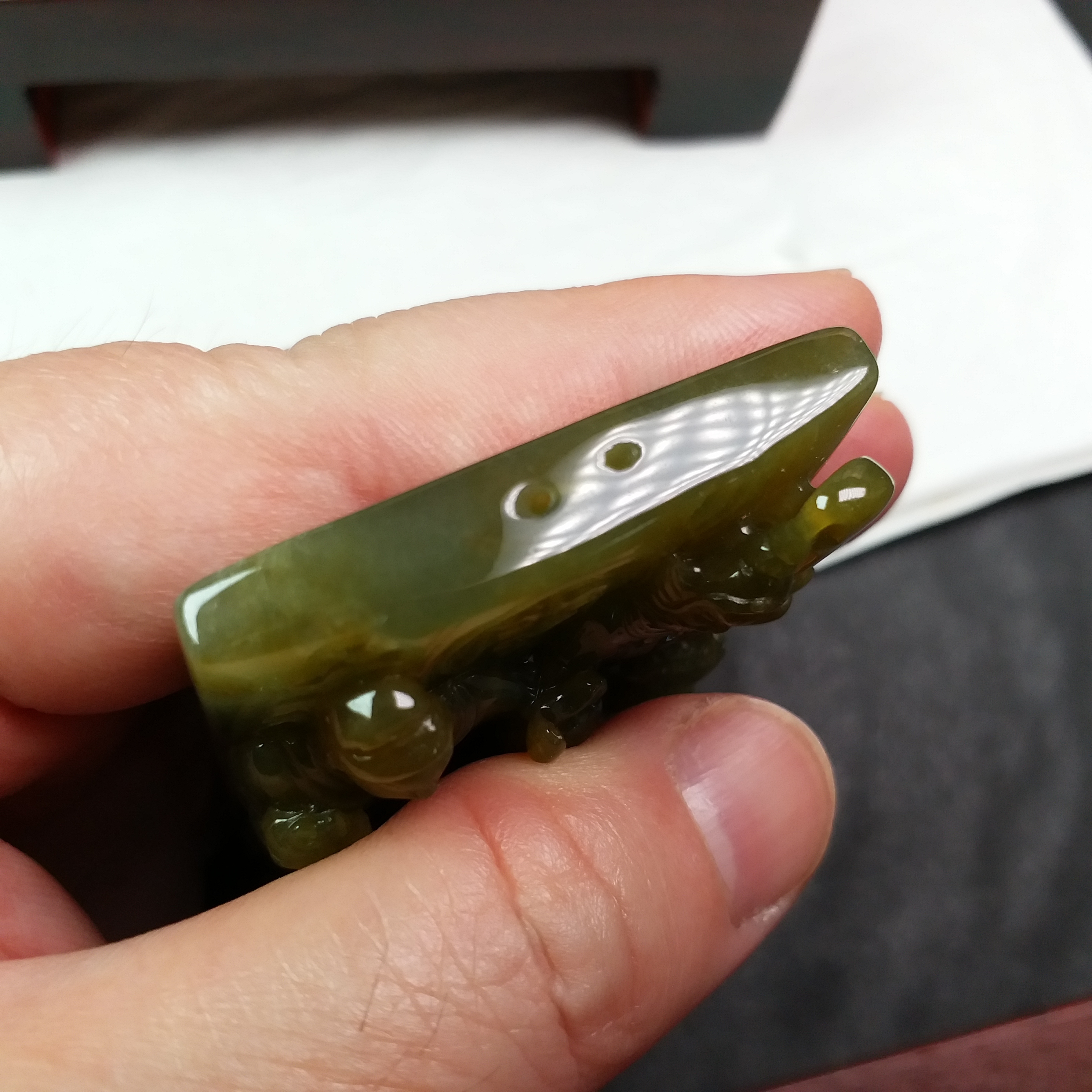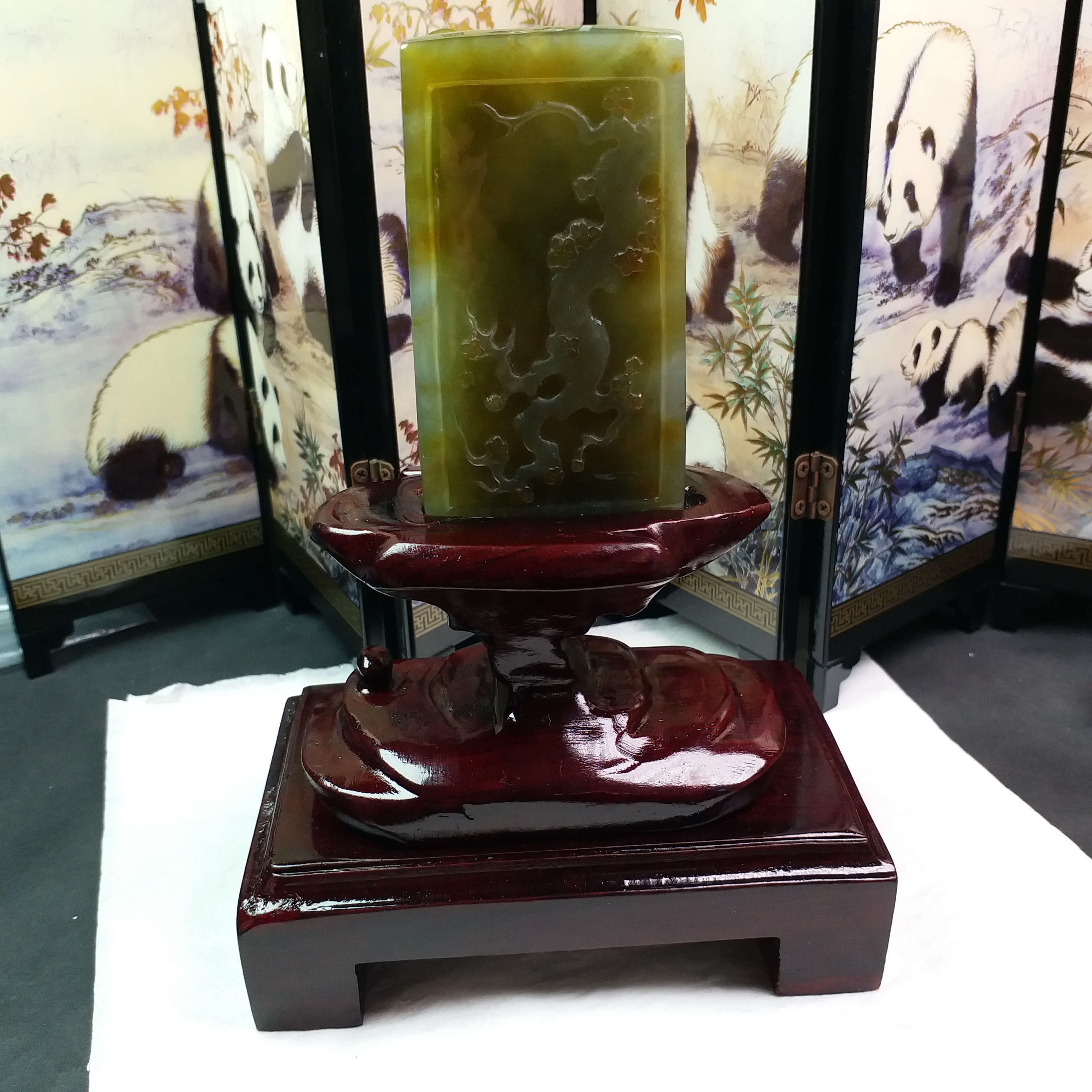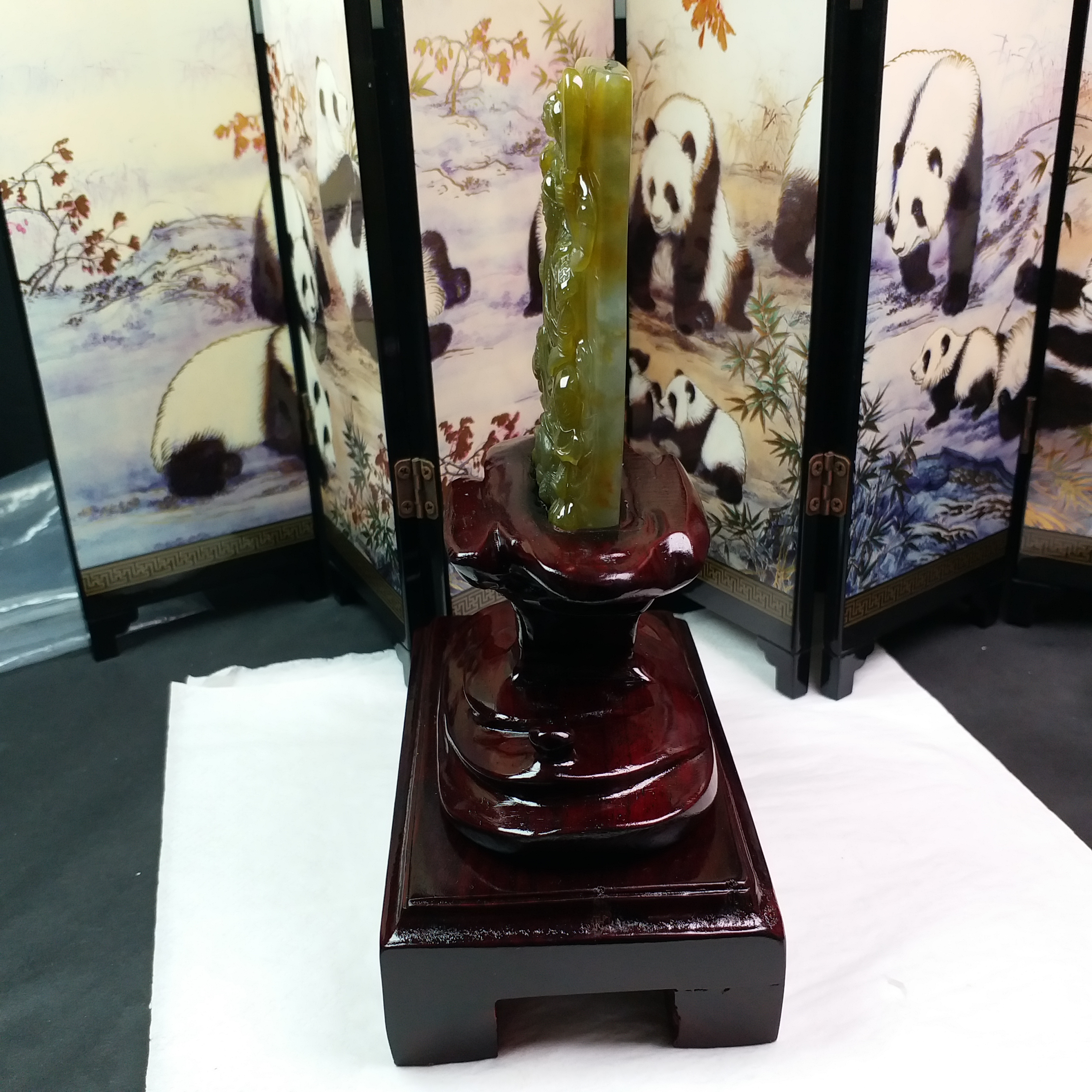 天然翡翠A玉大師級傑作!全手工雕刻,厚庄,完美無紋裂,配檀木底座。