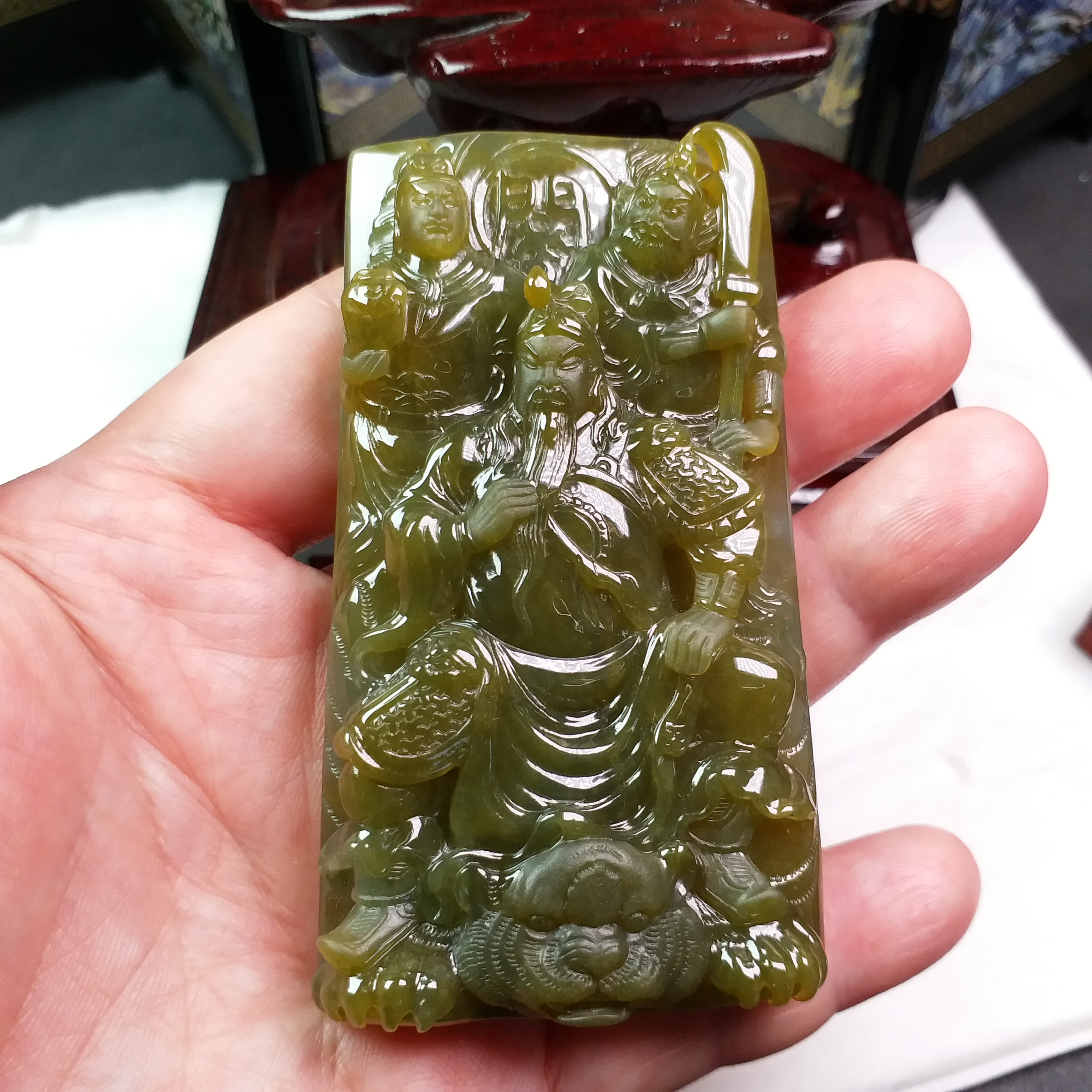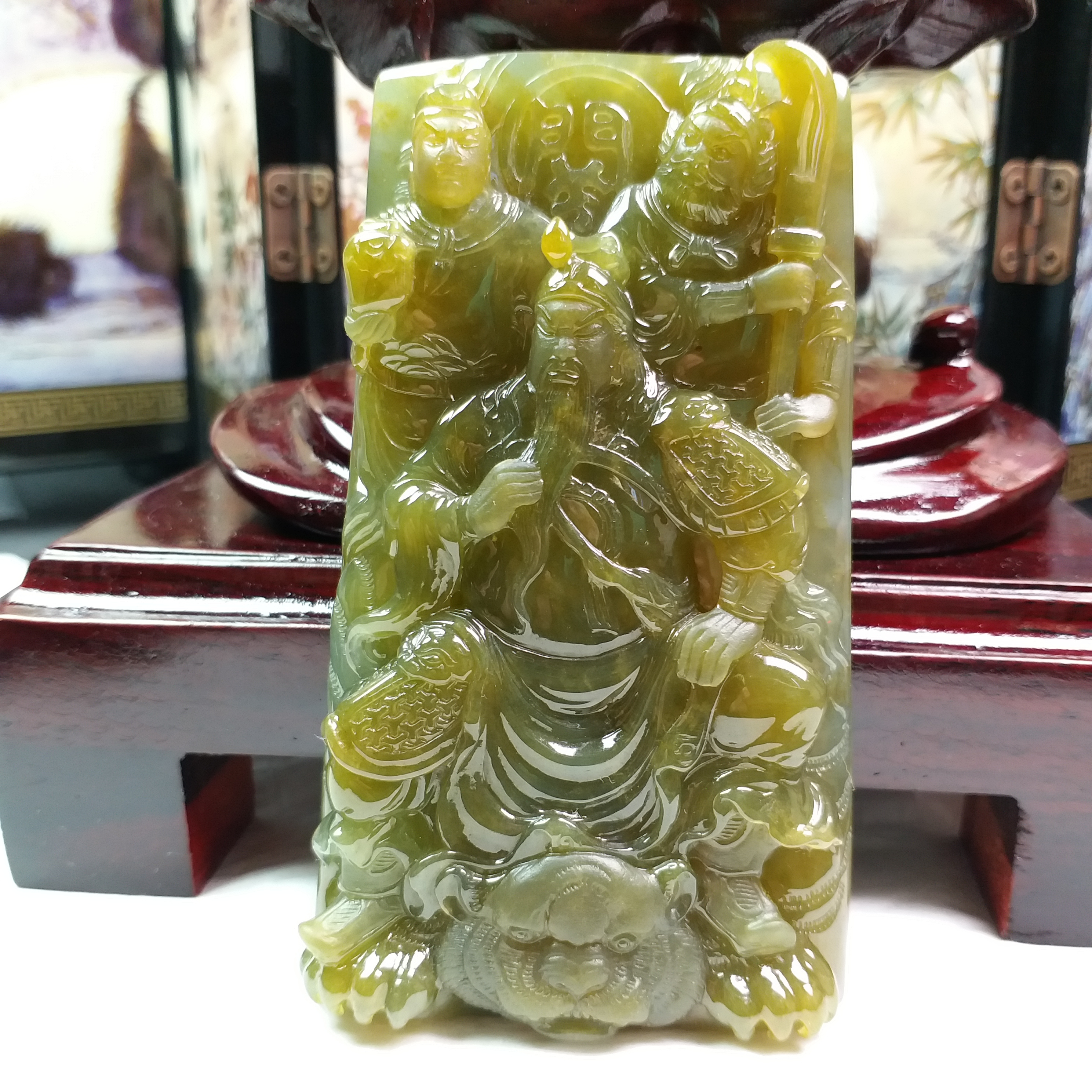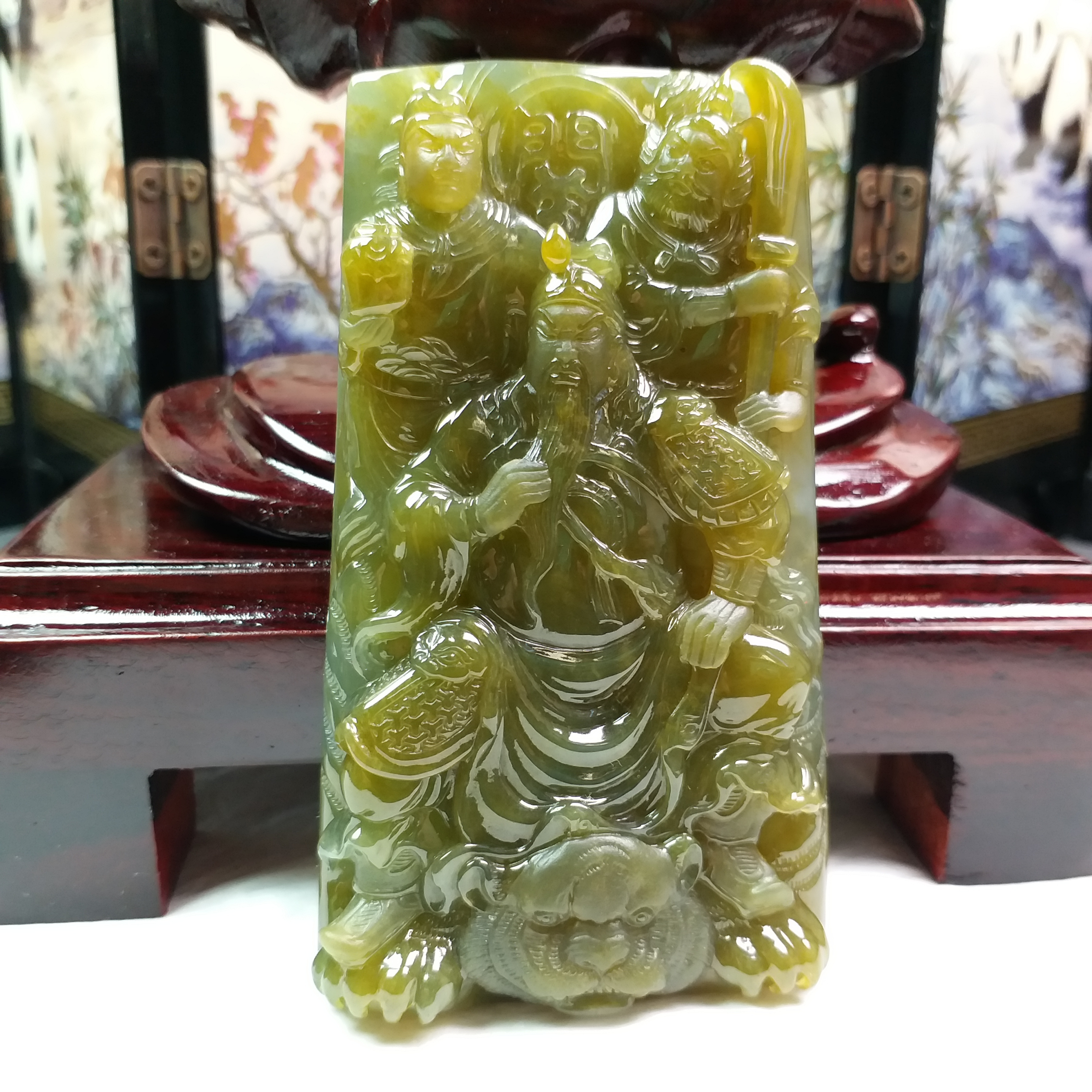 • 關公與關平、周倉, 天然翡翠A玉, 緬甸玉, Jade, Jadeite