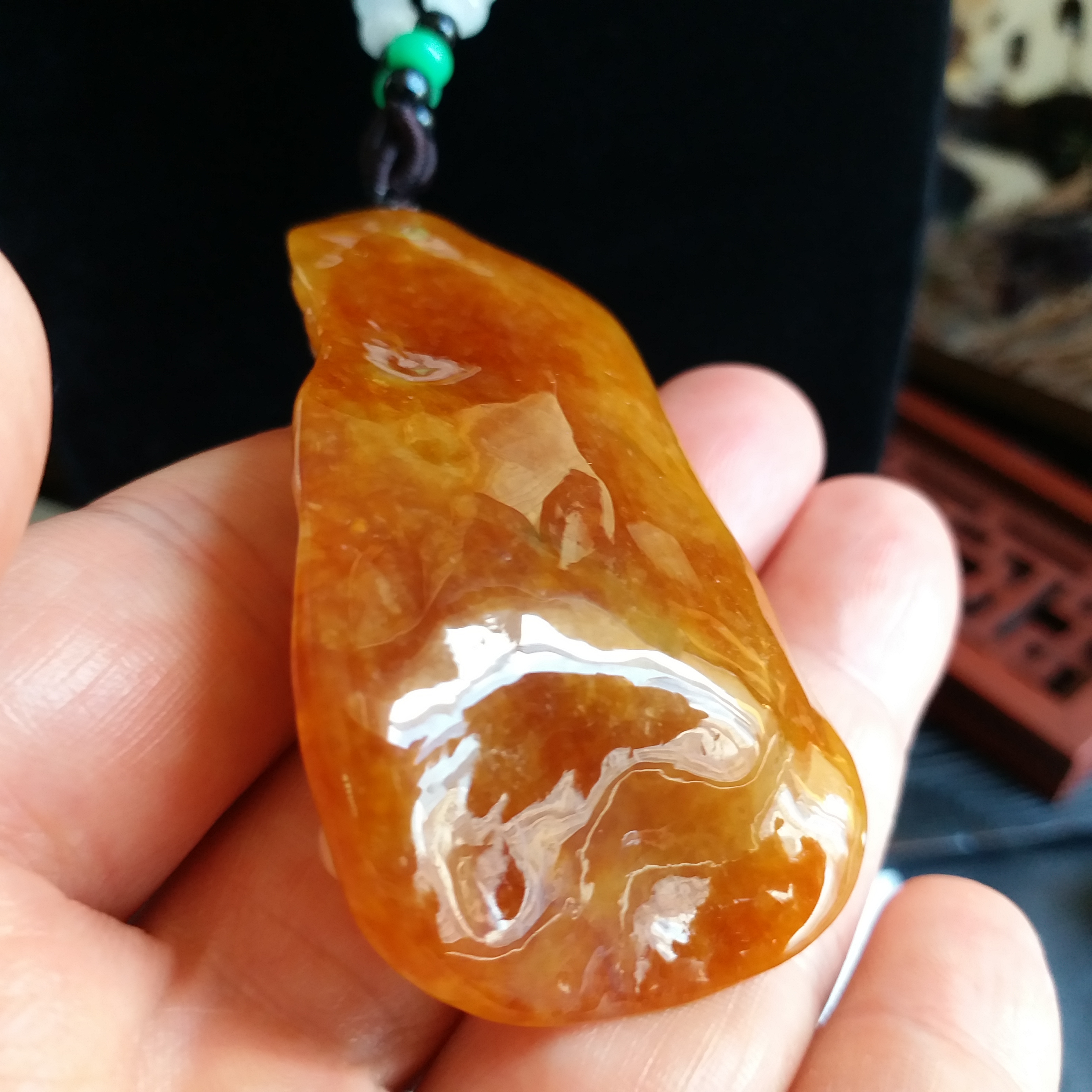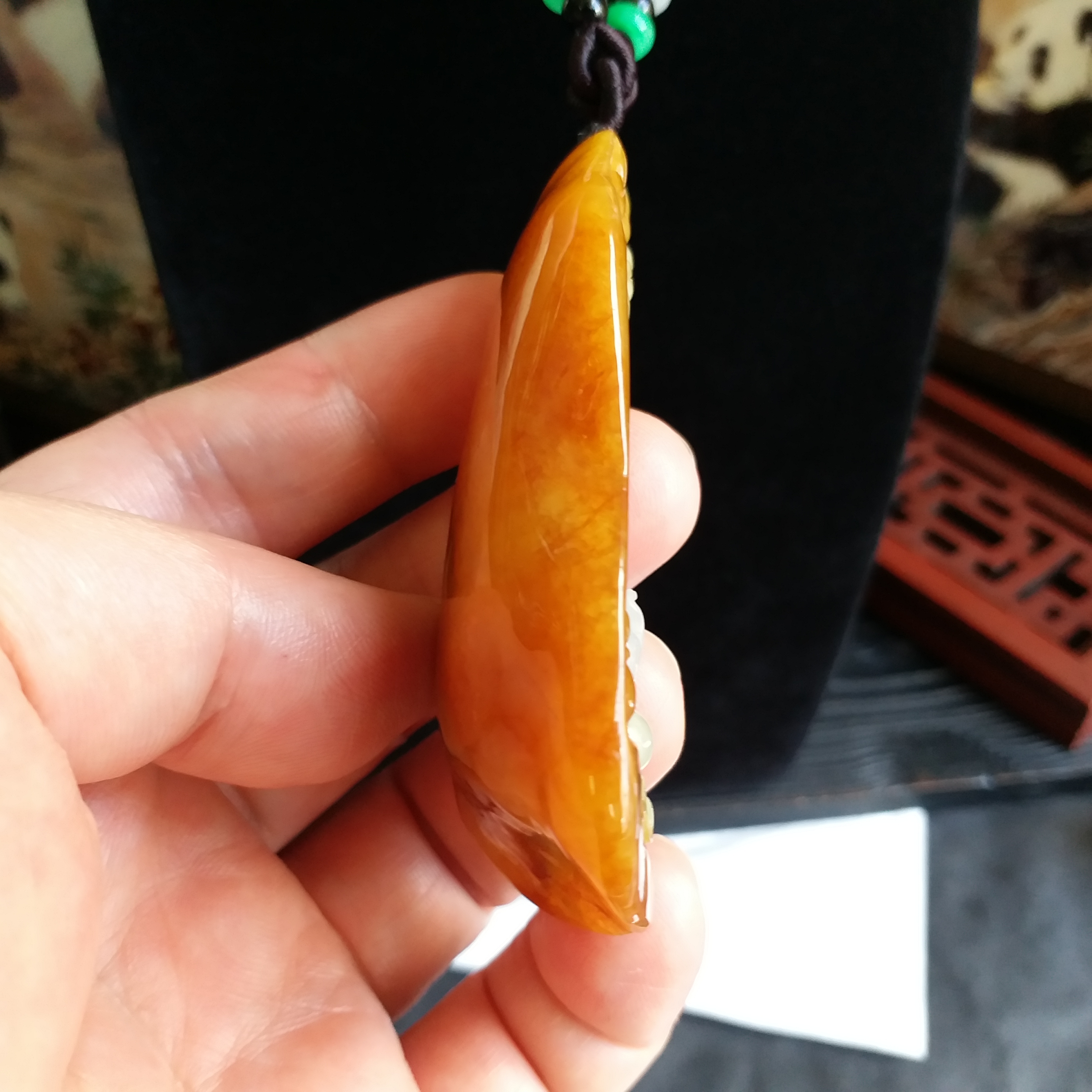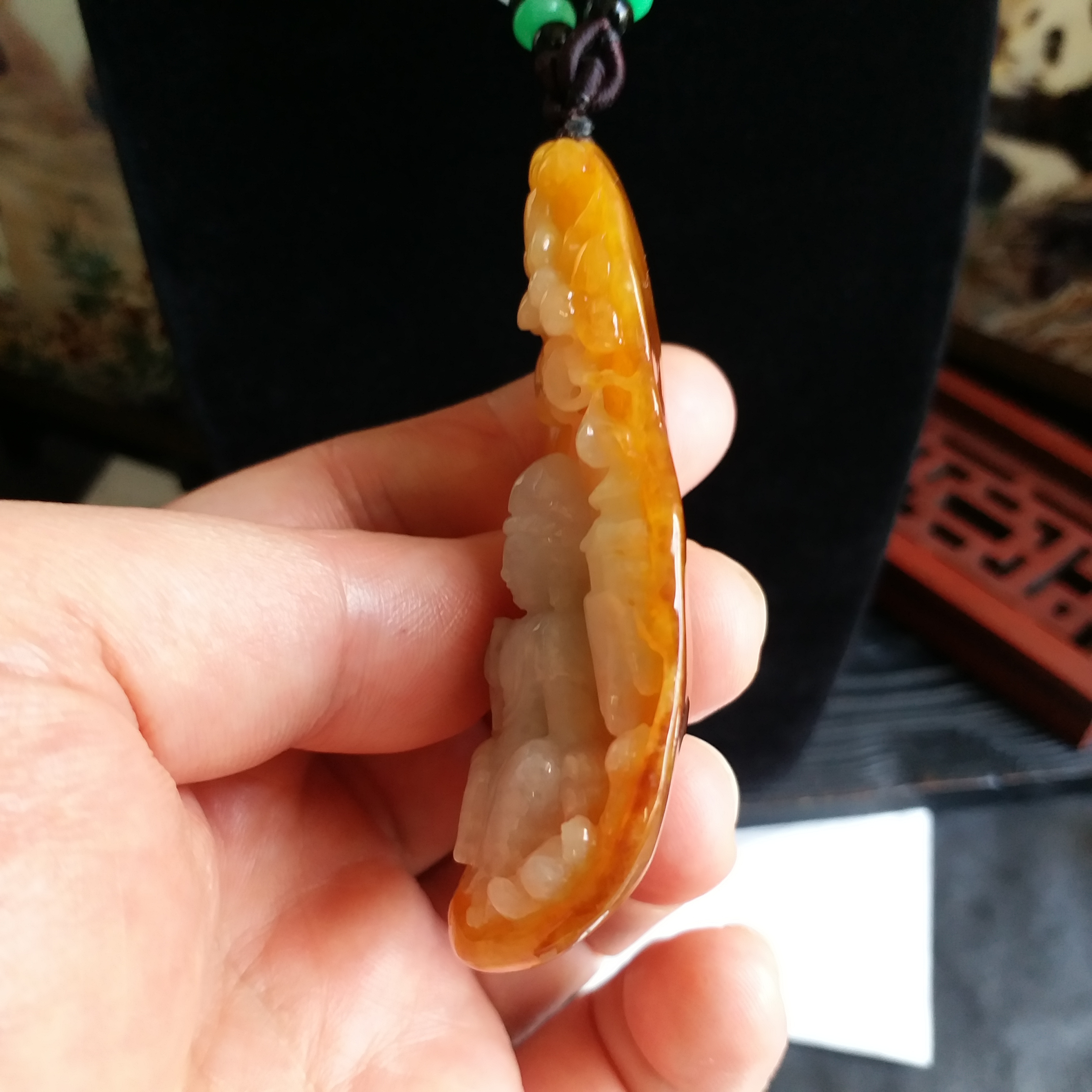 天然翡翠黃翡,雙色,全手工雕,巧雕,雕工仔細。完美無紋裂。