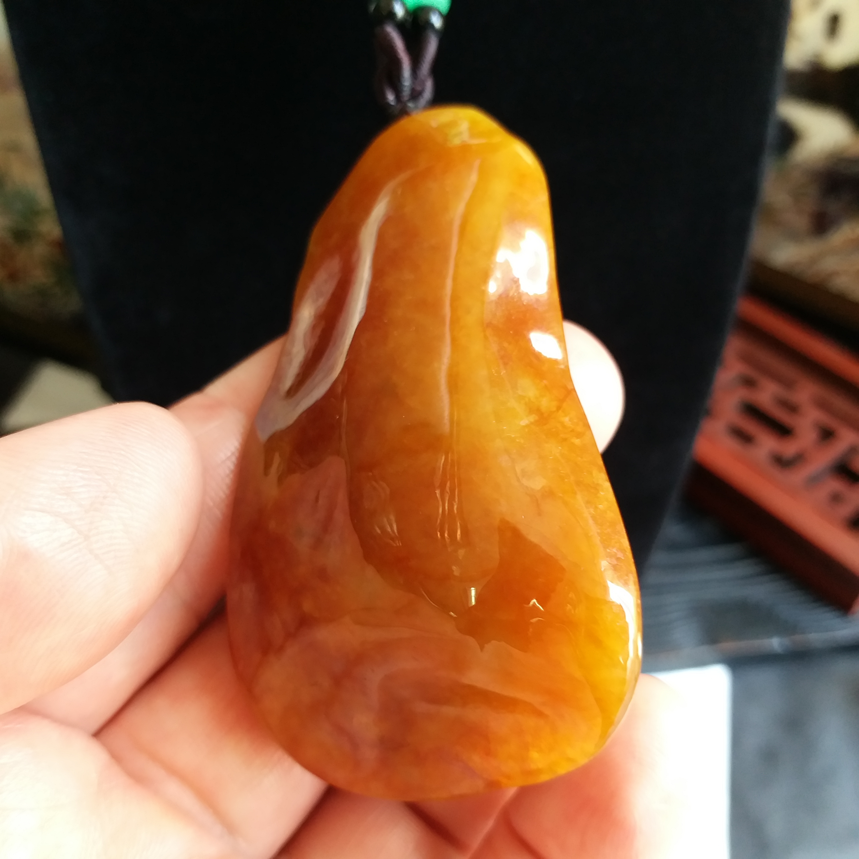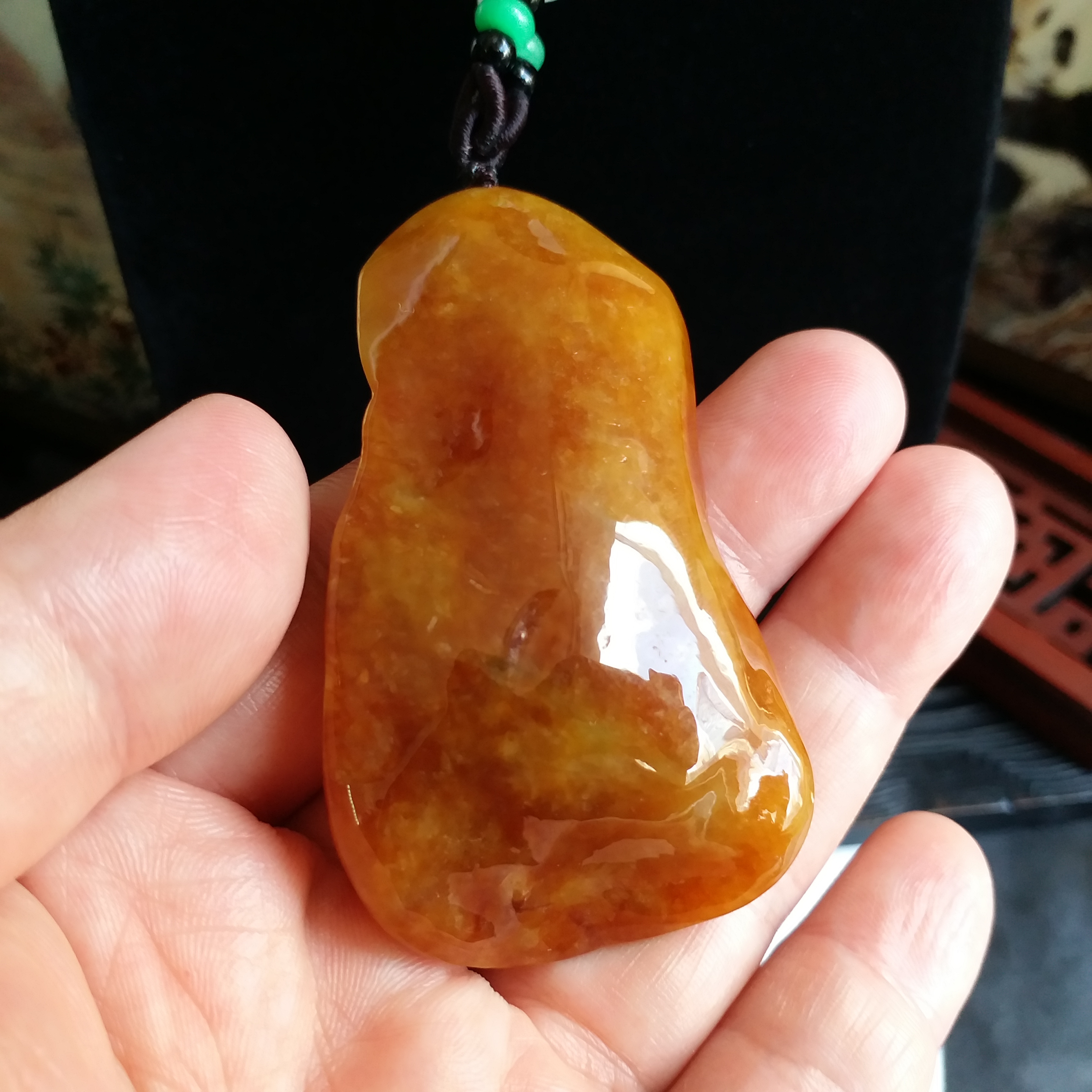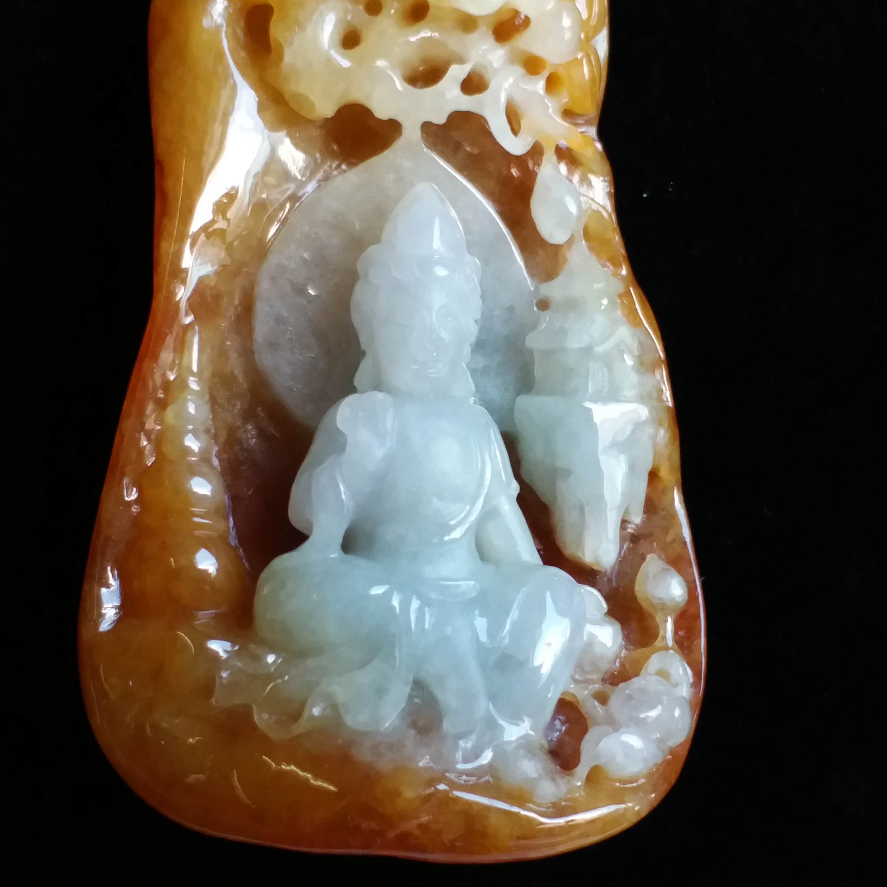 天然翡翠黃翡,雙色,全手工雕,巧雕,雕工仔細。完美無紋裂。