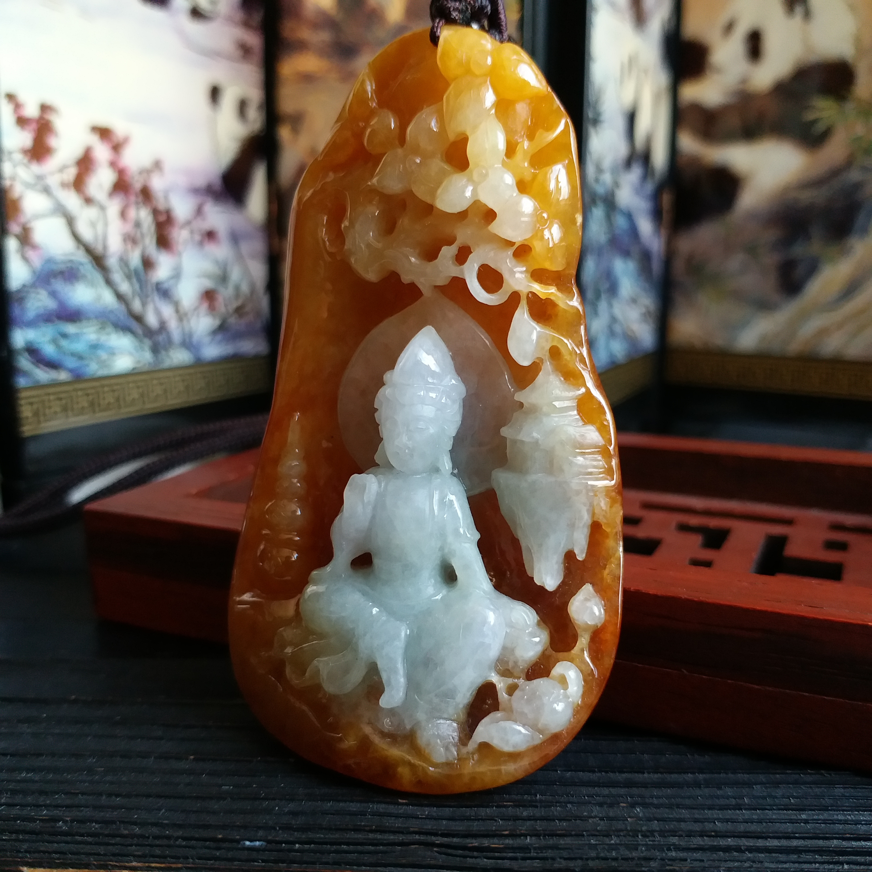 • 黃翡觀音, 天然翡翠A玉, 緬甸玉, Jade, Jadeite