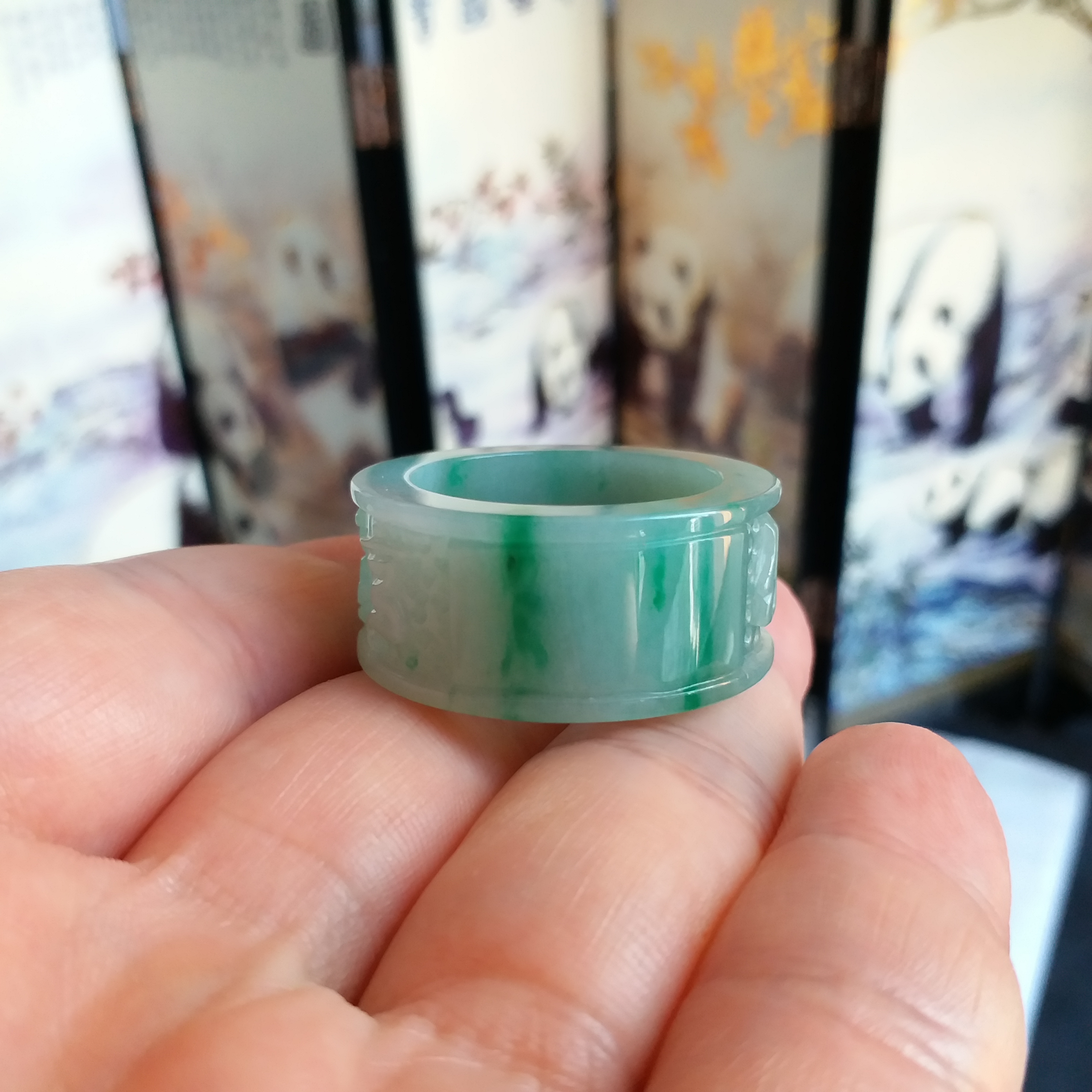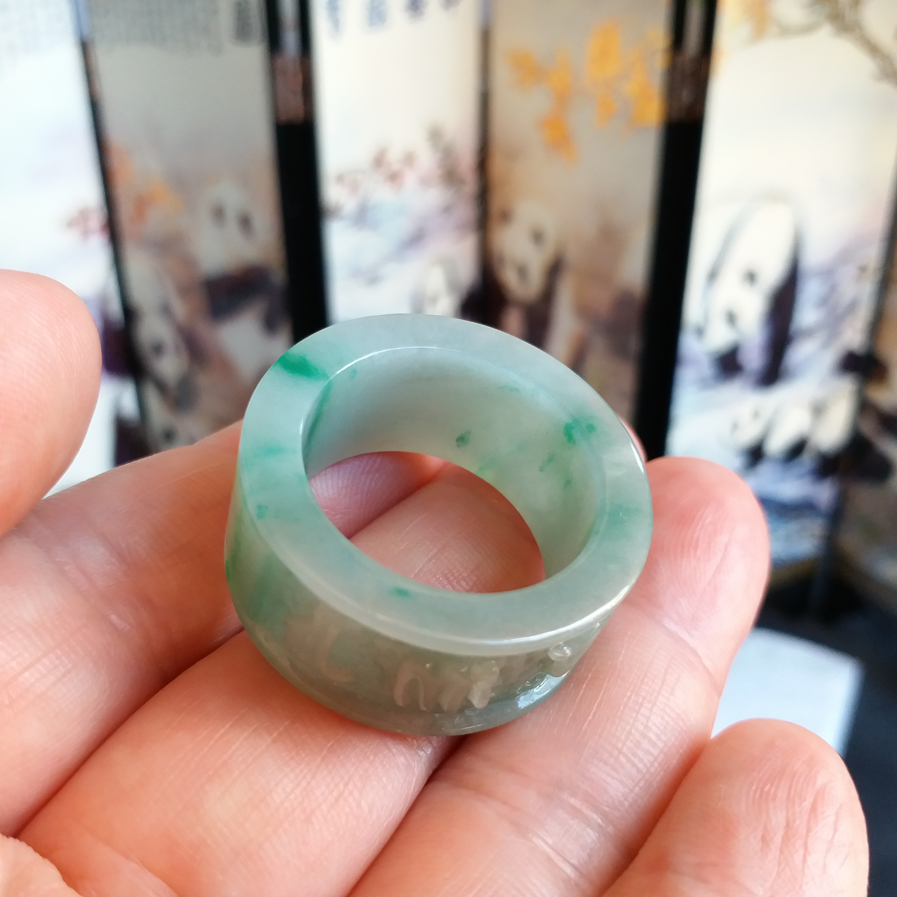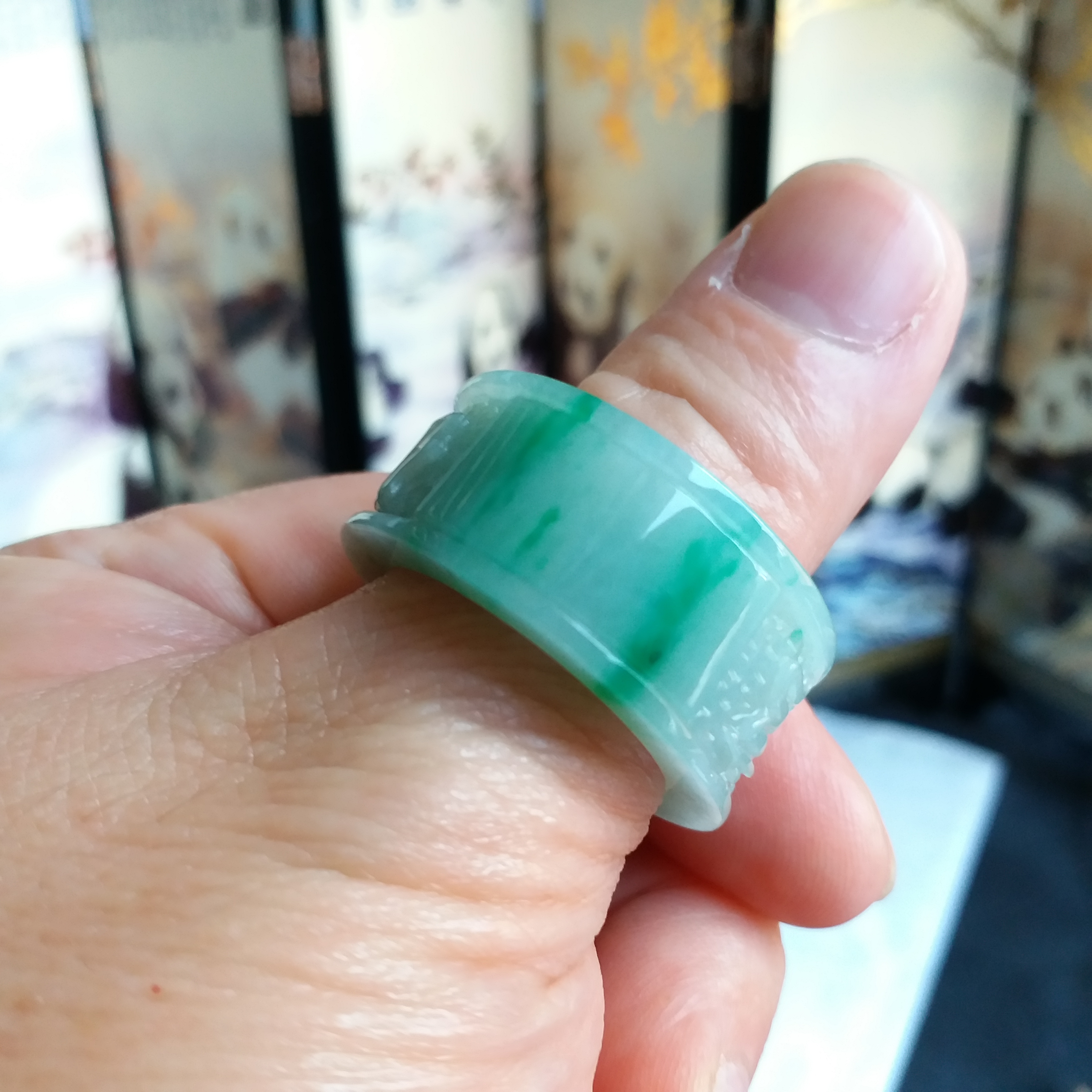 J1913 飄辣綠六字真言扳指