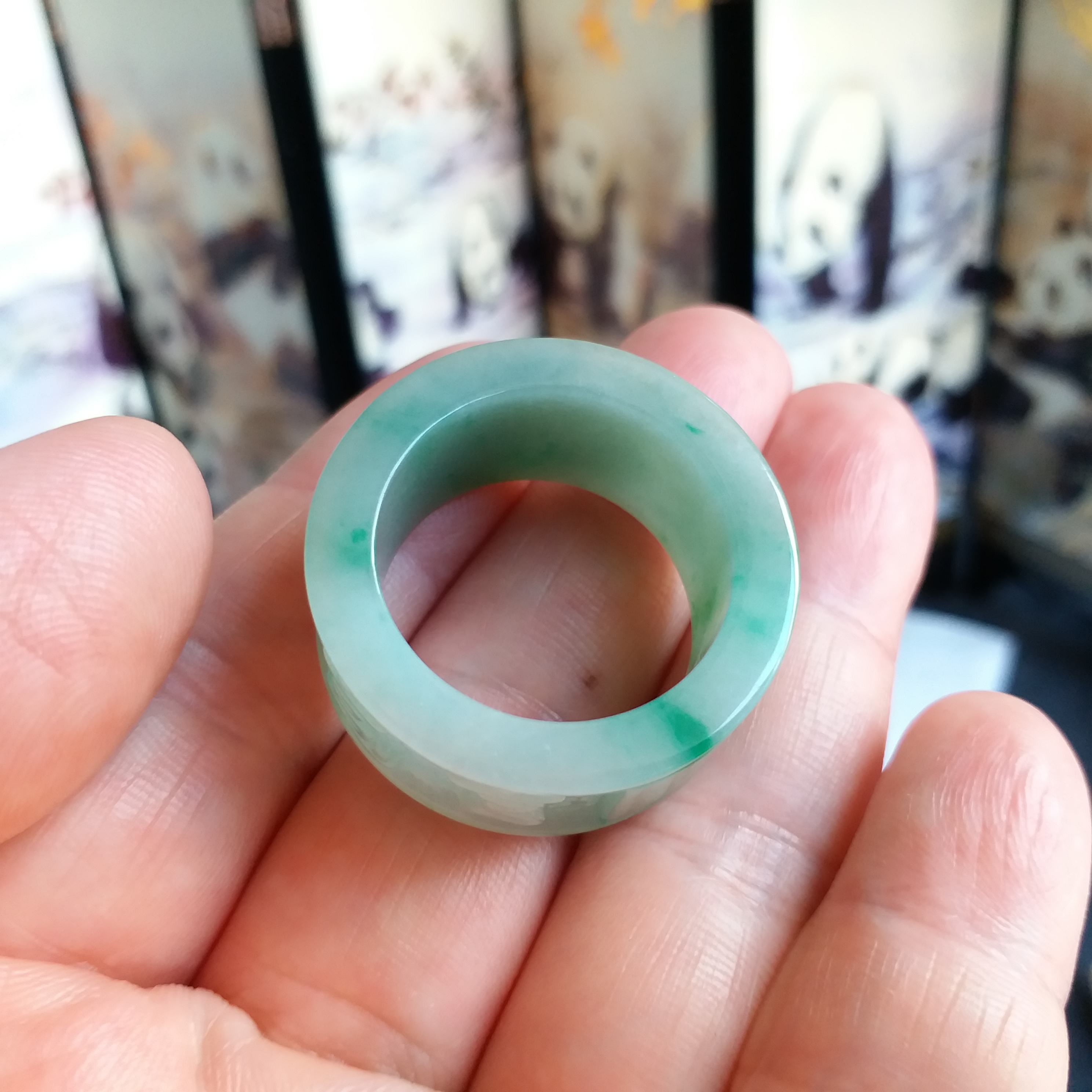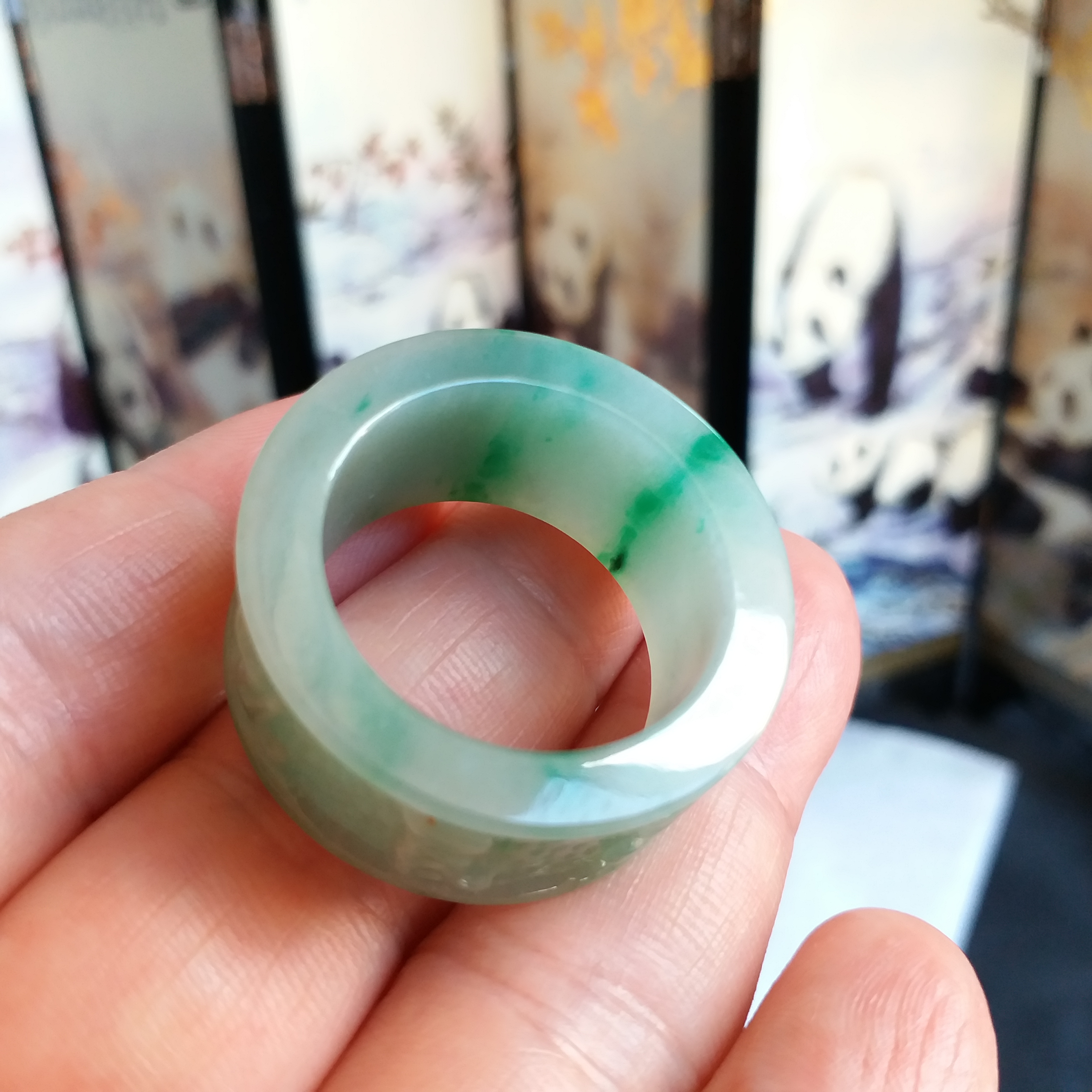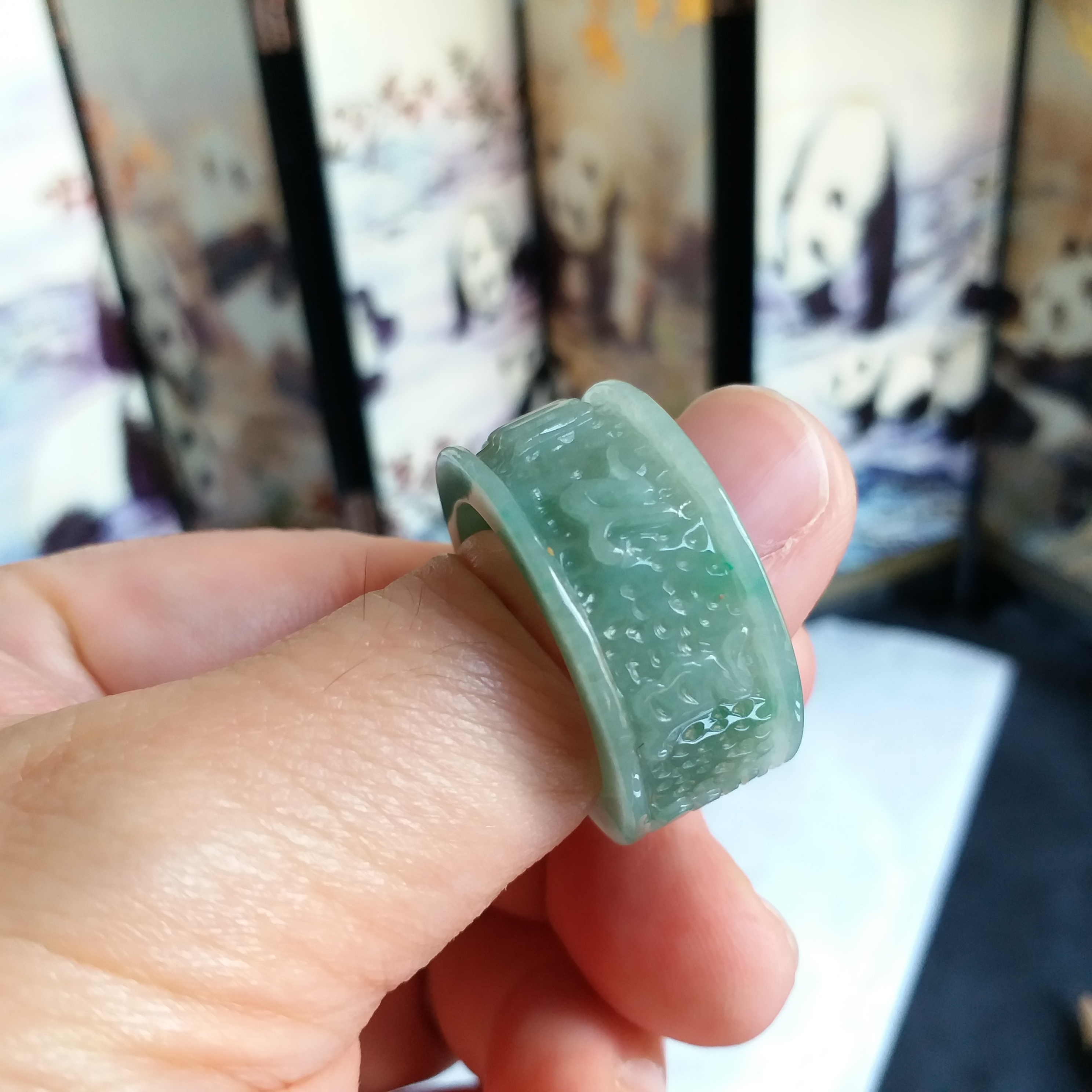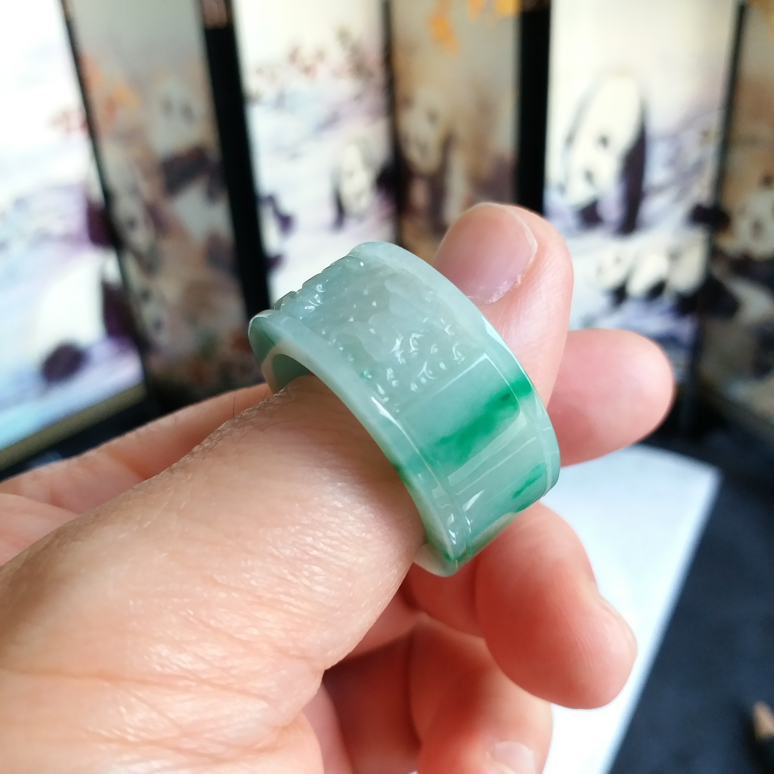 J1913 飄辣綠六字真言扳指
