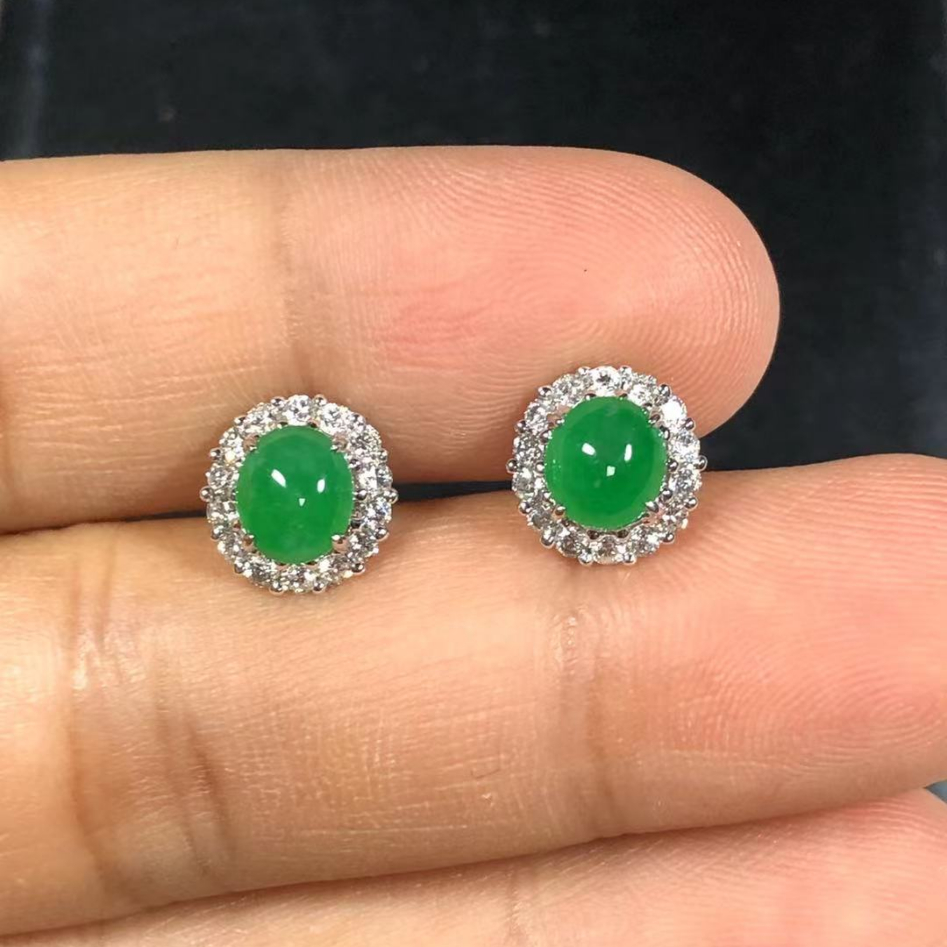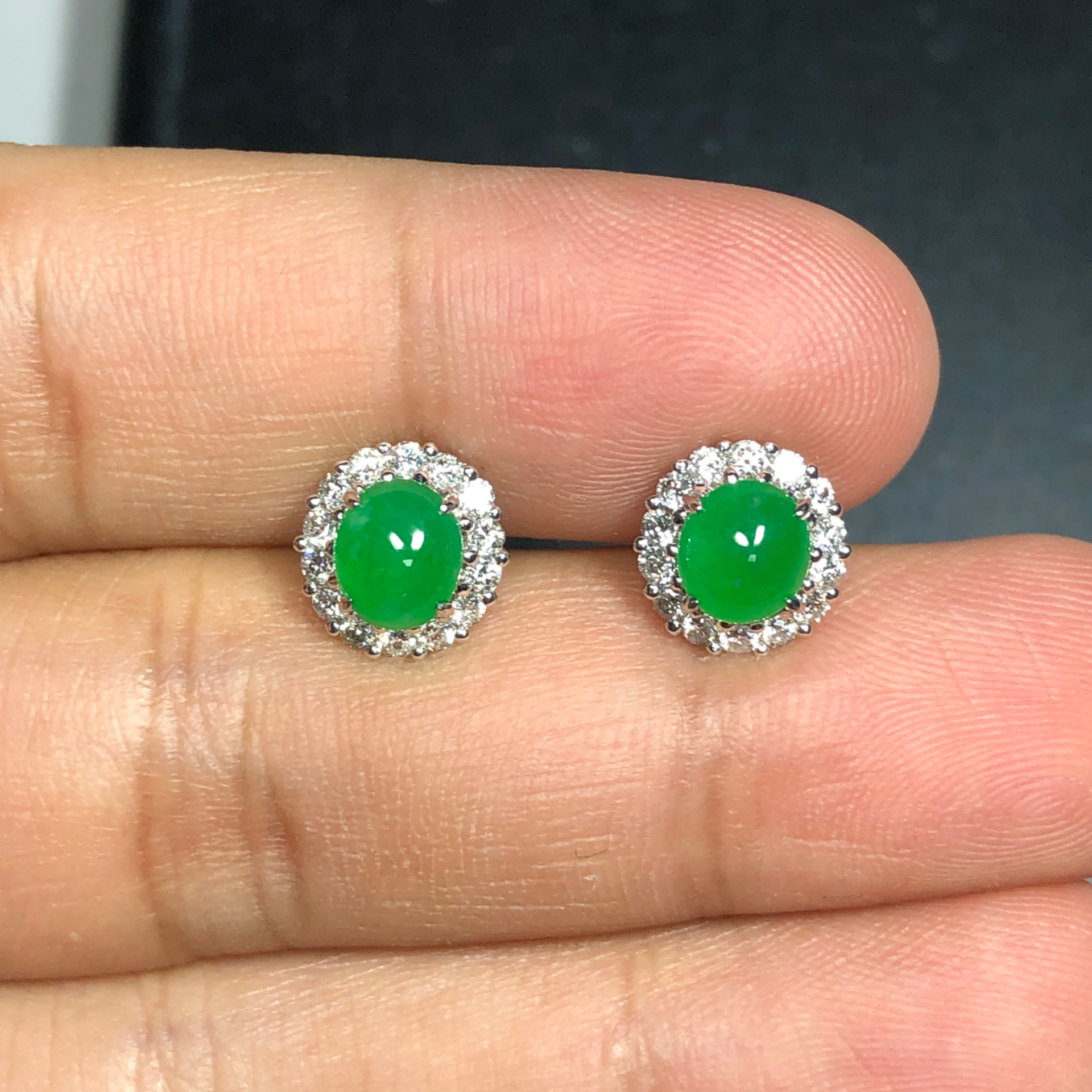 天然翡翠A玉,色陽、艷麗,種好,起光,鑲18K金配鑽