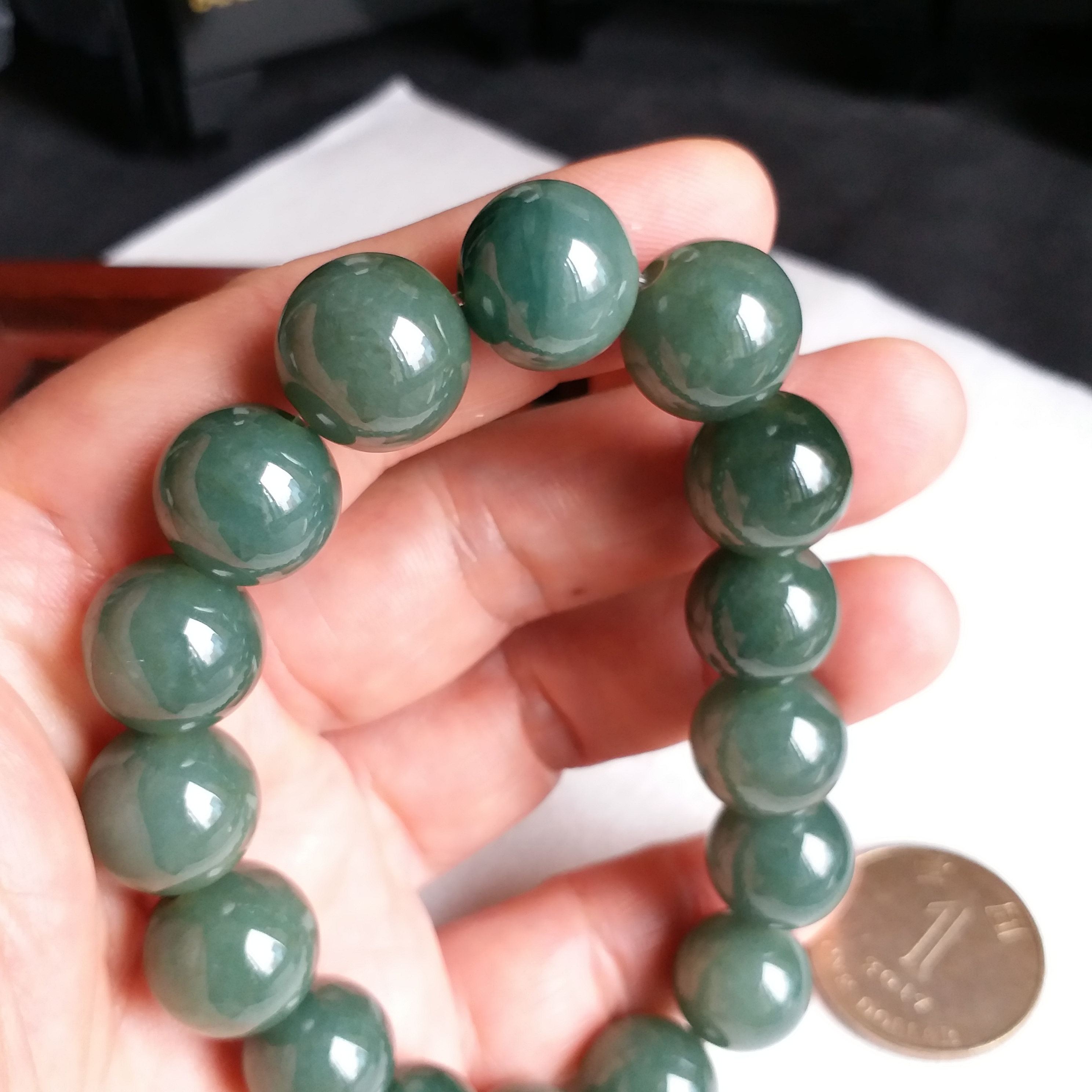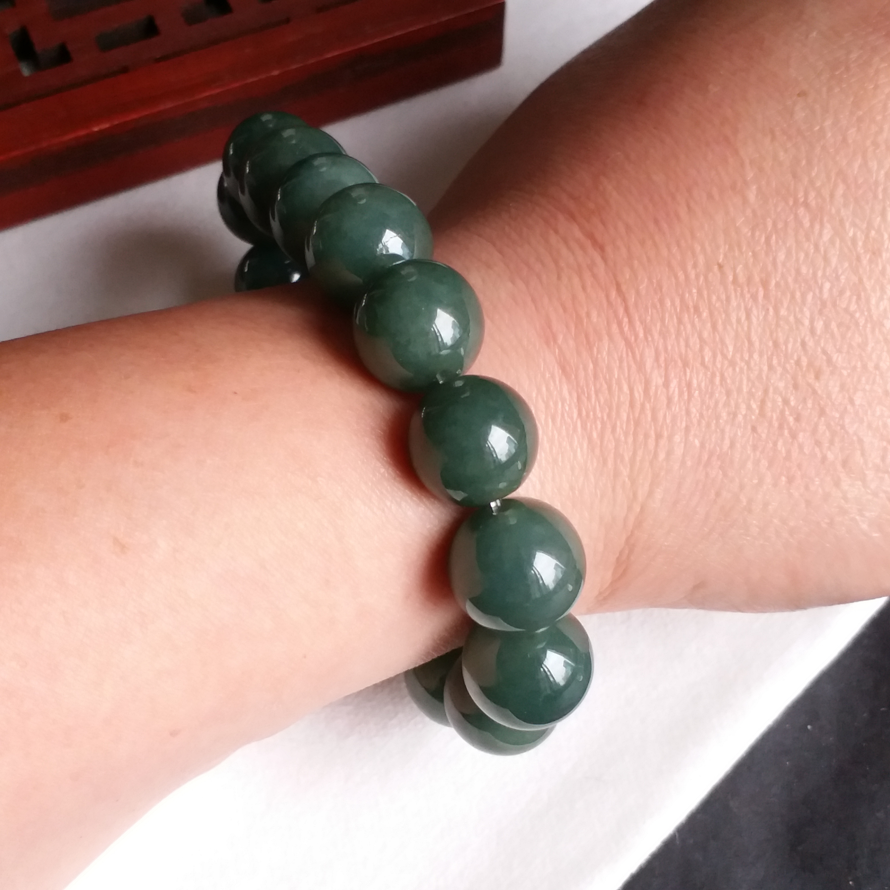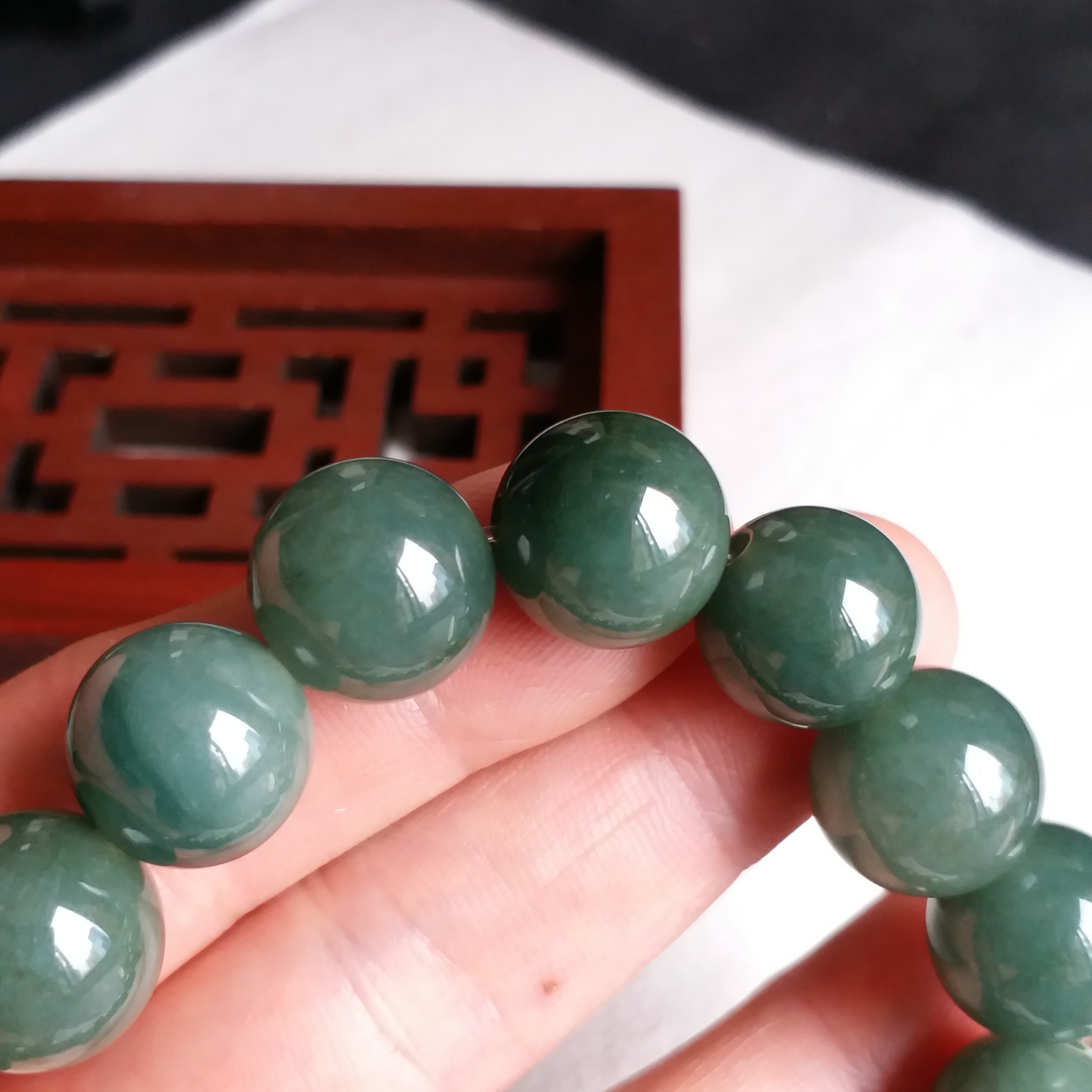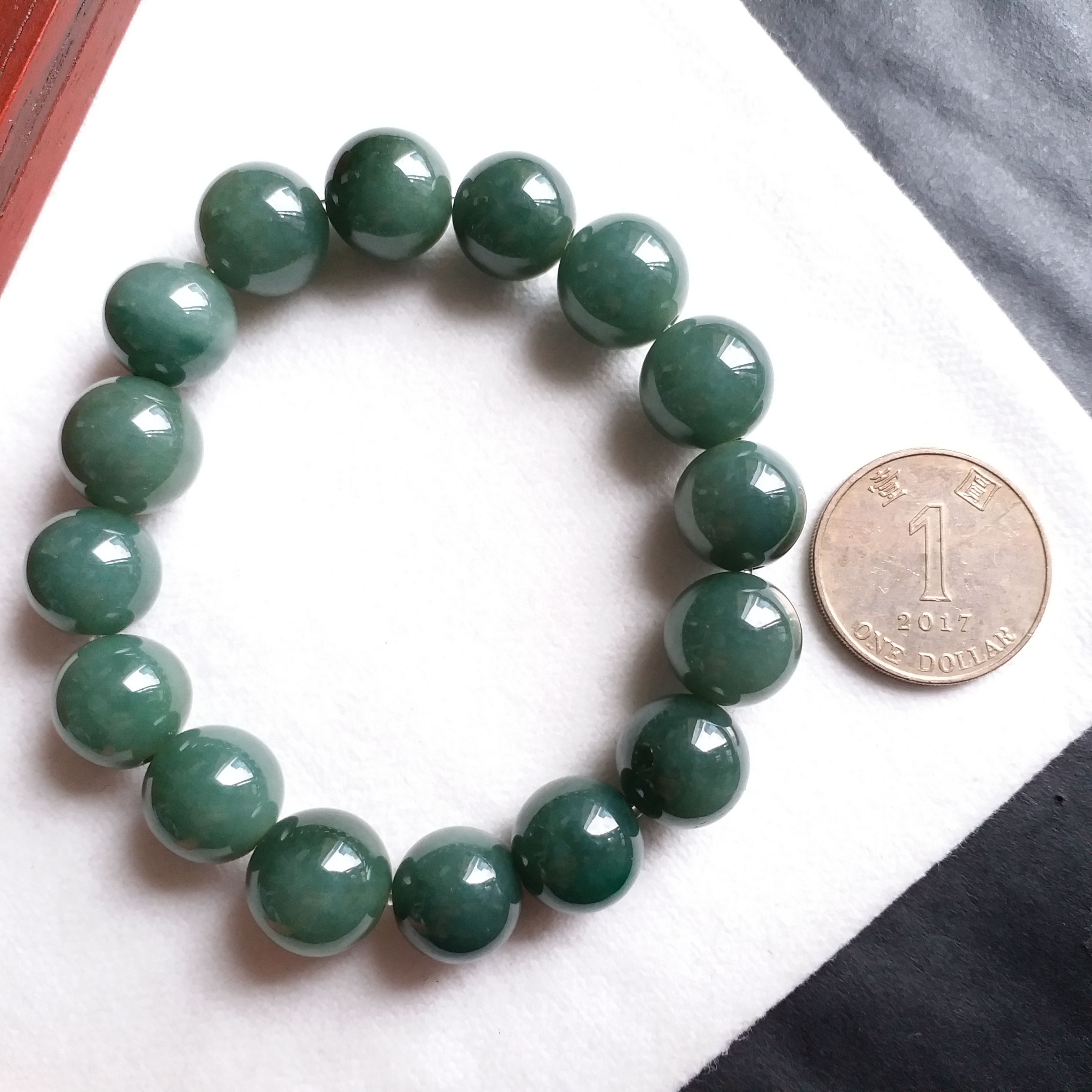 • 冰糯藍水手鍊 (13.5mm直徑), 天然翡翠A玉, 緬甸玉, Jade, Jadeite