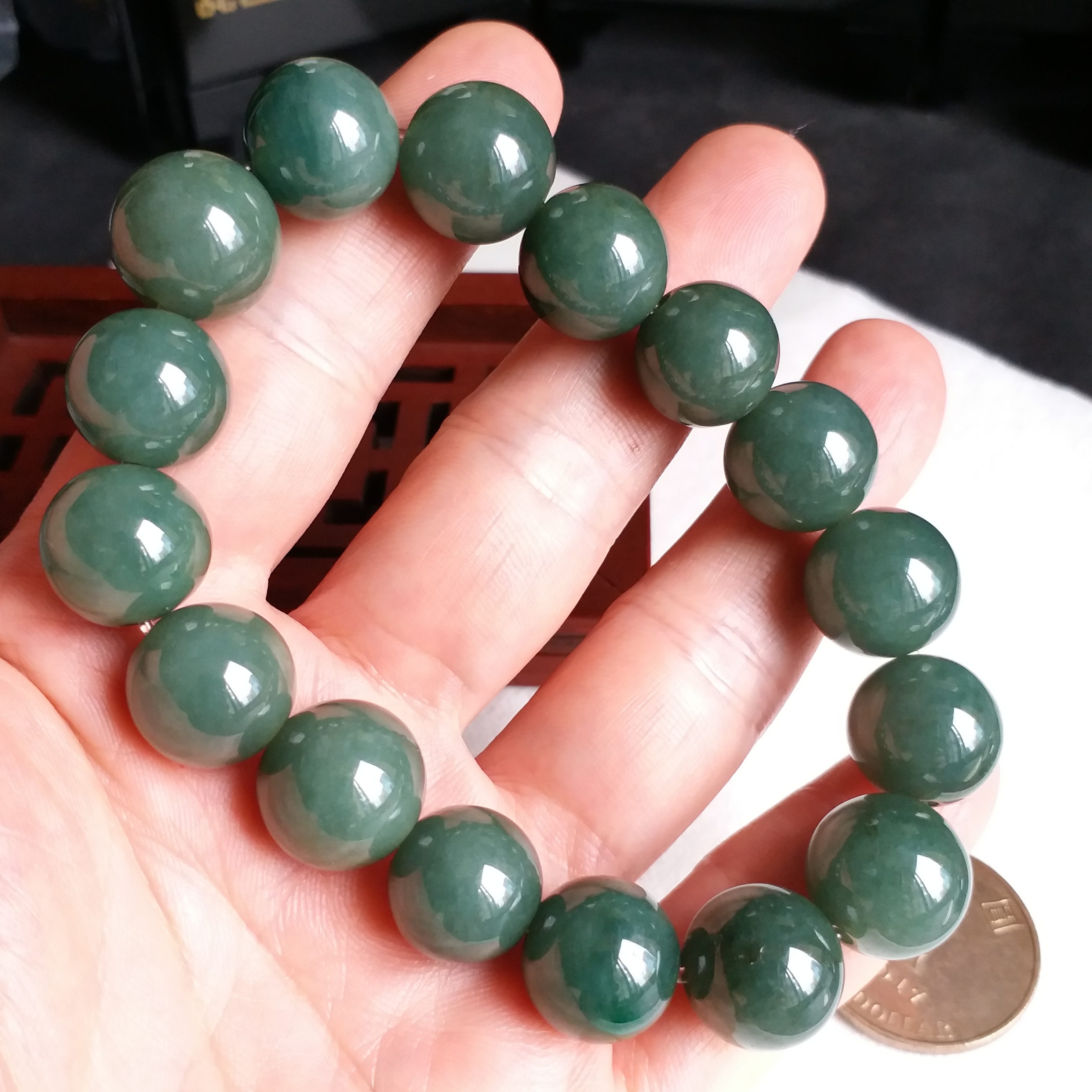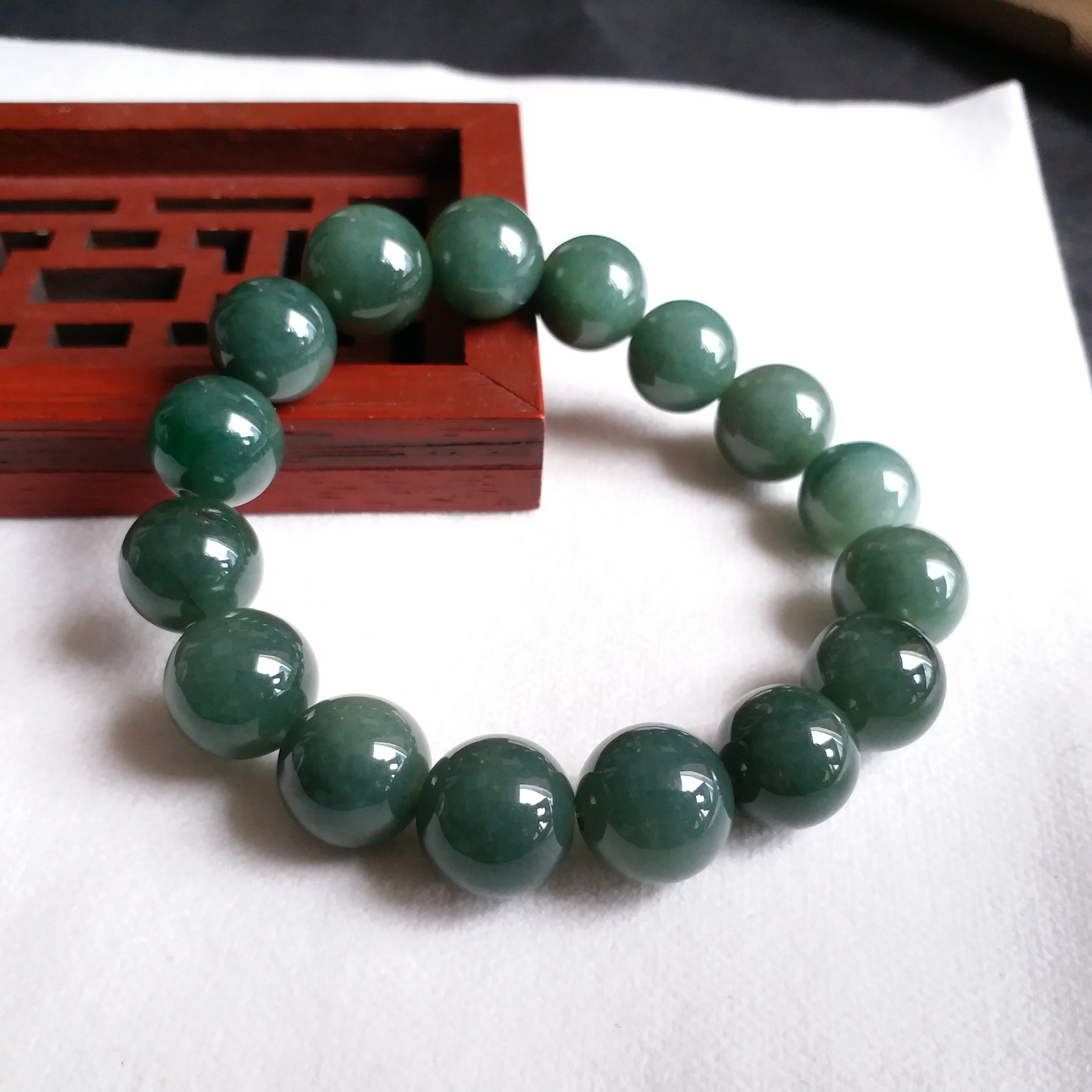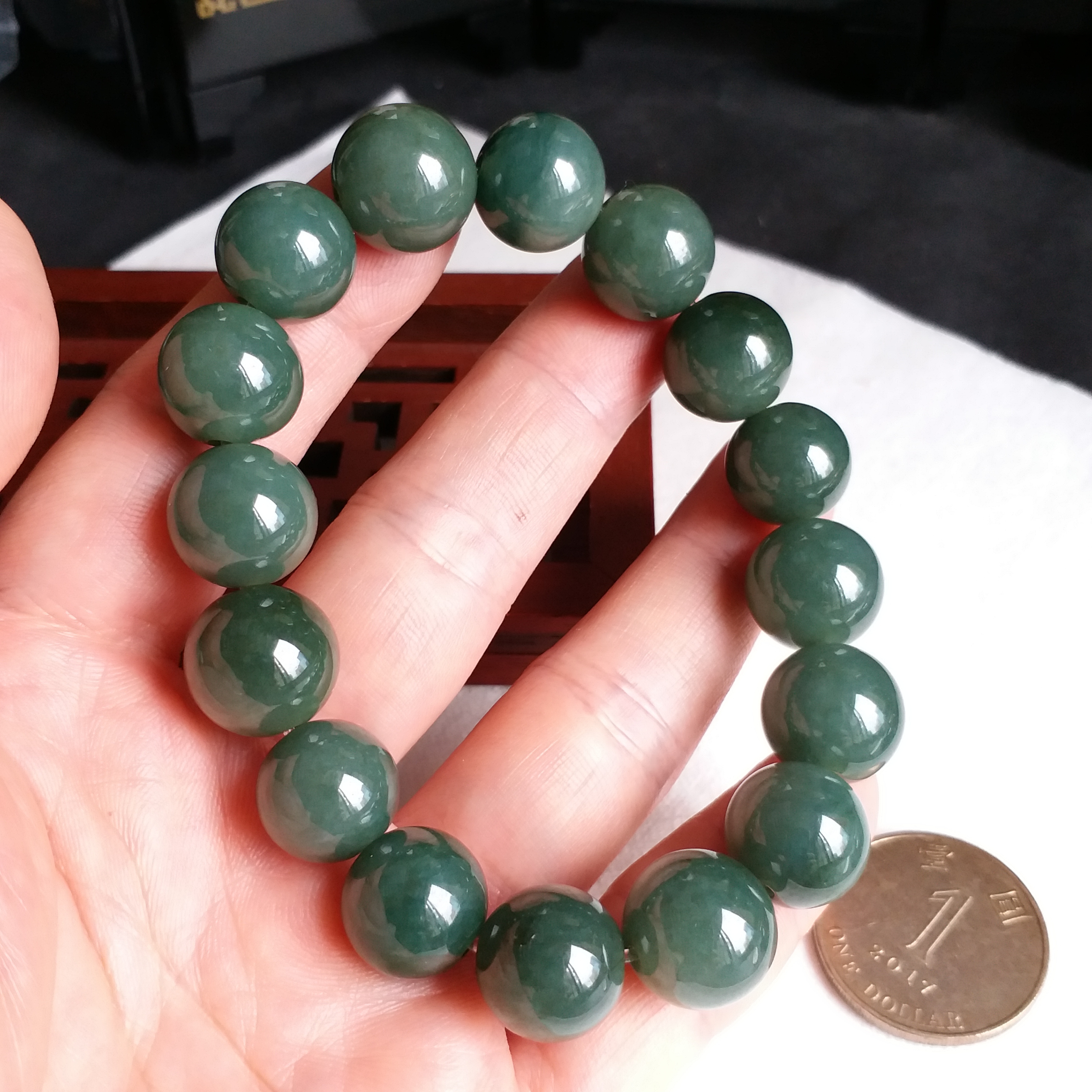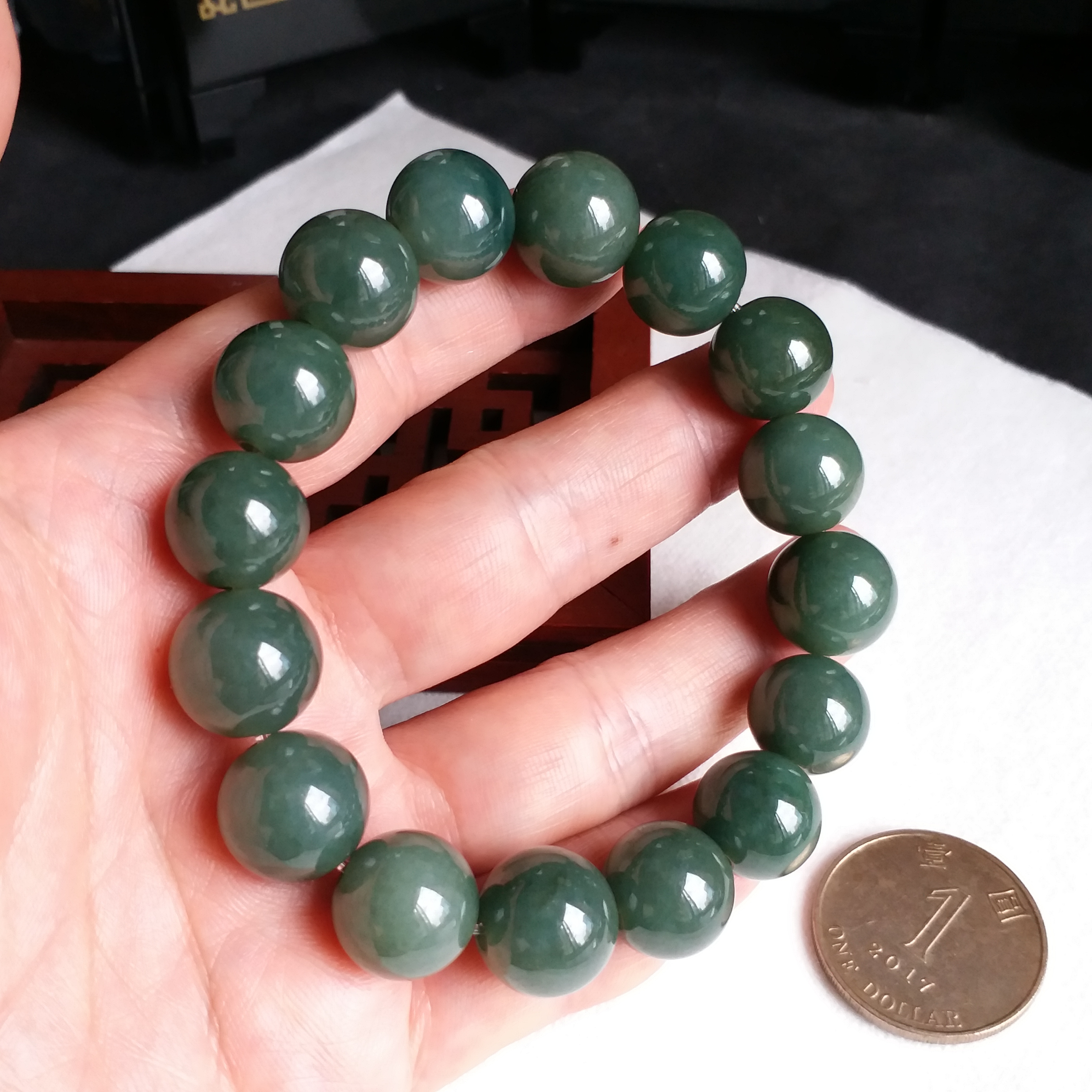 • 冰糯藍水手鍊 (13.5mm直徑), 天然翡翠A玉, 緬甸玉, Jade, Jadeite