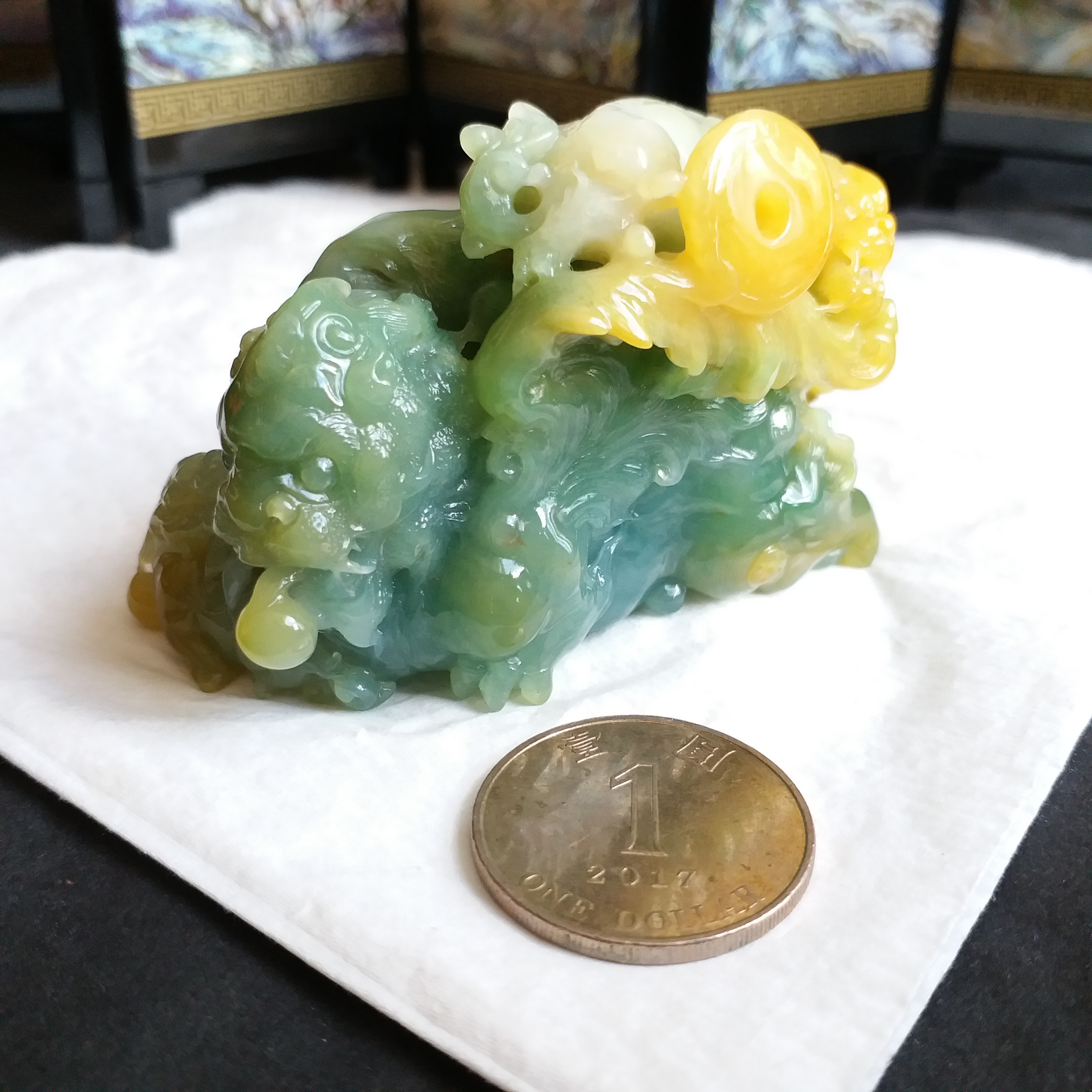 • 三彩飛天貔貅, 天然翡翠A玉, 緬甸玉, Jade, Jadeite