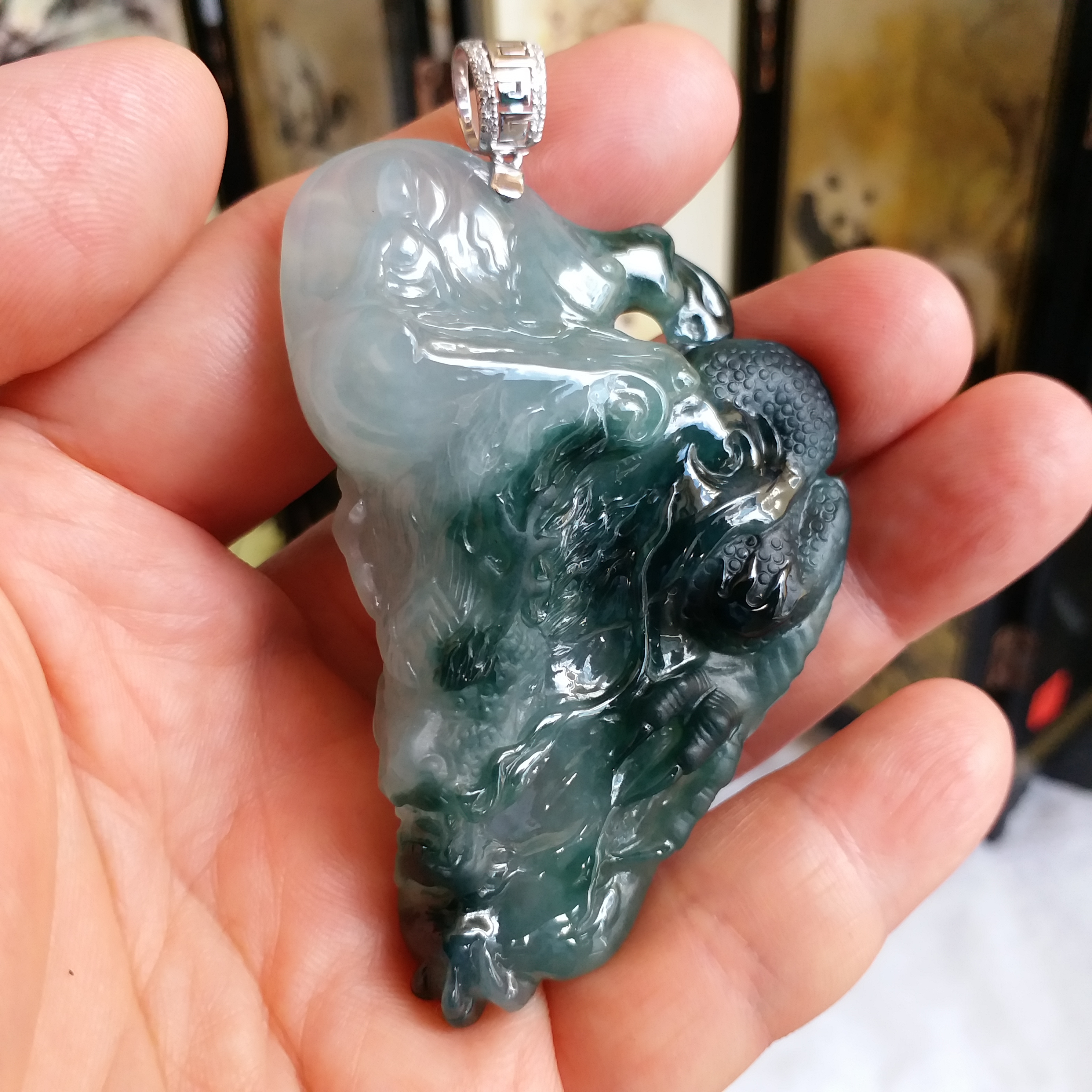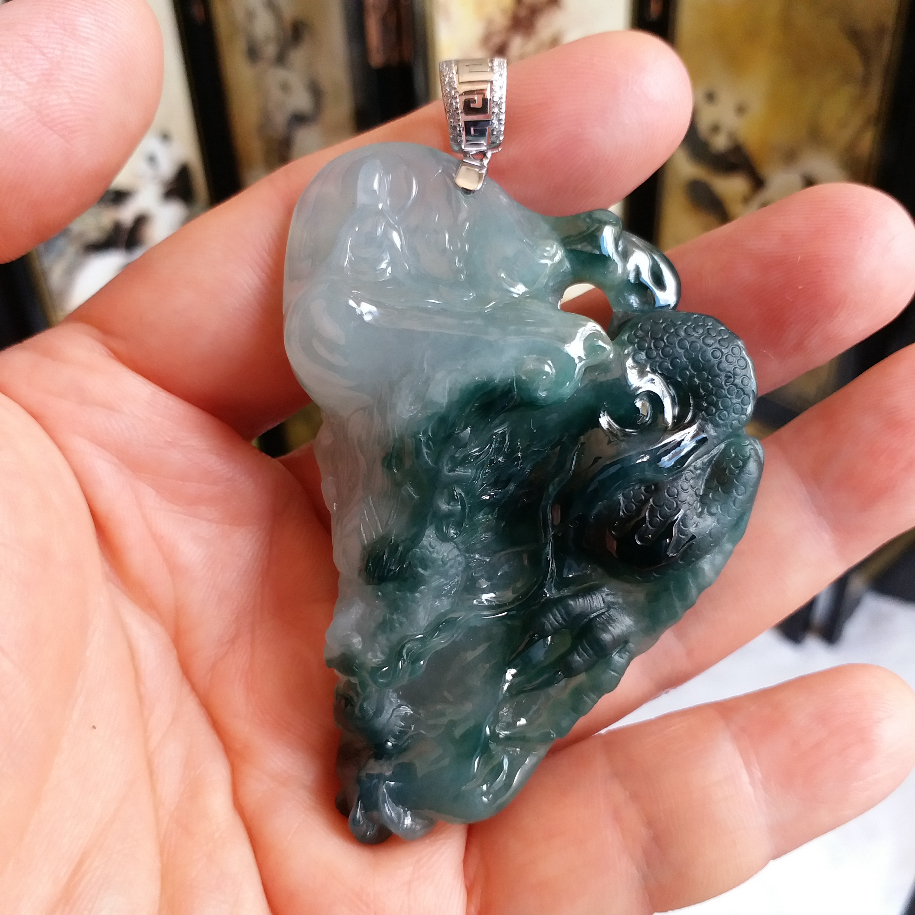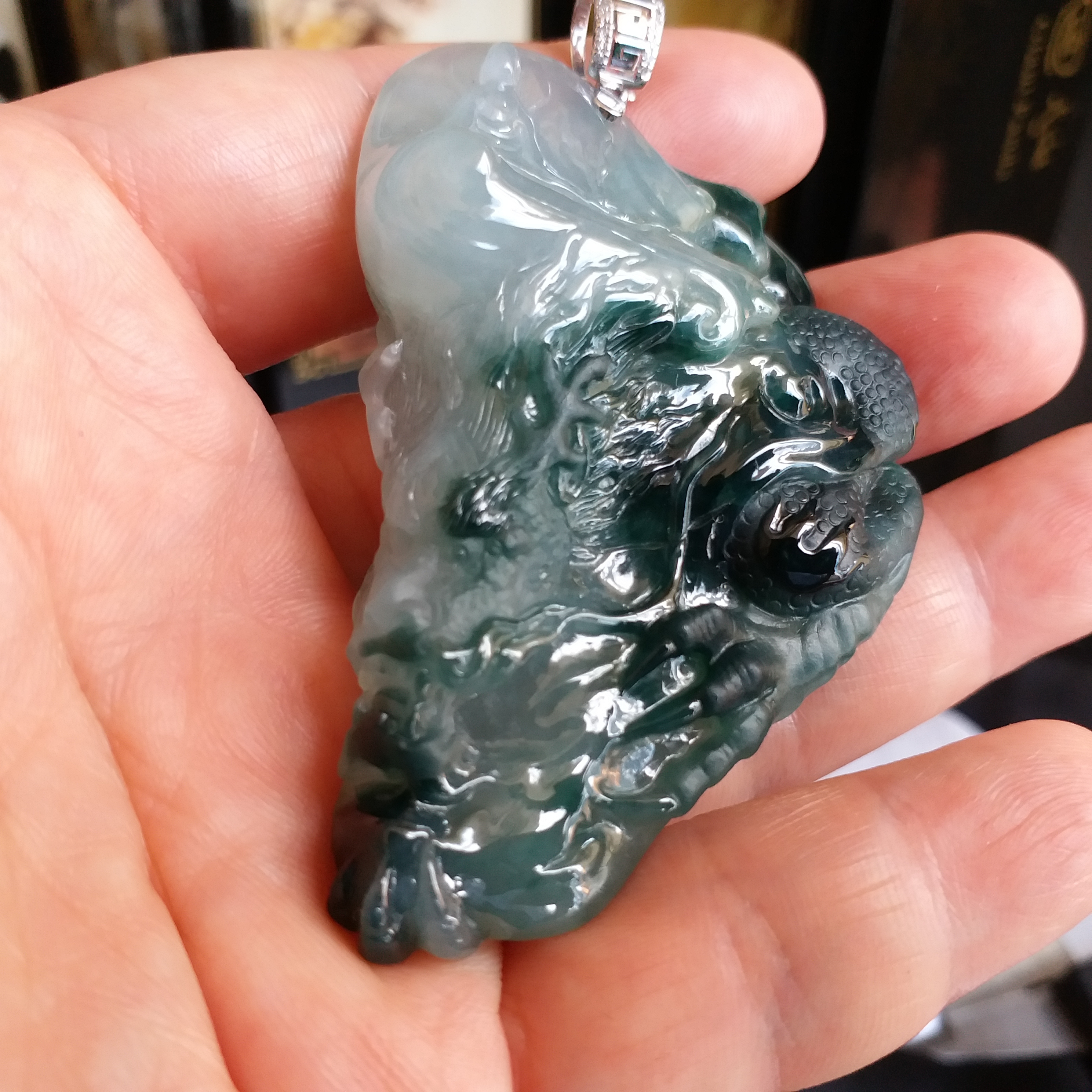 • 神龍護主神龍悟道, 天然翡翠A玉, 緬甸玉, Jade, Jadeite