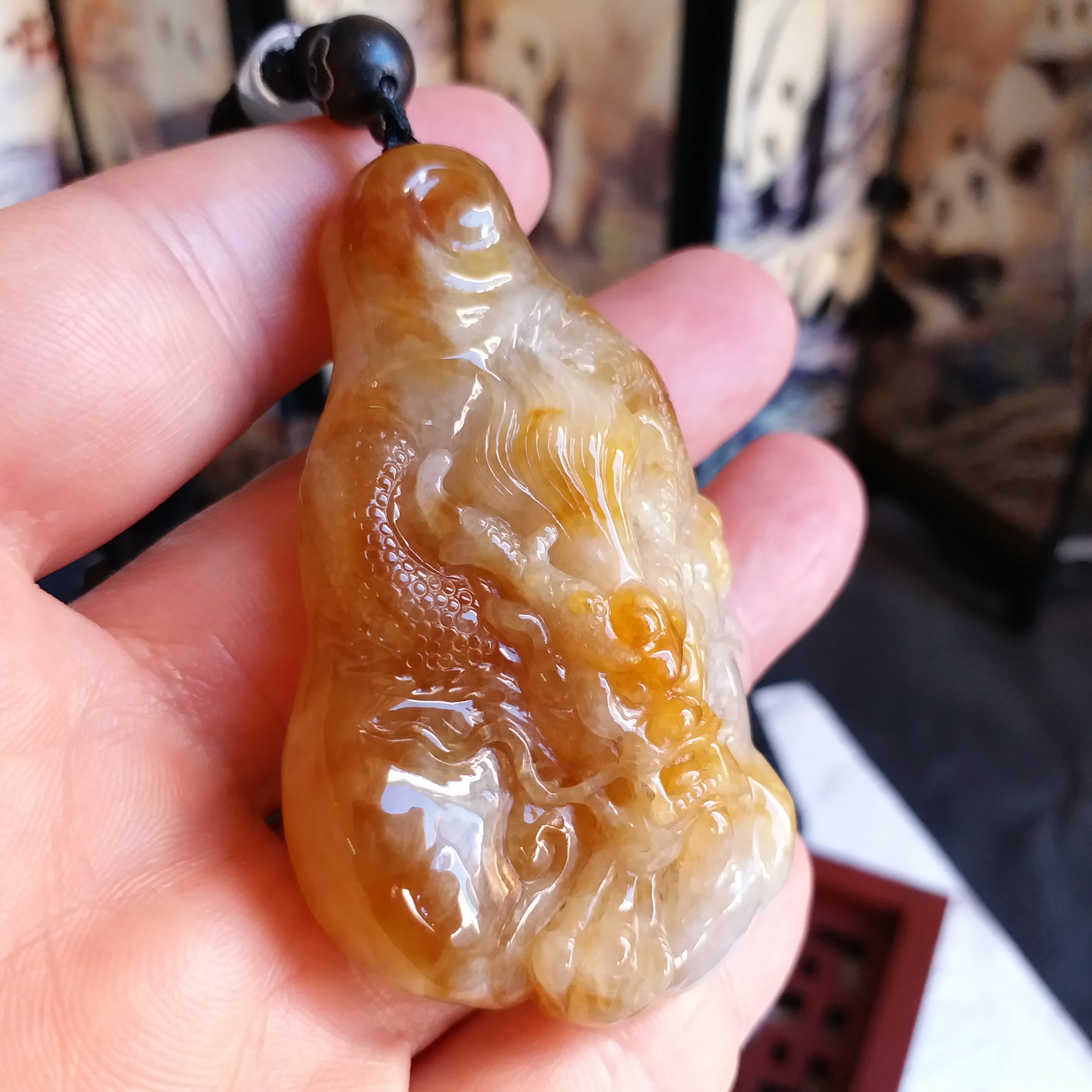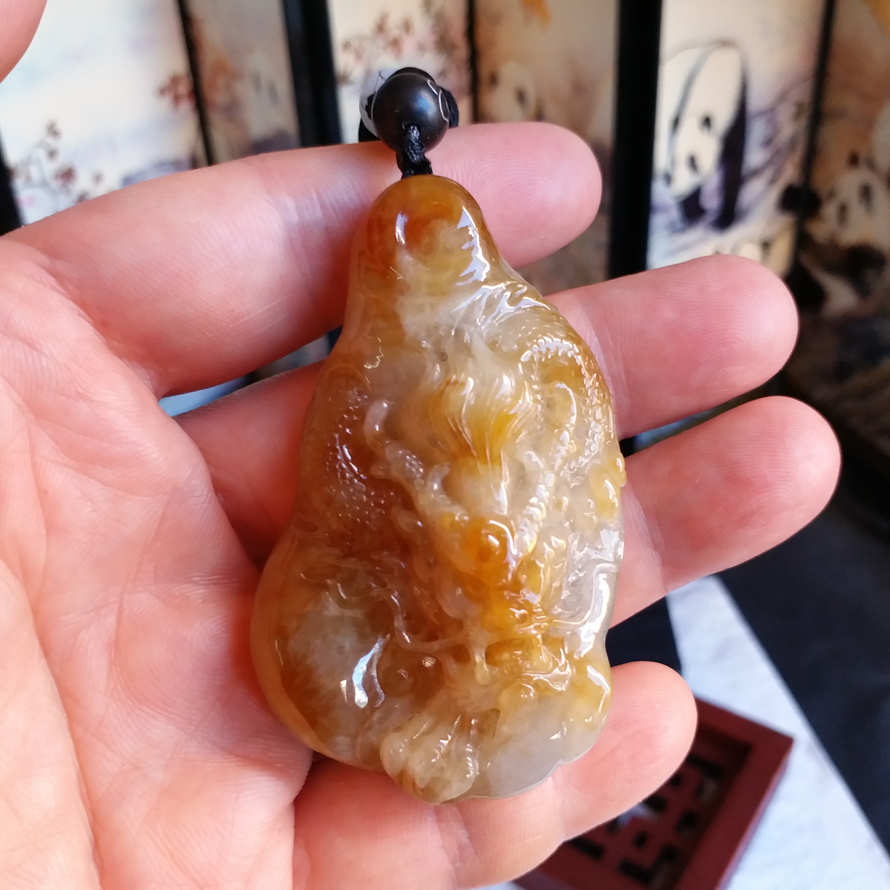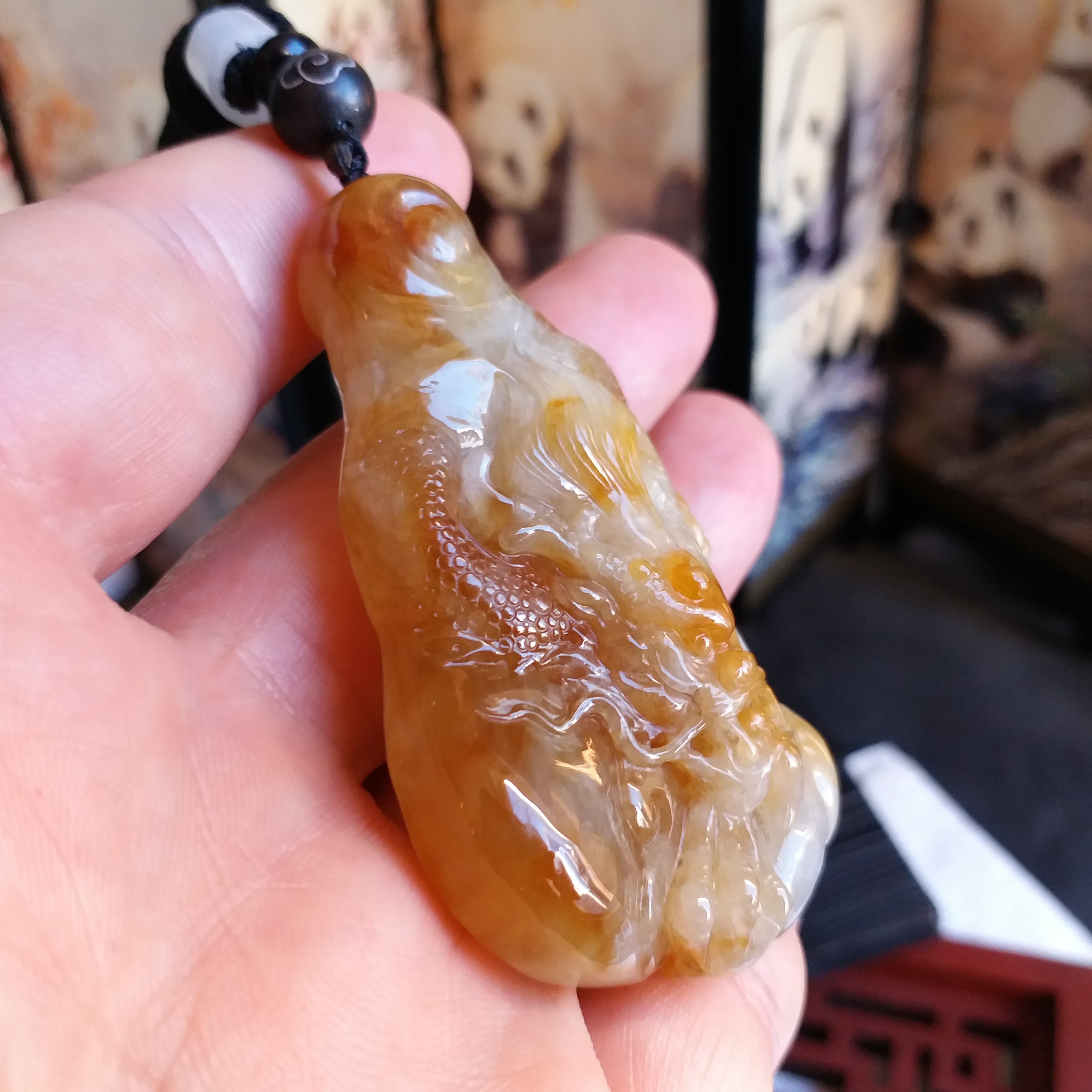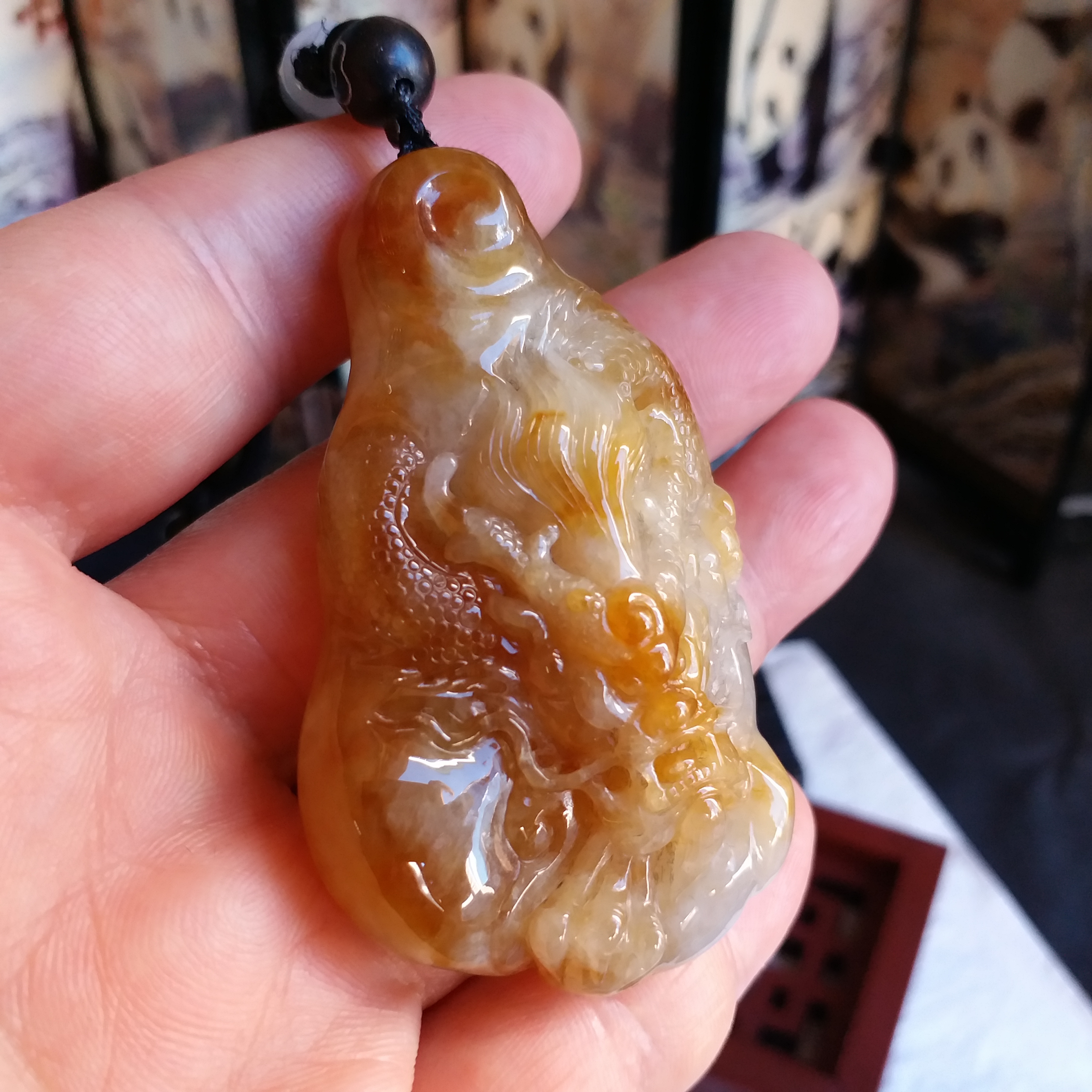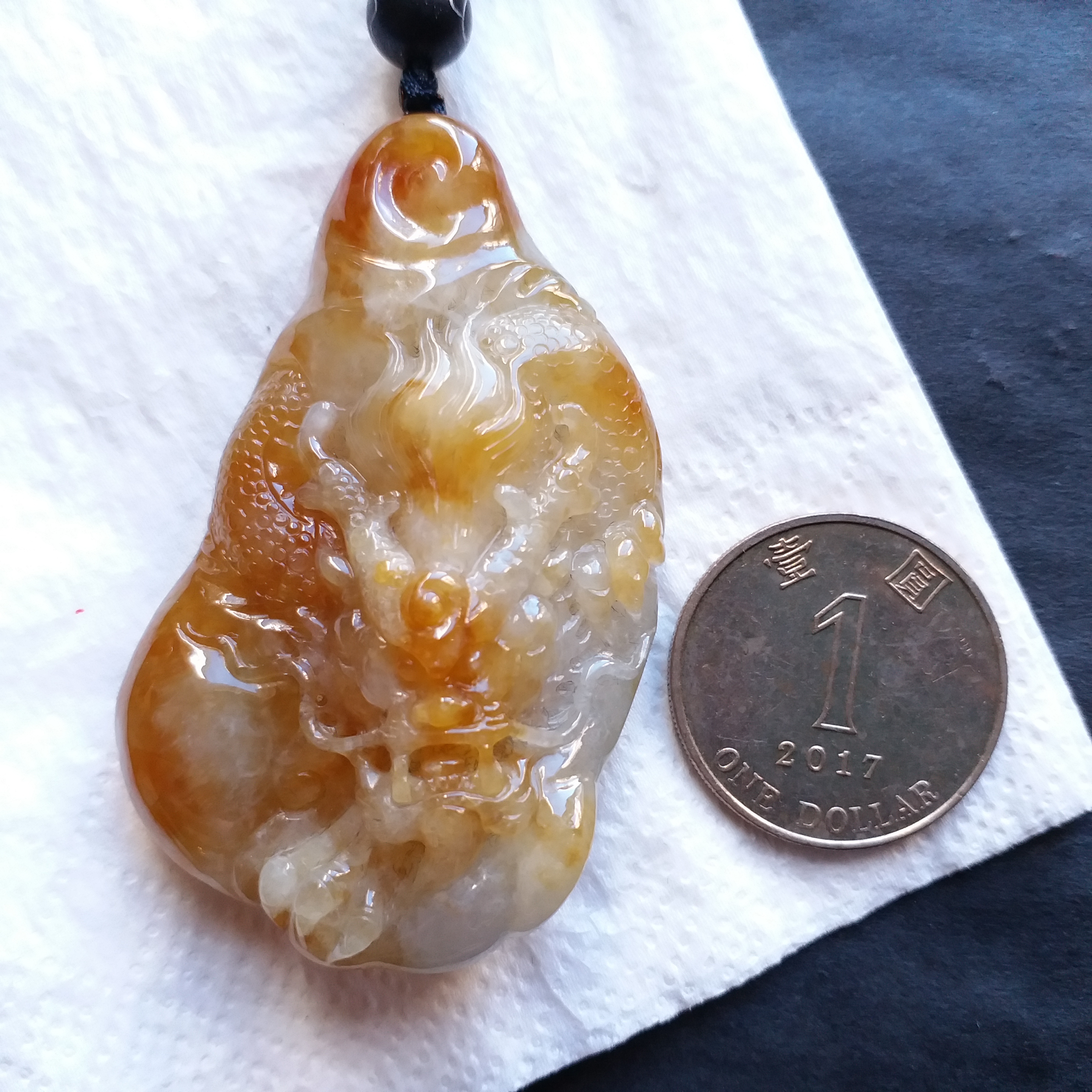 • 黃翡龍牌, 天然翡翠A玉, 緬甸玉, Jade, Jadeite