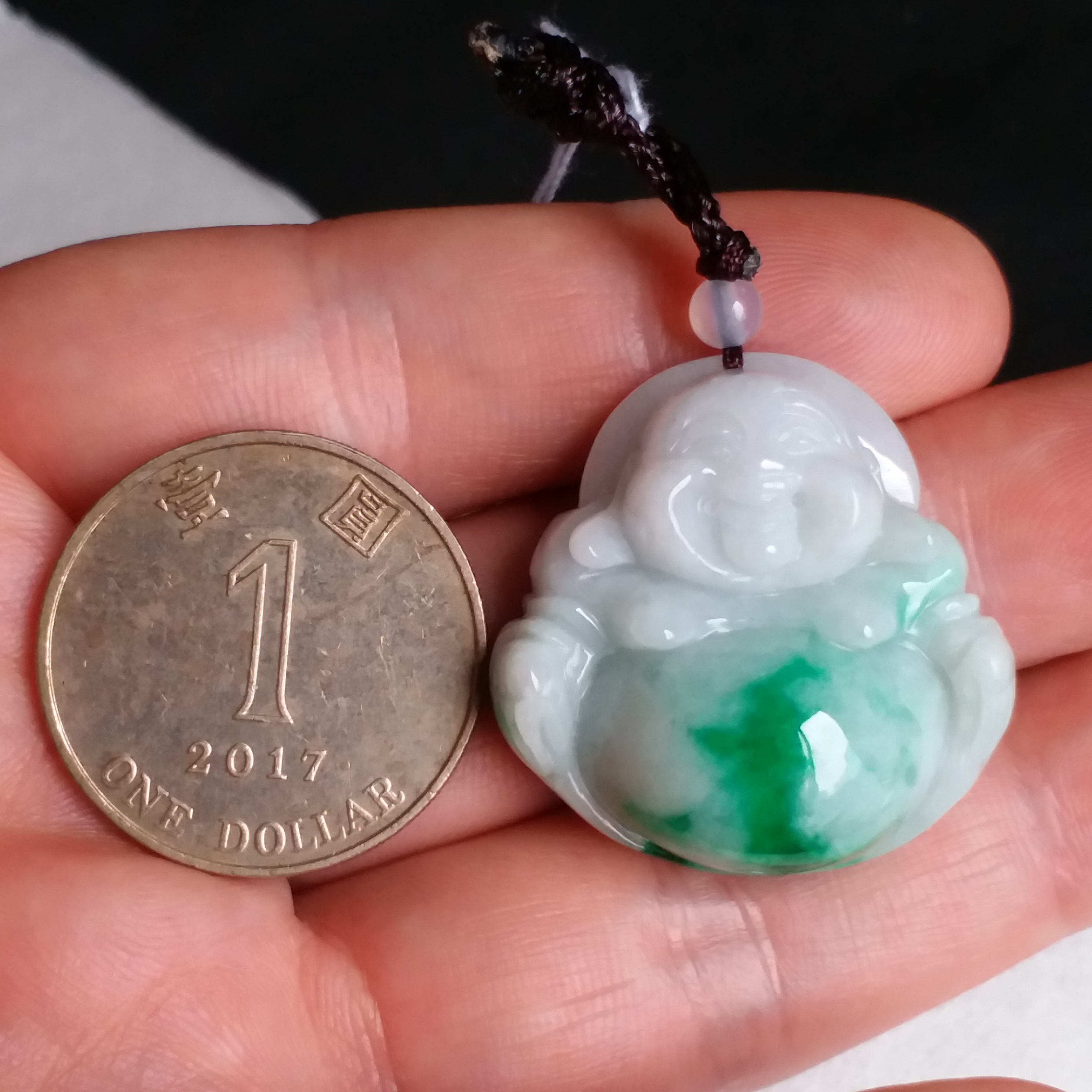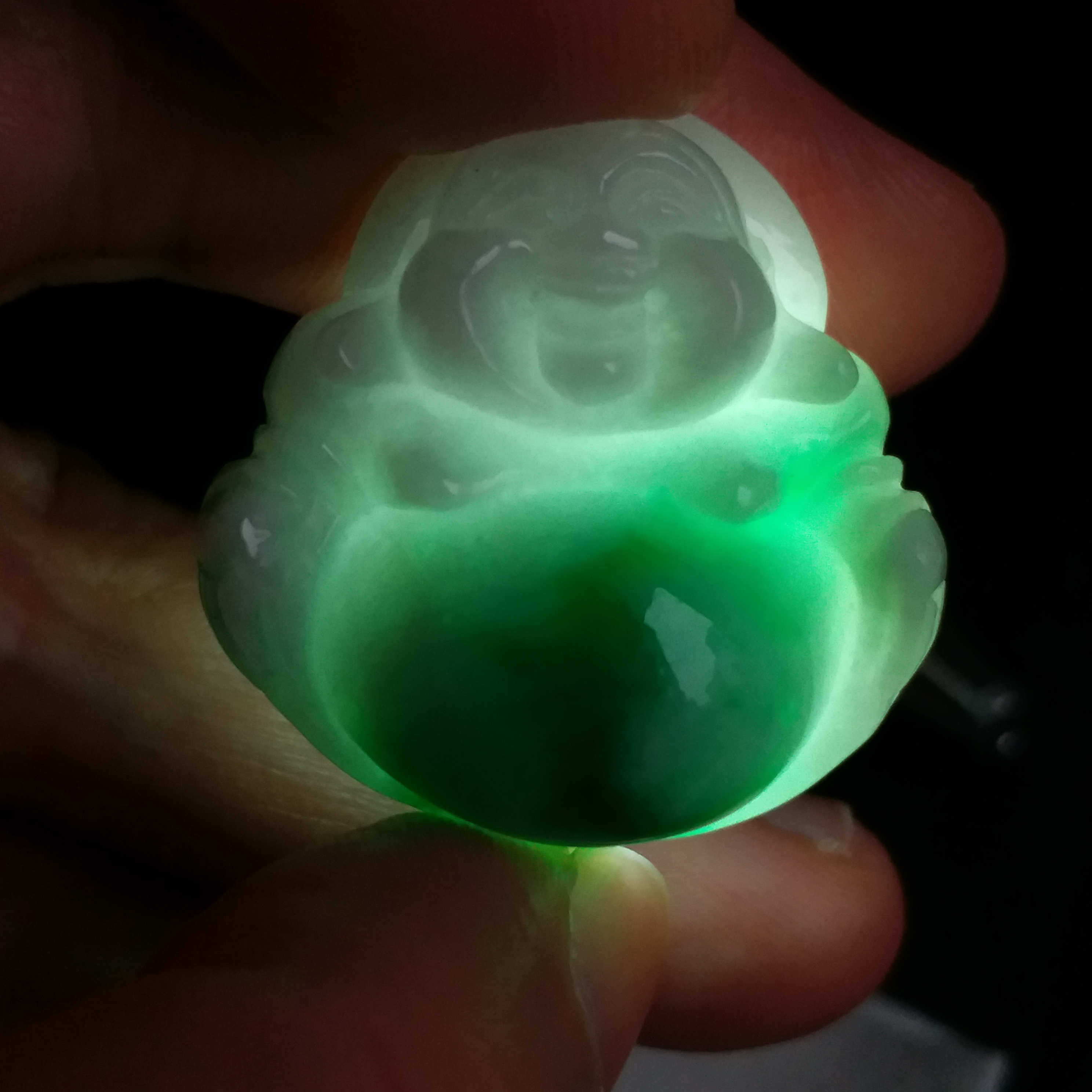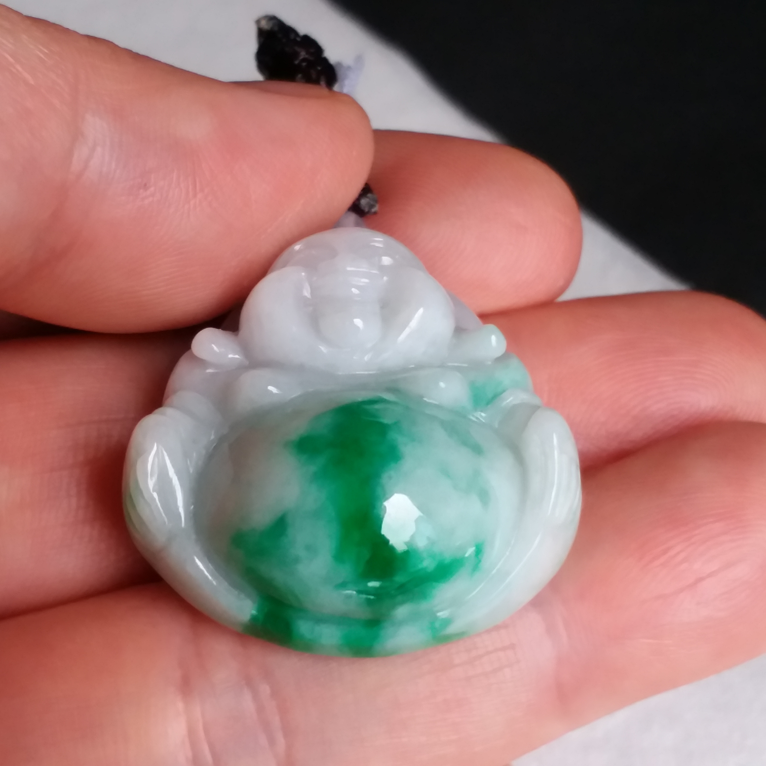 • 冰糯飄辣陽綠厚庄笑佛, 天然翡翠A玉, 緬甸玉, Jade, Jadeite