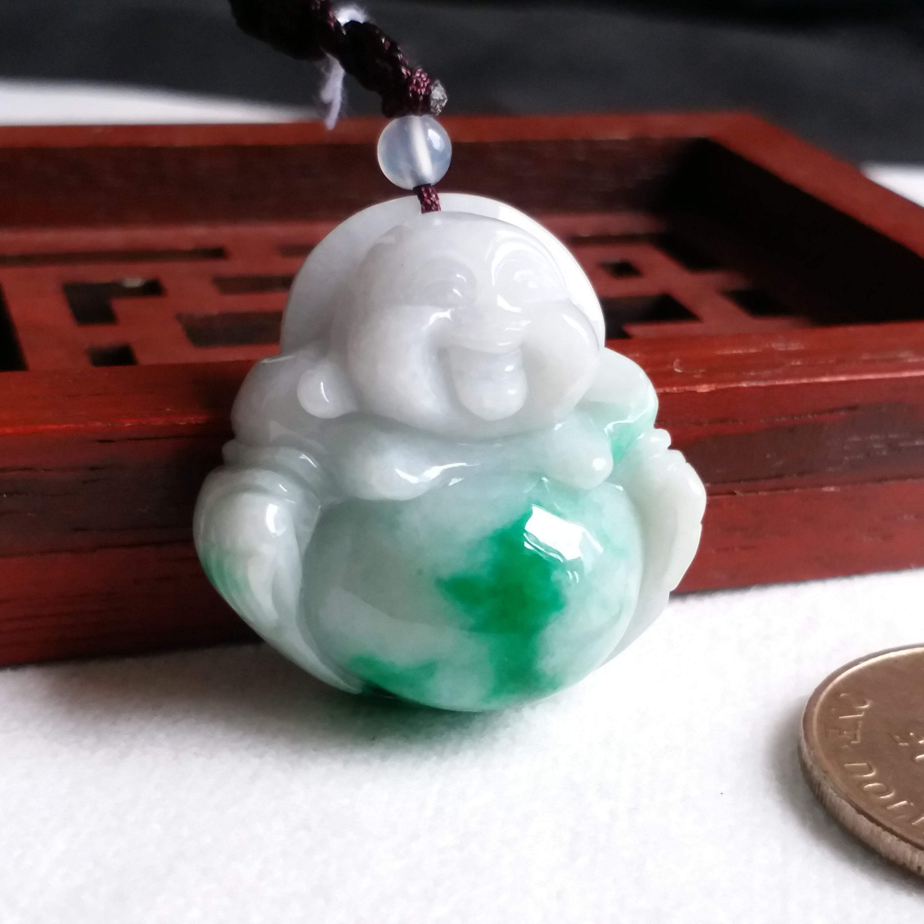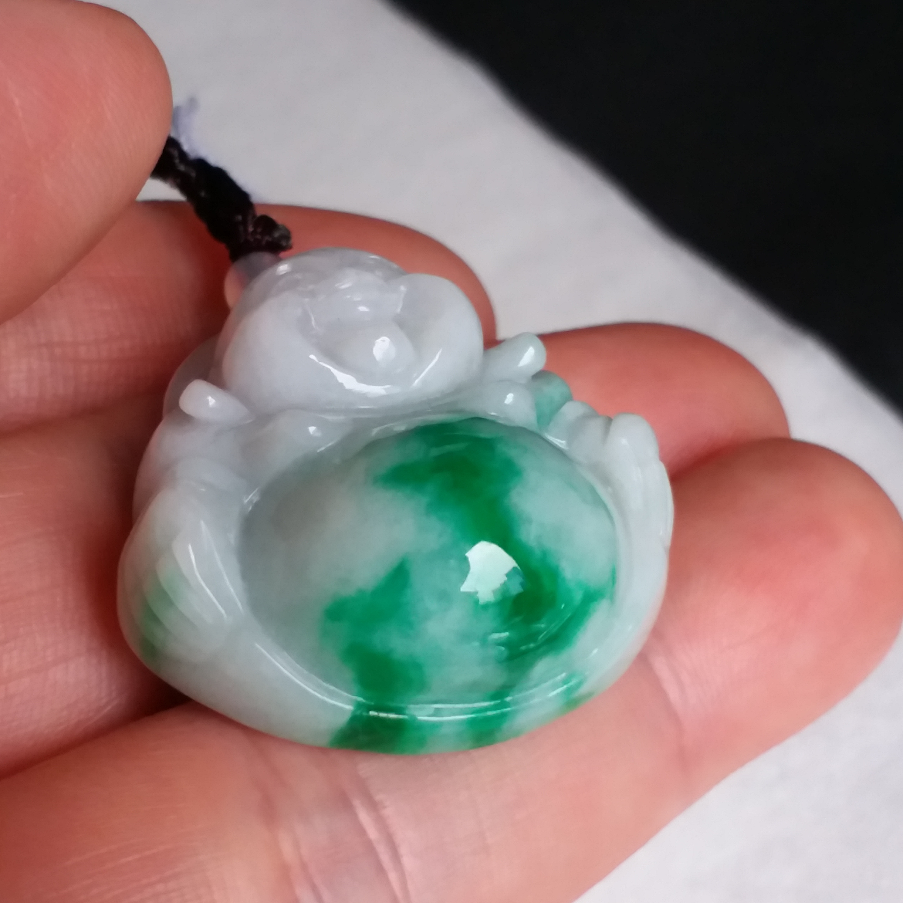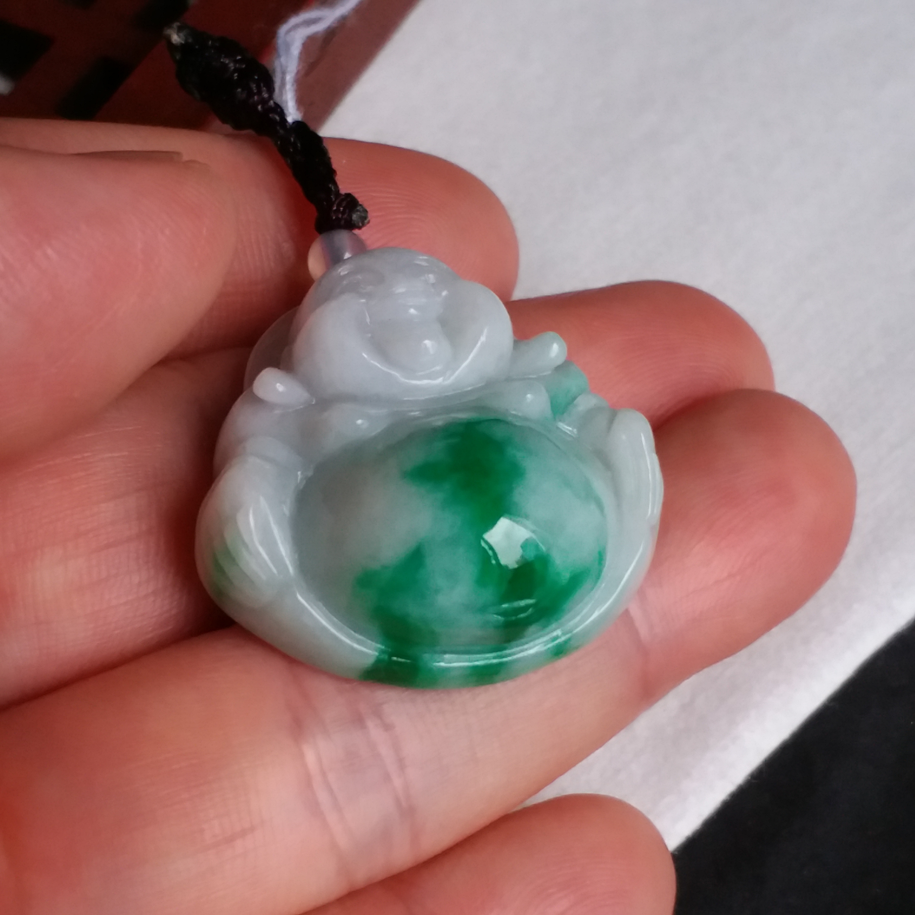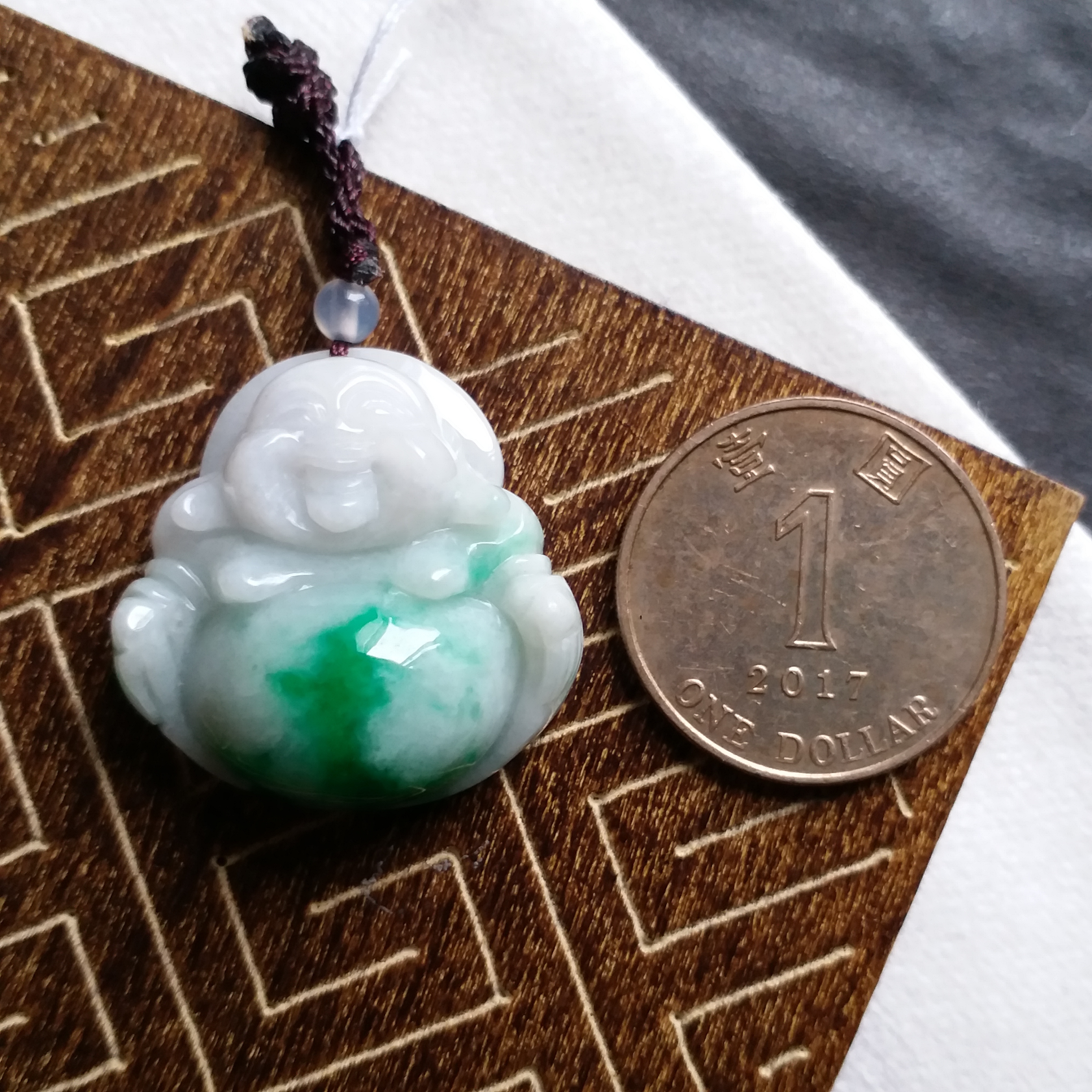 • 冰糯飄辣陽綠厚庄笑佛, 天然翡翠A玉, 緬甸玉, Jade, Jadeite