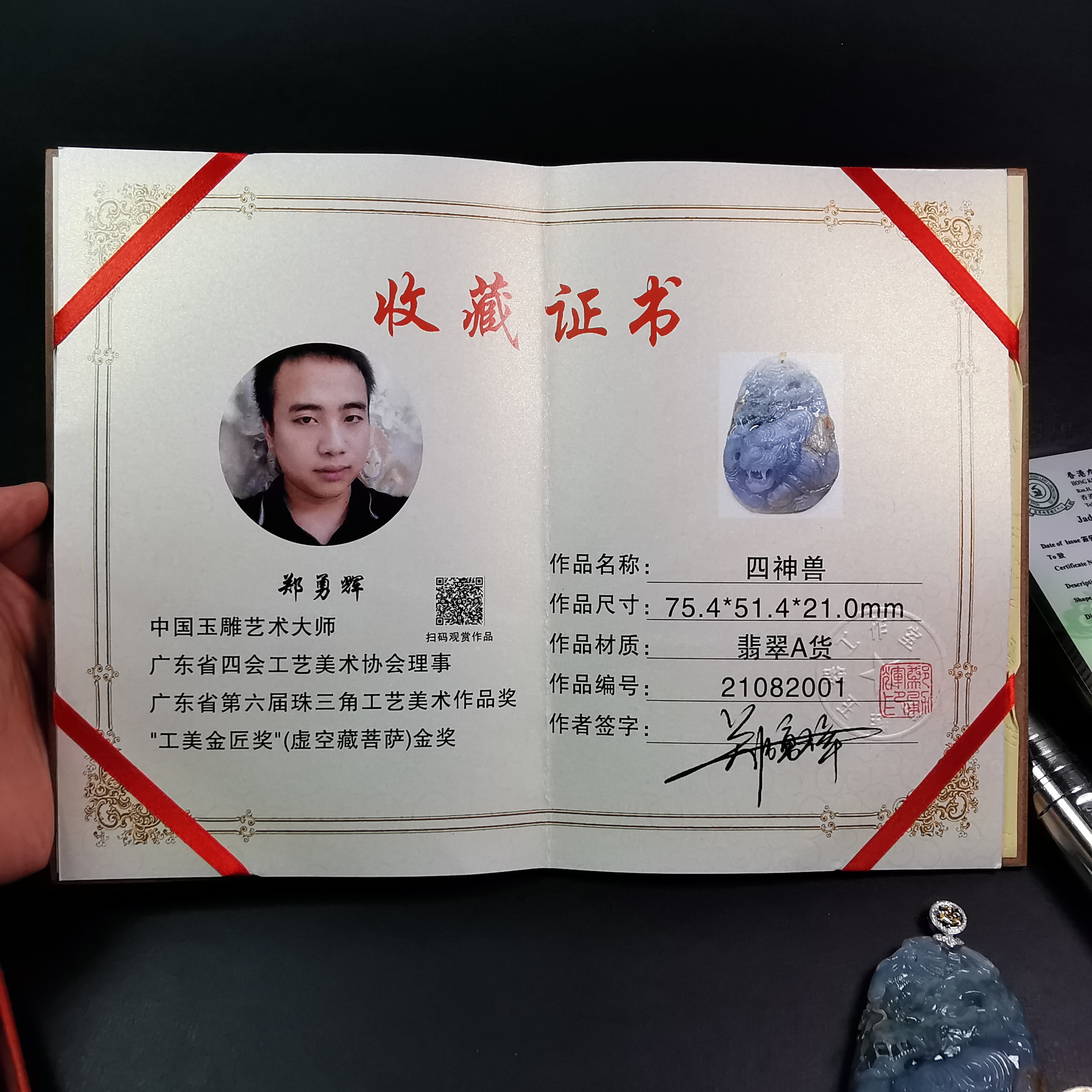 天然翡翠A玉,大師級全手工雕刻,榮獲2021年「廣東工藝美術精品獎」銅獎!