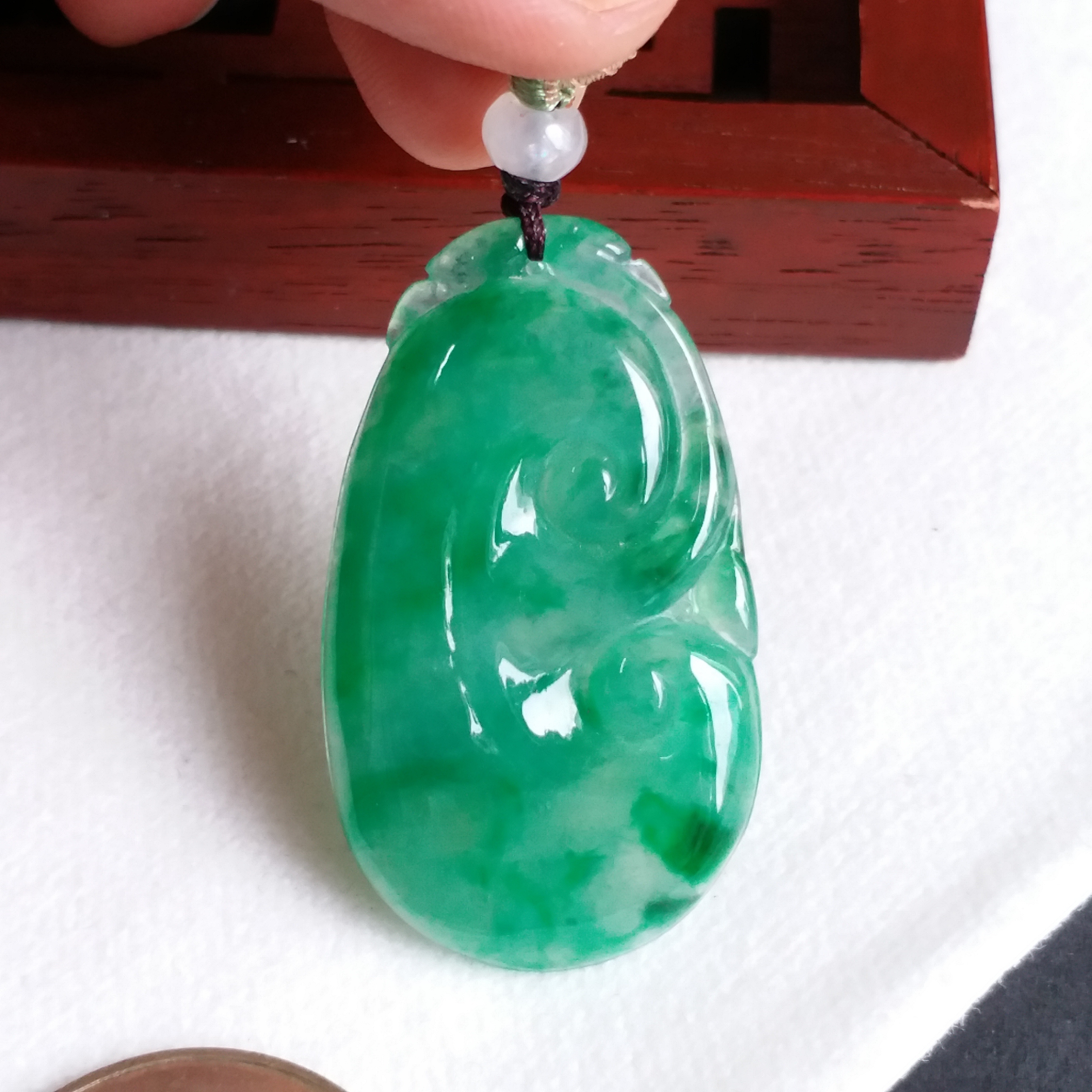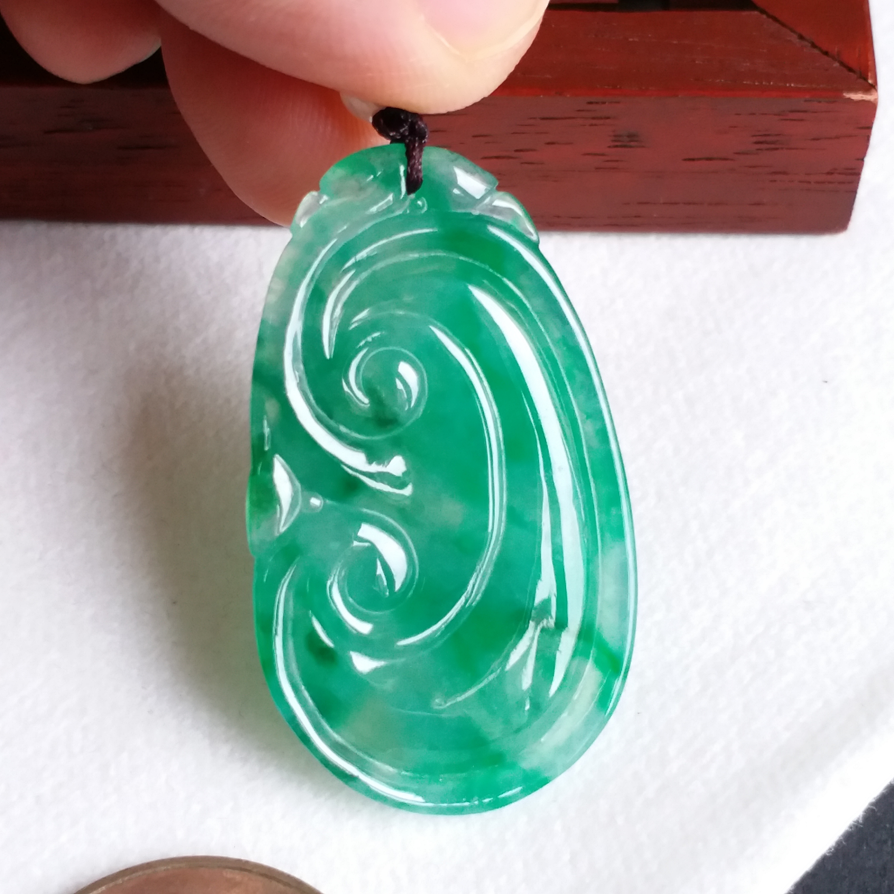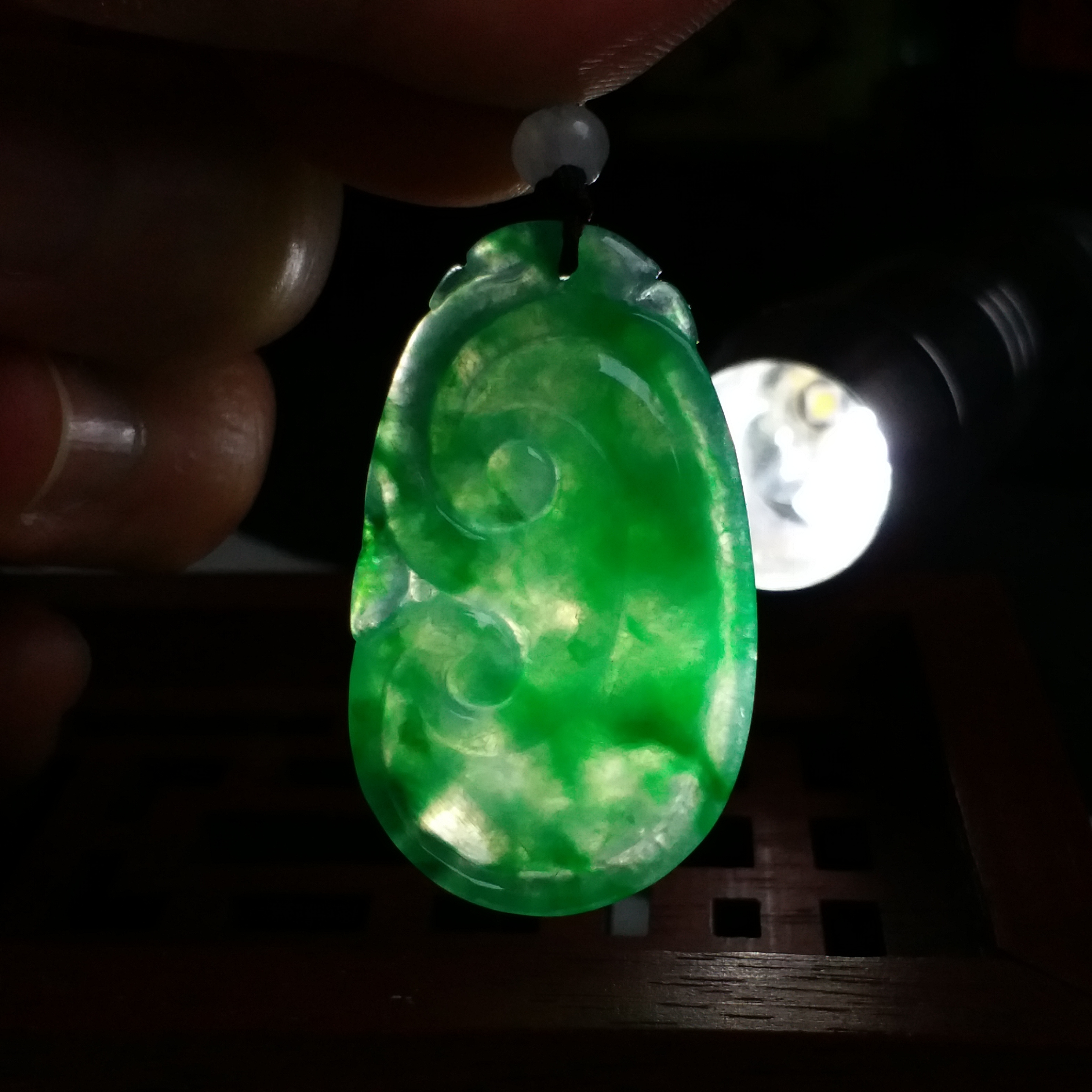 天然翡翠A玉,色辣,冰飄花辣綠,完美