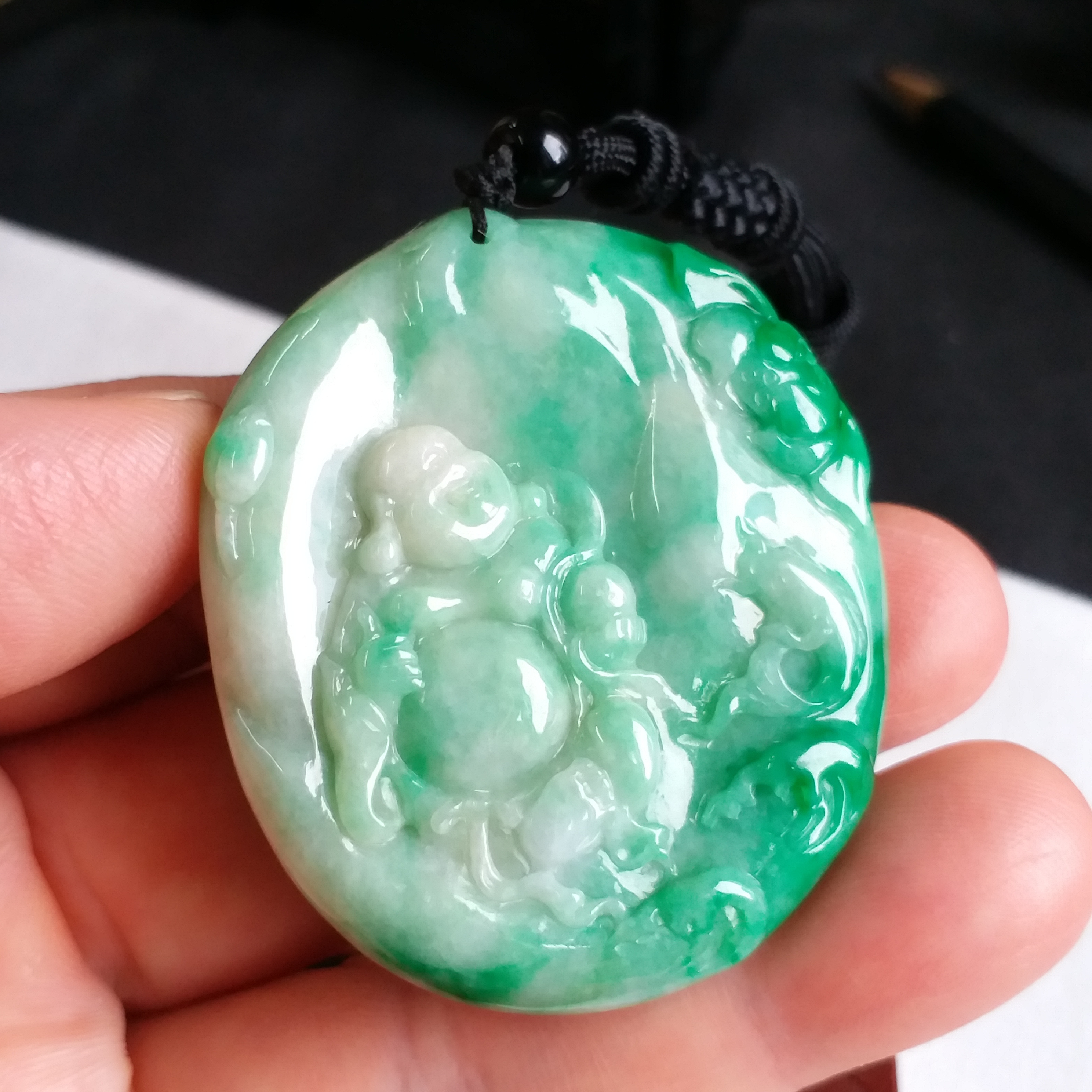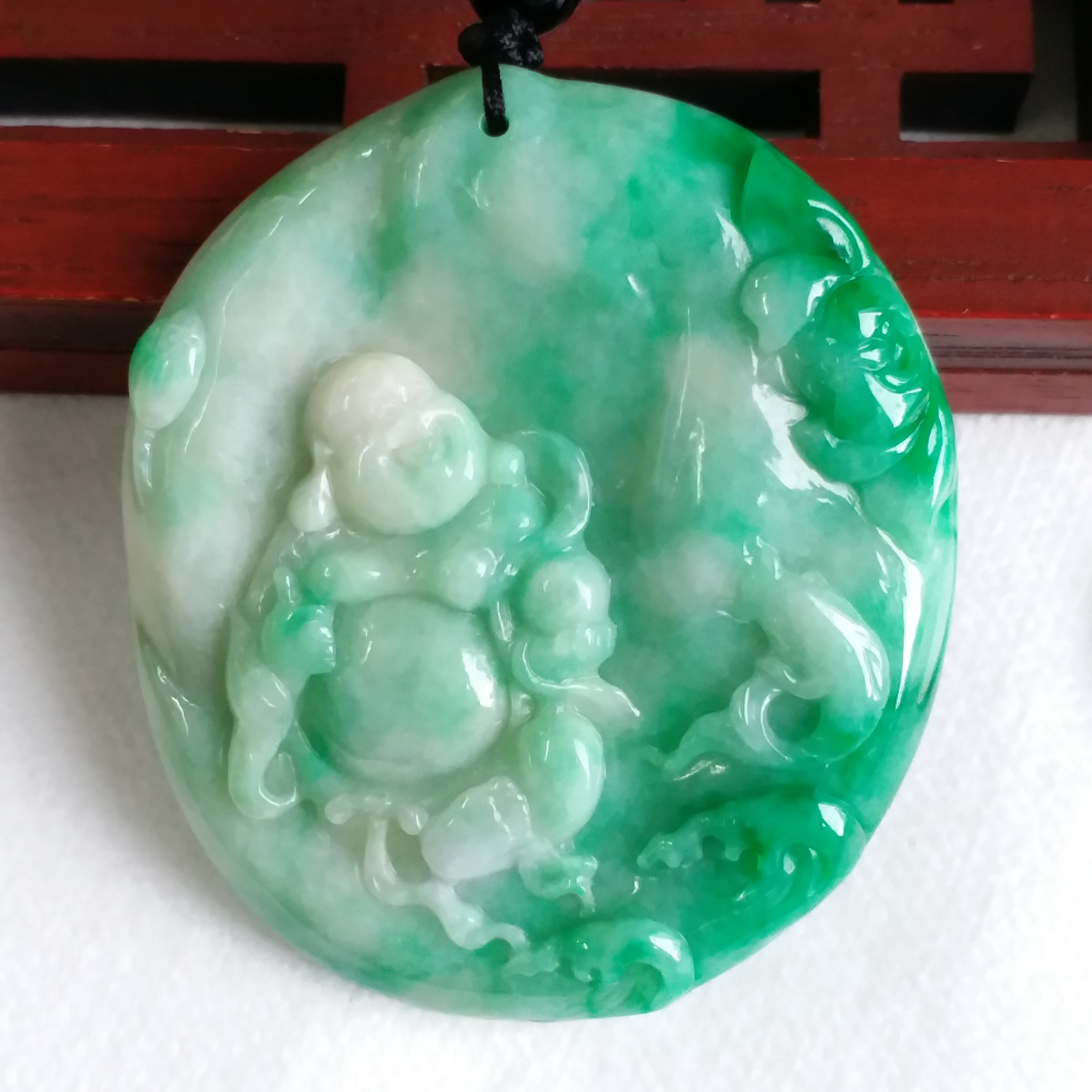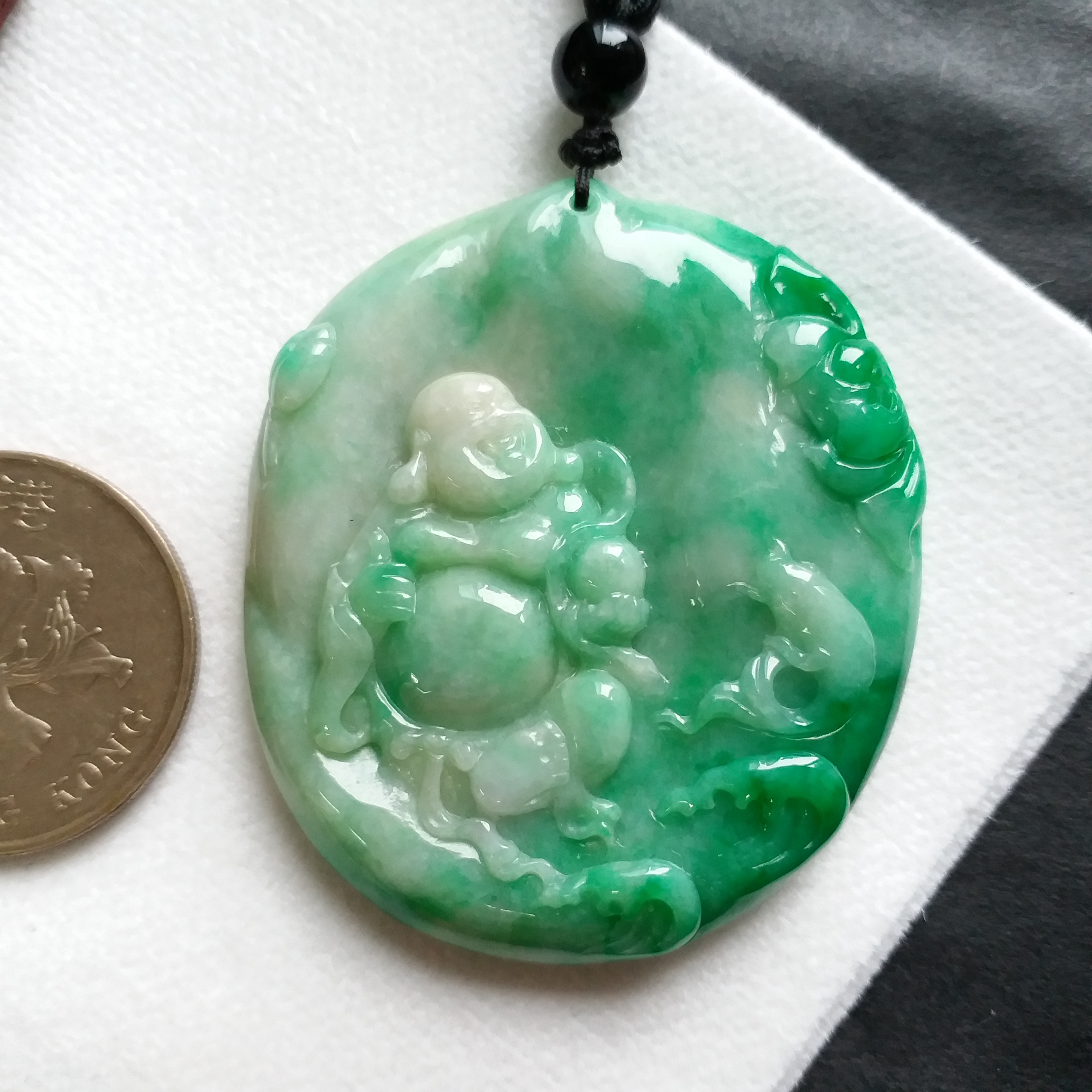 • 陽綠消遙佛, 天然翡翠A玉, 緬甸玉, Jade, Jadeite