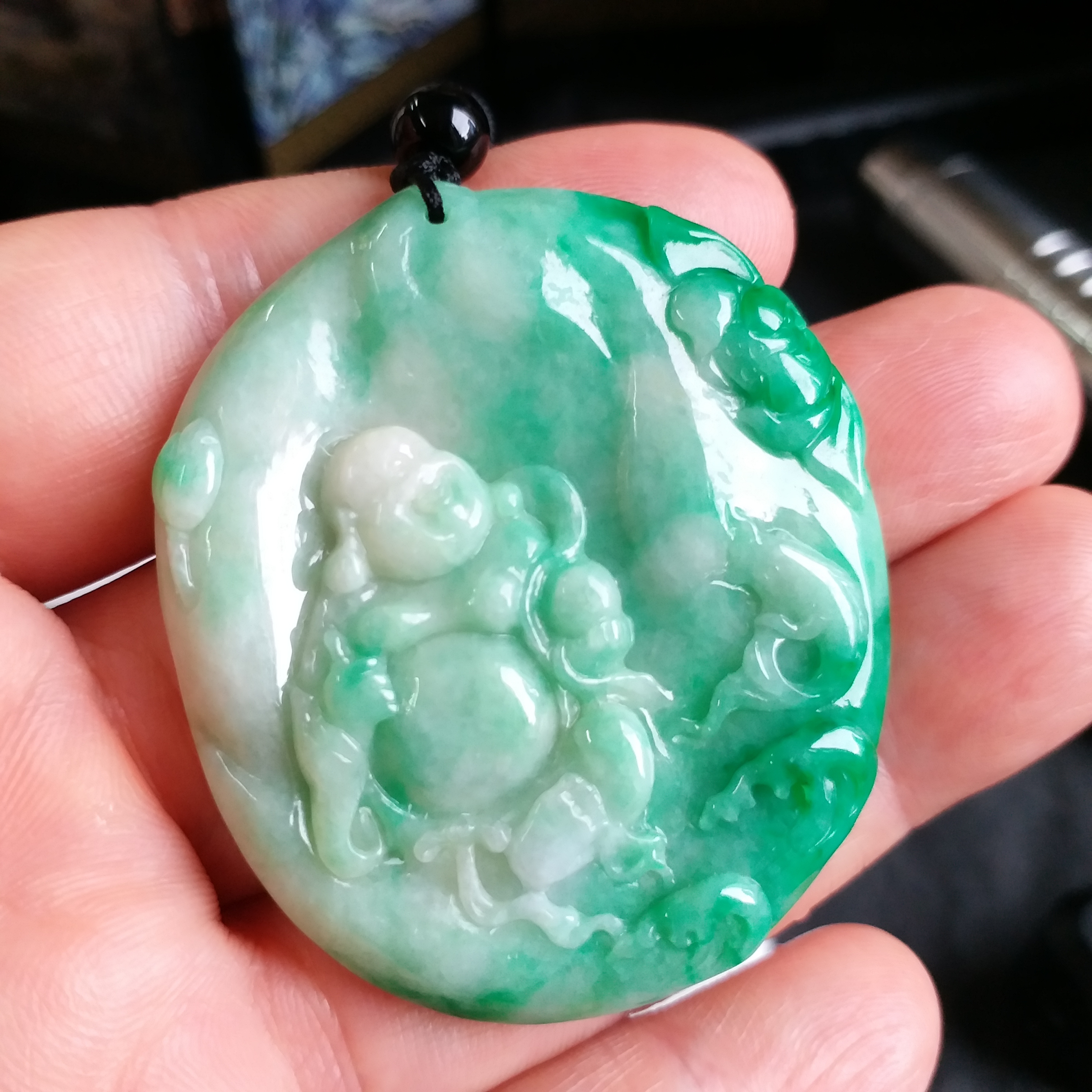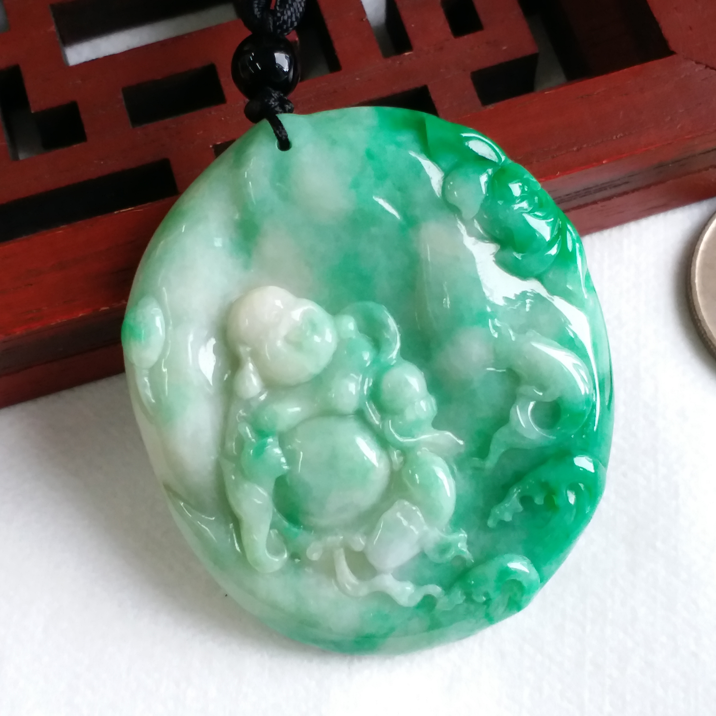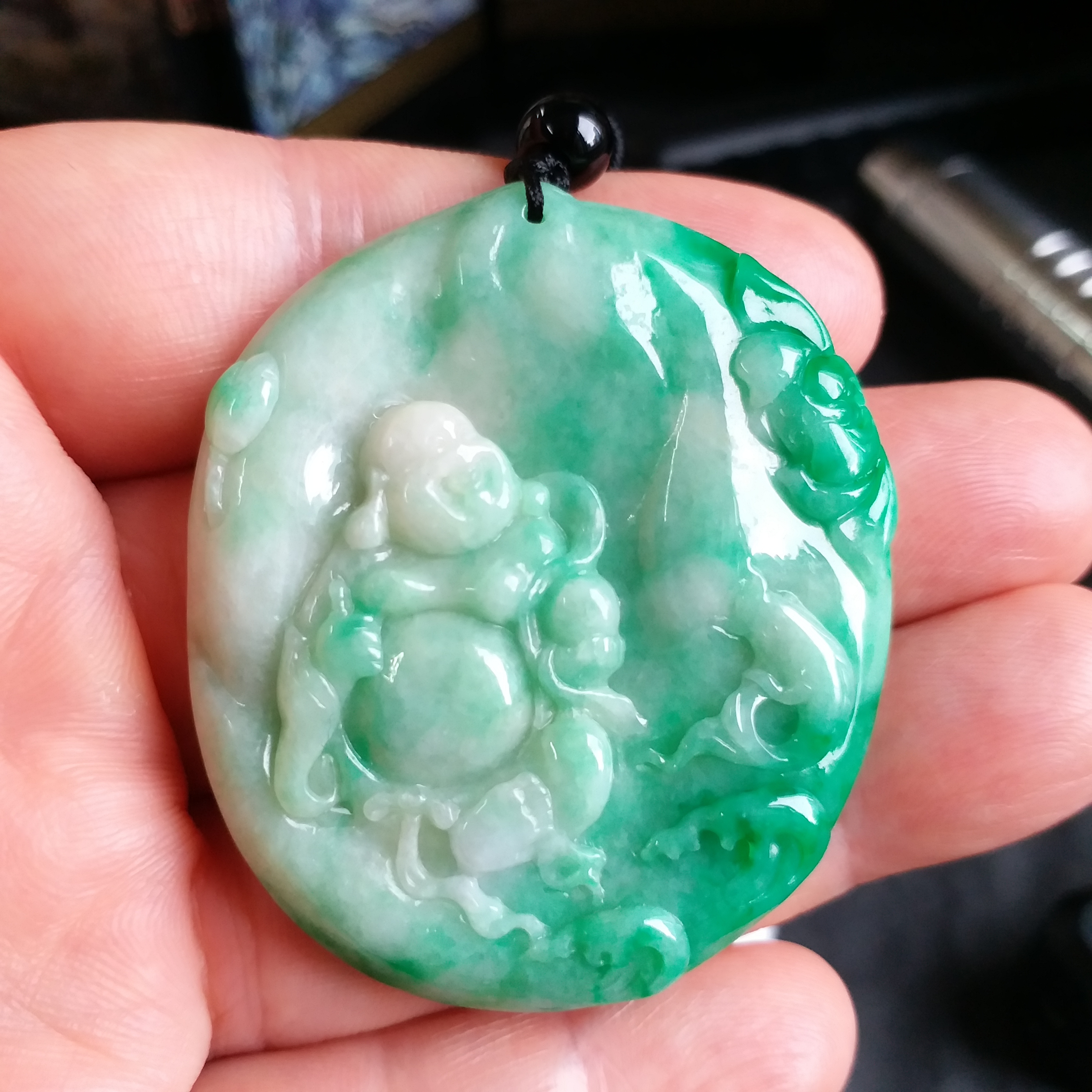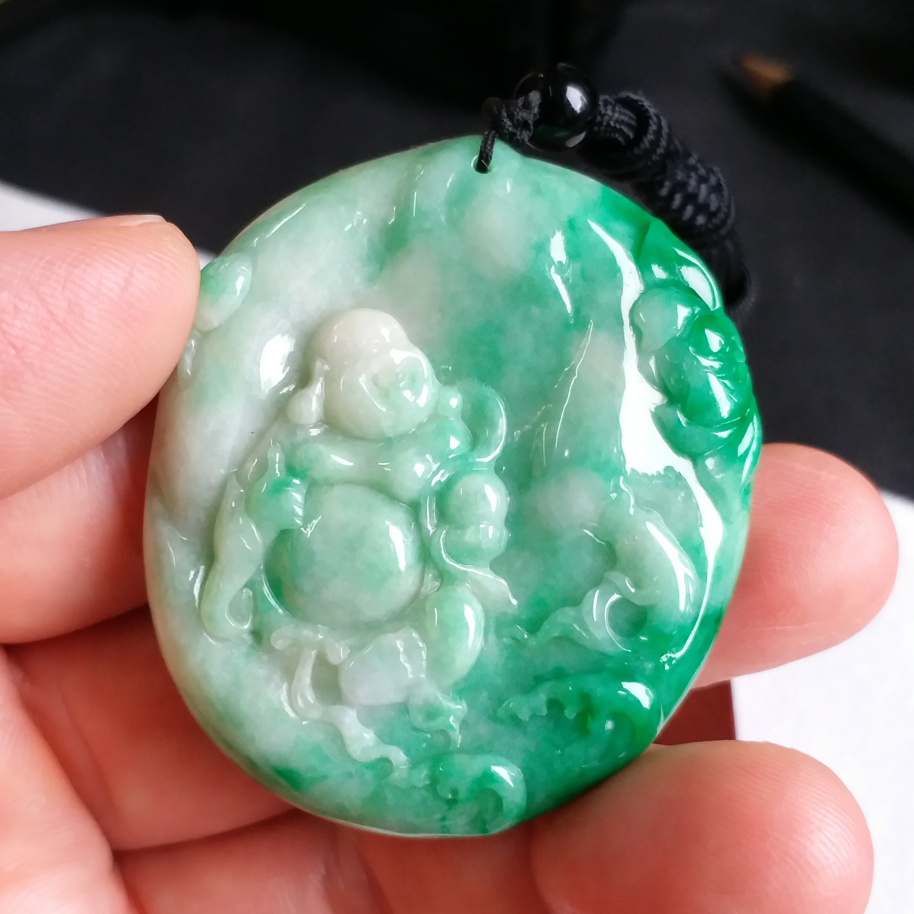 • 陽綠消遙佛, 天然翡翠A玉, 緬甸玉, Jade, Jadeite