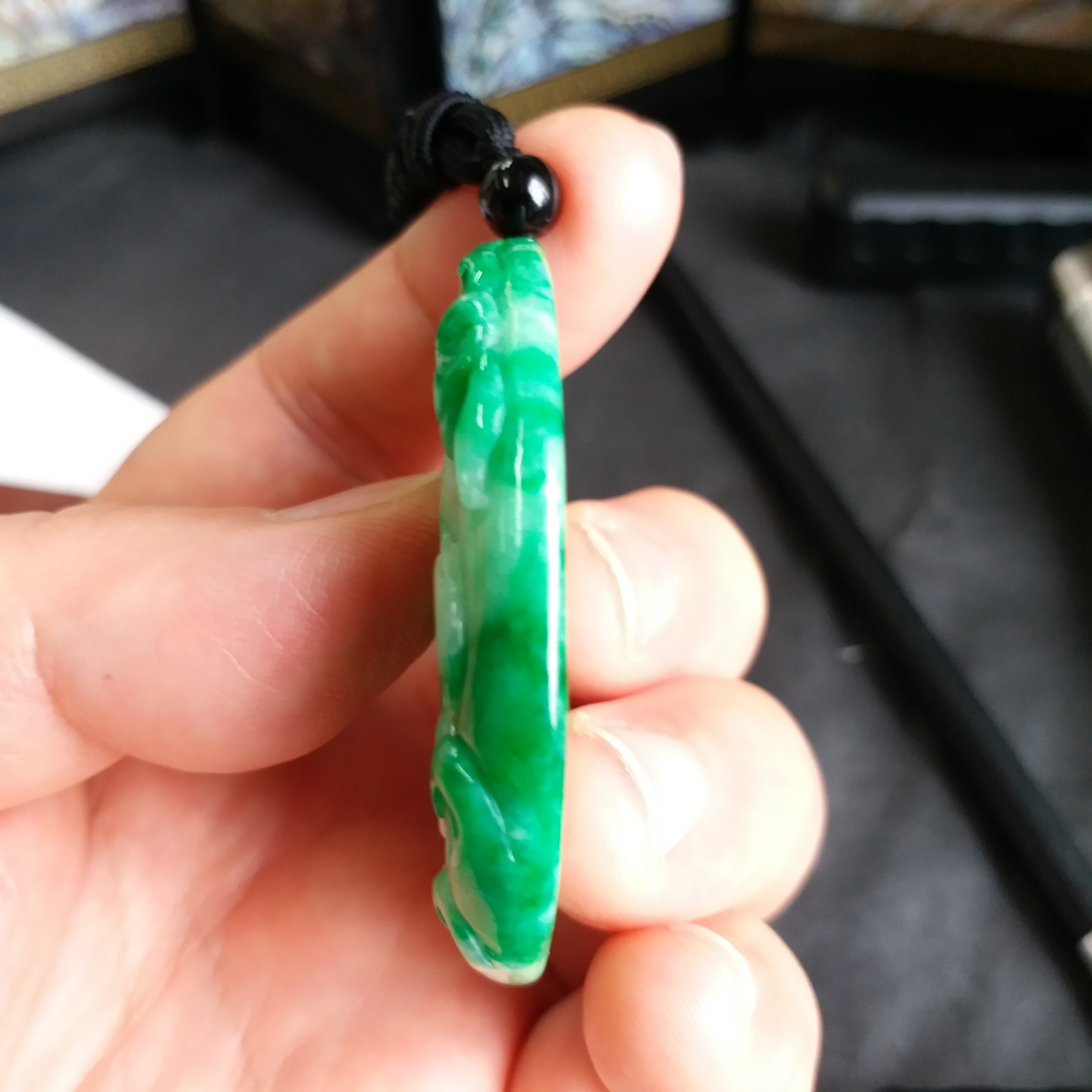 天然翡翠A玉,色陽,100%手工雕刻,完美無紋裂