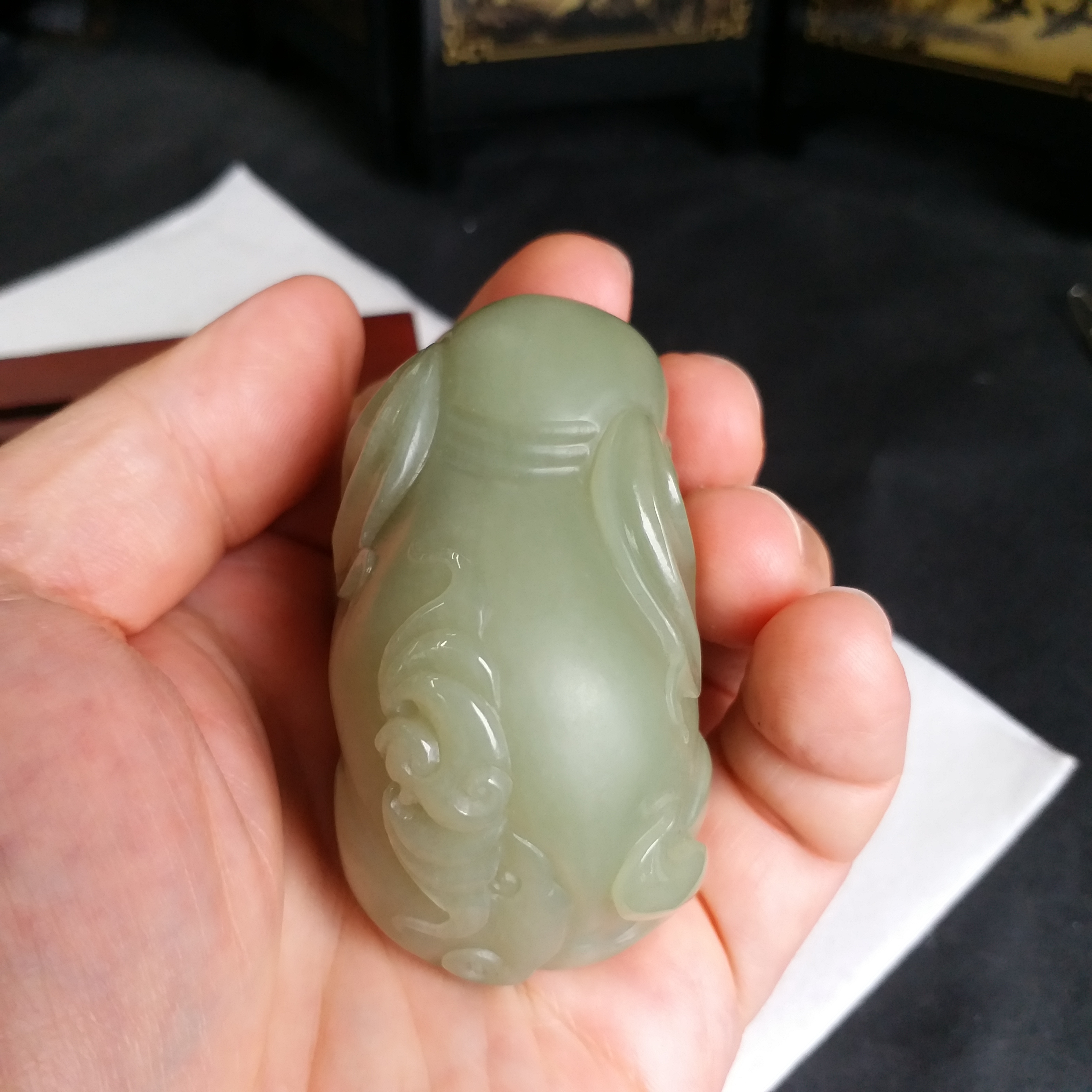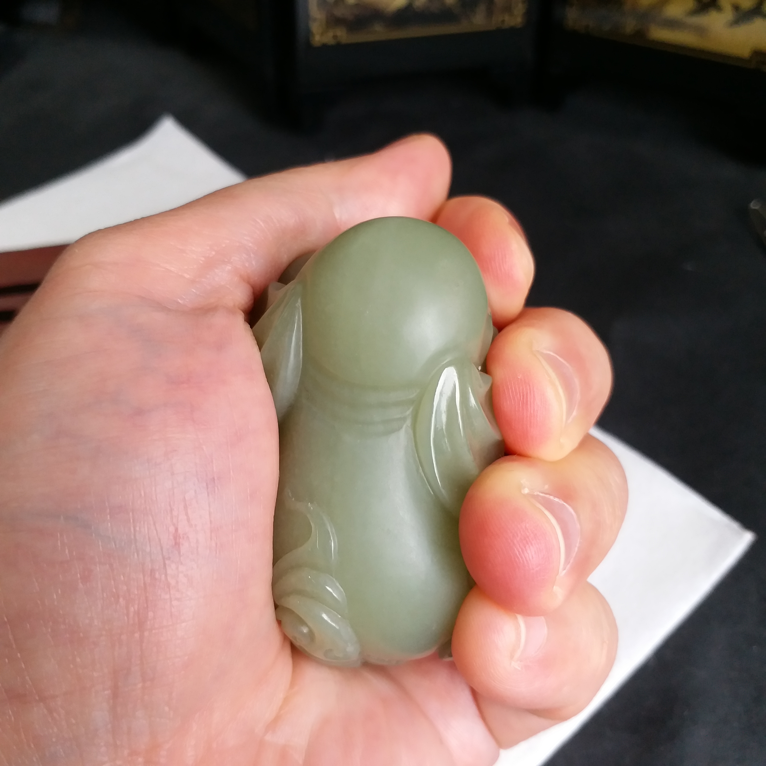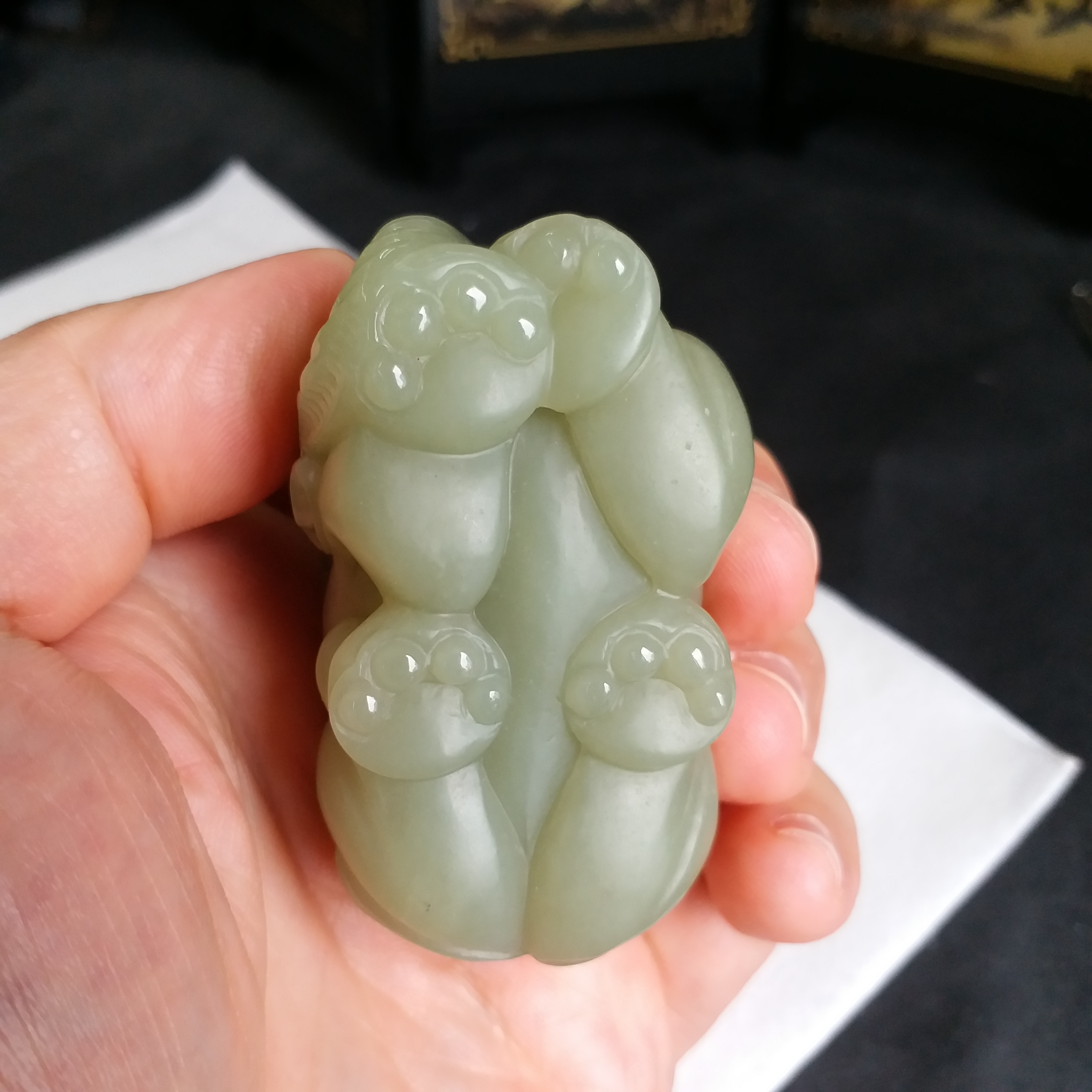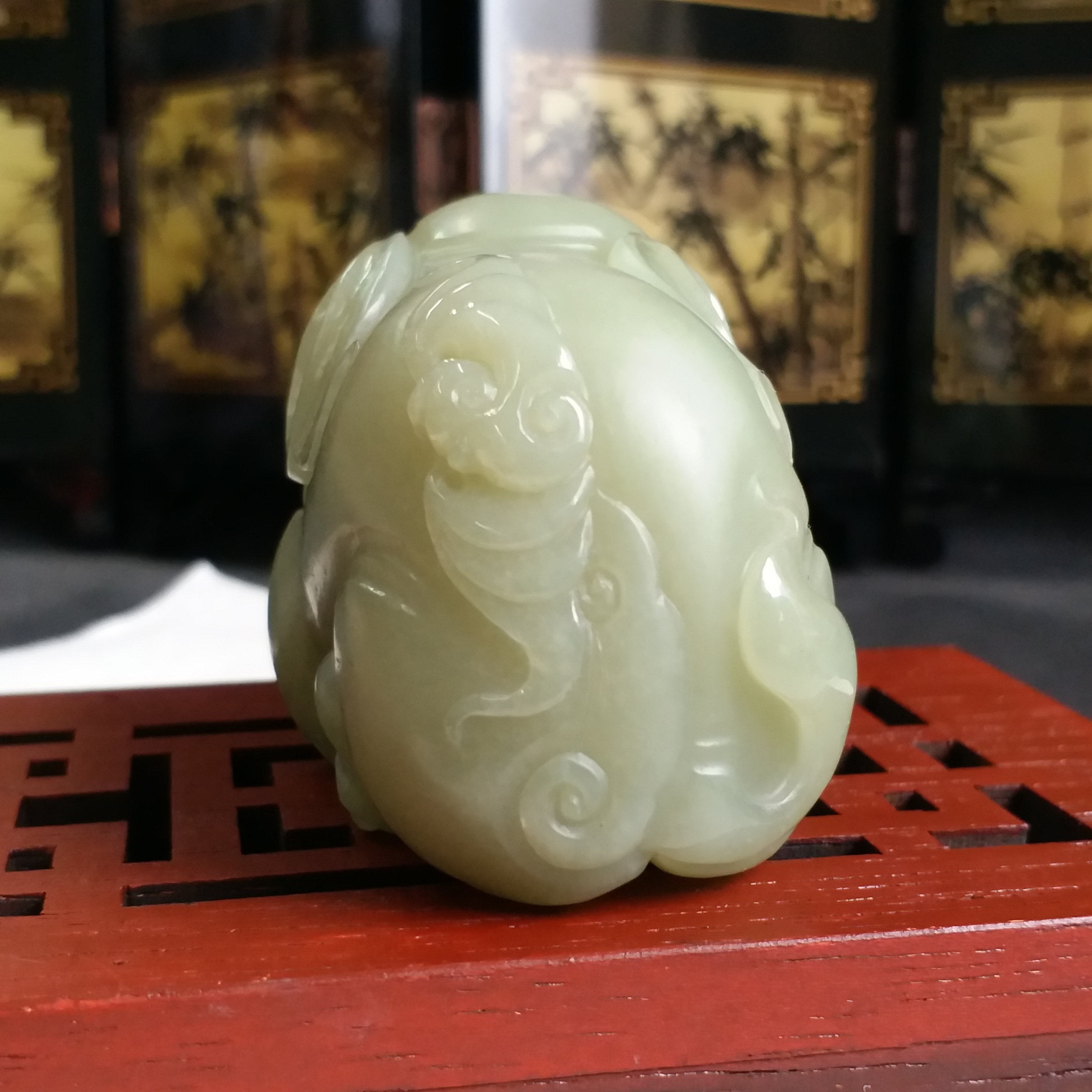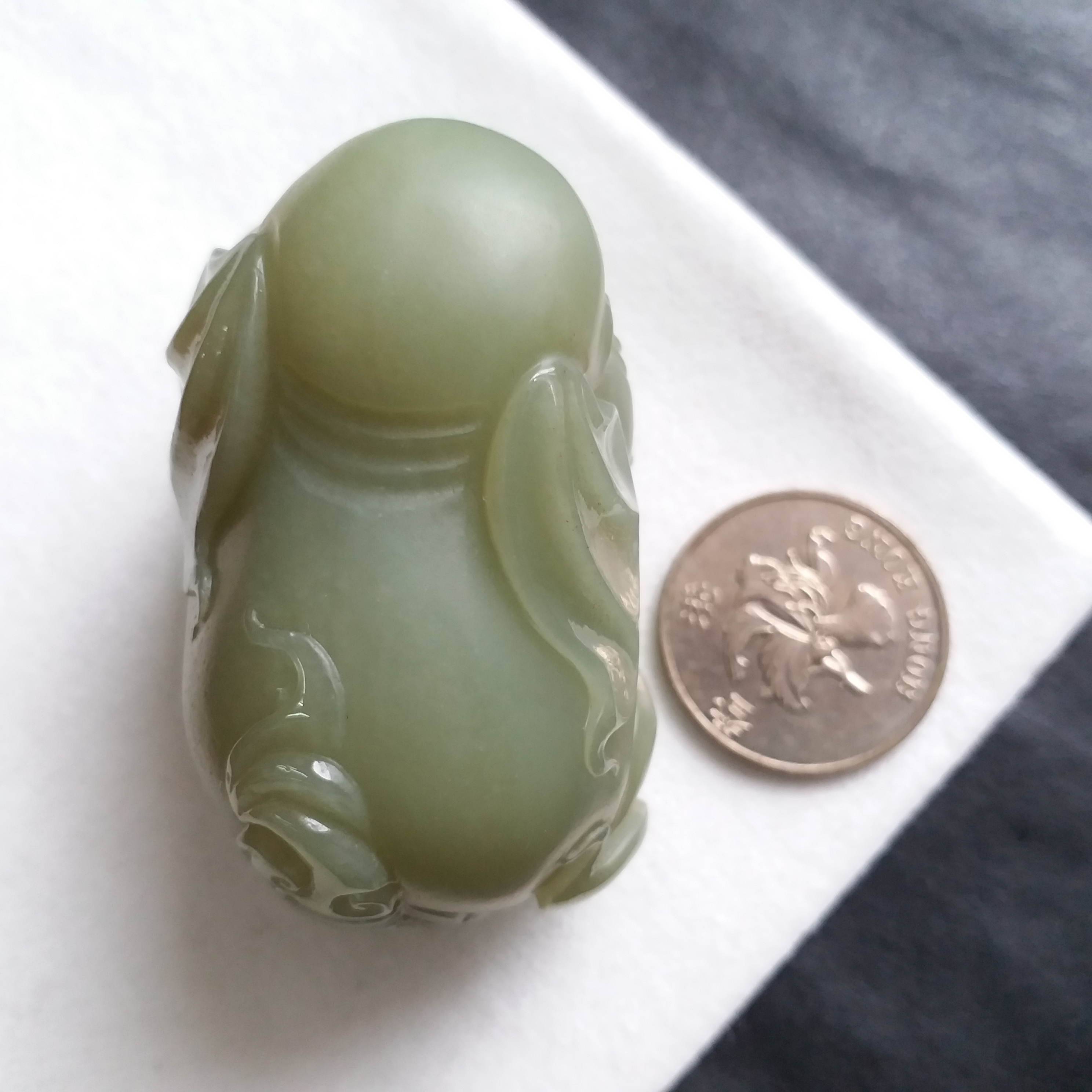 和田玉黃口料,油性好,過燈微結構,雕工精細,飽滿圓潤,適合作小擺件。古人云:「太平有象」,寓意:吉祥如意、也有吸財旺事業之願景。