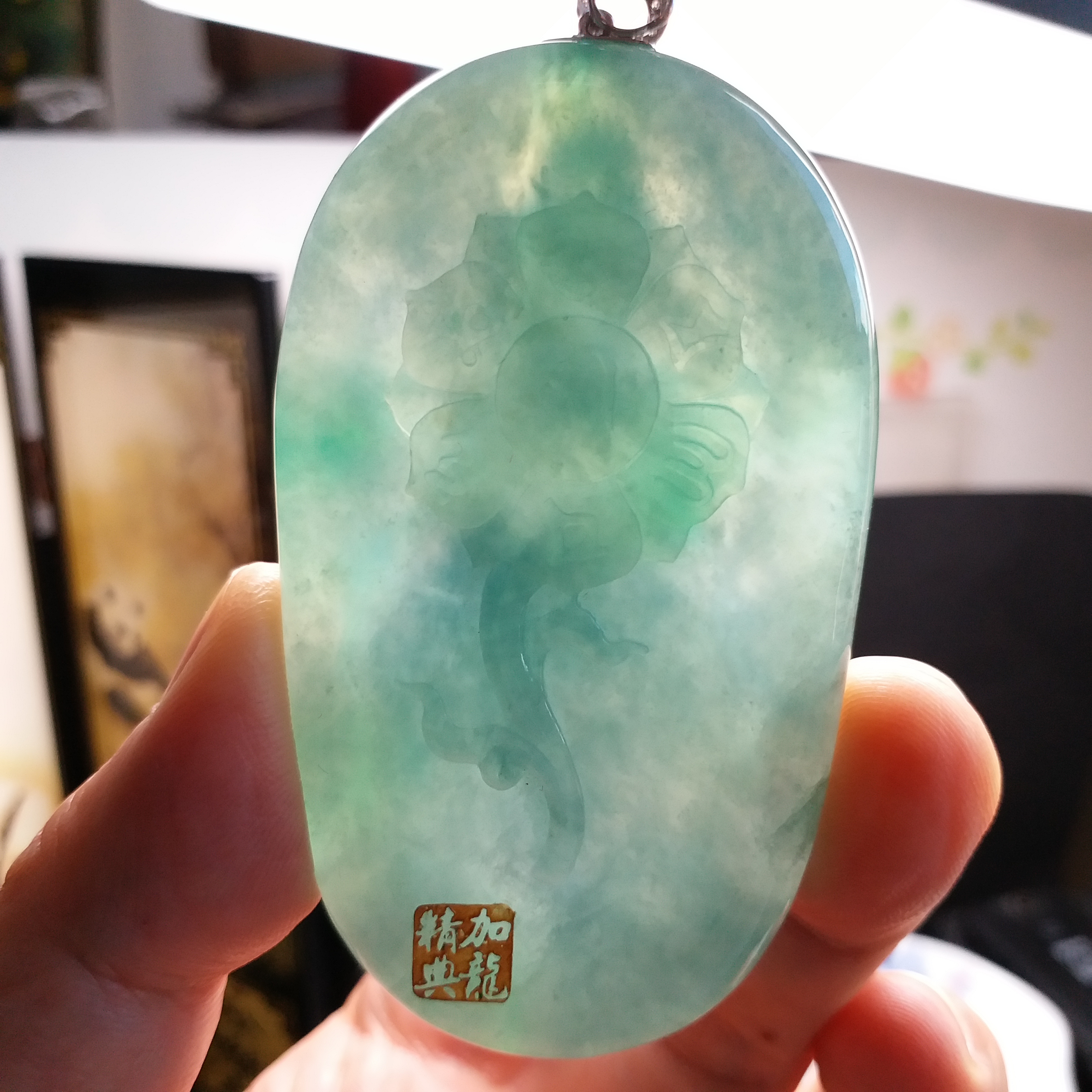 - 天然玉石在不同光線下,會呈現出不同的顏色變化;