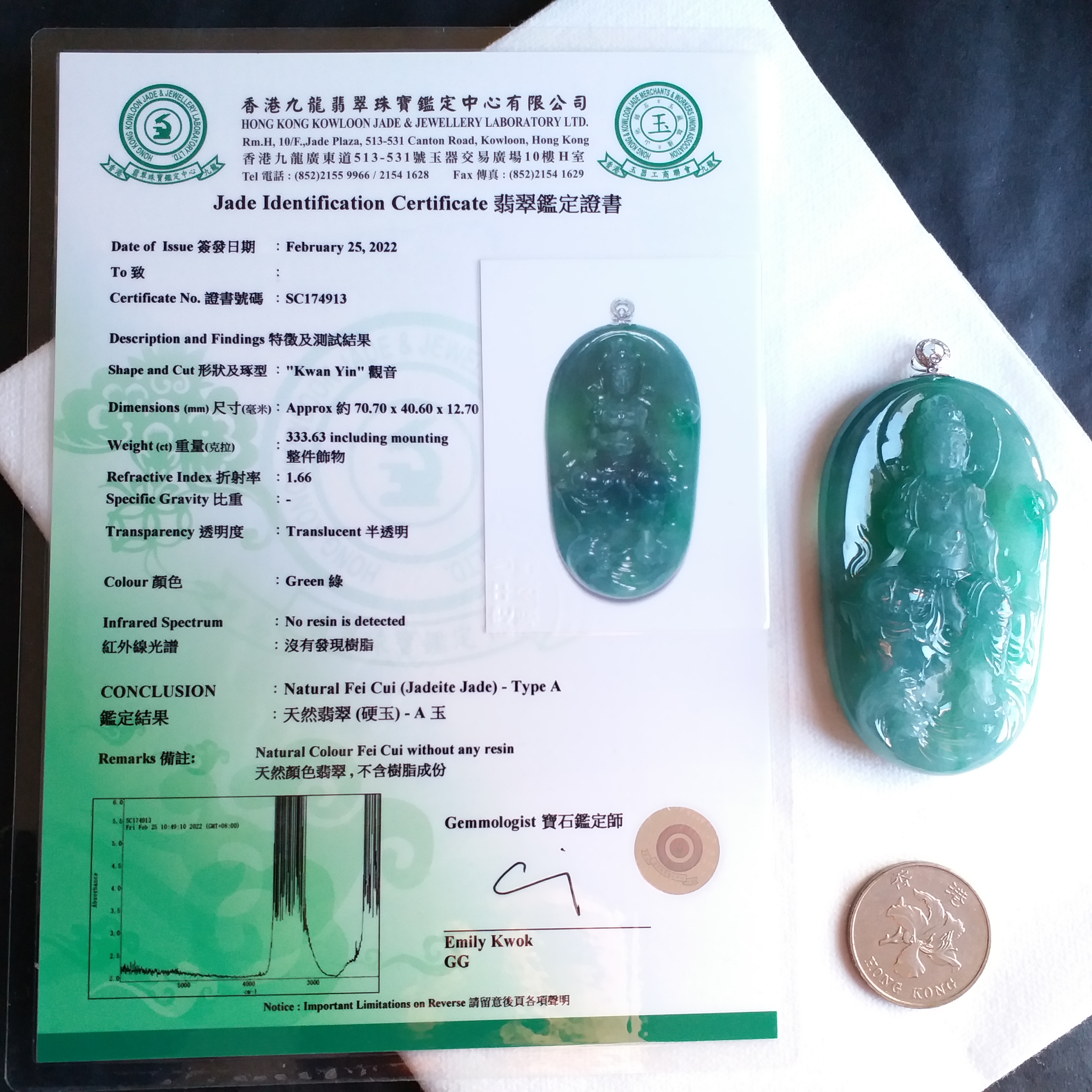 超過$1萬的貨品均包香港翡翠鑑定証書;