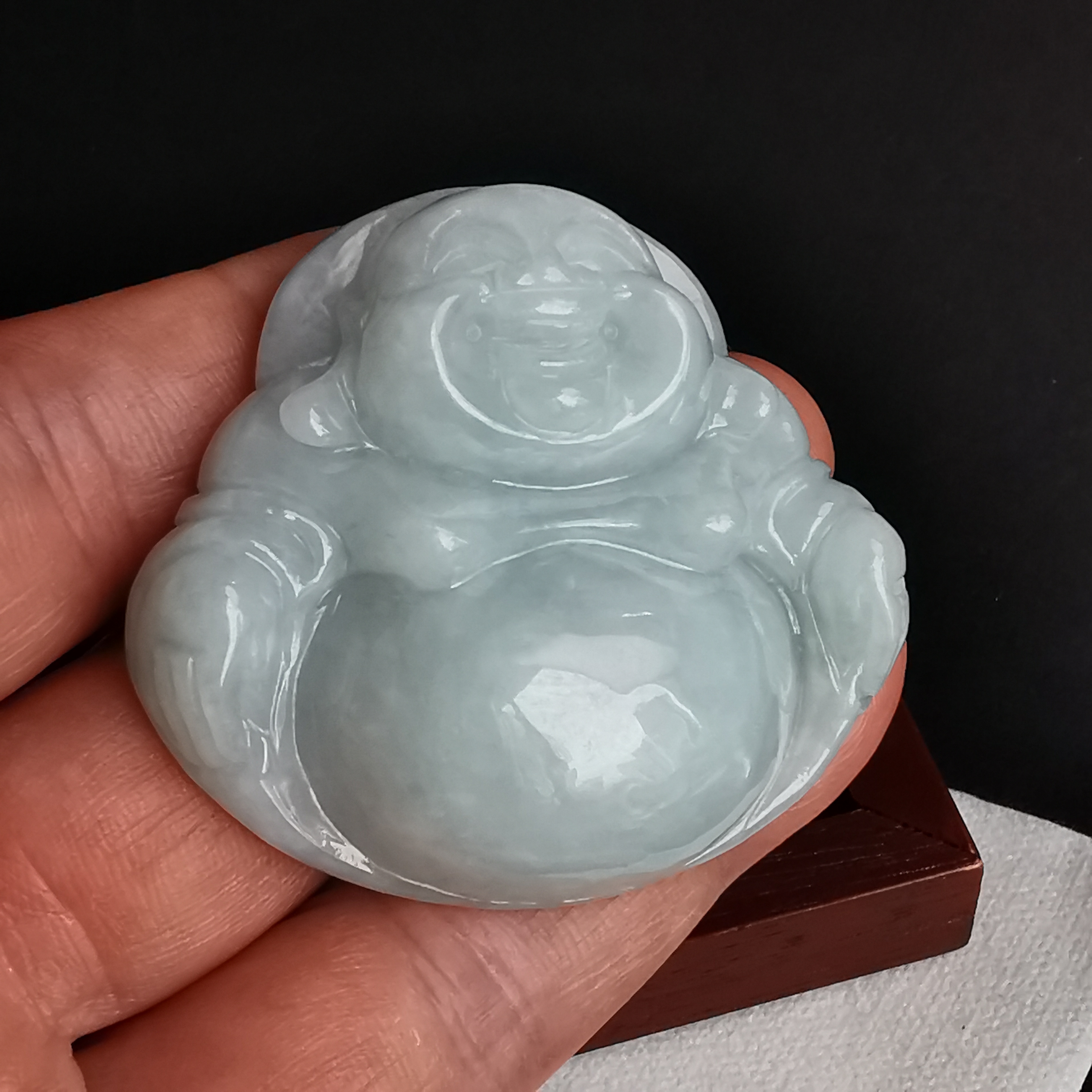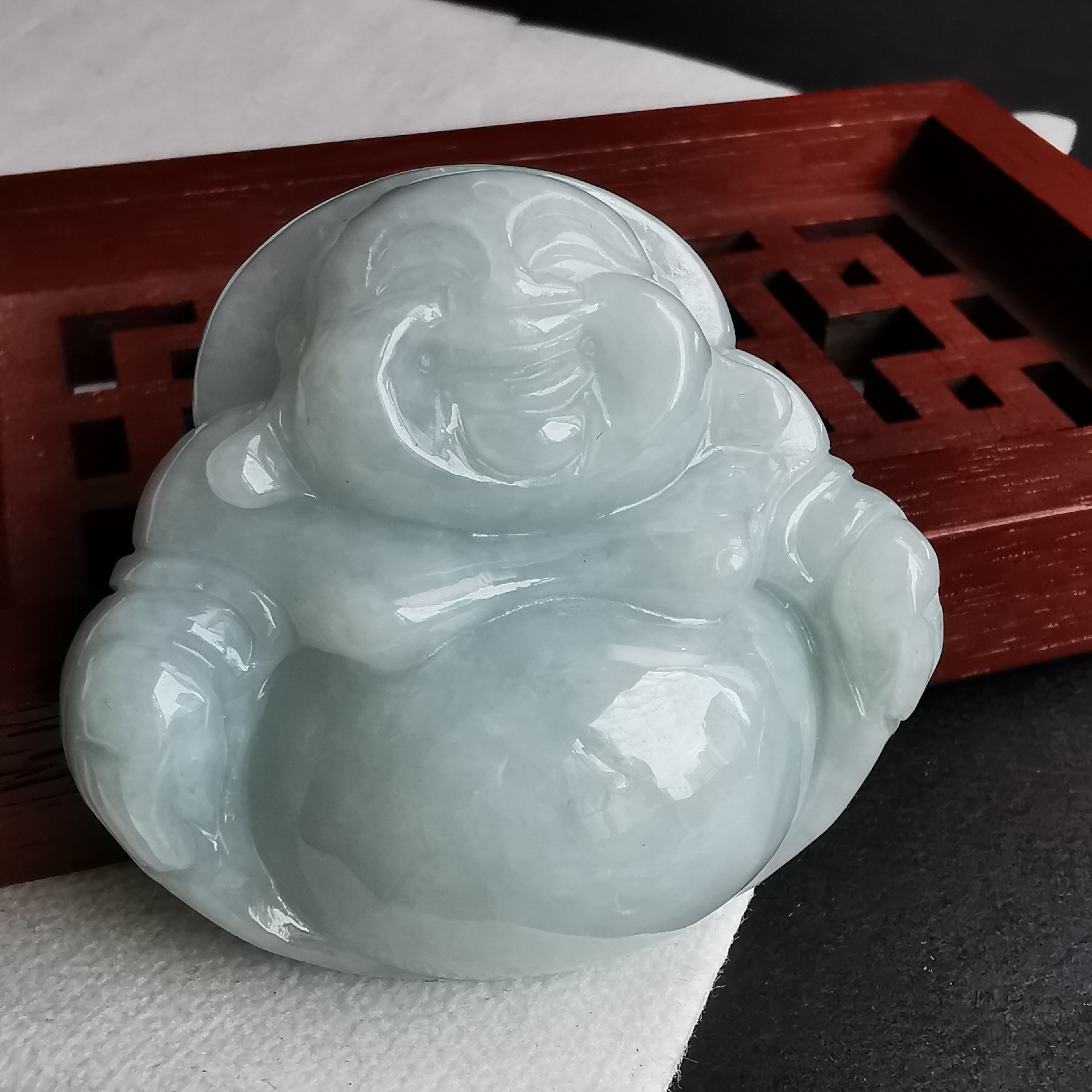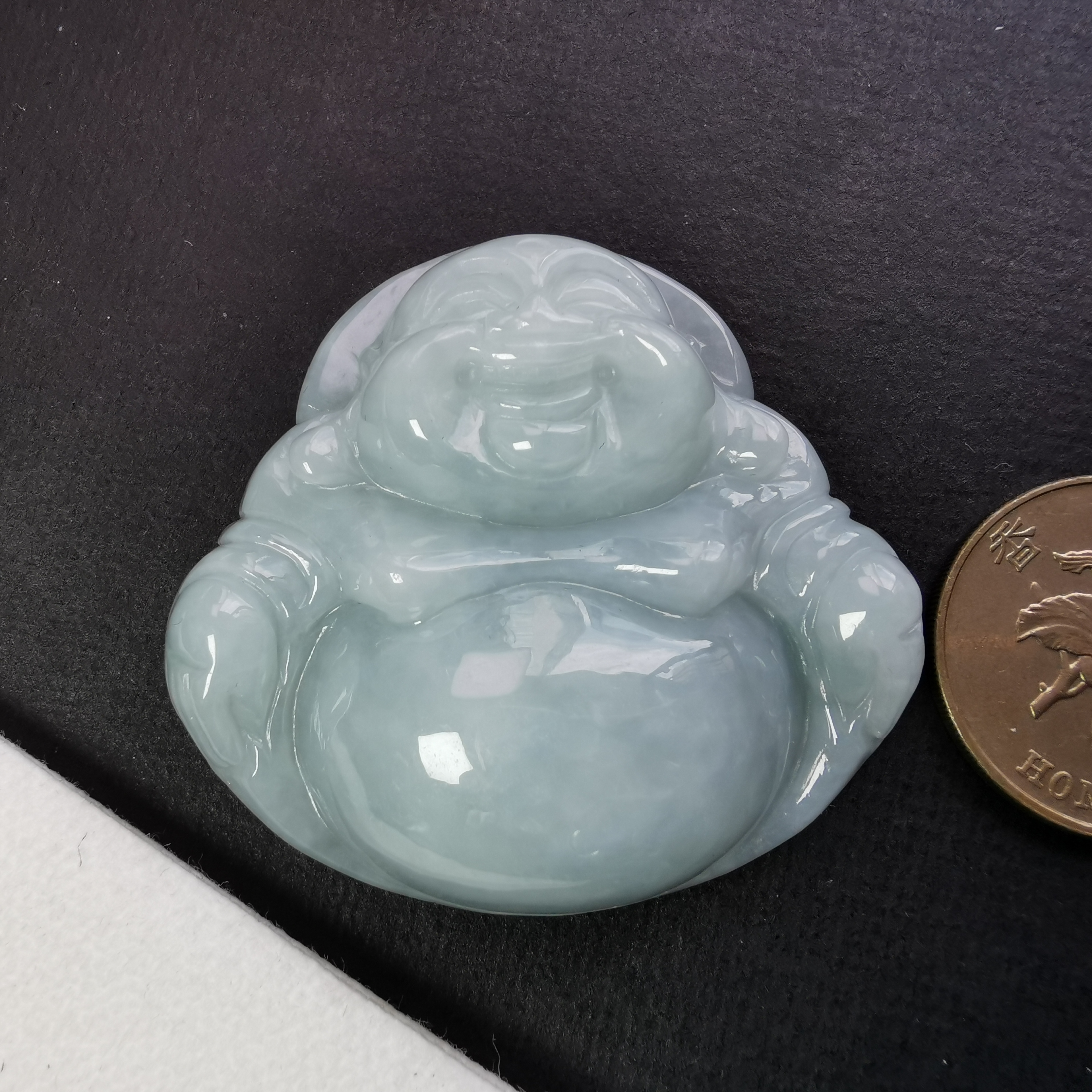 • 冰糯淺綠大笑佛, 天然翡翠A玉, 緬甸玉, Jade, Jadeite