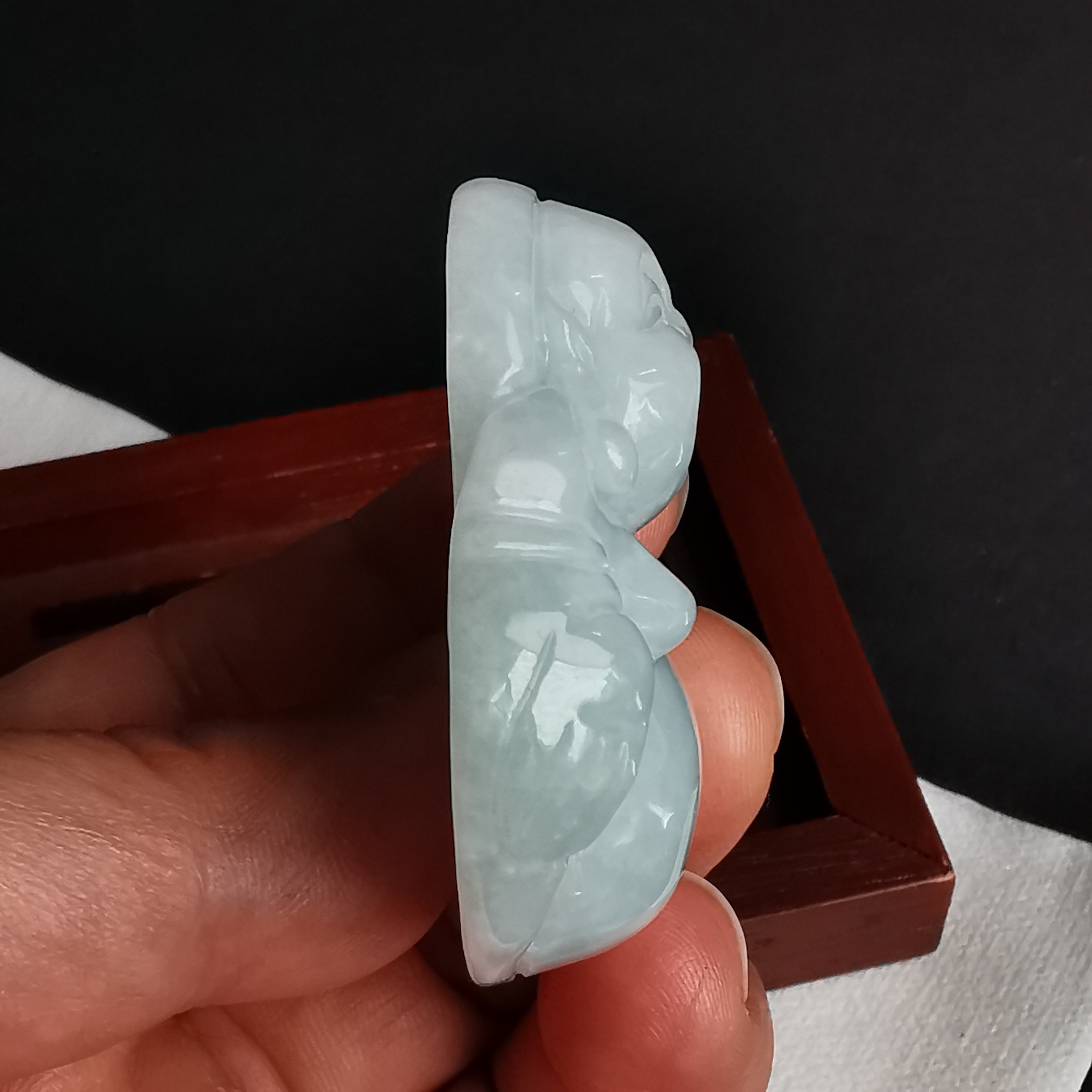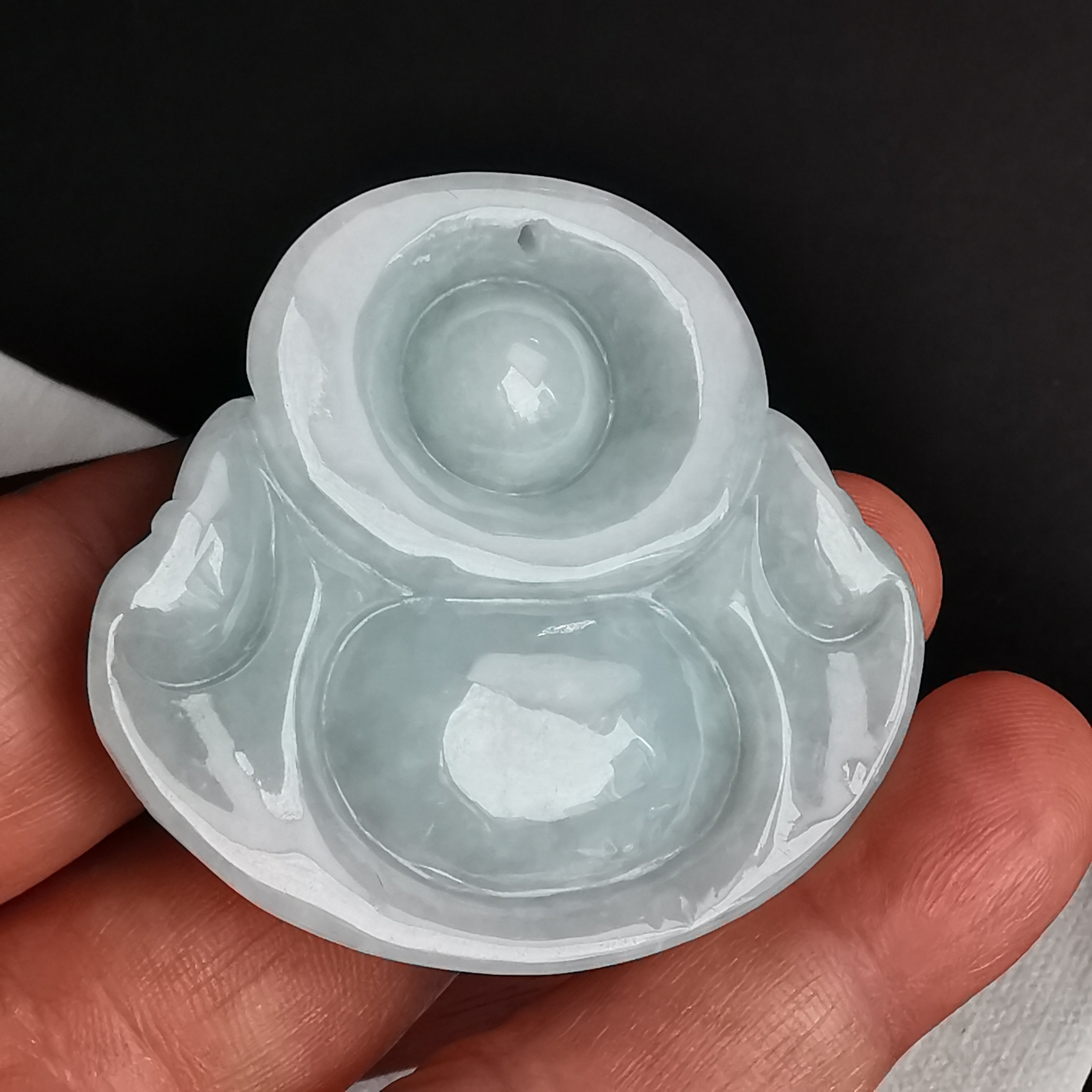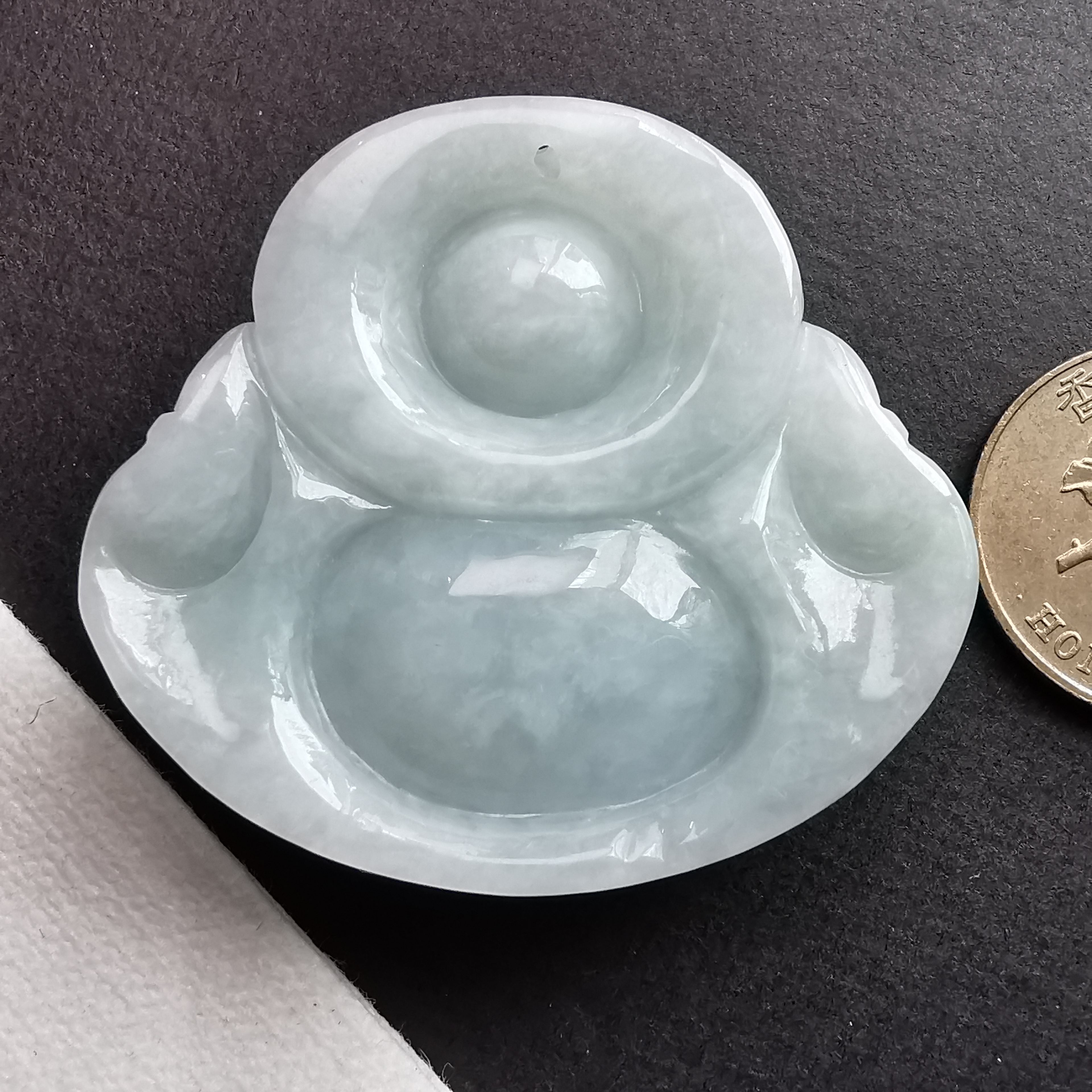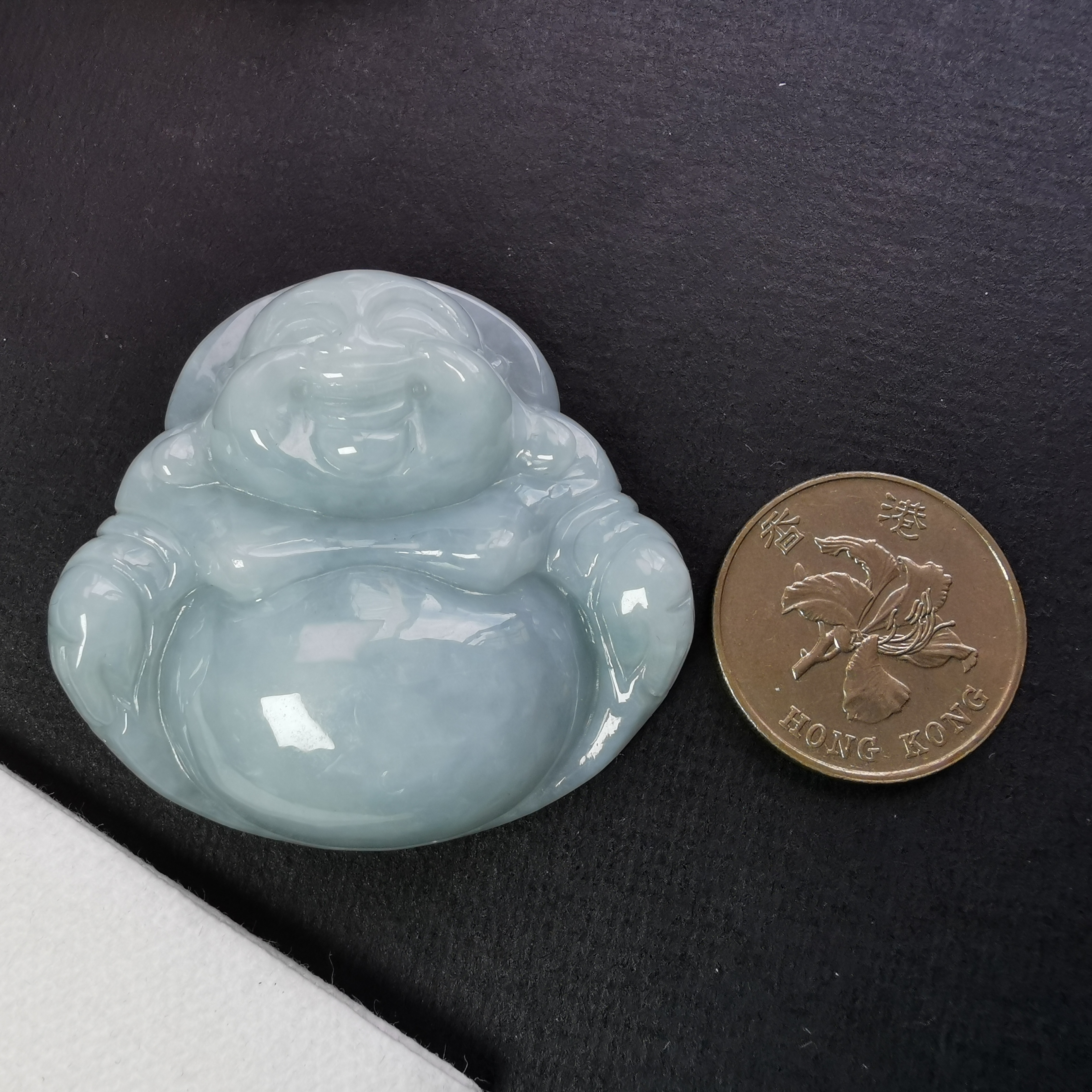 • 冰糯淺綠大笑佛, 天然翡翠A玉, 緬甸玉, Jade, Jadeite