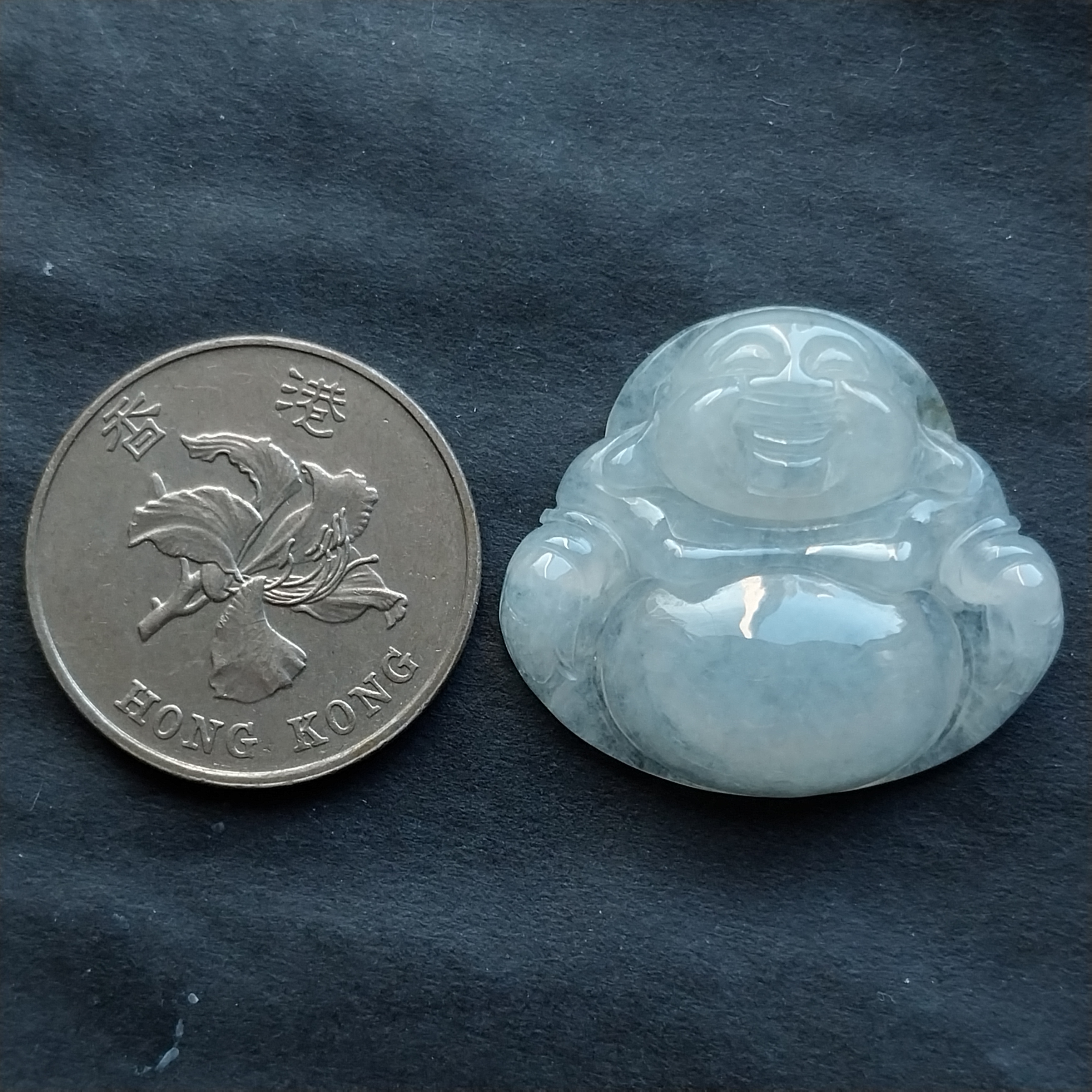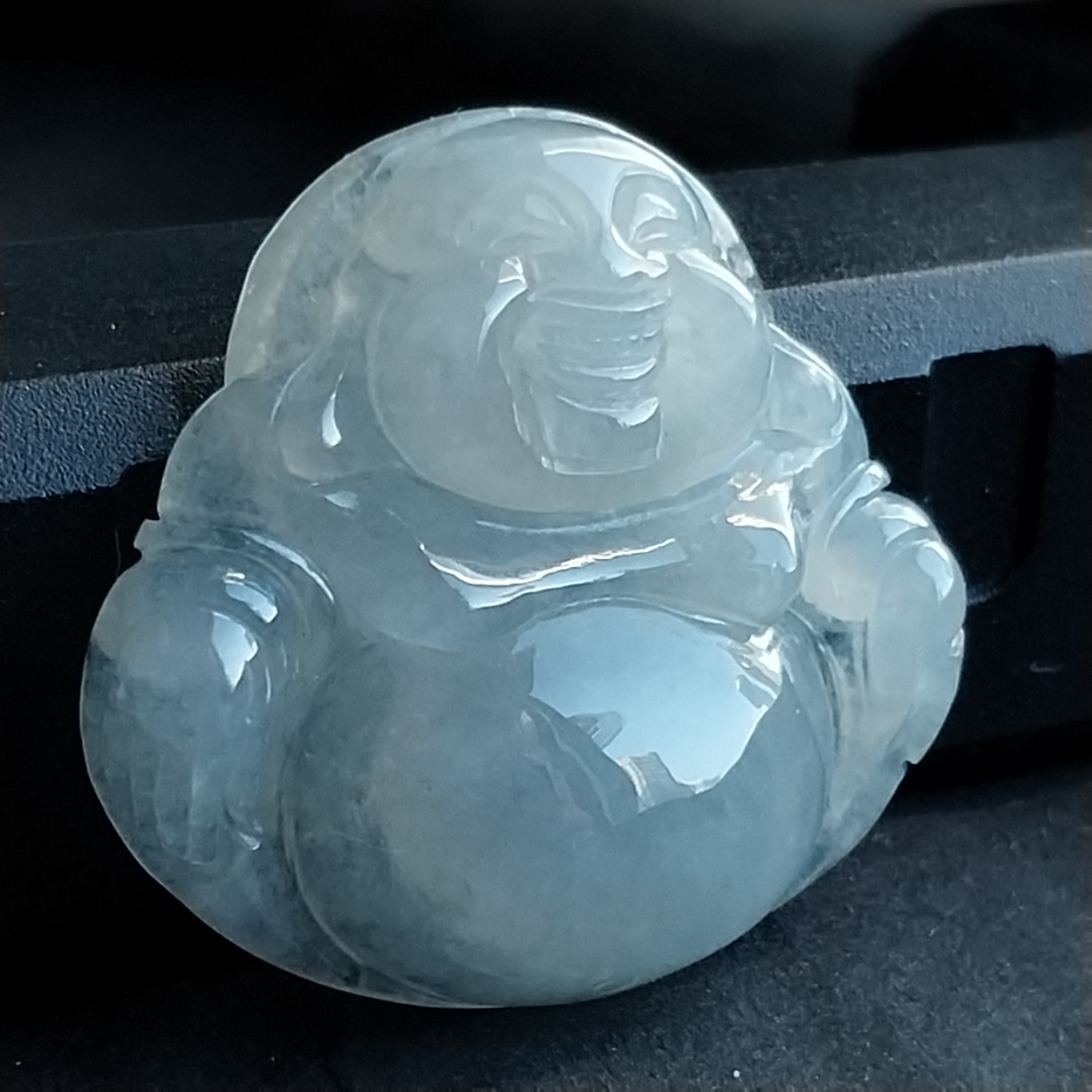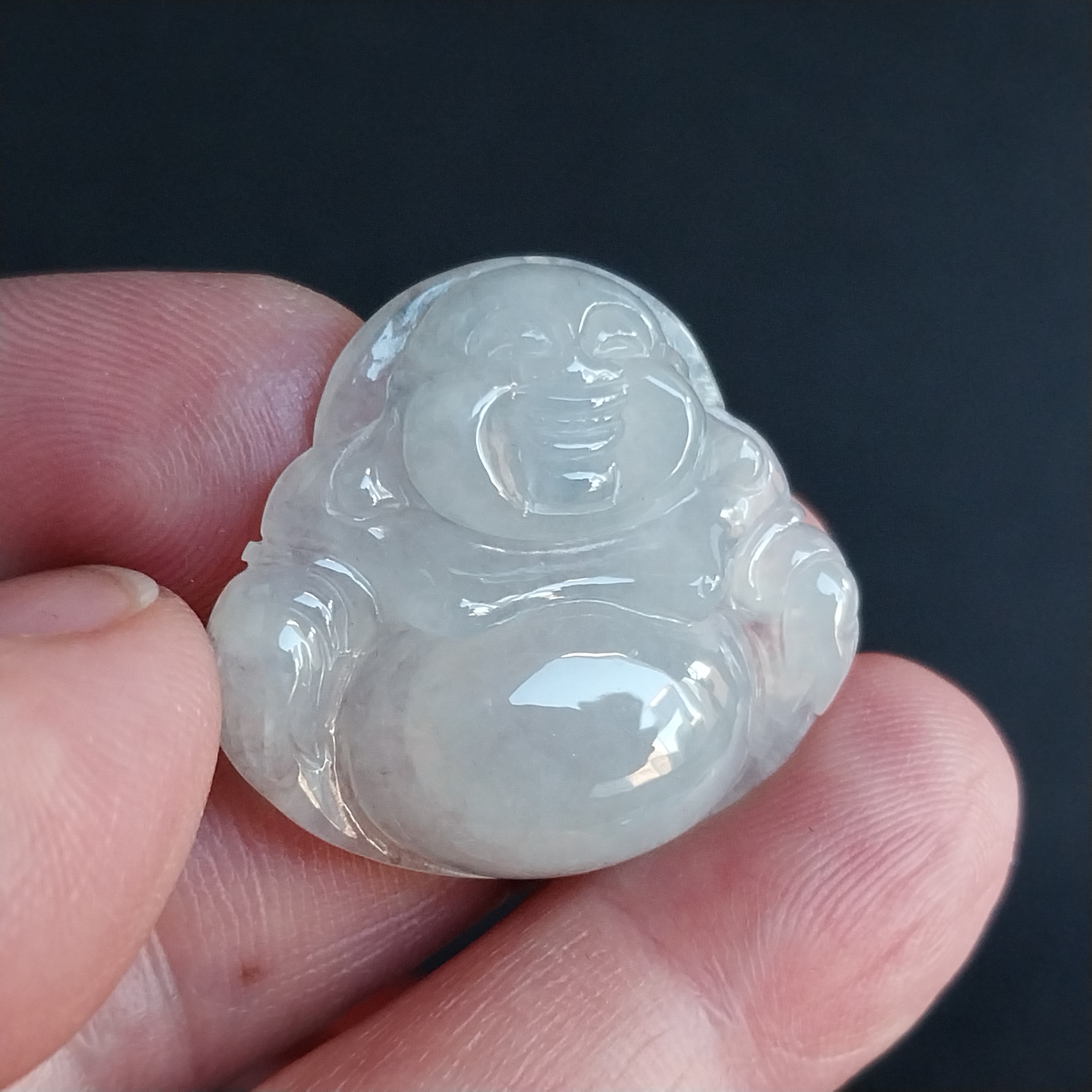 • 冰種笑佛, 天然翡翠A玉, 緬甸玉, Jade, Jadeite