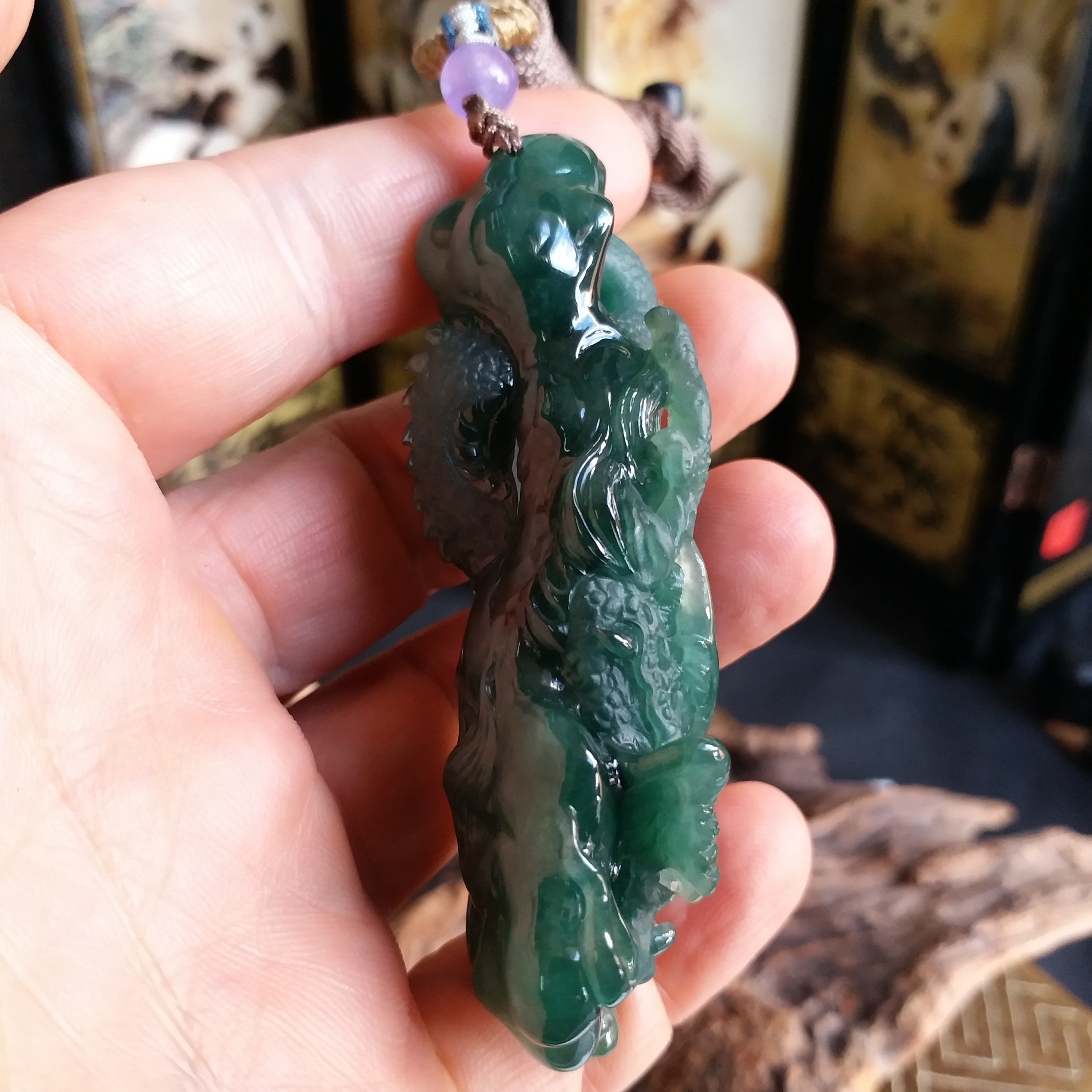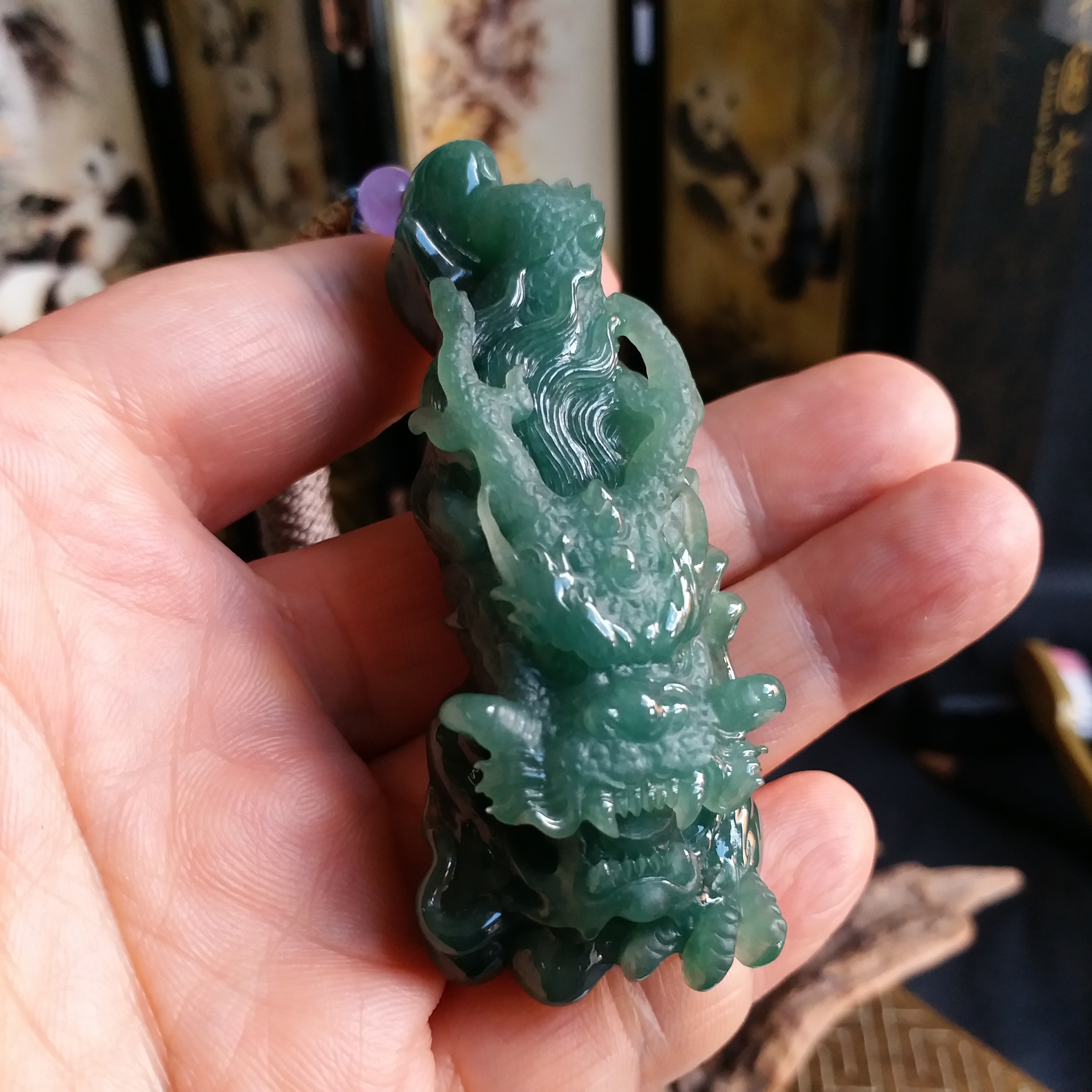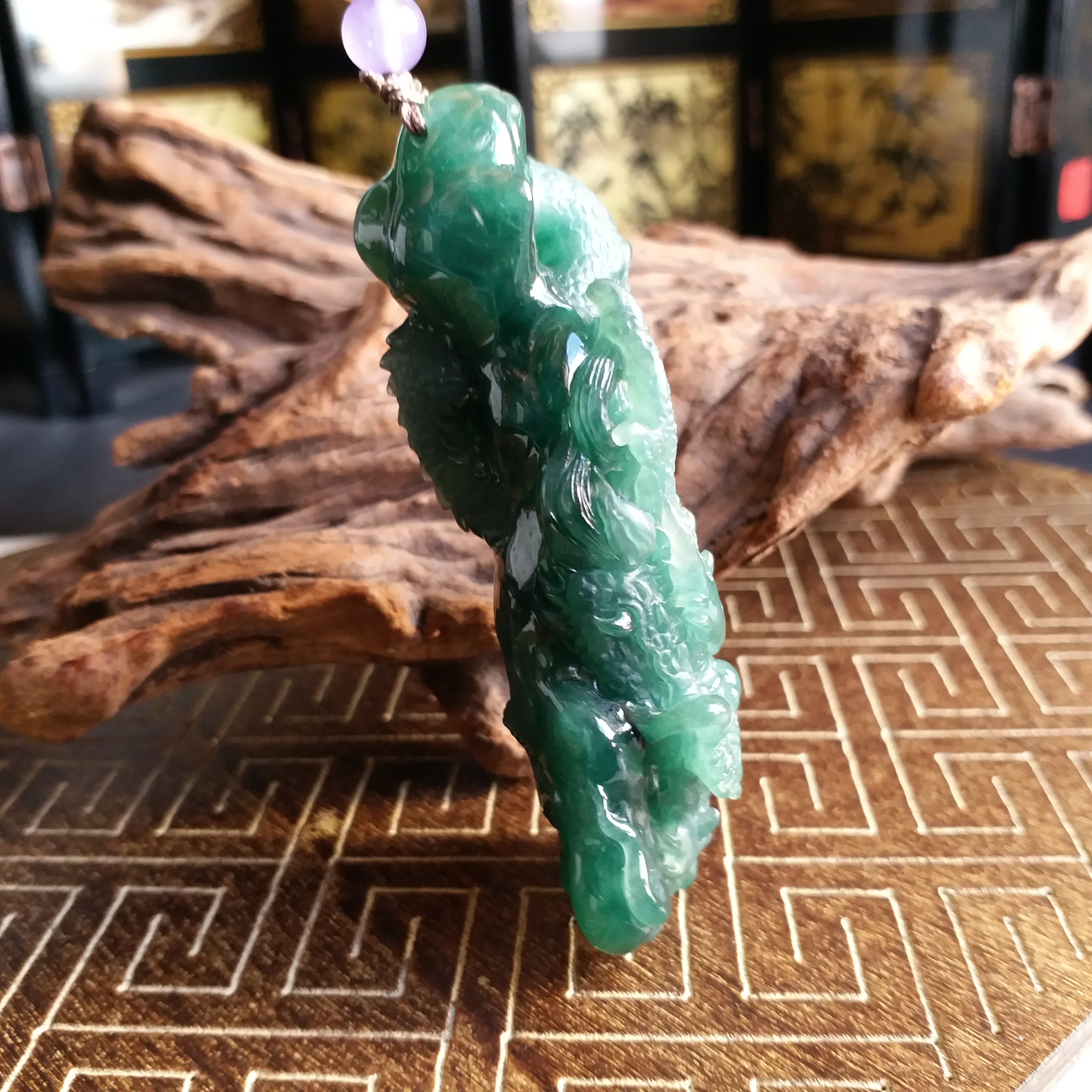• 滿綠神龍護主, 天然翡翠A玉, 緬甸玉, Jade, Jadeite