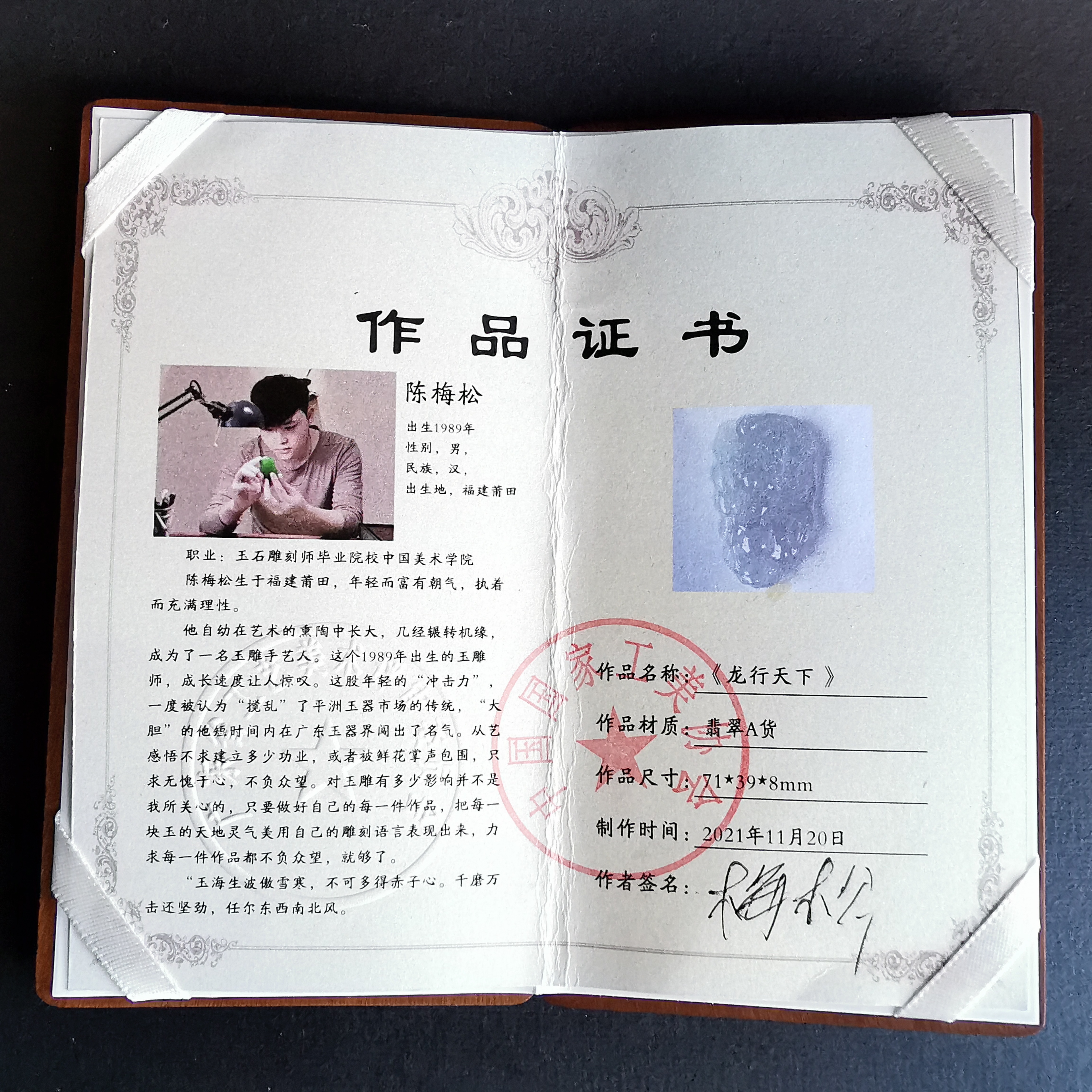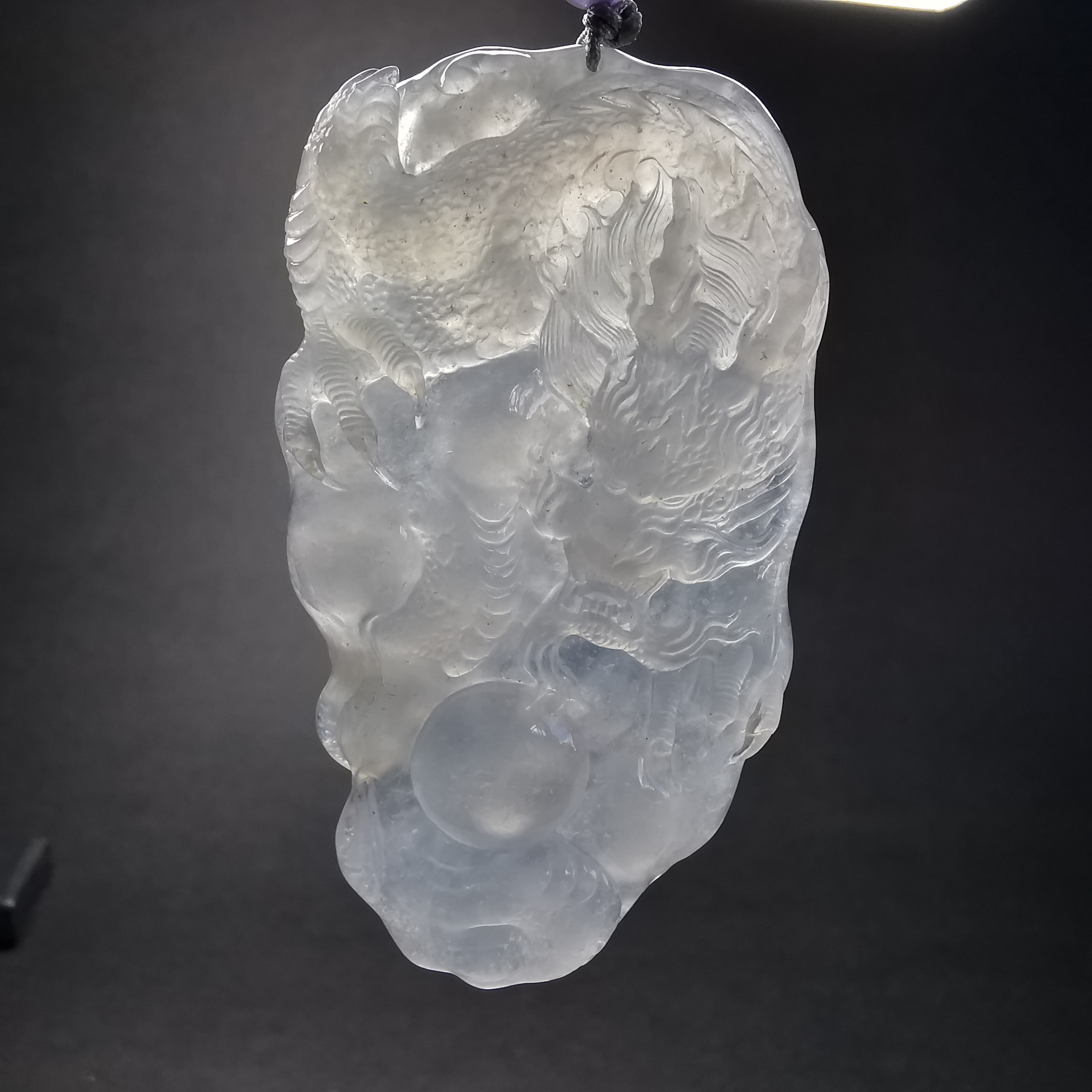 天然翡翠A玉,冰種冰白,水潤起光,大師作品,全手工精雕,完美無紋裂