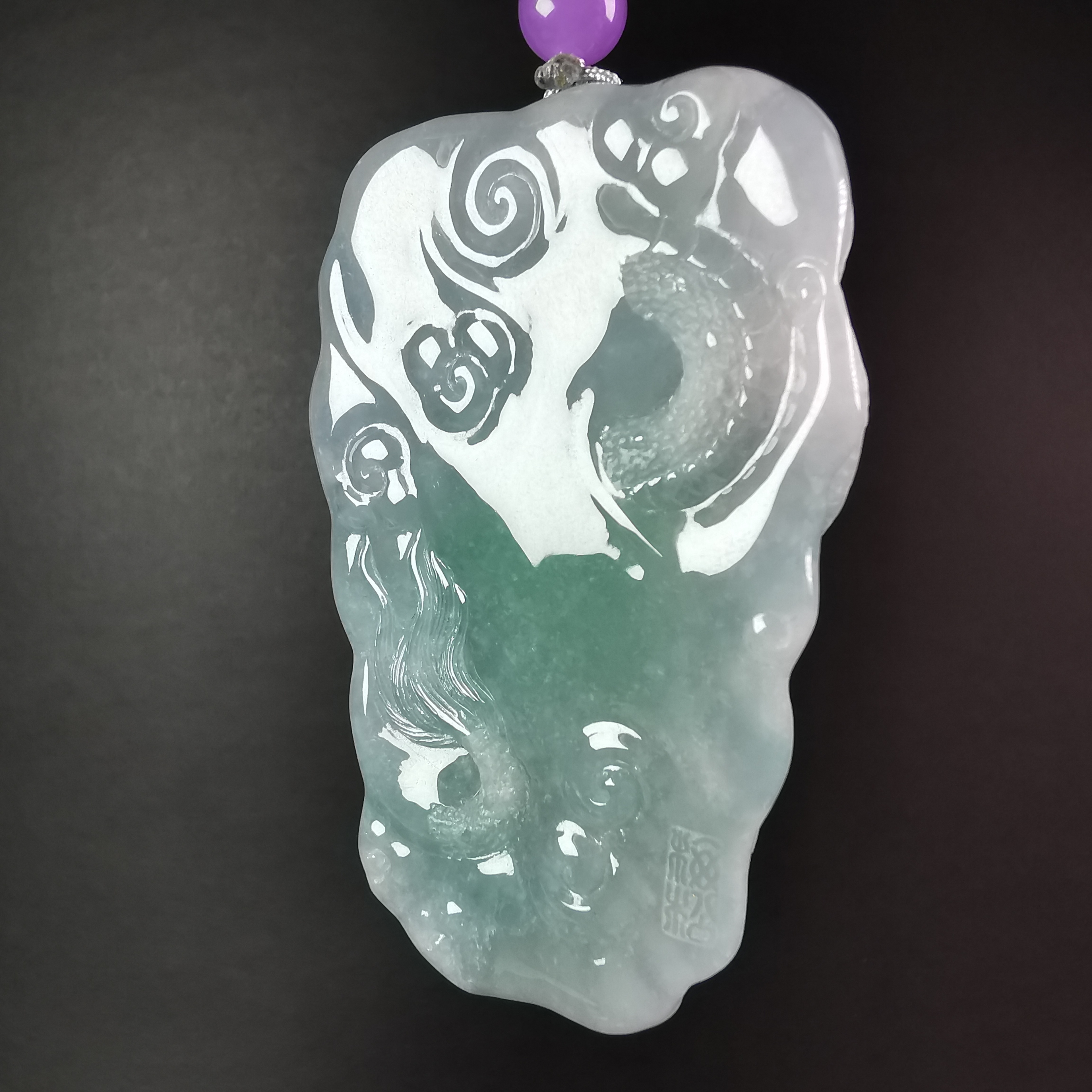 天然翡翠A玉,冰晴底,大師作品,全手工精雕,雕工精湛,完美