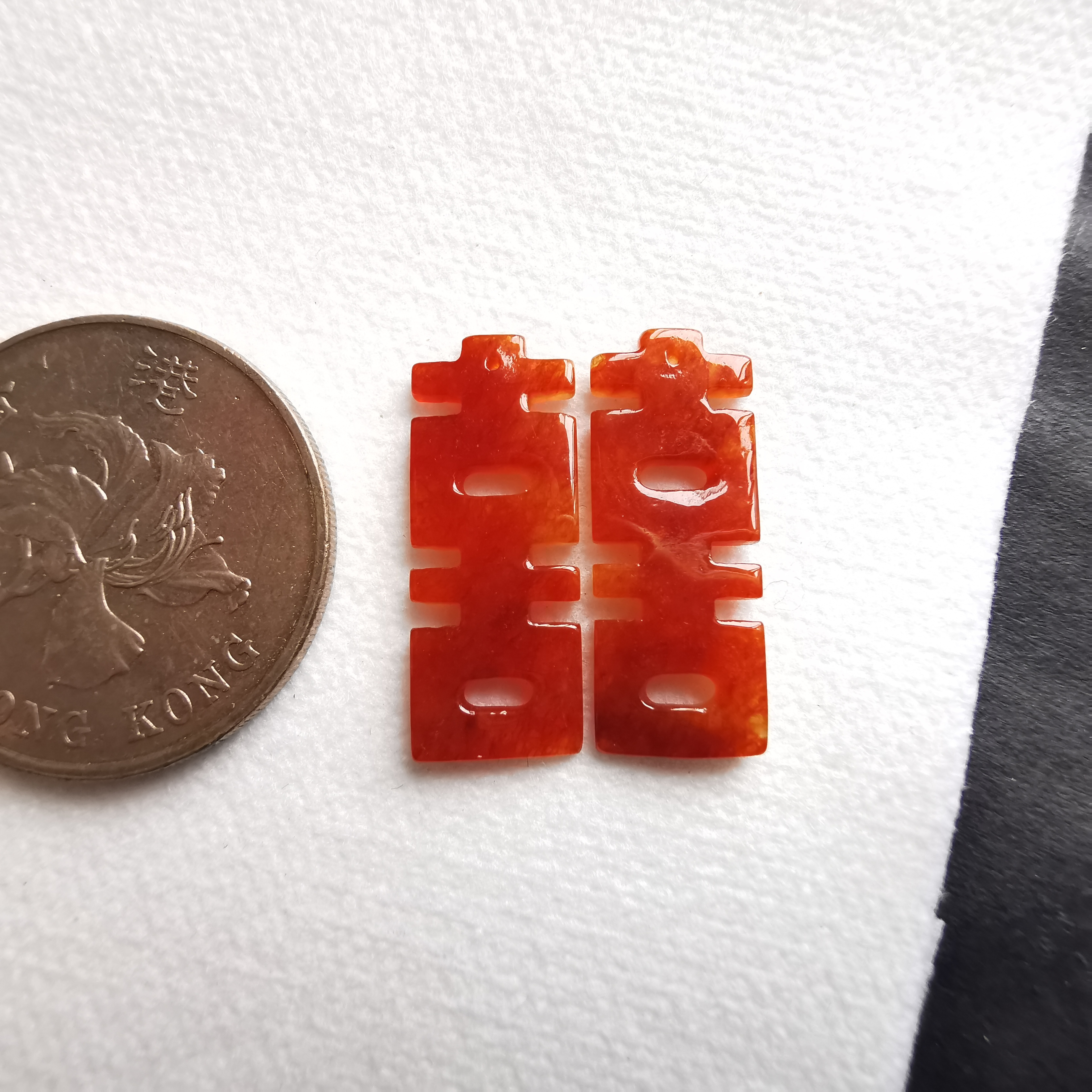 • 紅翡雙喜, 天然翡翠A玉, 緬甸玉, Jade, Jadeite