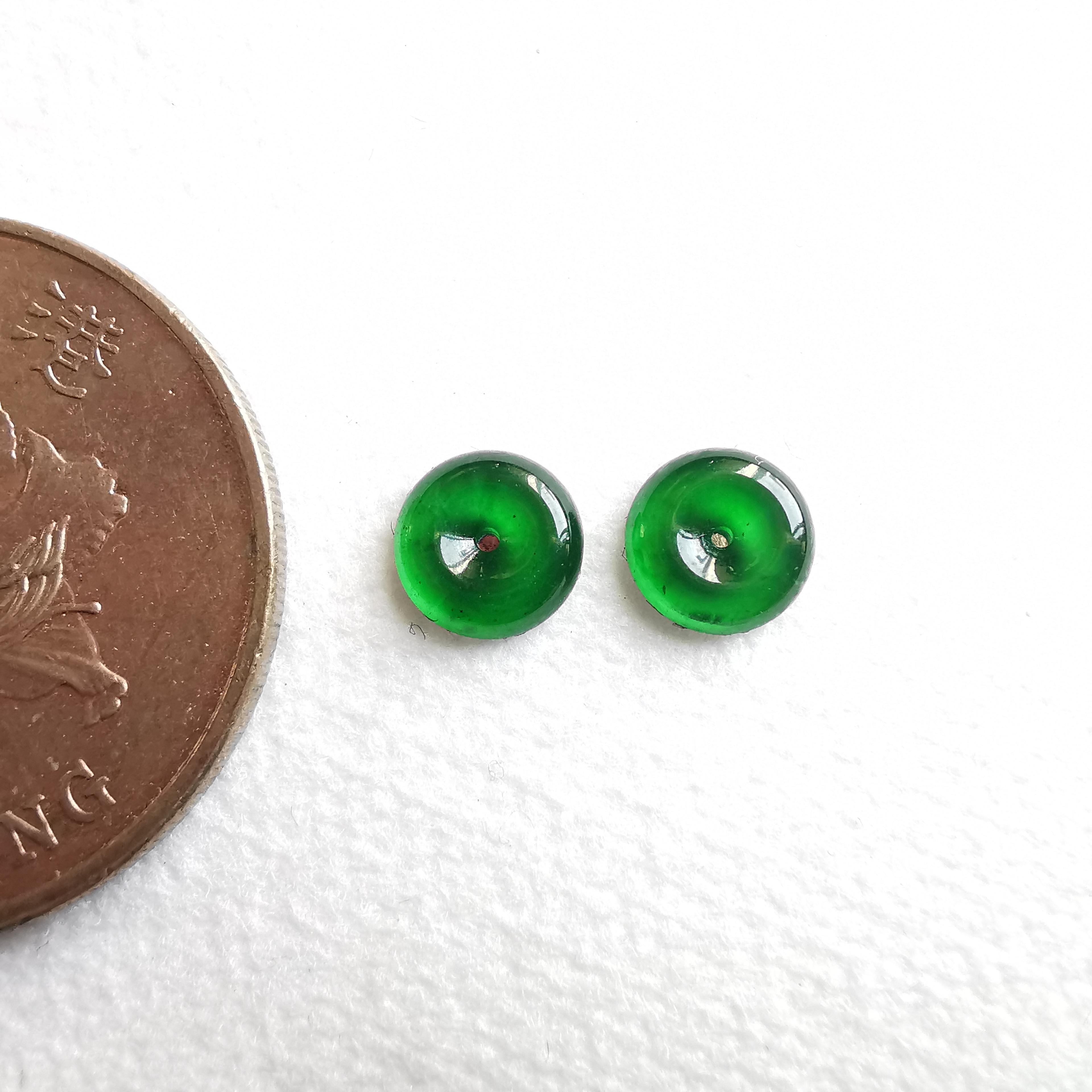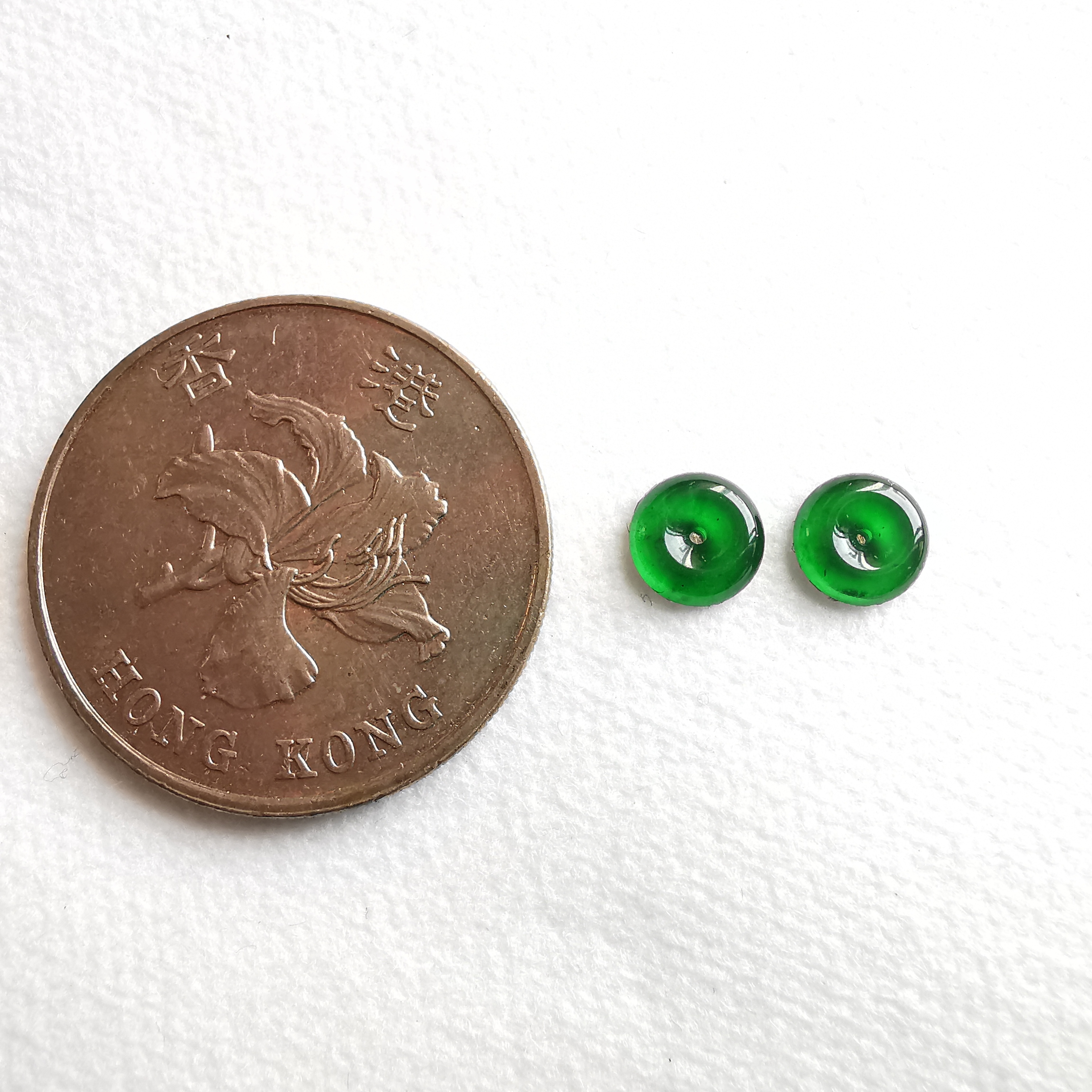 • 冰滿綠小平安扣一對, 天然翡翠A玉, 緬甸玉, Jade, Jadeite