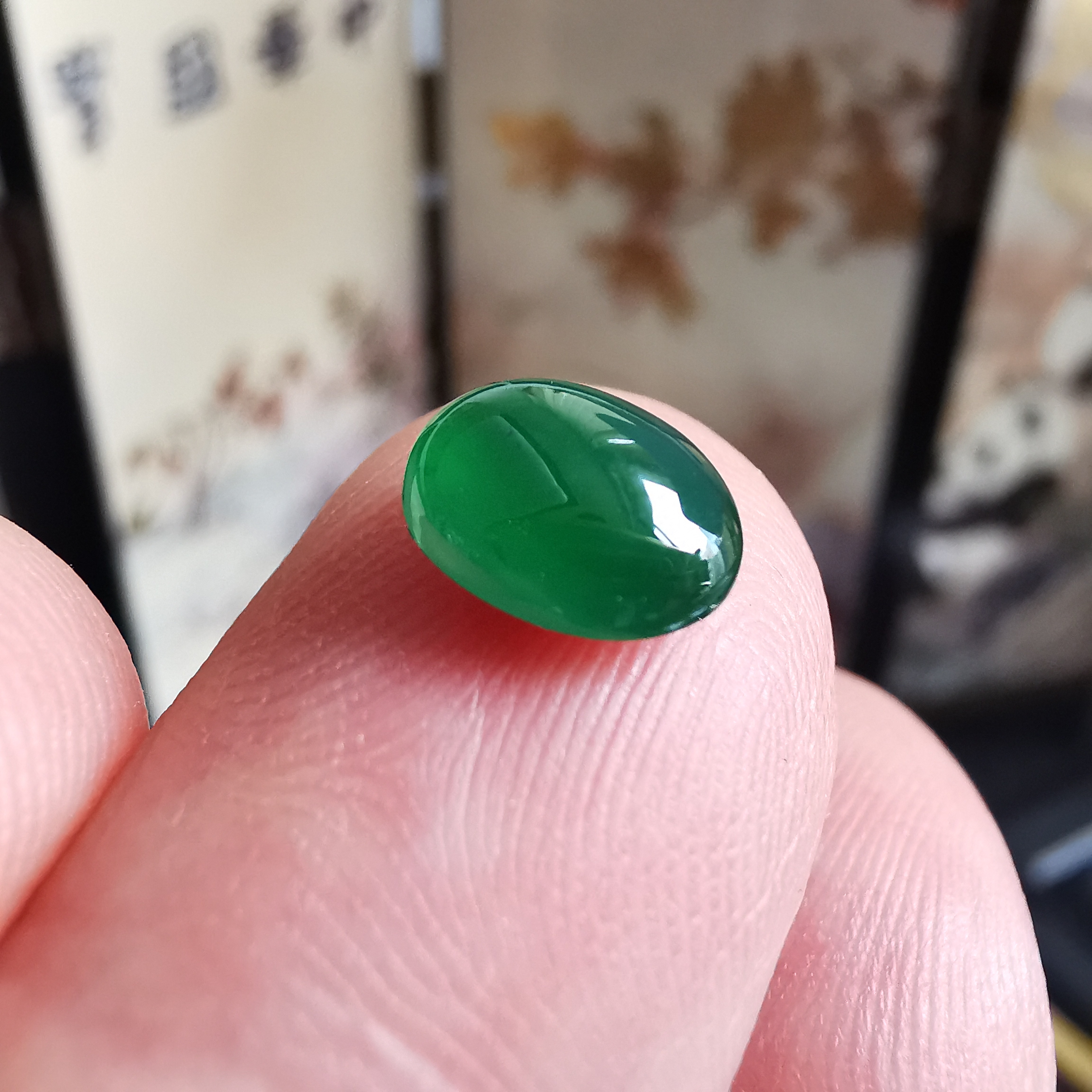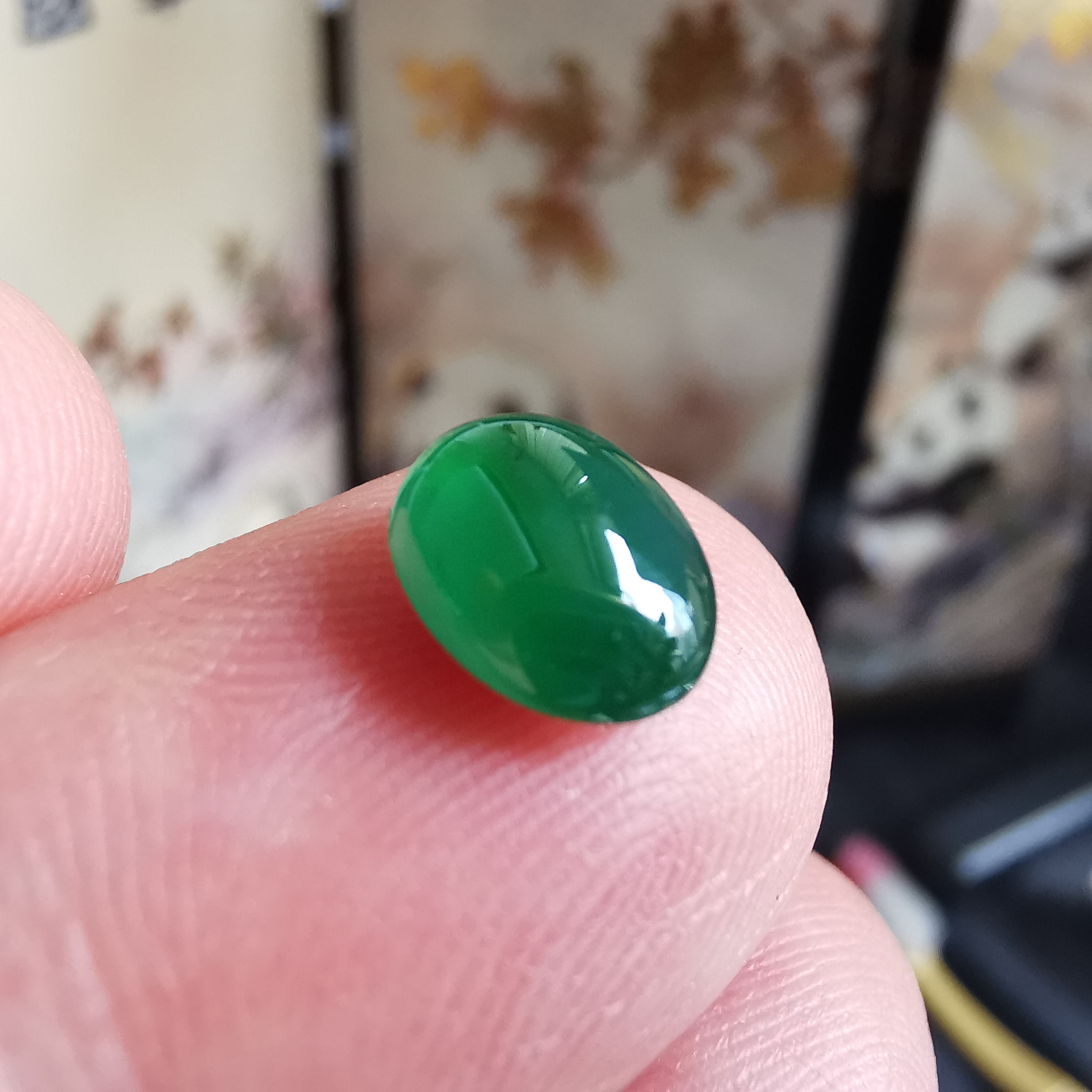 • 老坑冰綠蛋面, 天然翡翠A玉, 緬甸玉, Jade, Jadeite