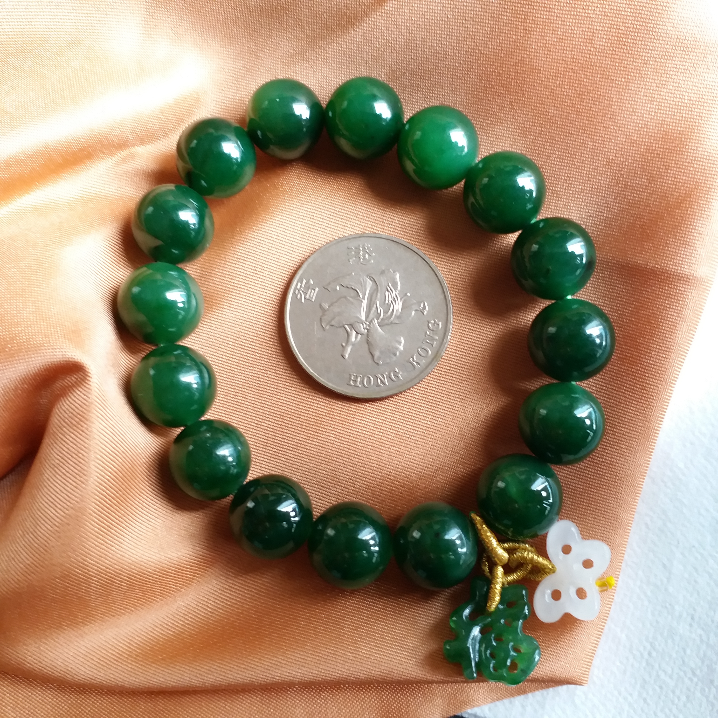 • 和田玉碧玉珠串 (12mm直徑), 天然和田玉軟玉