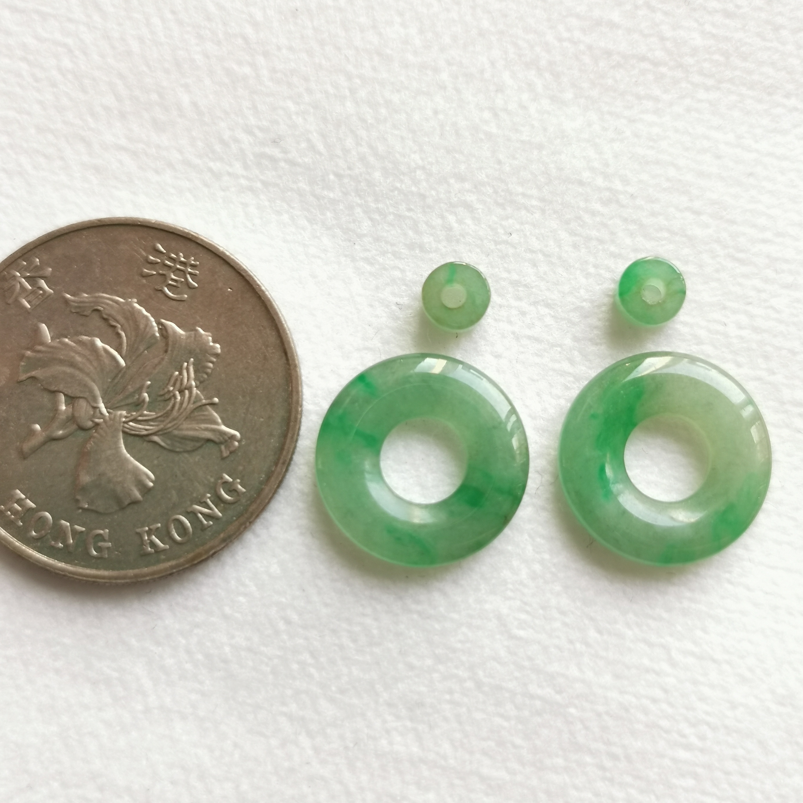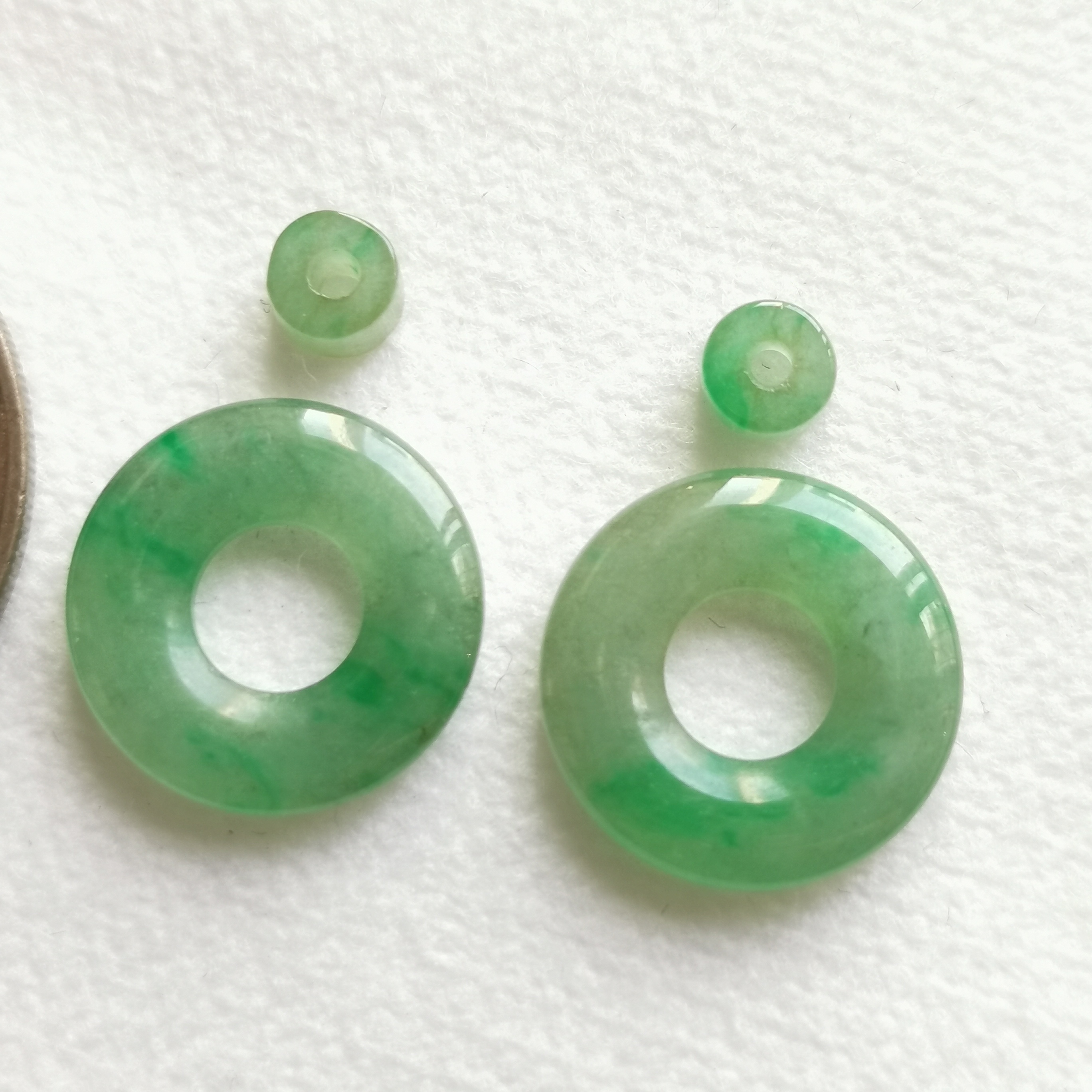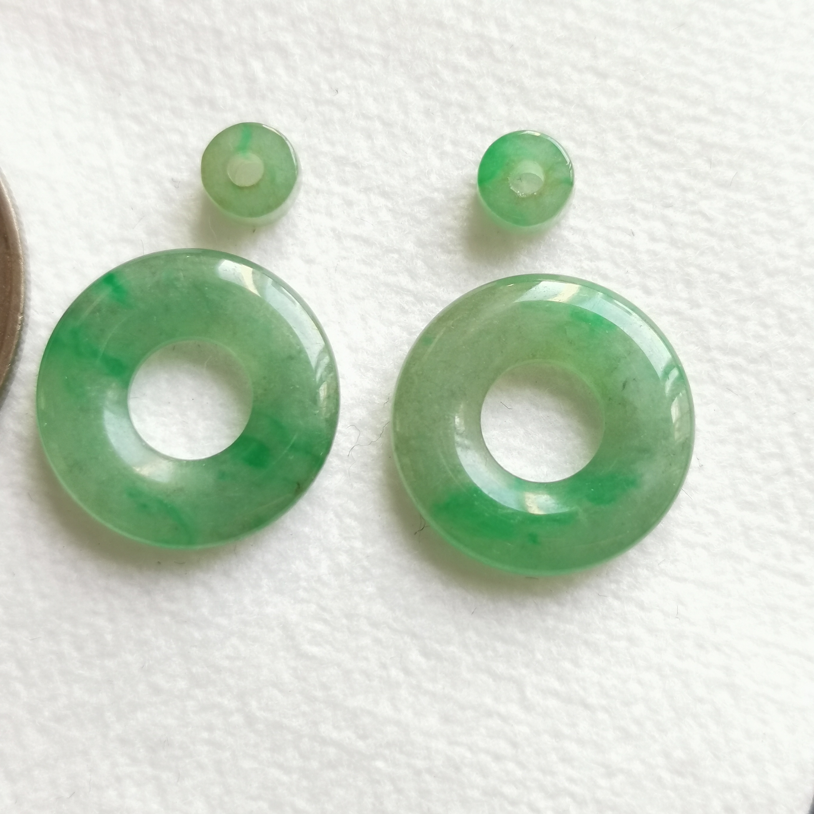 • 飄陽綠母子平安扣一對, 天然翡翠A玉, 緬甸玉, Jade, Jadeite