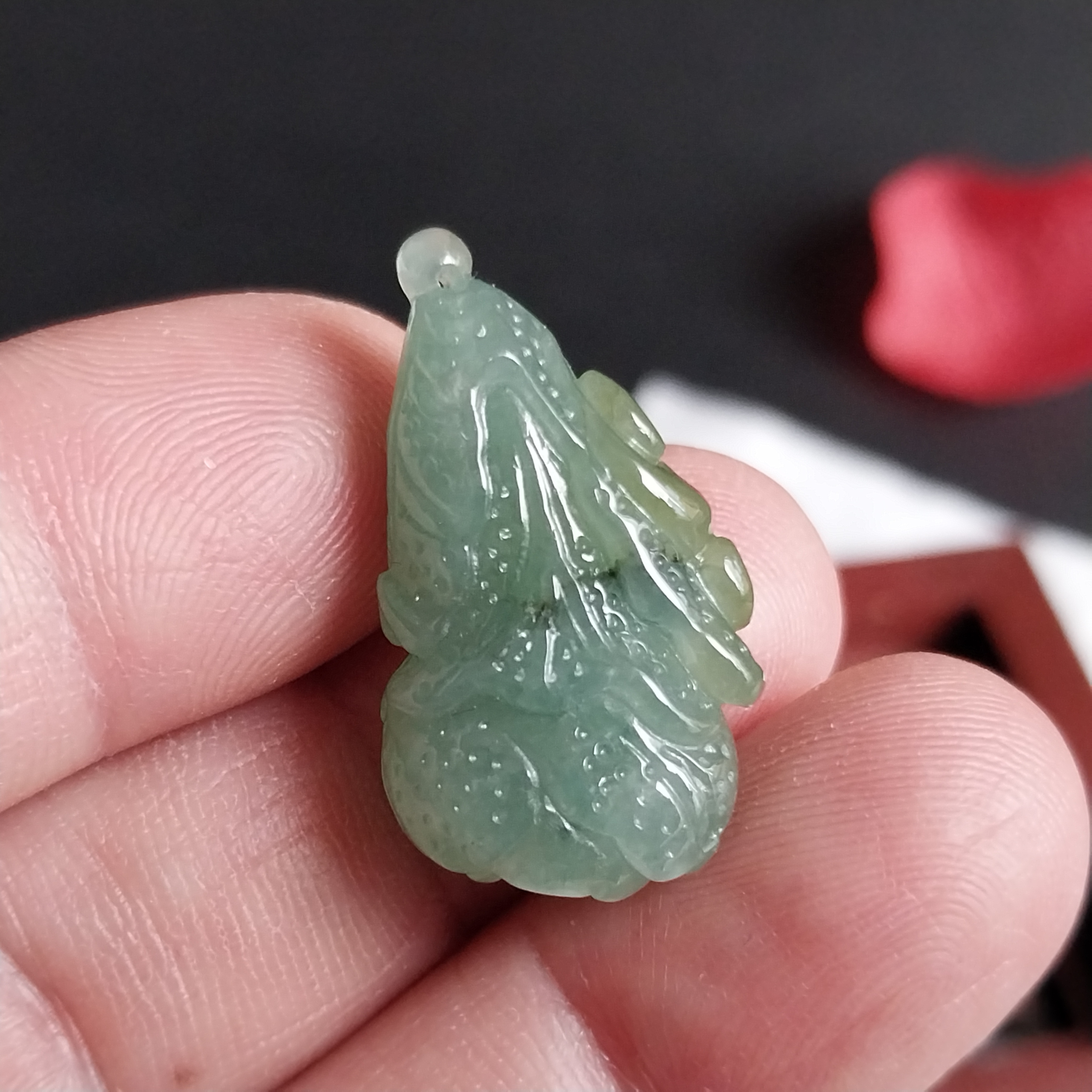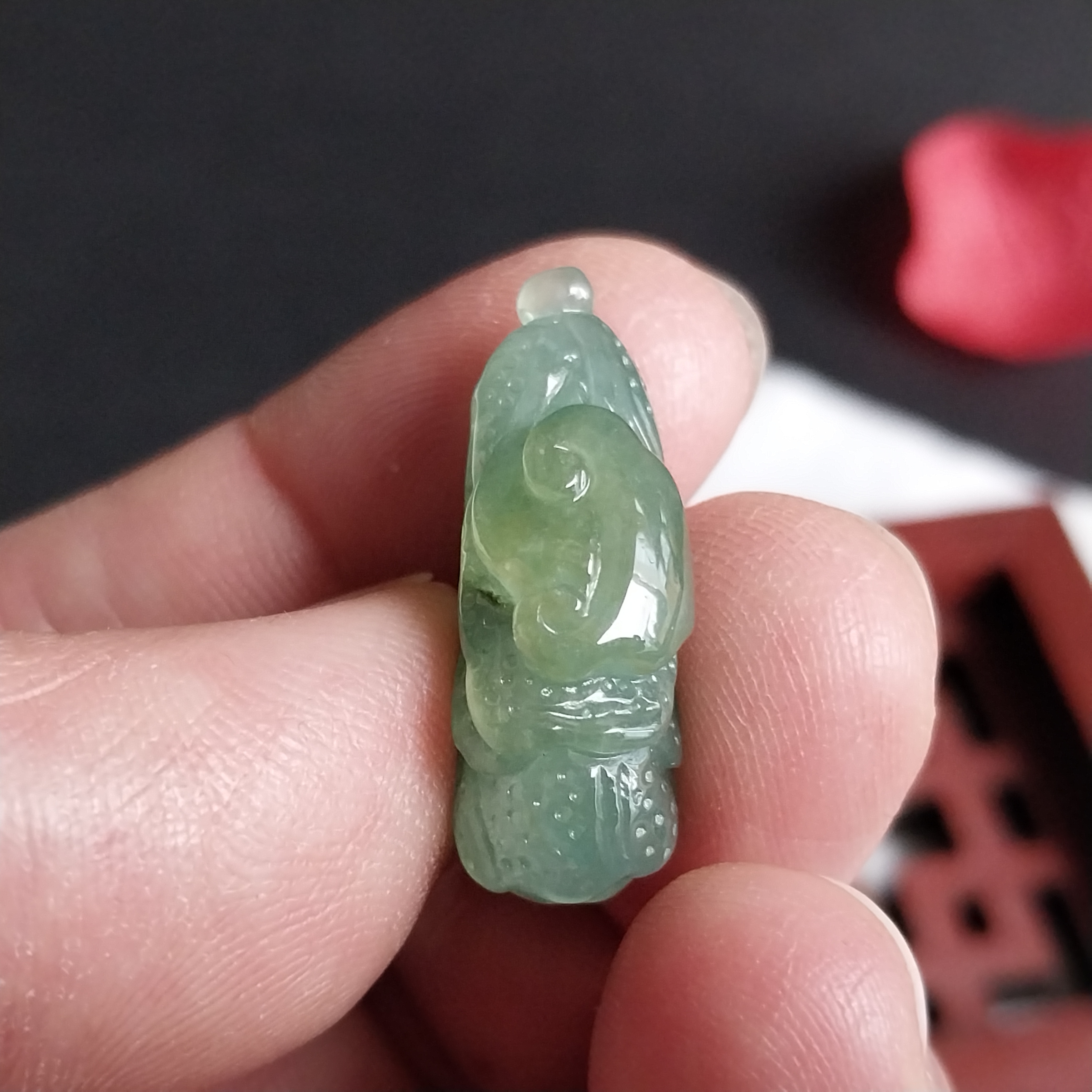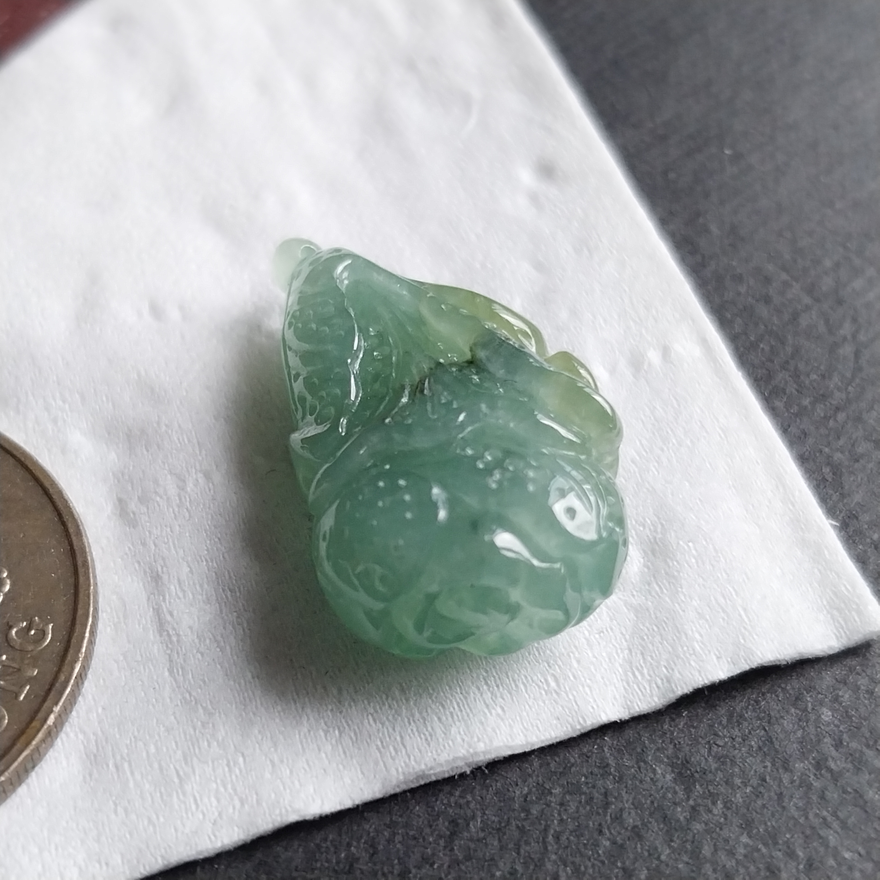 • 冰綠百財小吊墜, 天然翡翠A玉, 緬甸玉, Jade, Jadeite