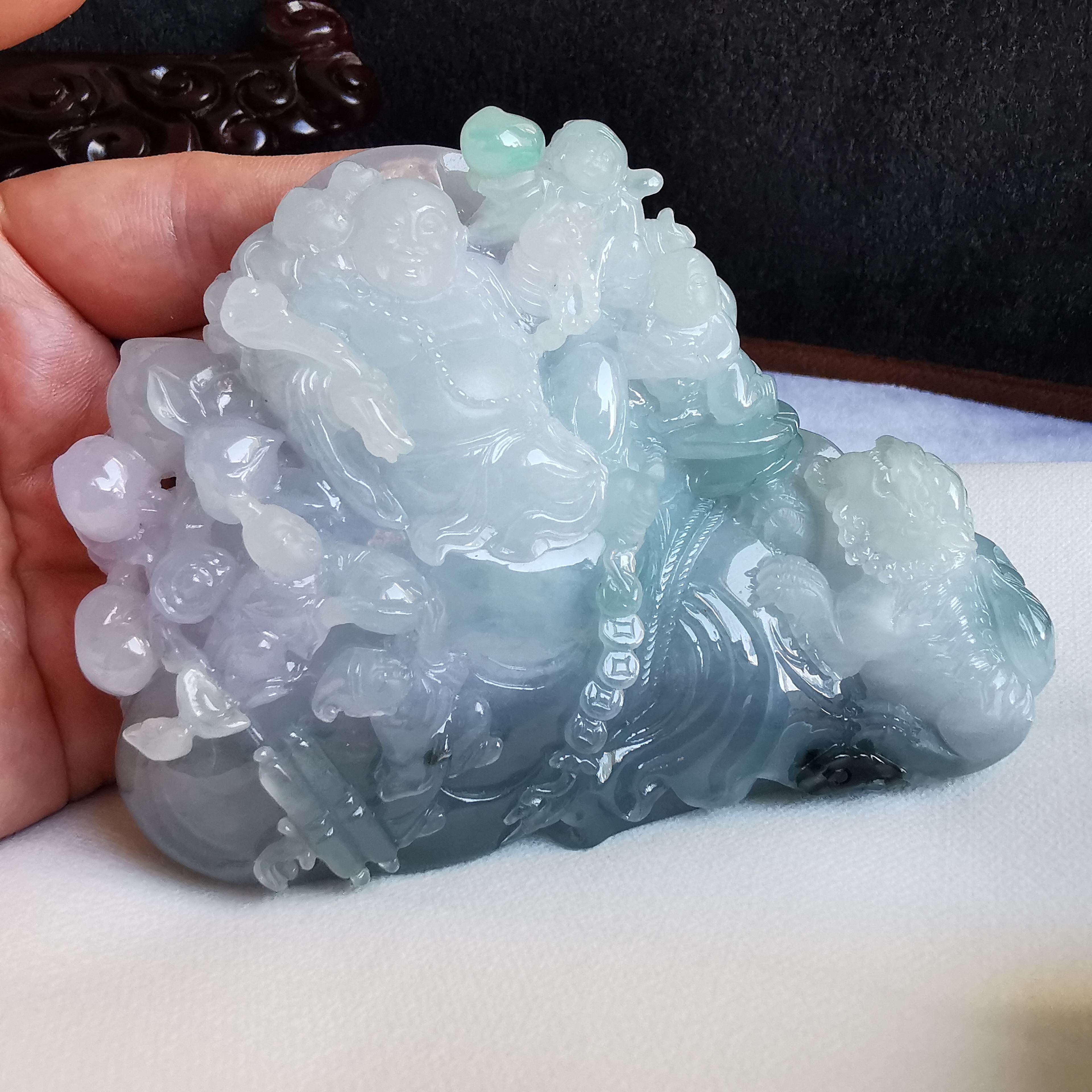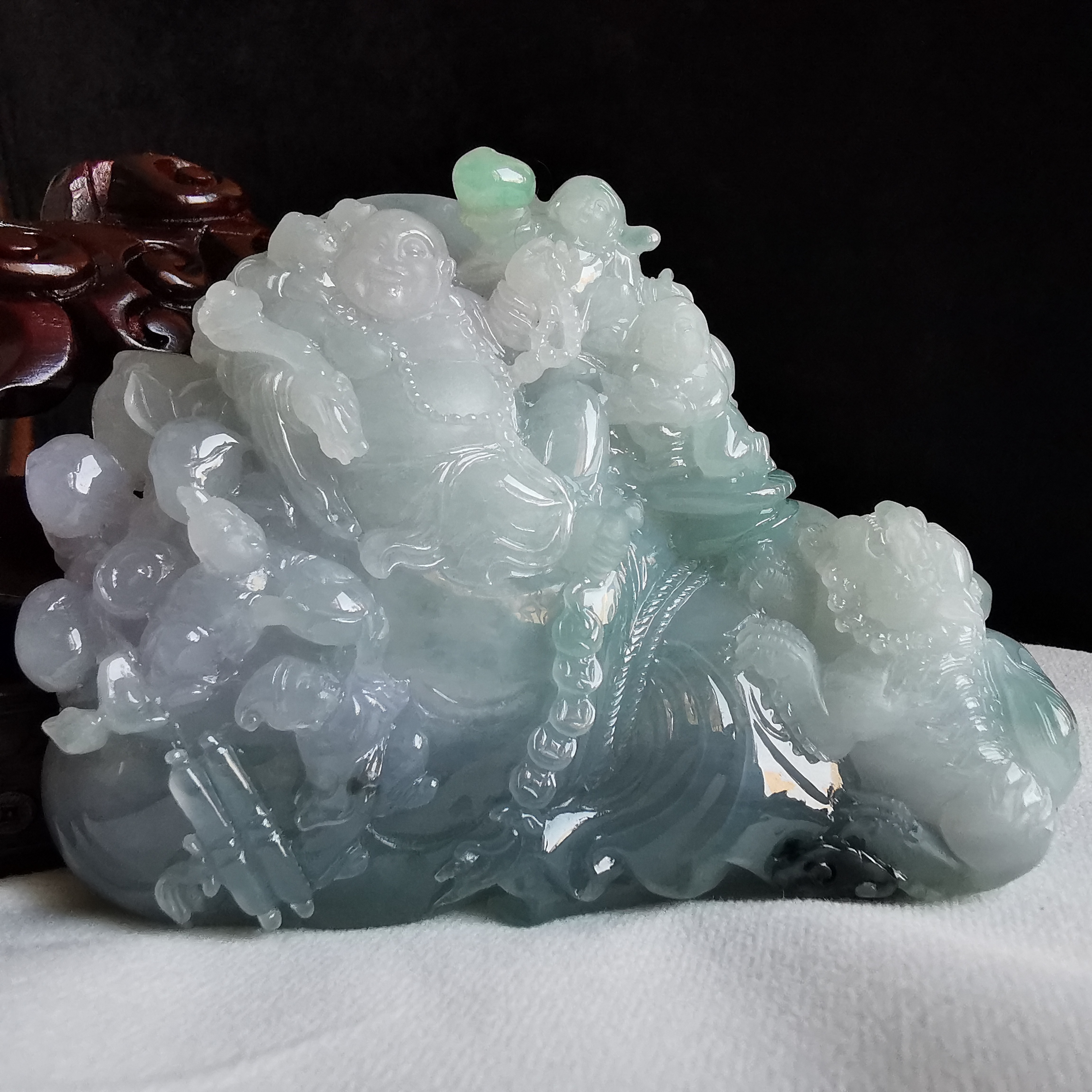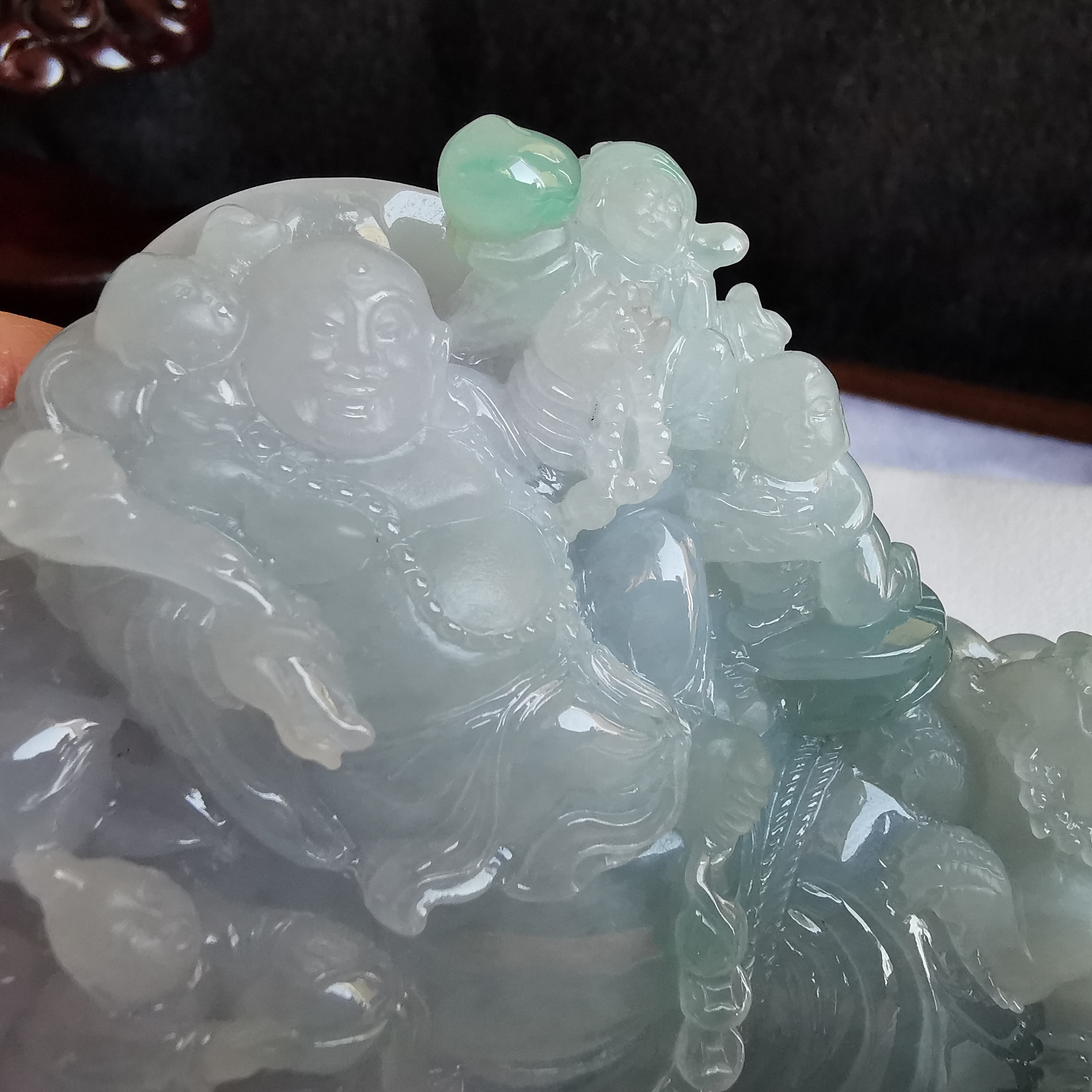 • 五子登科多子多孫擺件, 天然翡翠A玉, 緬甸玉, Jade, Jadeite