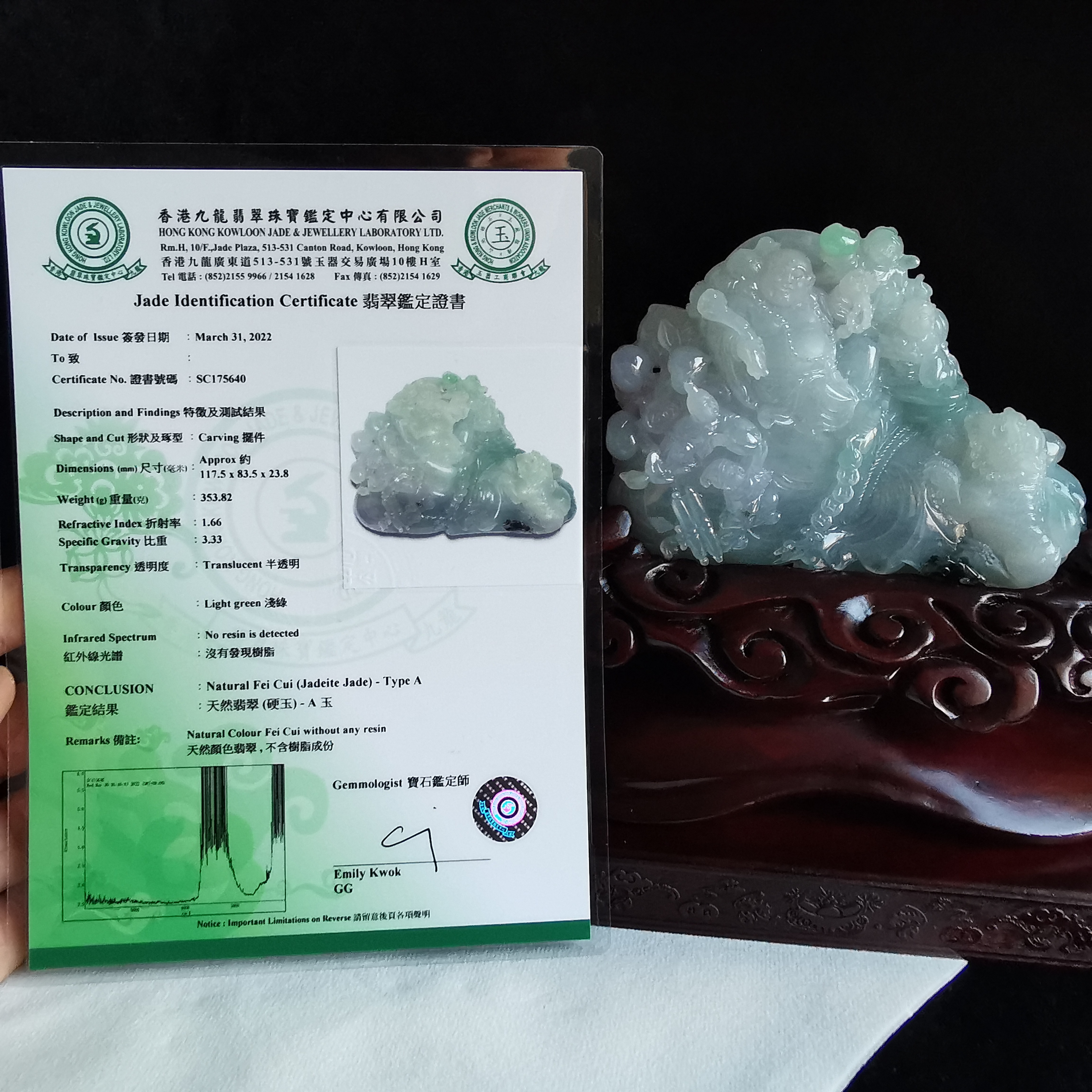超過$1萬的貨品均包香港翡翠鑑定証書;
