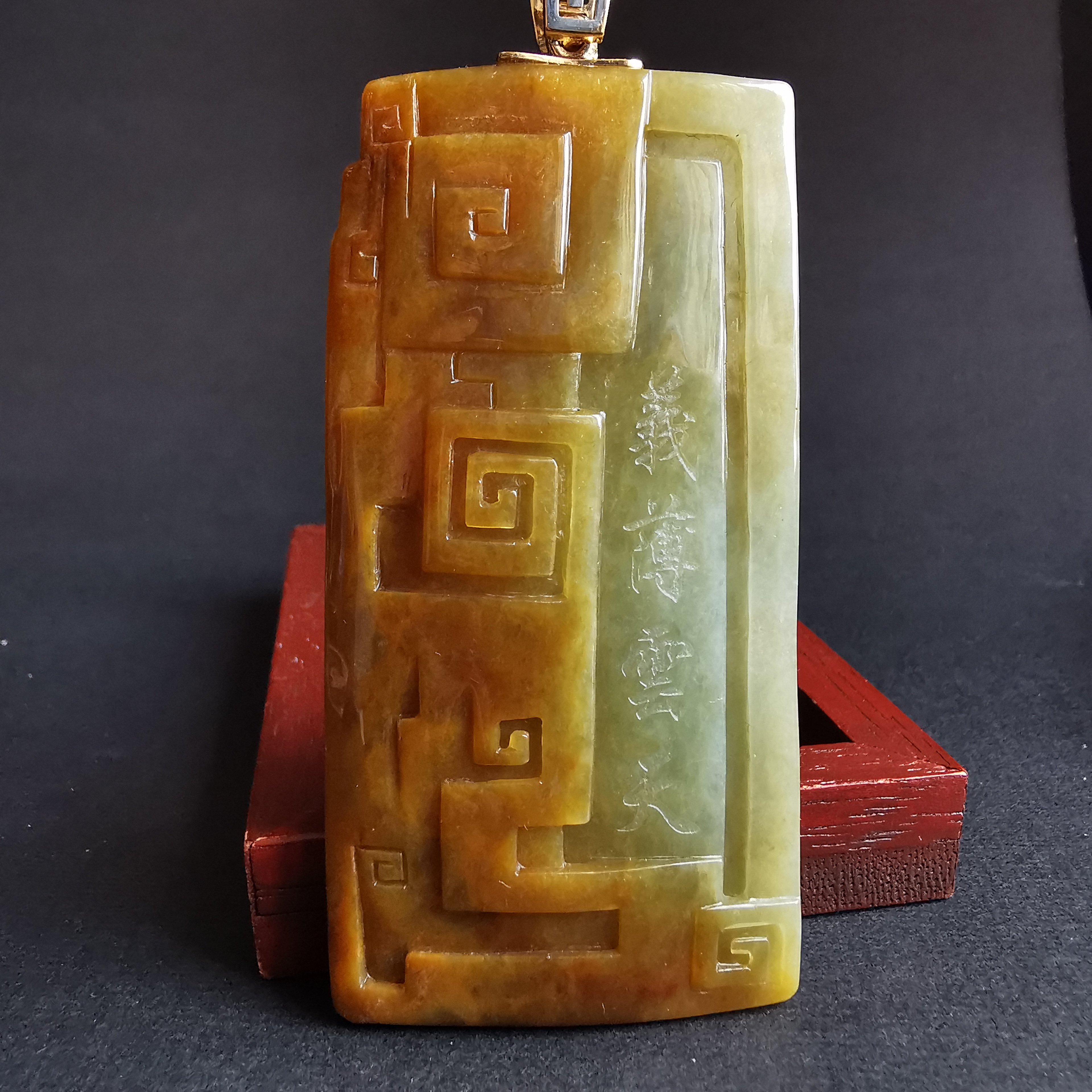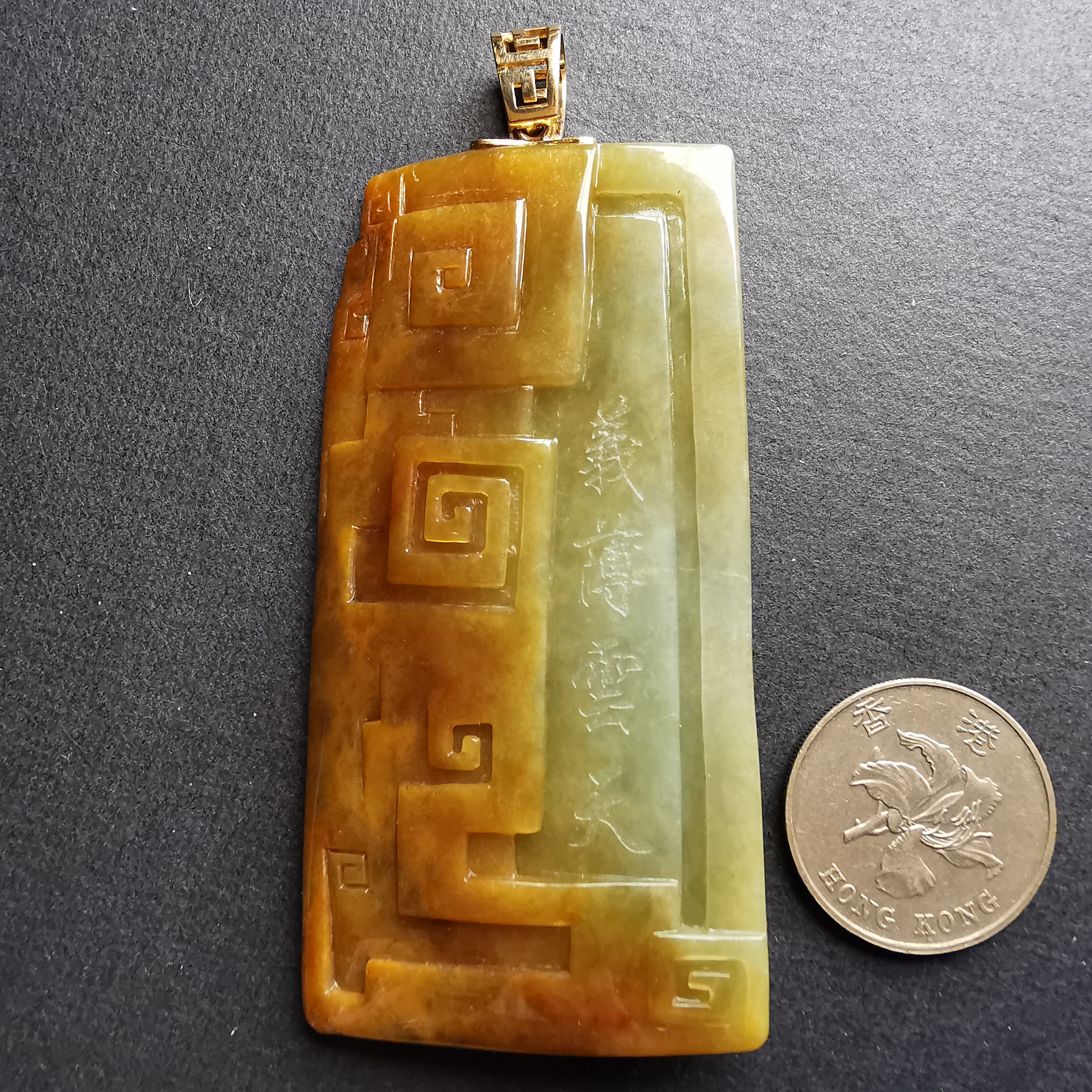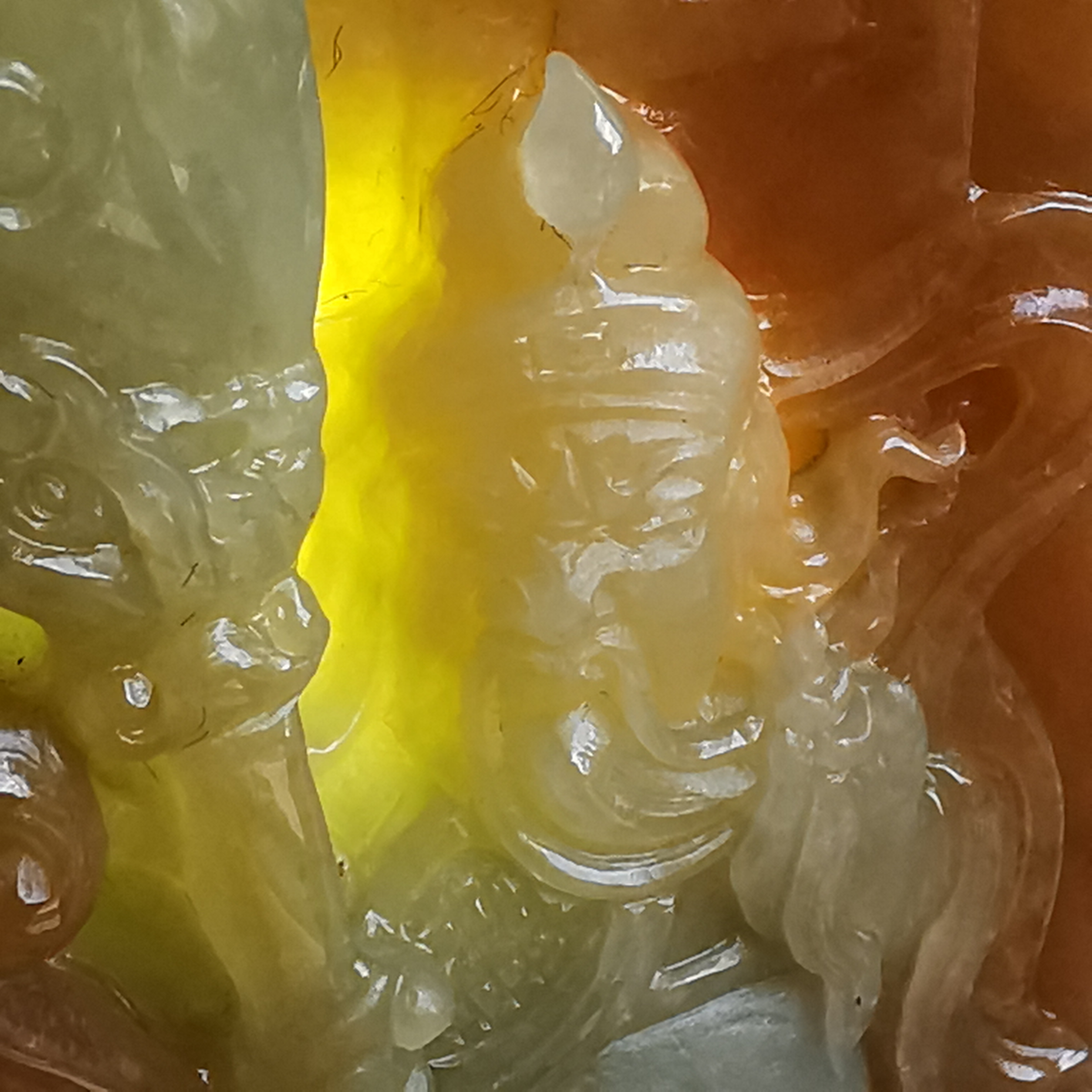天然黃翡,三彩,大師級雕工,巧雕。配18K金扣