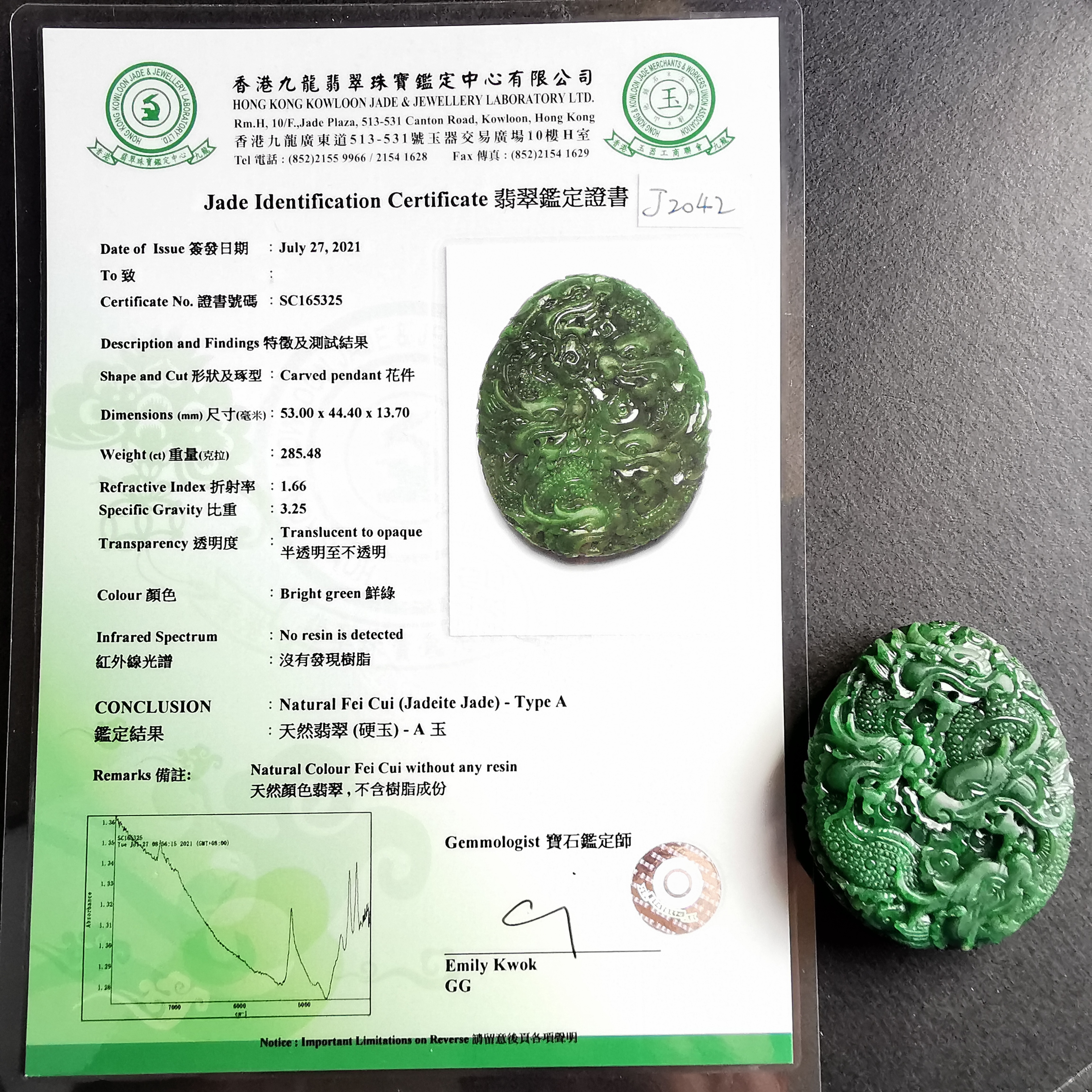 超過$1萬的貨品均包香港翡翠鑑定証書;