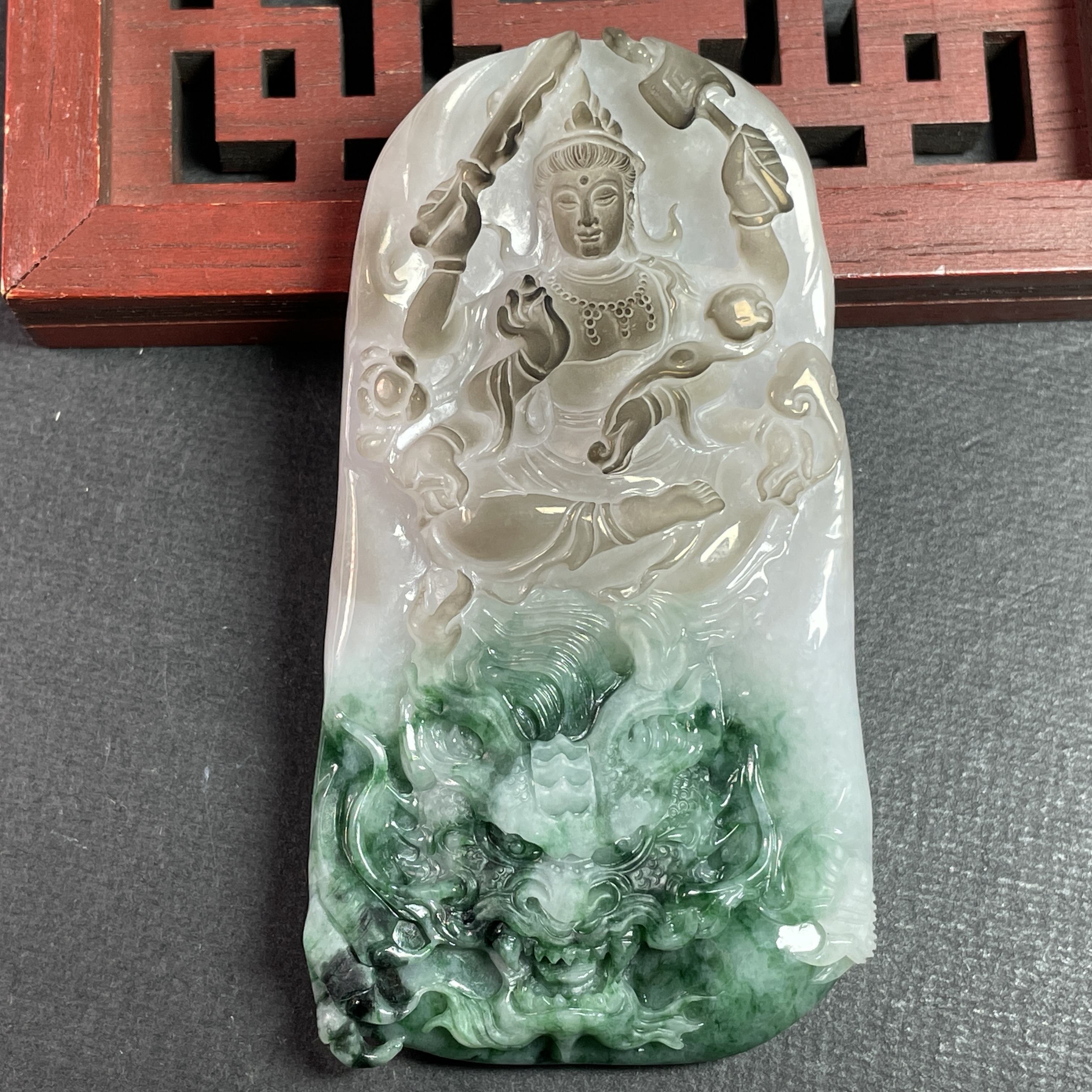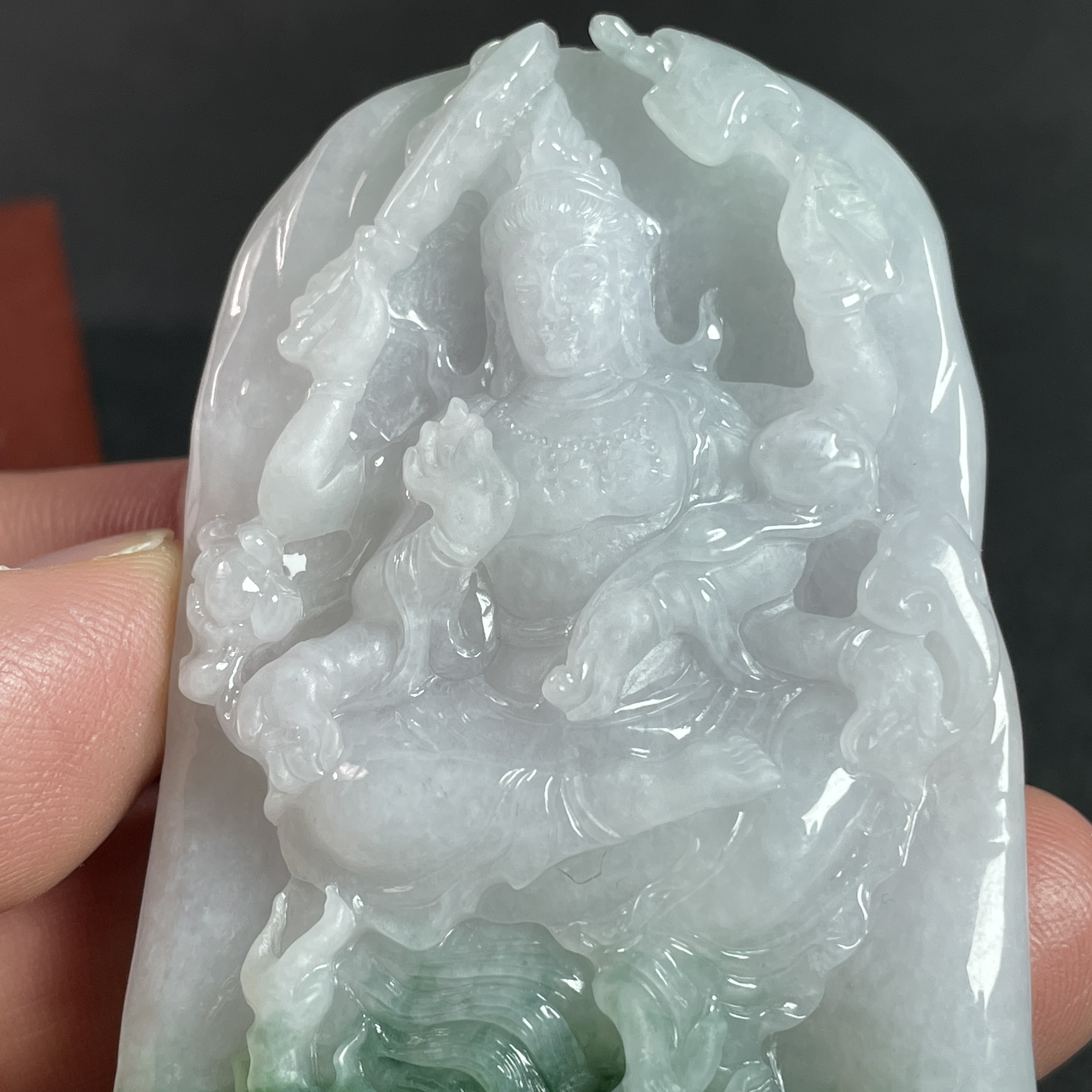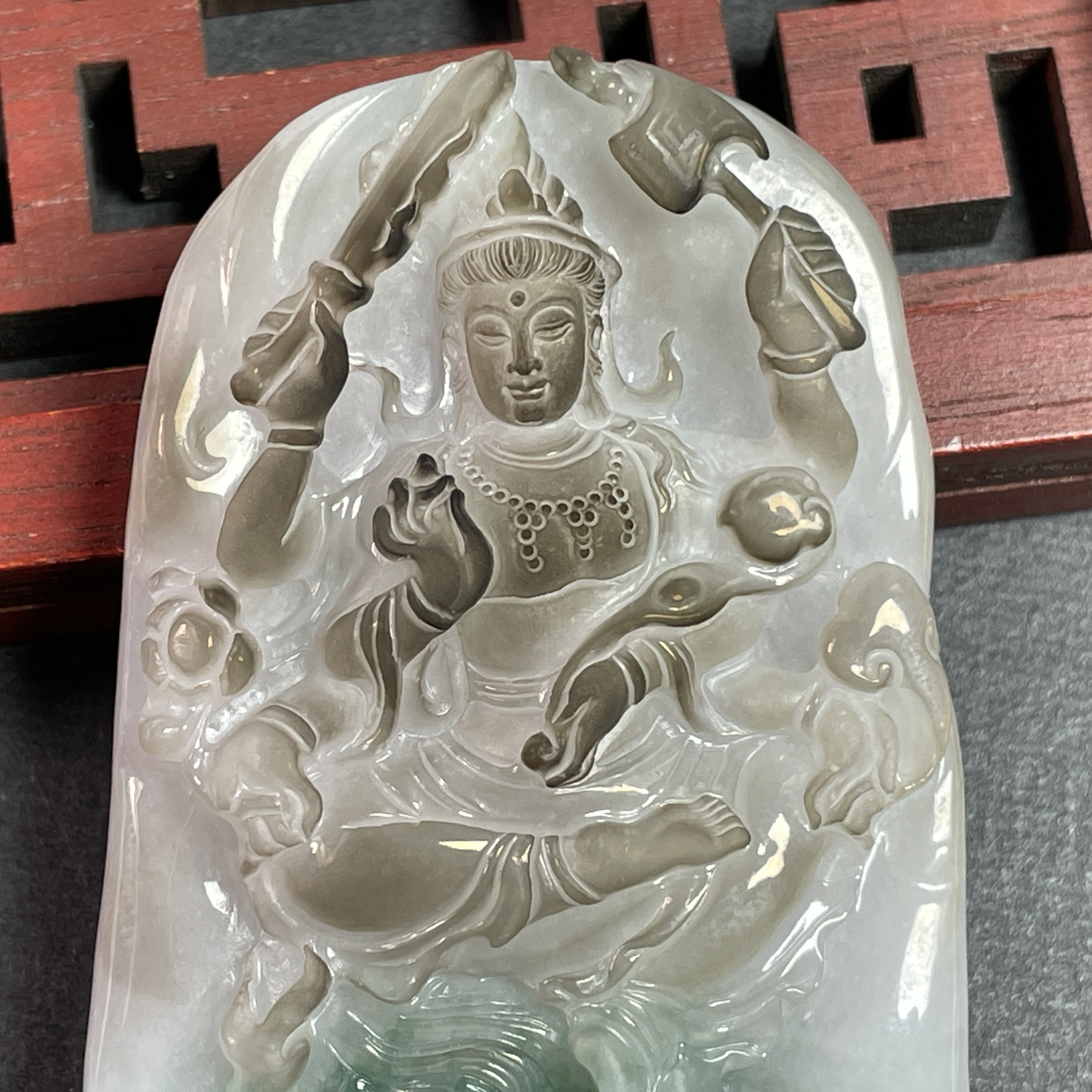 翡翠玉雕的六臂御龍觀音,不僅擁有觀音菩薩本身的豐富寓意,還結合了玉的美好象徵,更顯珍貴和吉祥。